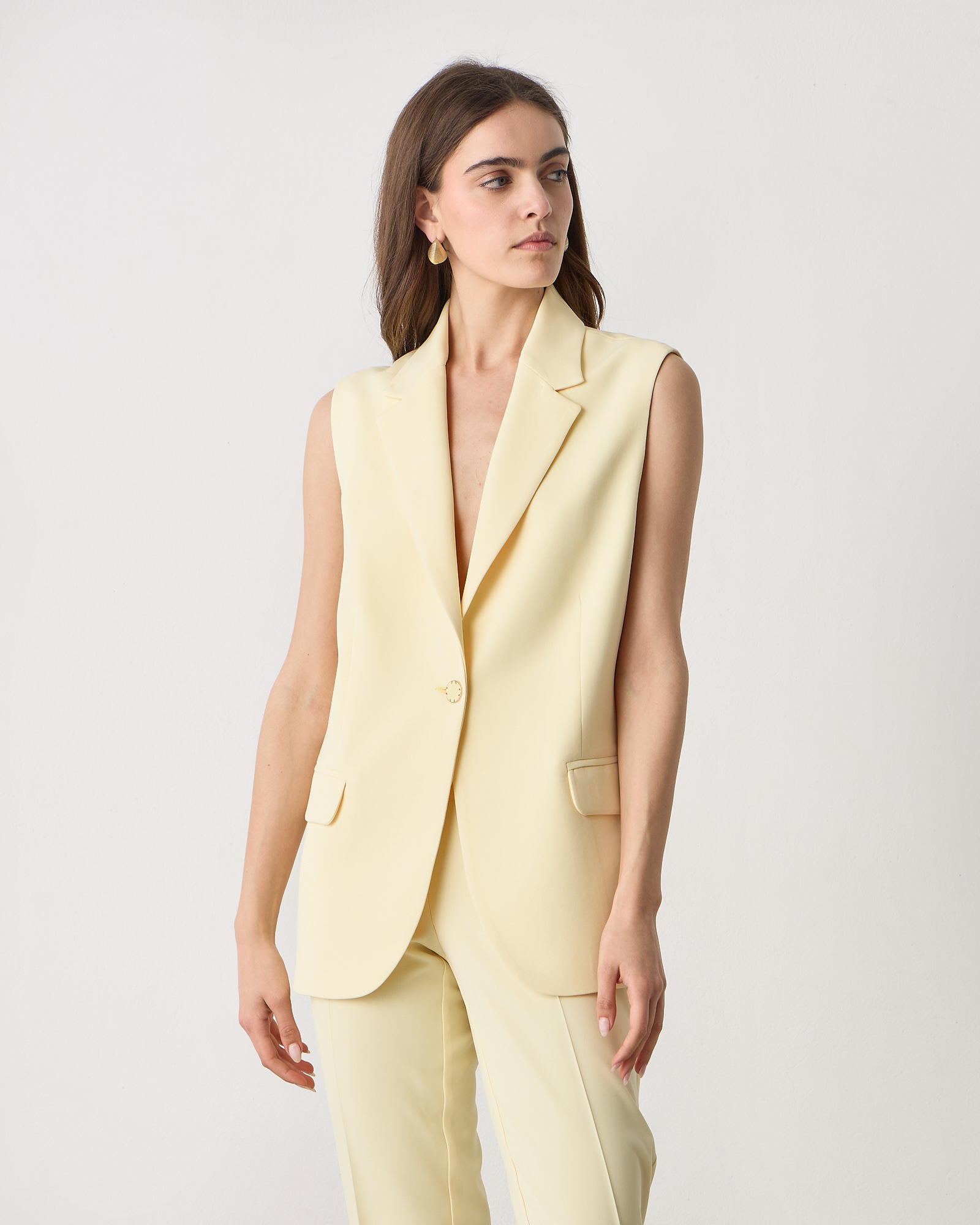 Γιλέκο αμάνικο με γιακά και πέτο, κλείσιμο με κουμπί μπροστά, σε ίσια γραμμή, κανονική εφαρμογή
