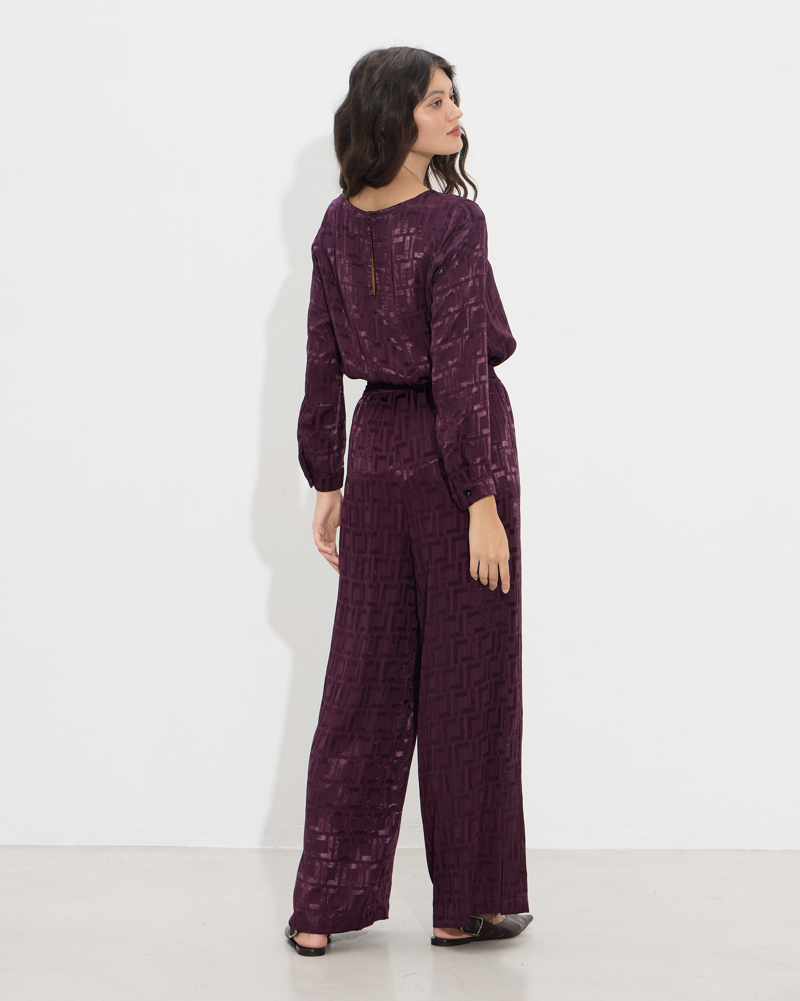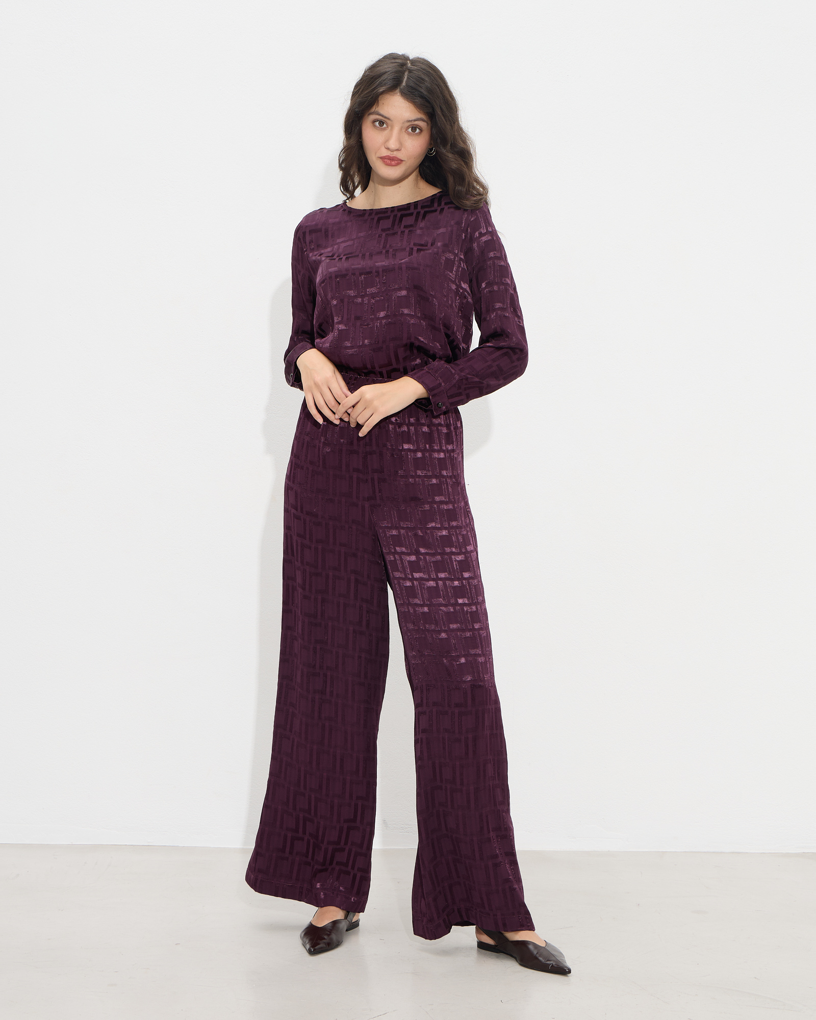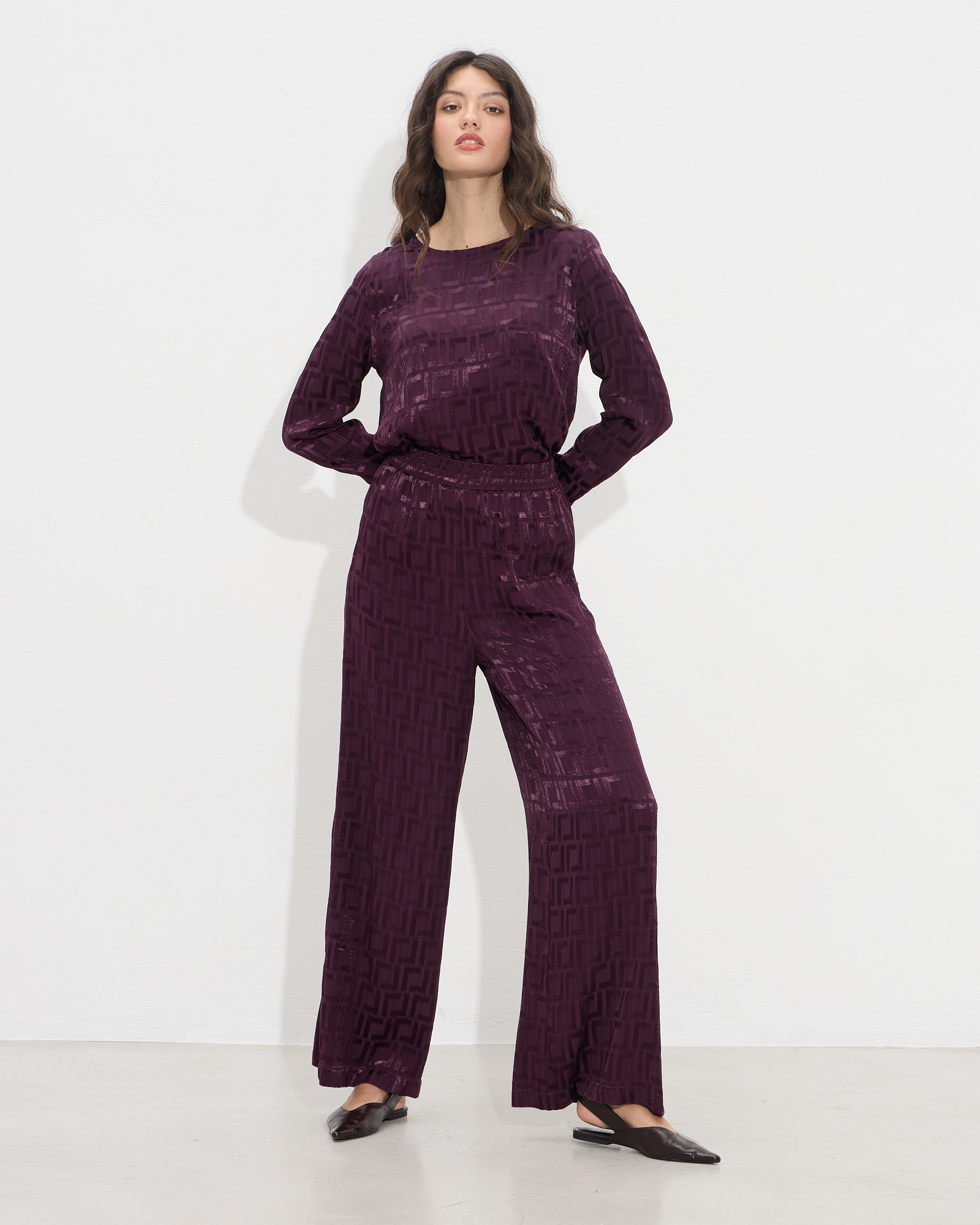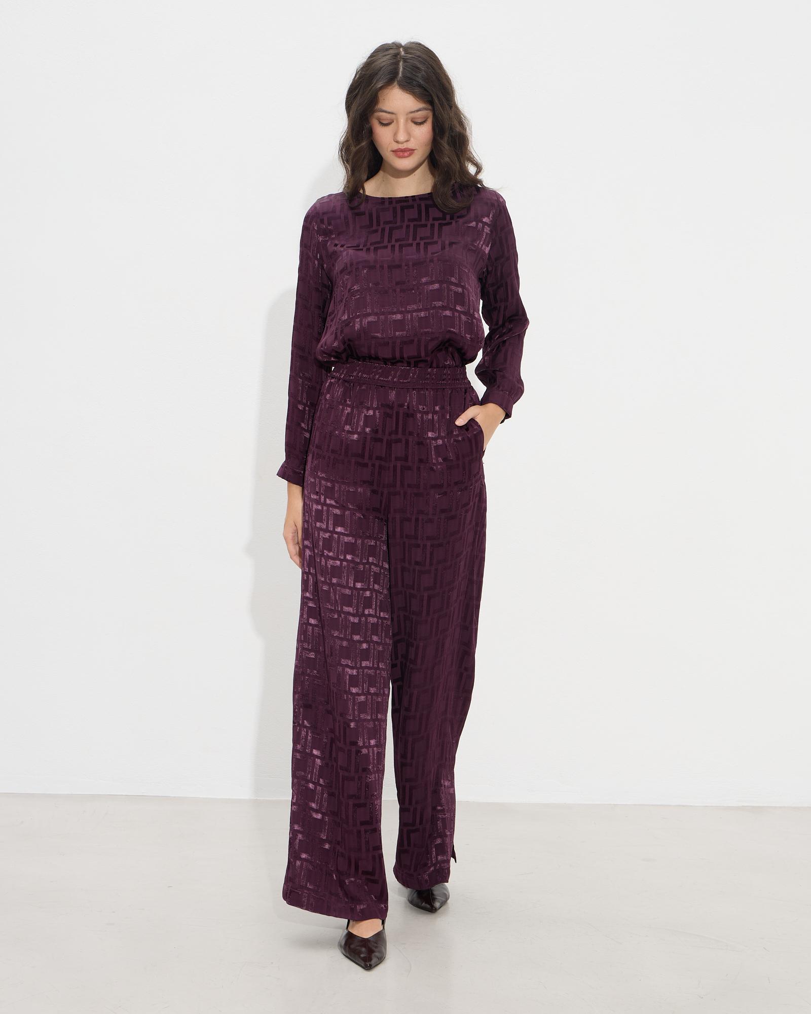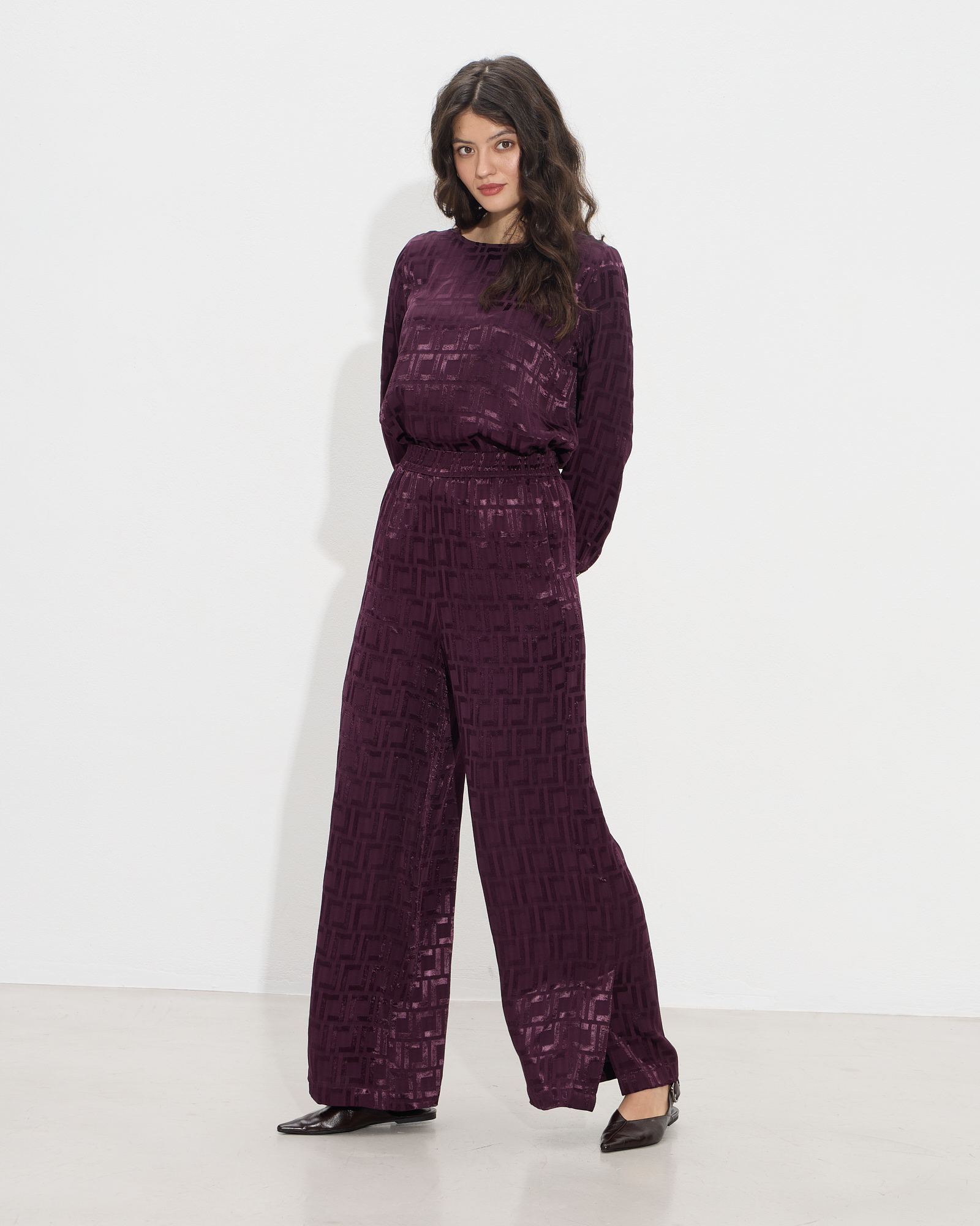 Παντελόνα με λάστιχο στη μέση σε ανάγλυφο ύφασμα με πλαϊνές τσέπες, σκίσιμο στο τελείωμα, σε κανονική γραμμή