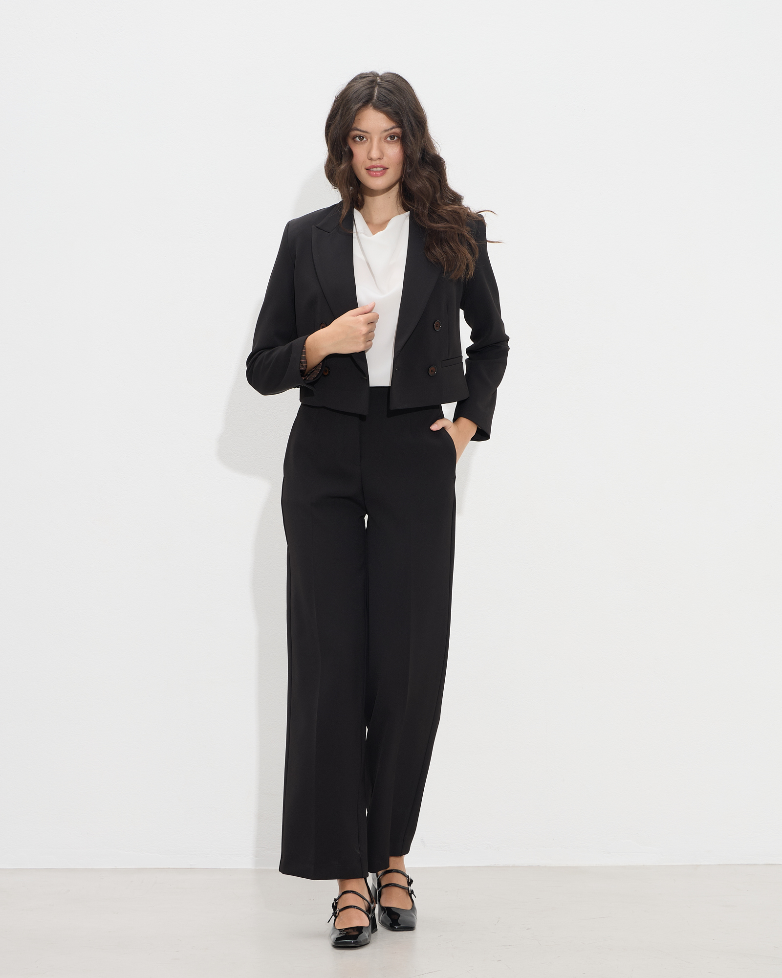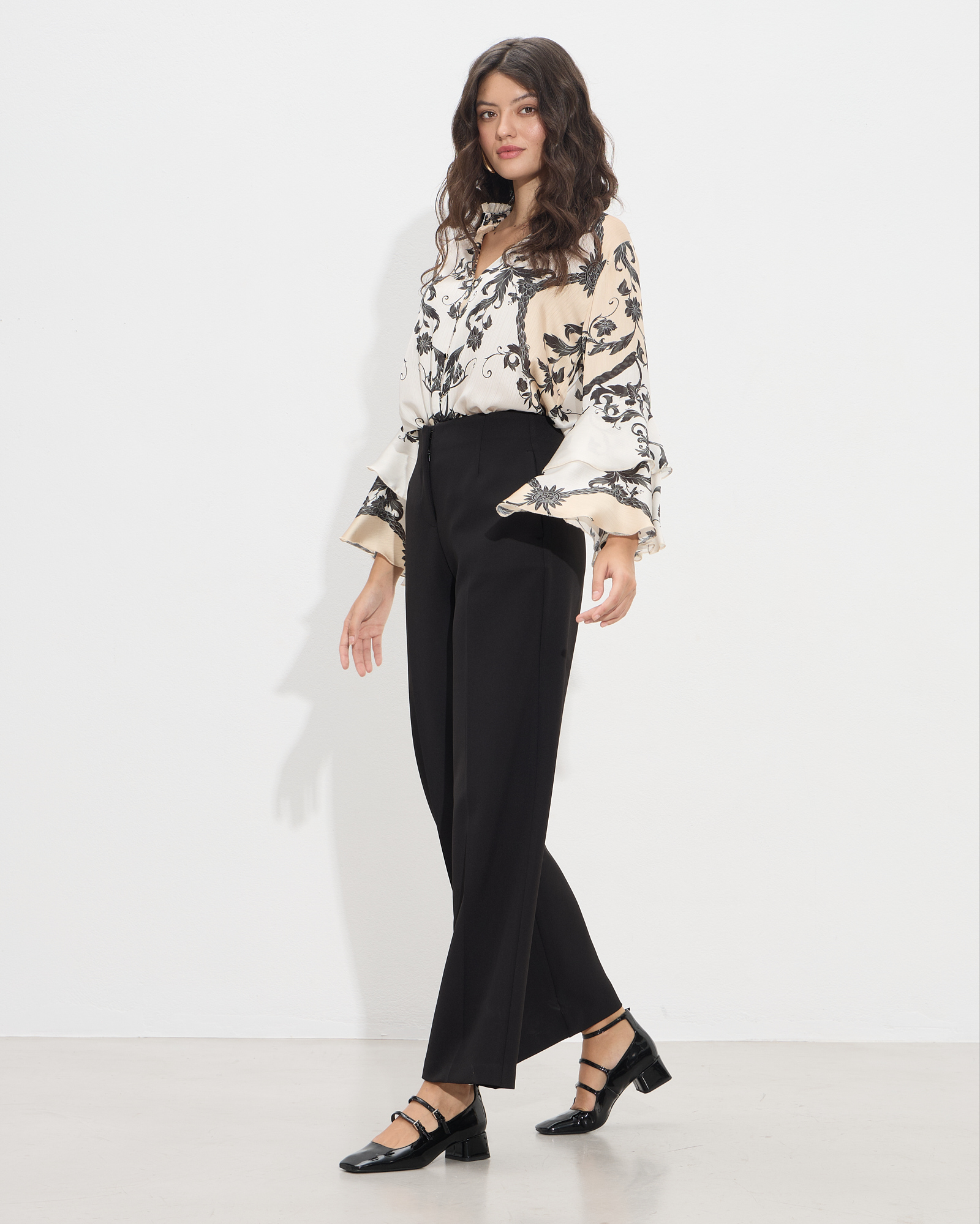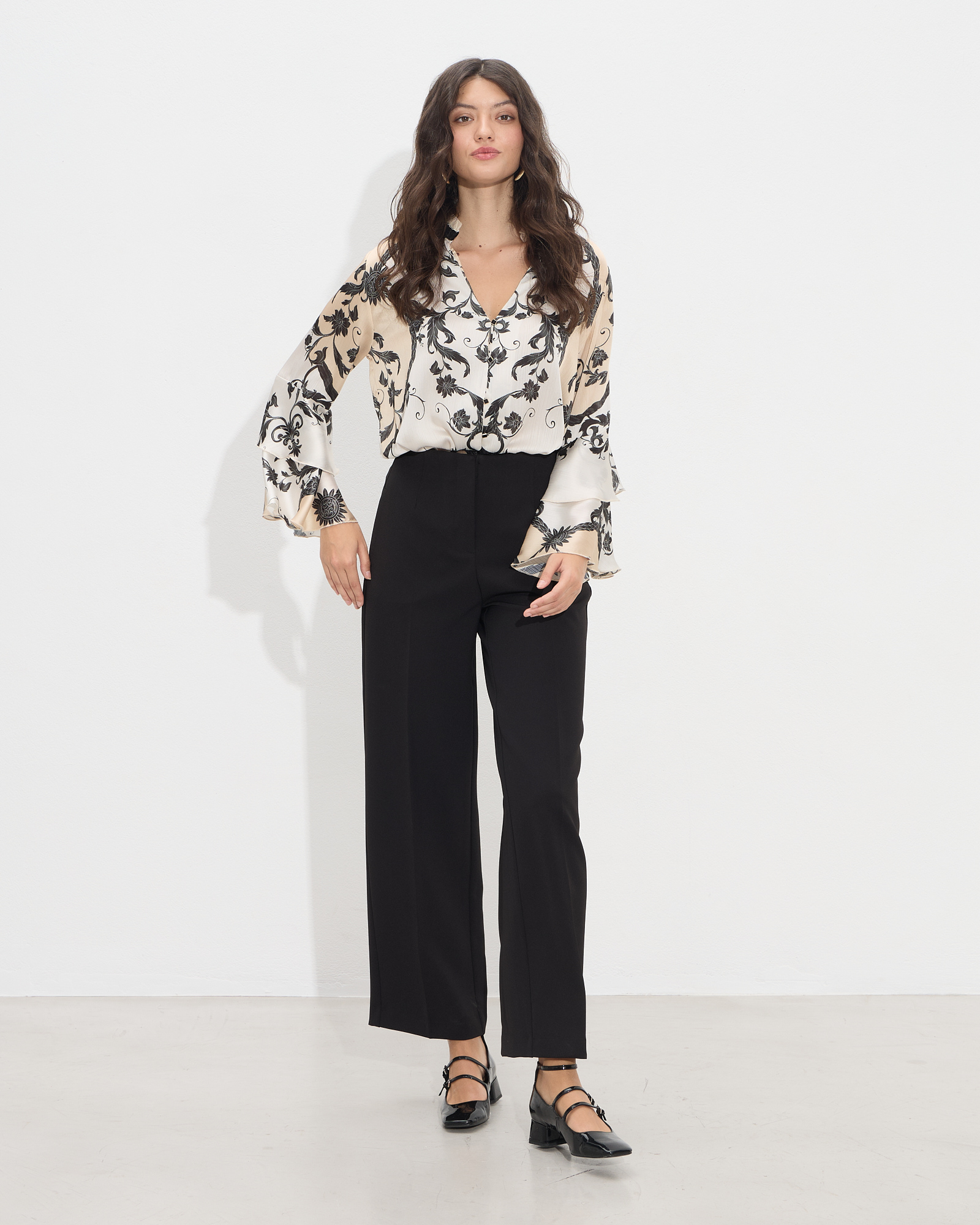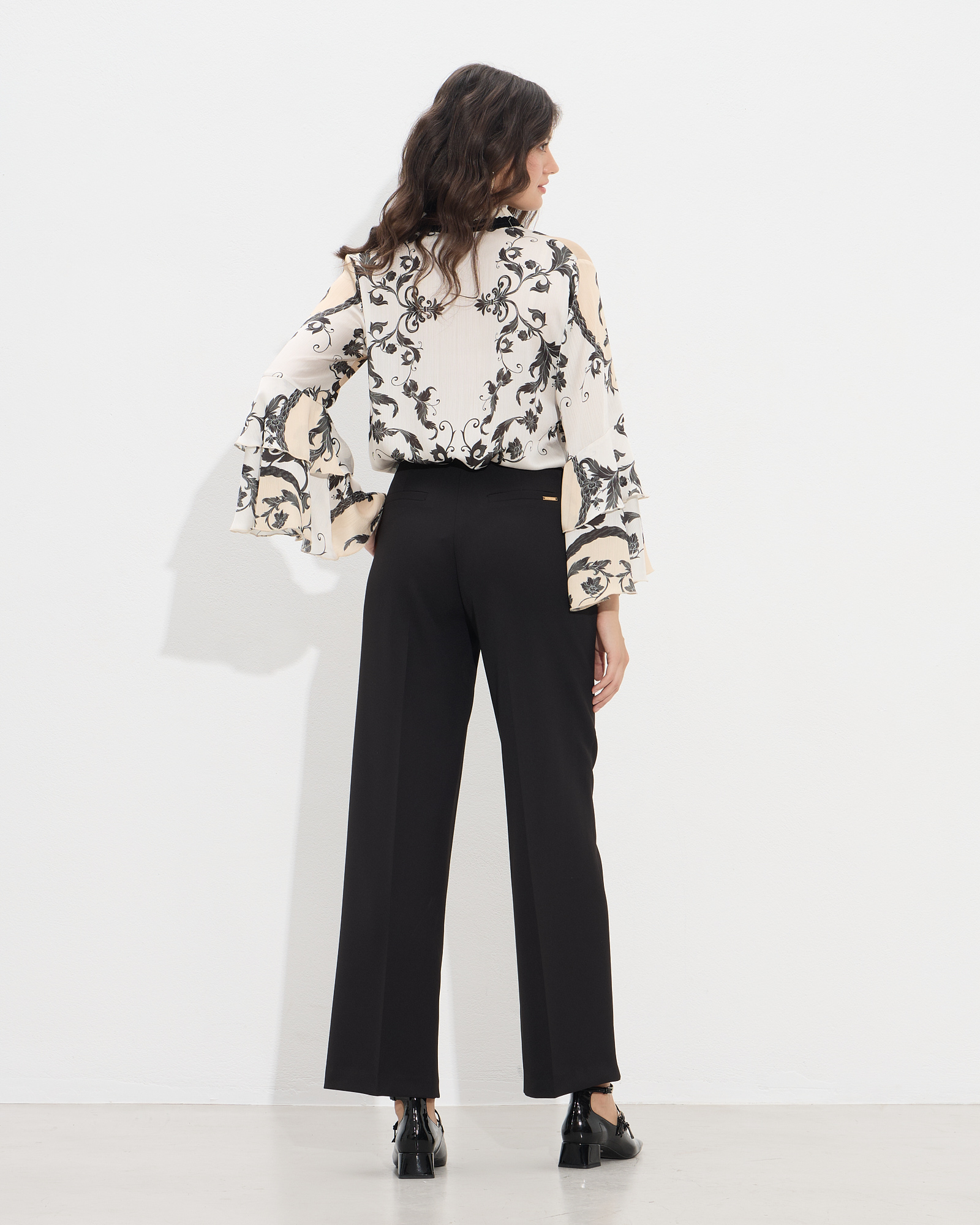 Παντελόνι ψηλόμεσο με πλαϊνές τσέπες, κλείσιμο με φερμουάρ και κόπιτσα σε wide leg γραμμή