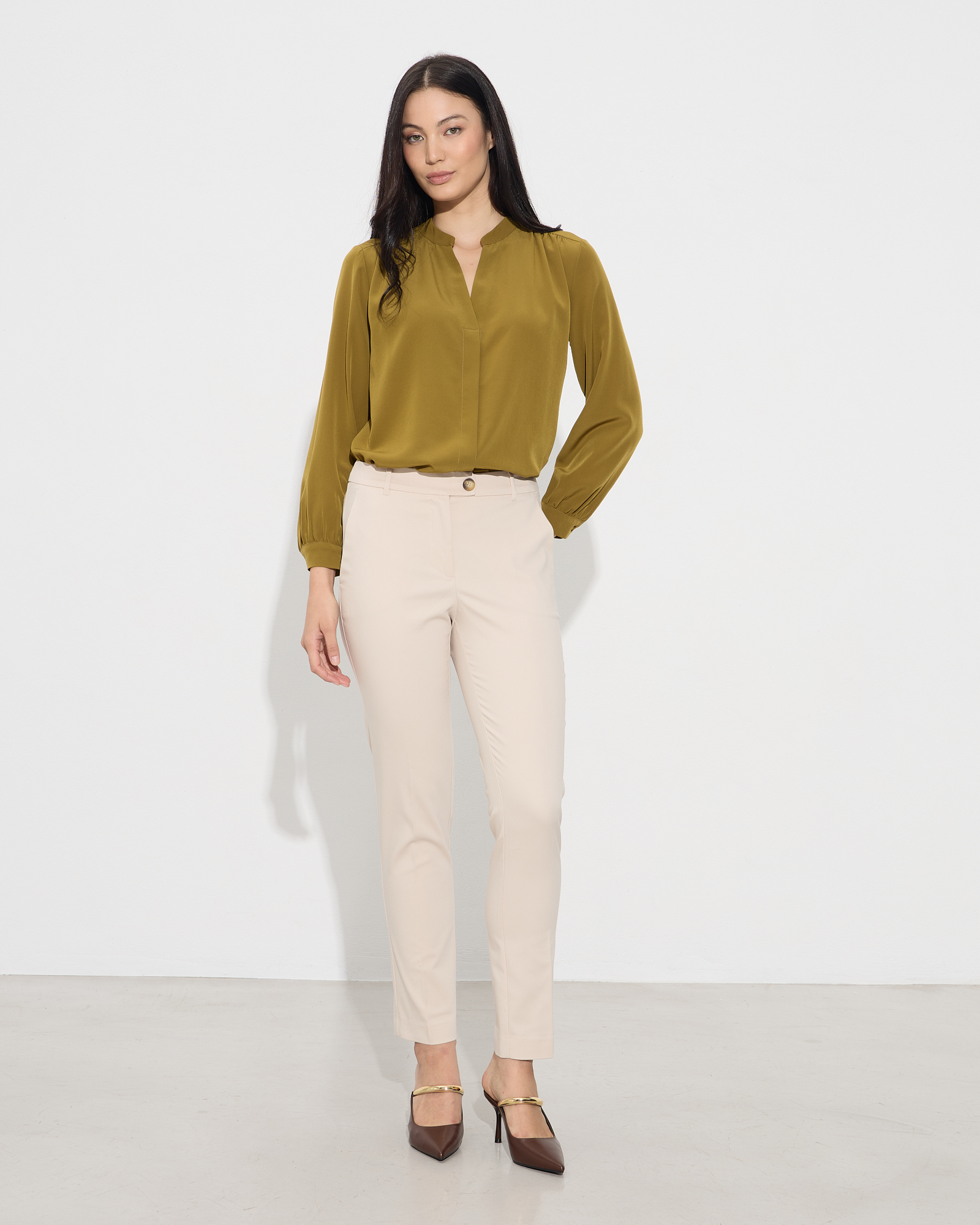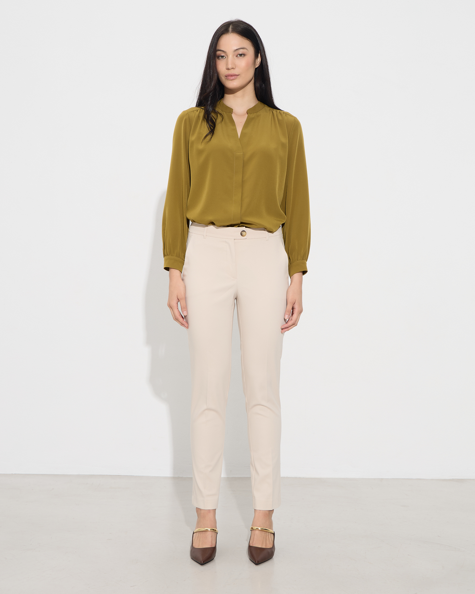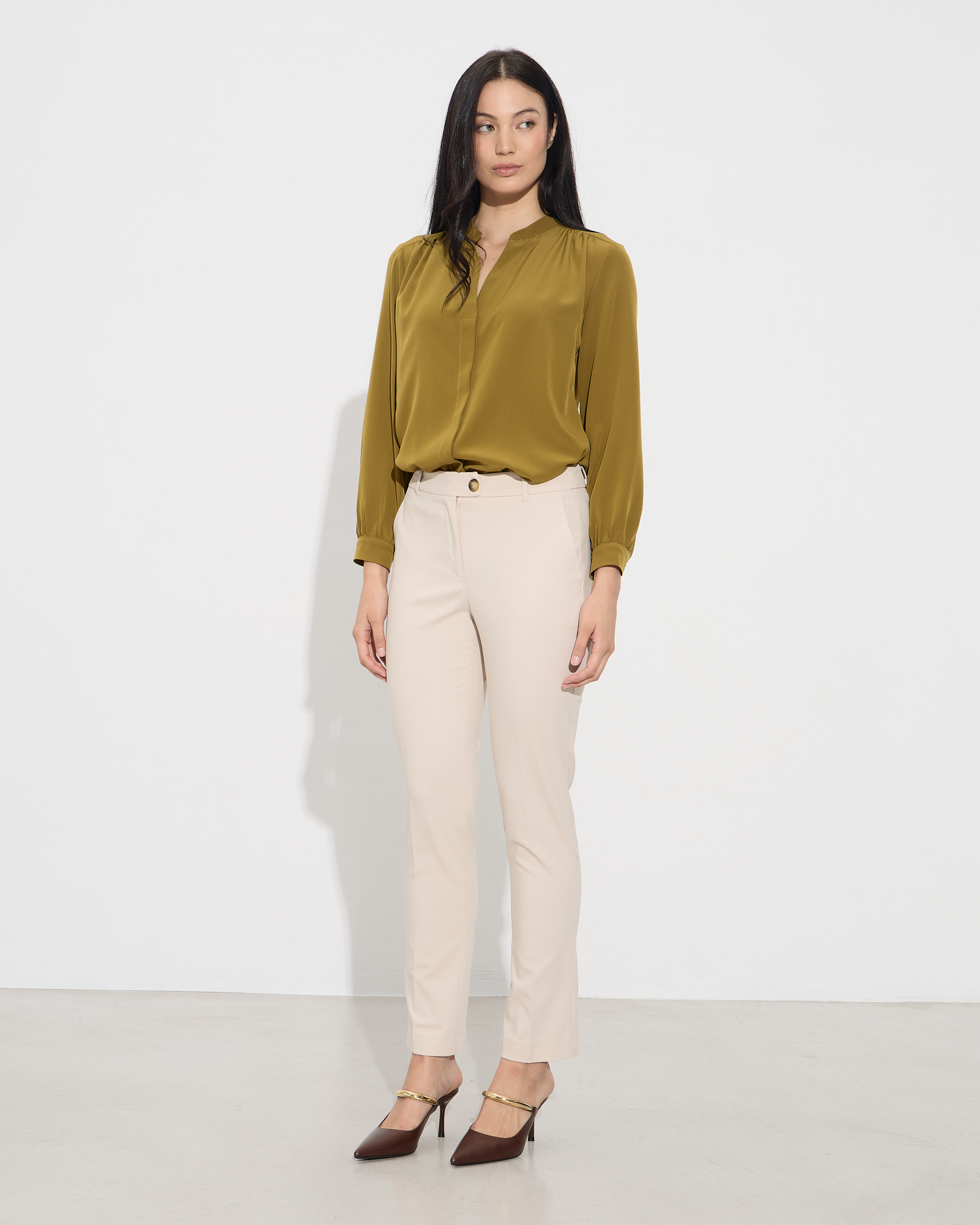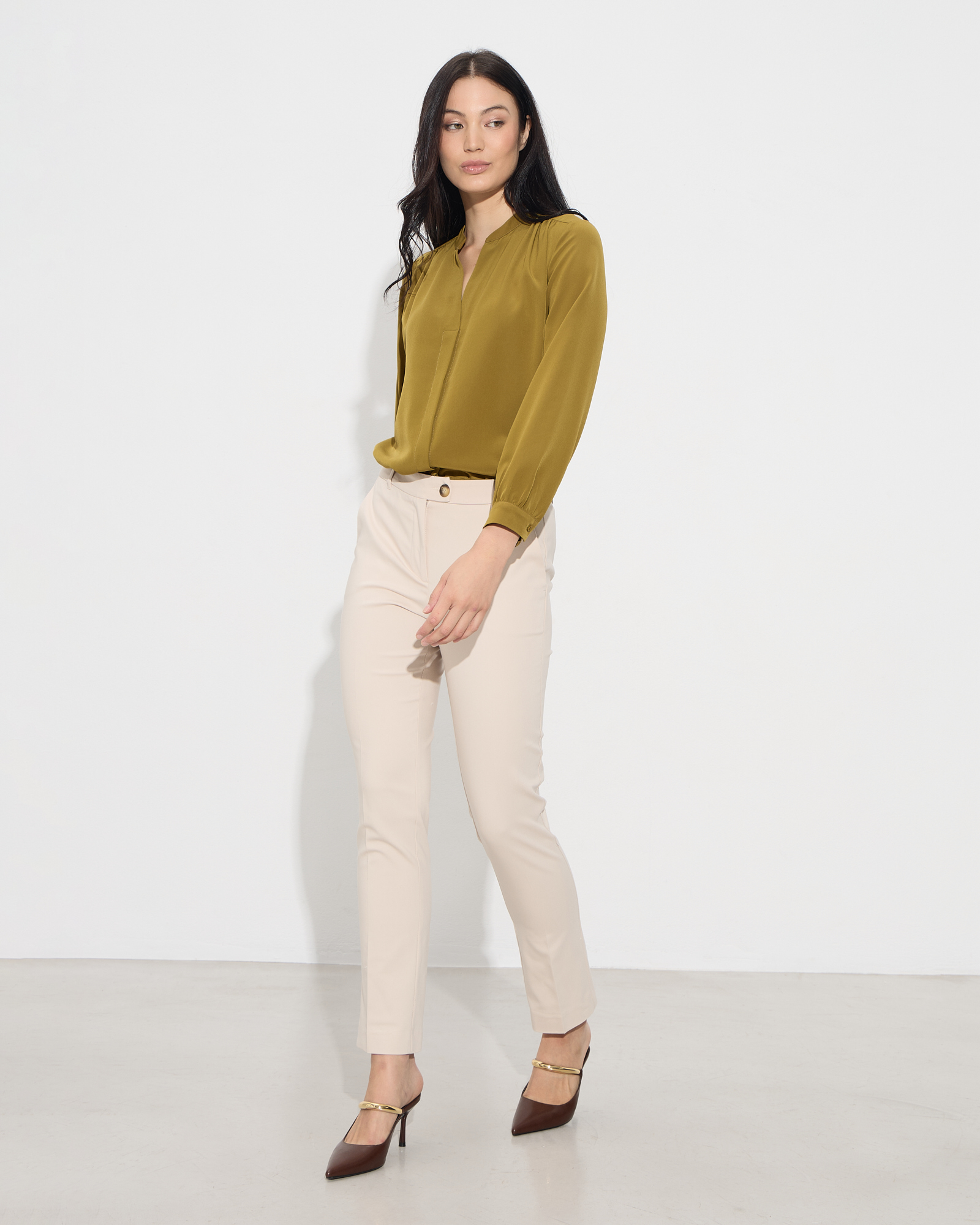 Παντελόνι ψηλόμεσο cigarette με πλαϊνές τσέπες, φερμουάρ και κουμπί, σε κανονική γραμμή