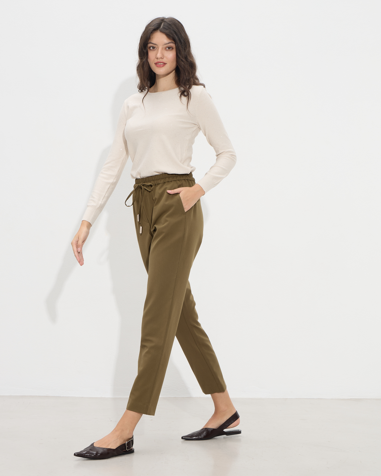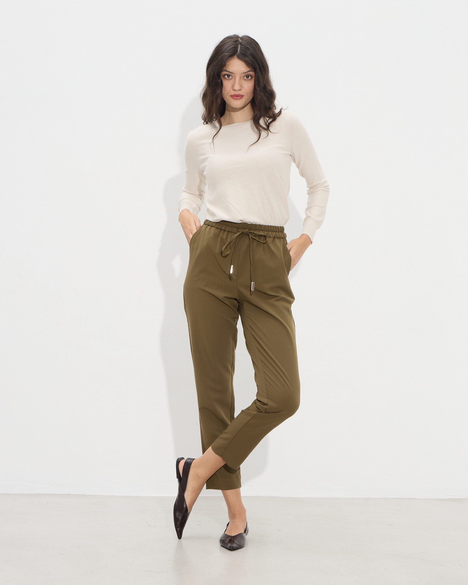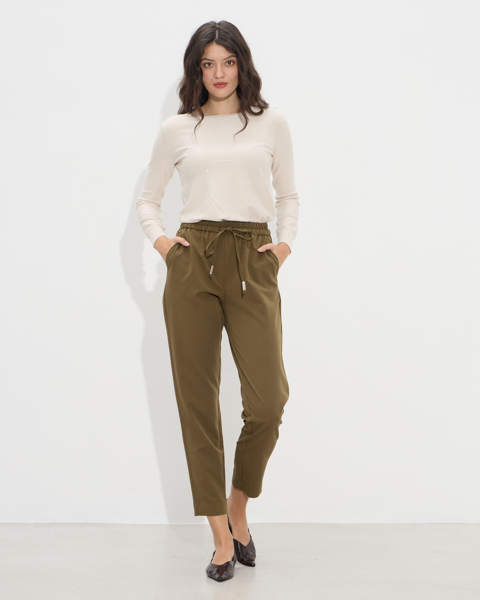 Παντελόνι με λάστιχο στη μέση και κορδόνι, με πλαϊνές τσέπες, σε κανονική γραμμή