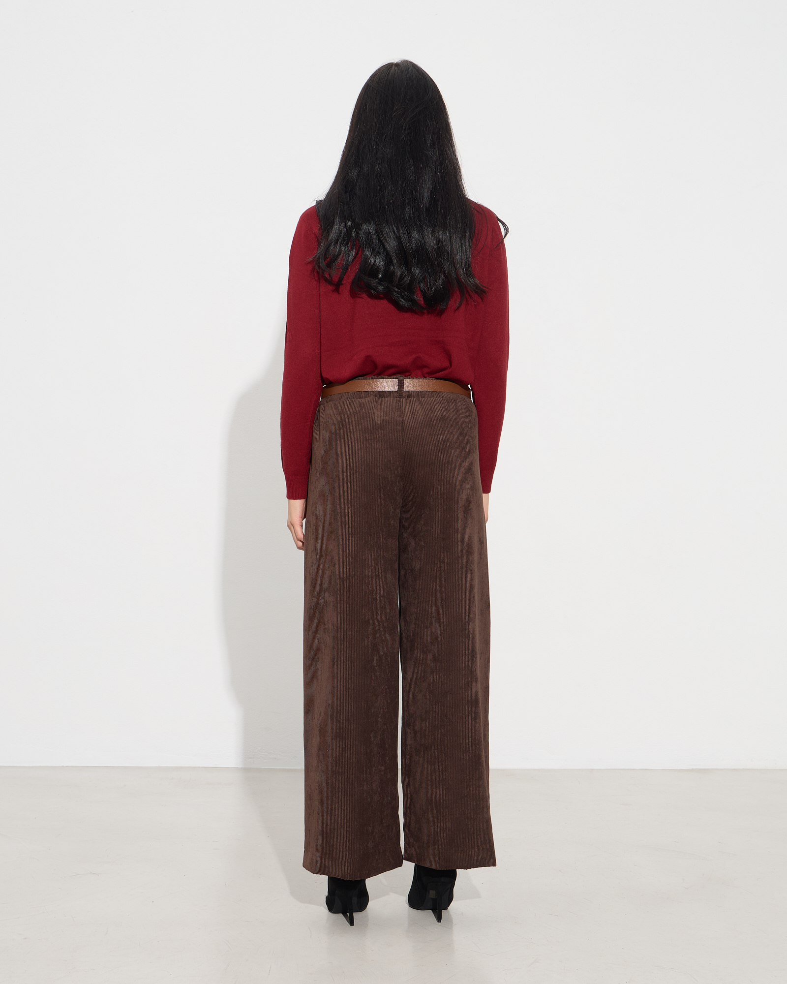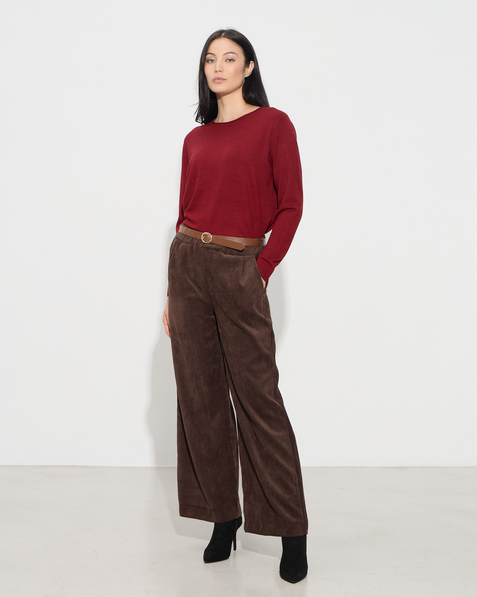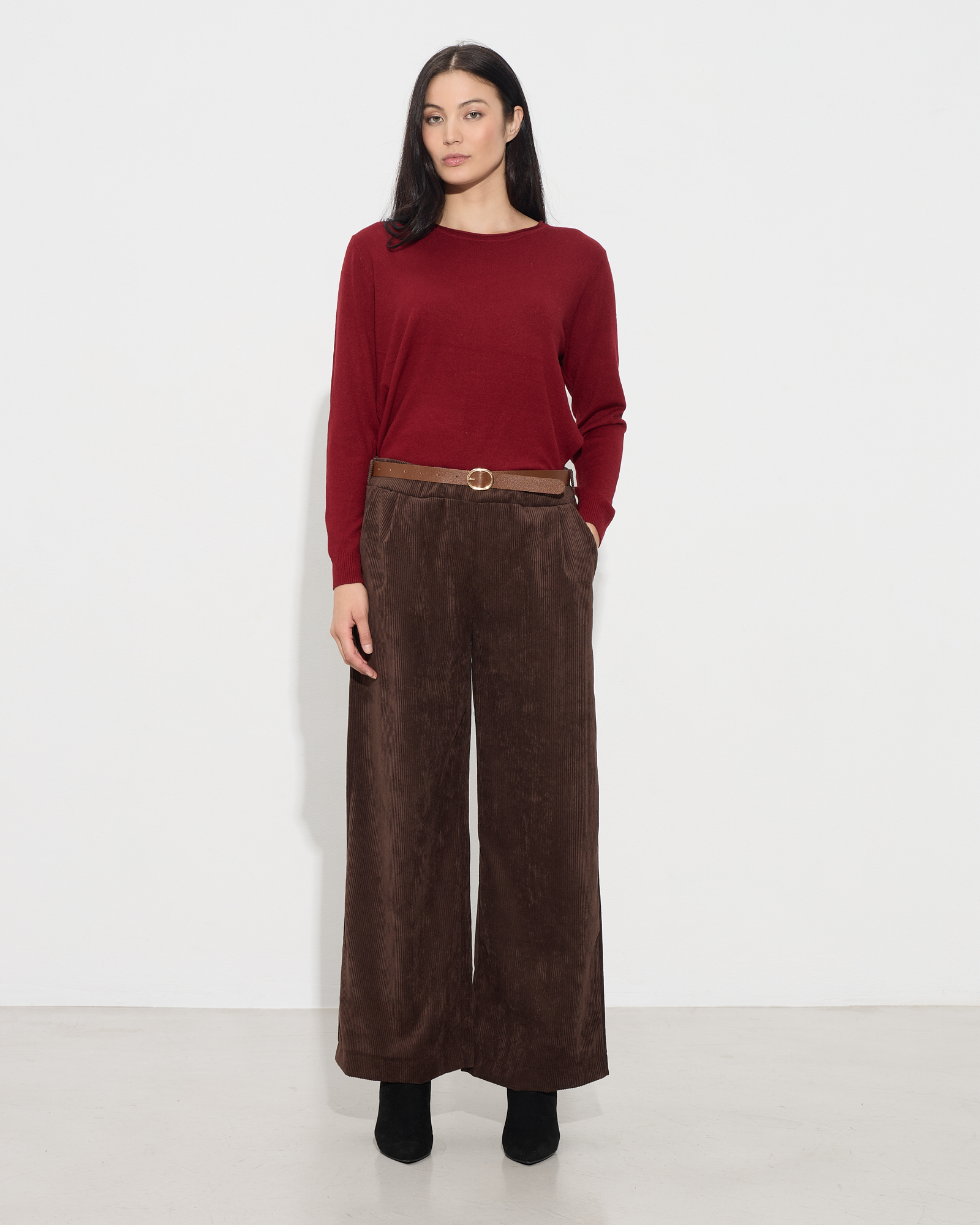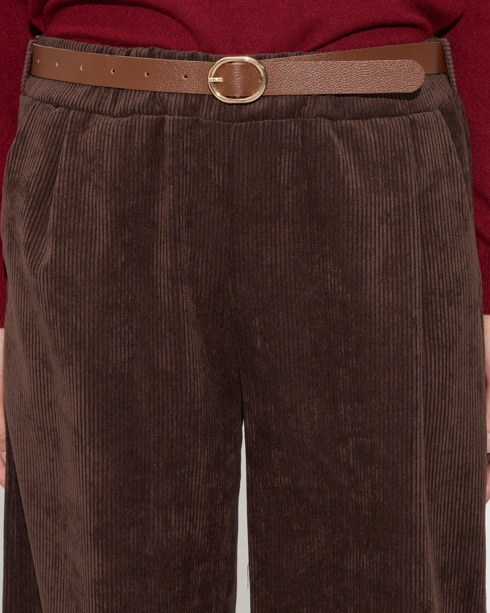 Παντελόνα κοτλέ ψηλόμεση με αφαιρούμενη ζώνη στη μέση, πλαϊνές τσέπες, σε ίσια γραμμή, σε κανονική εφαρμογή