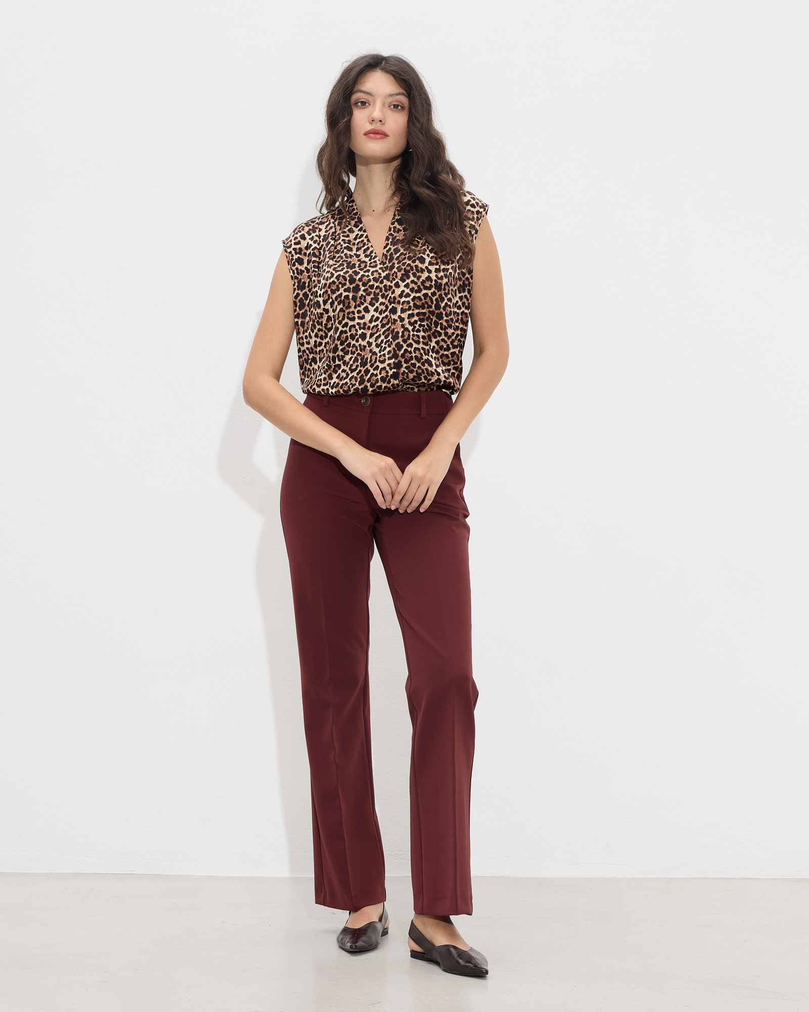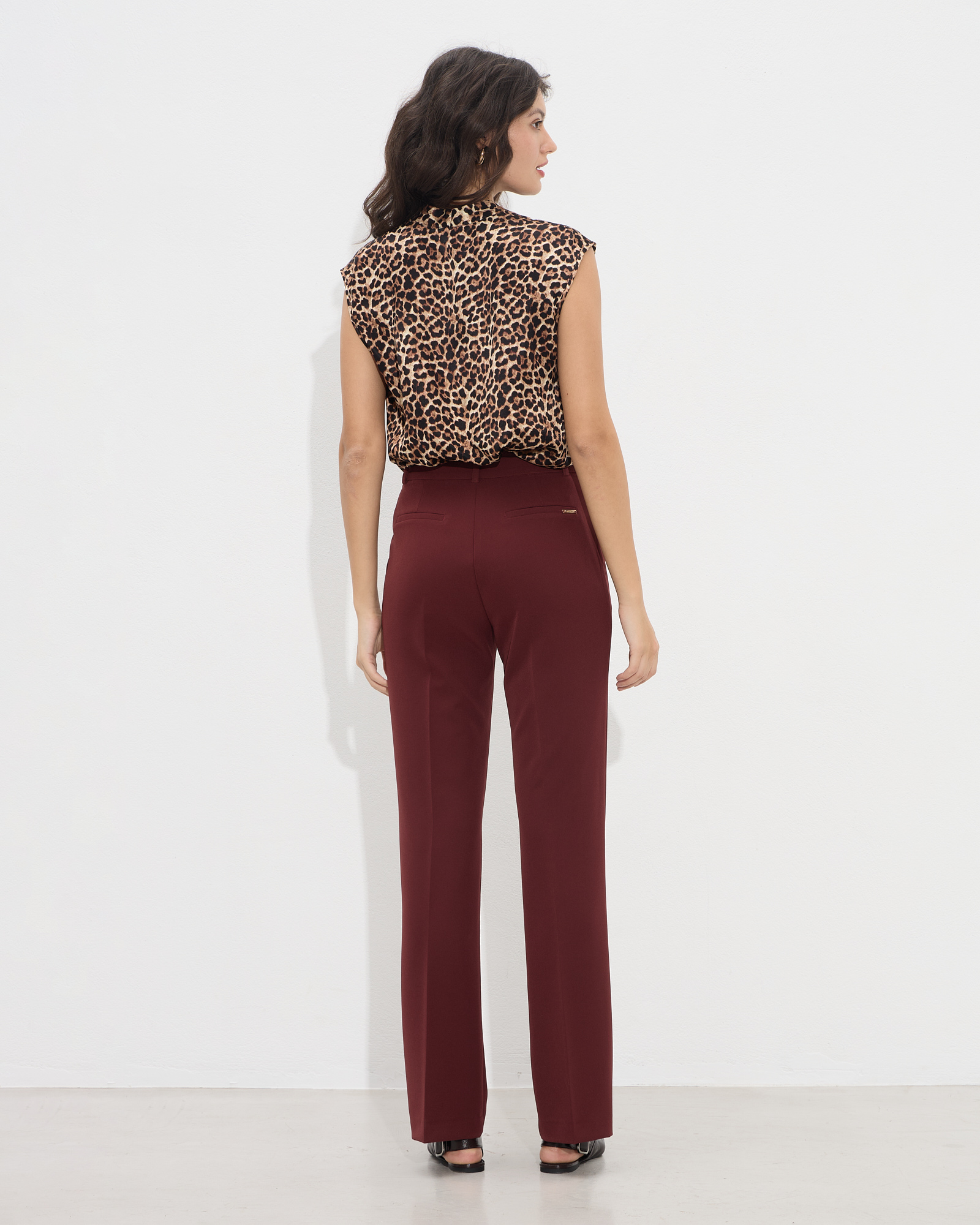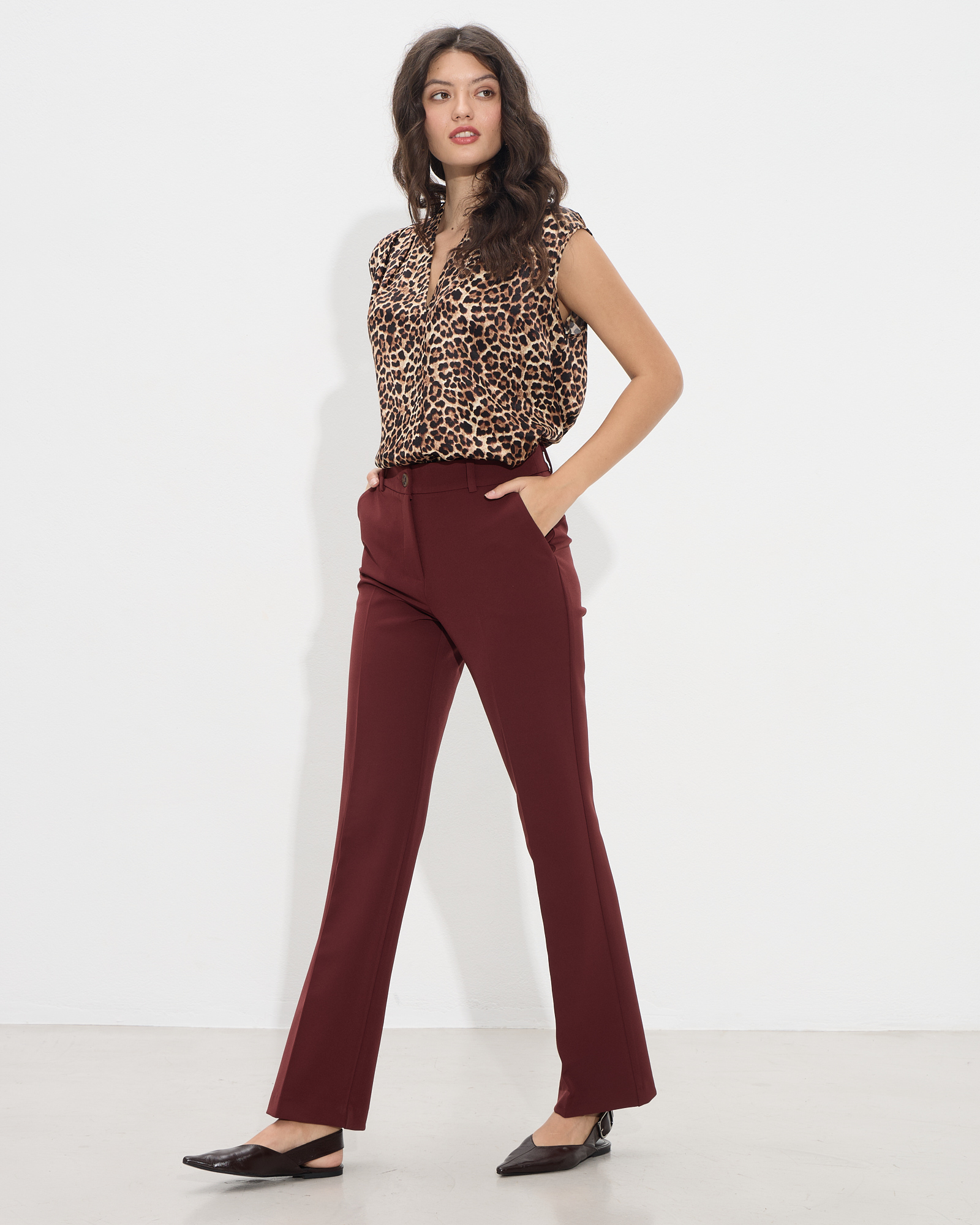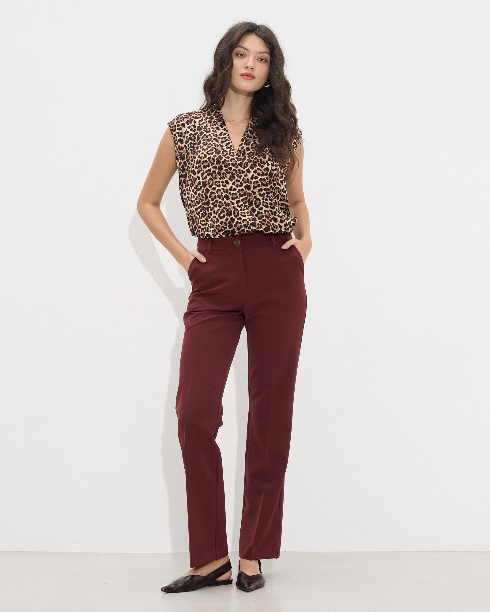 Παντελόνι ψηλόμεσο σε ίσια γραμμή με πλαϊνές τσέπες, κλείσιμο μπροστά με φερμουάρ και κουμπί, σε κανονική γραμμή