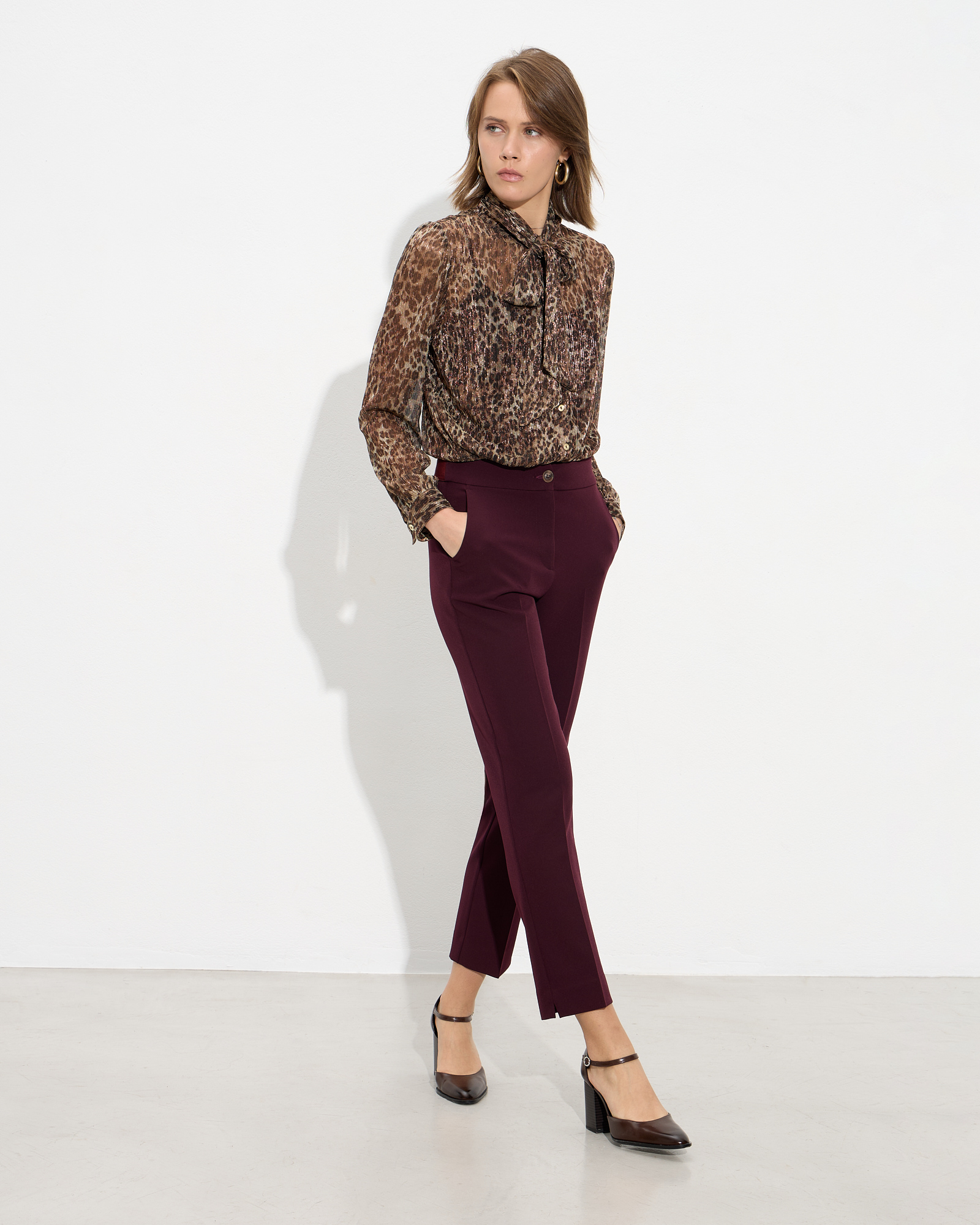 Παντελόνι cigarette ψηλόμεσο με λάστιχο στο πίσω μέρος, κλείσιμο με φερμουάρ και κουμπί, πλαϊνές τσέπες, σε κανονική εφαρμογή