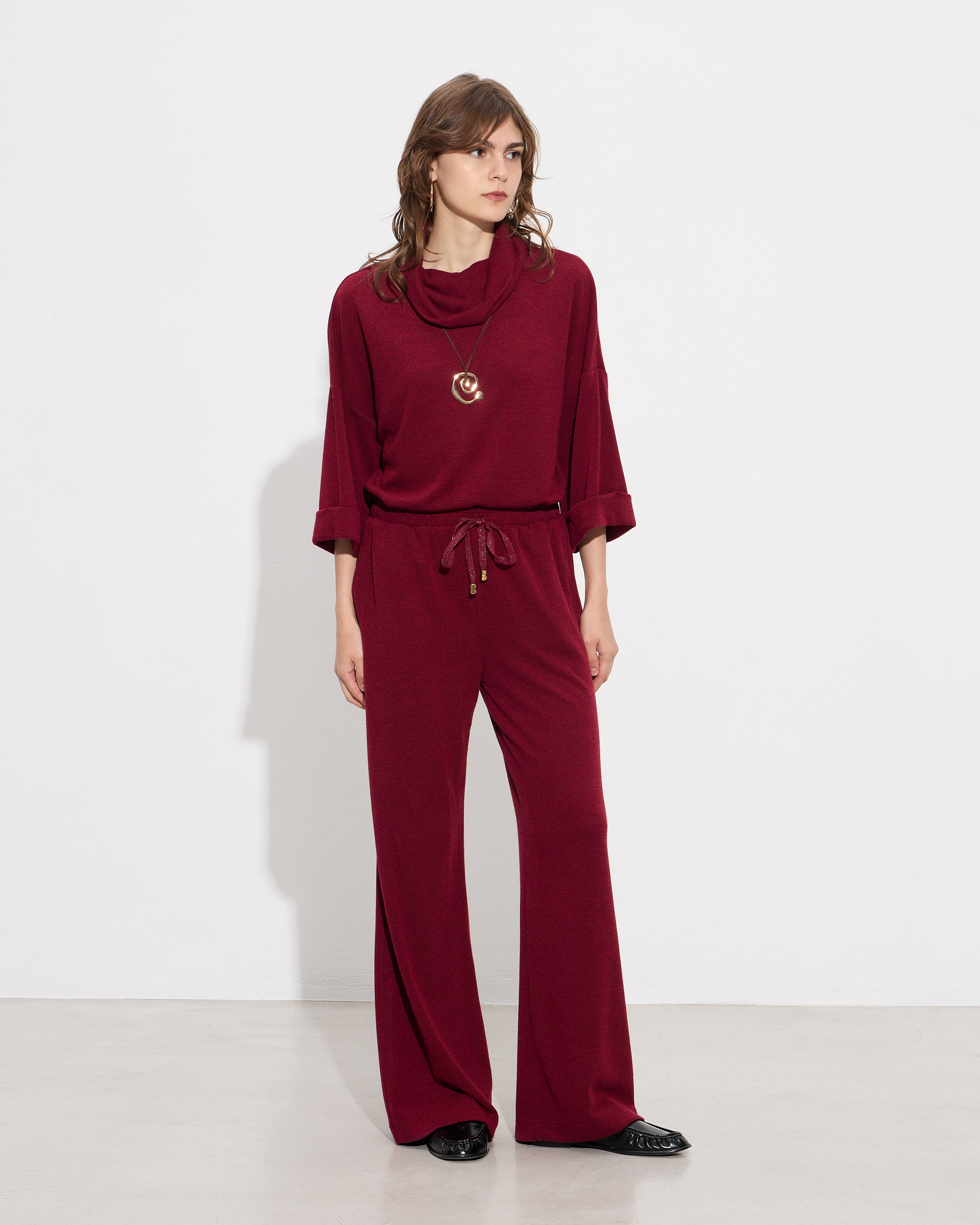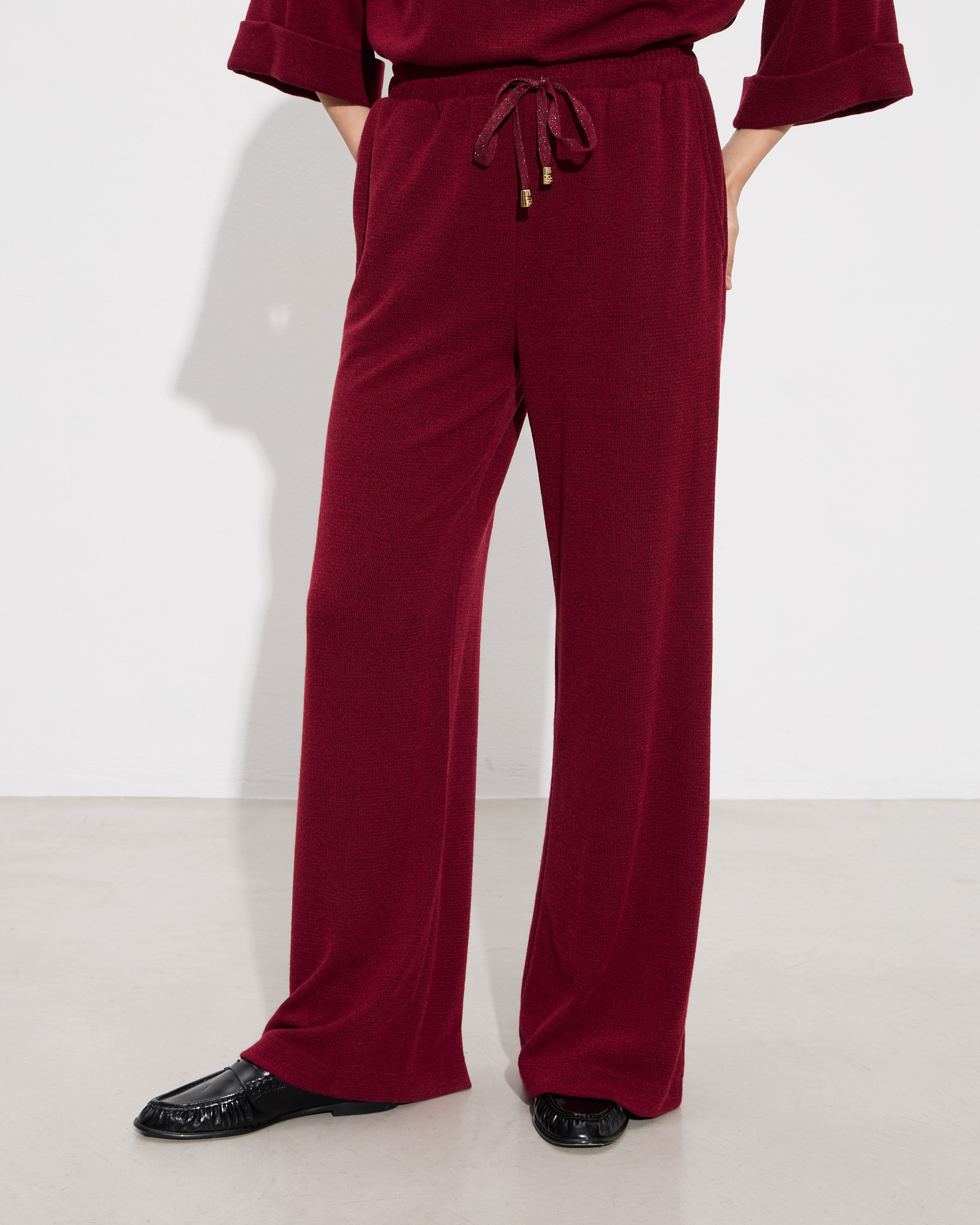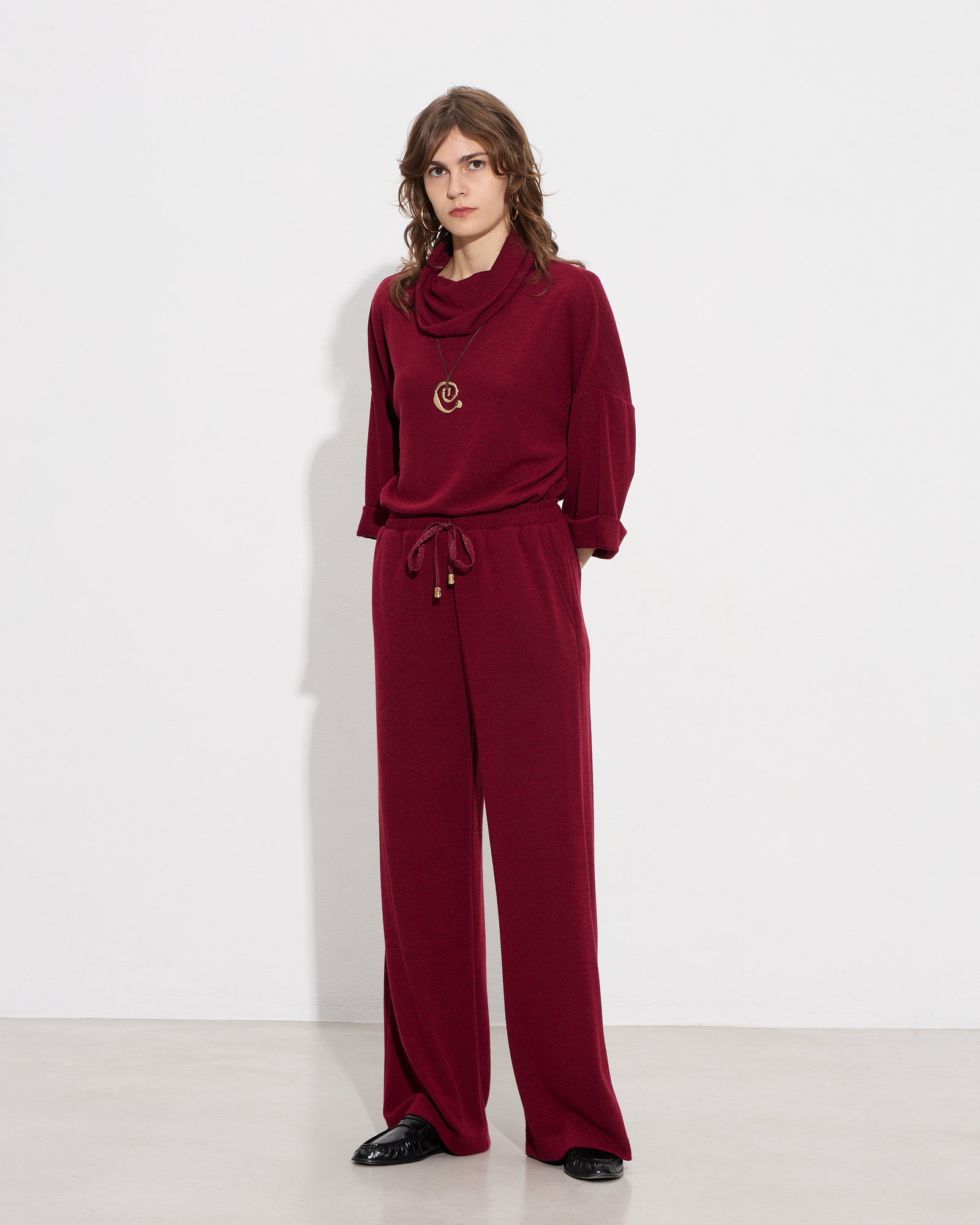 Παντελόνα πλεκτή με λάστιχο στη μέση με κορδόνι, τσέπες στο πλάι, σε ίσια γραμμή, κανονική εφαρμογή