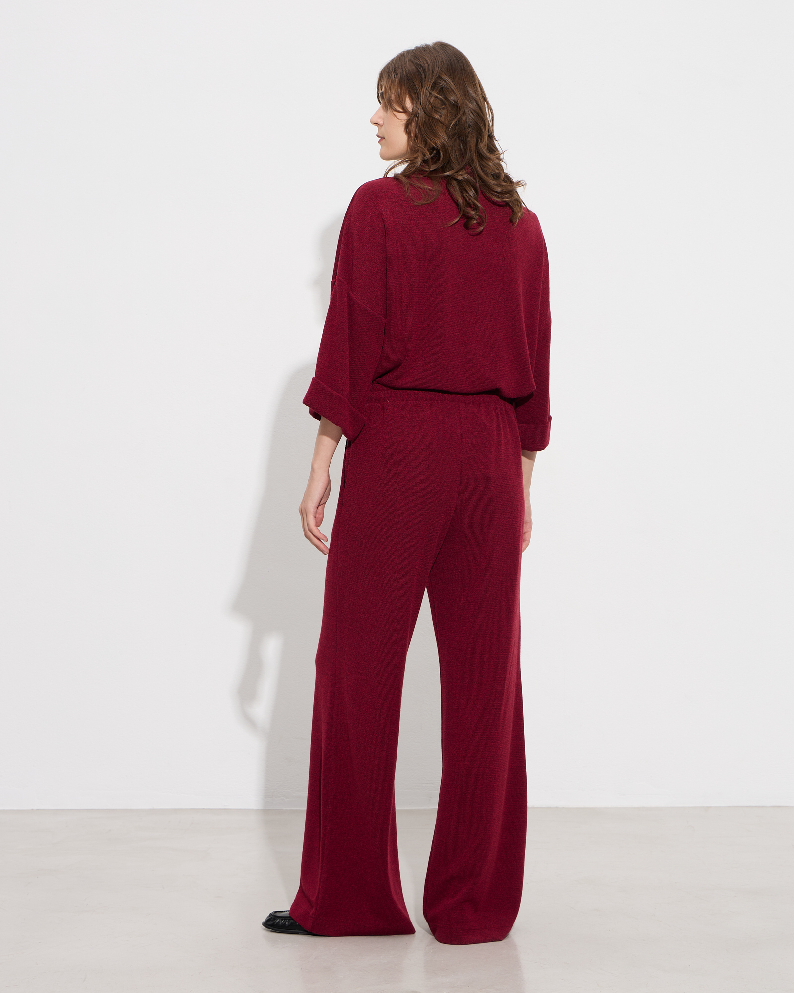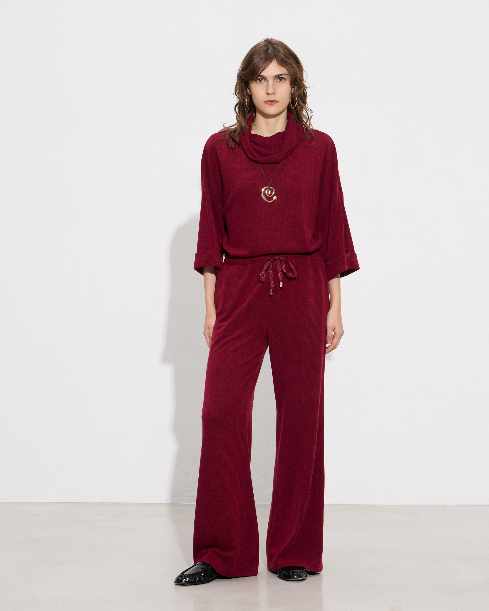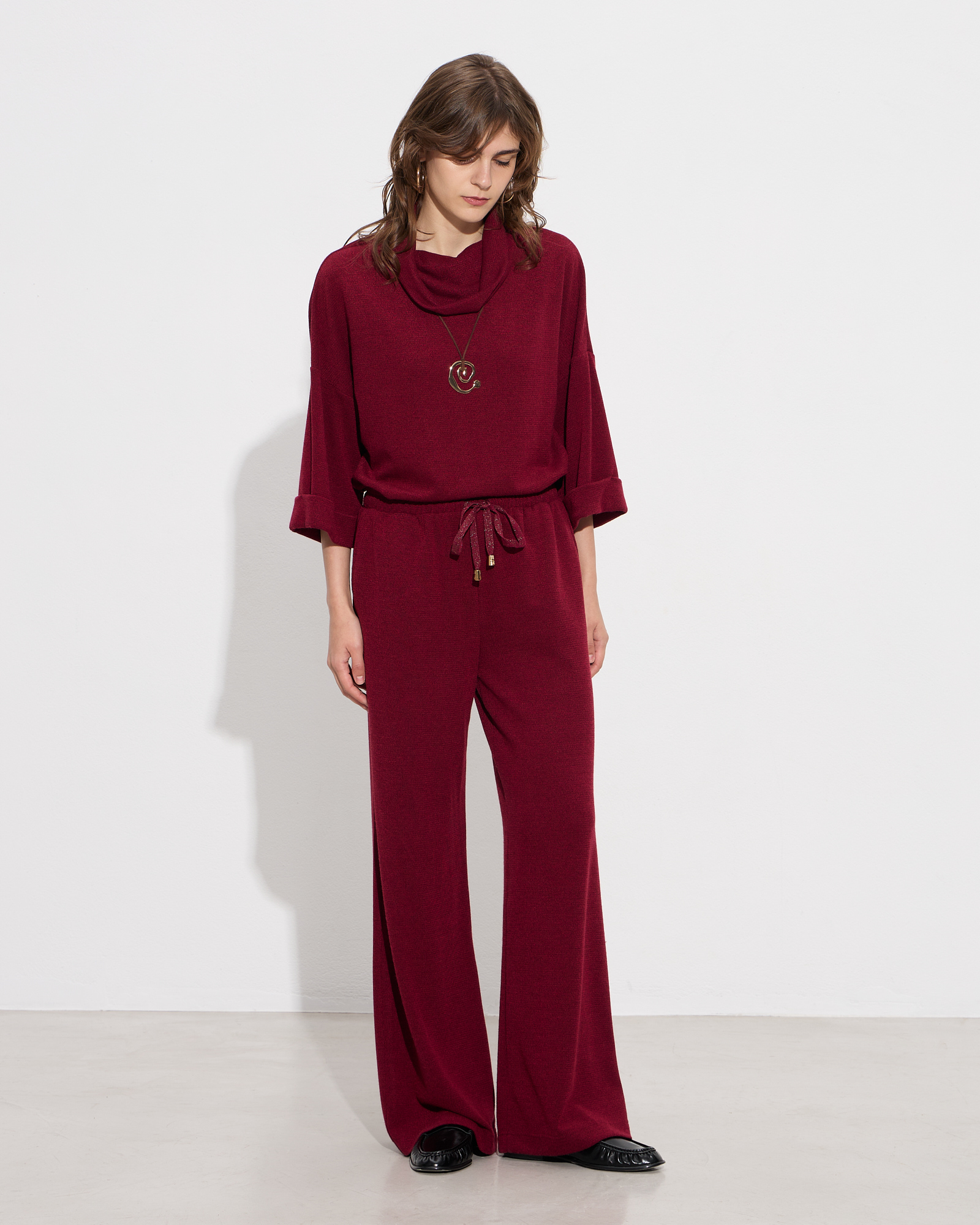 Παντελόνα πλεκτή με λάστιχο στη μέση με κορδόνι, τσέπες στο πλάι, σε ίσια γραμμή, κανονική εφαρμογή