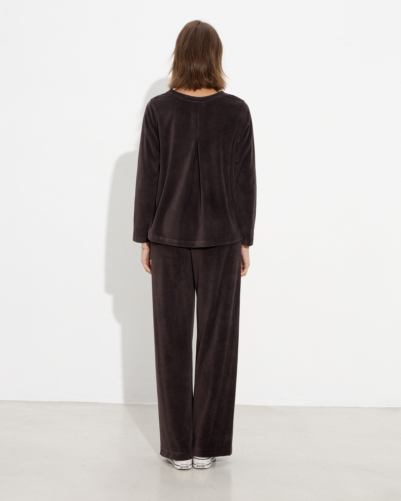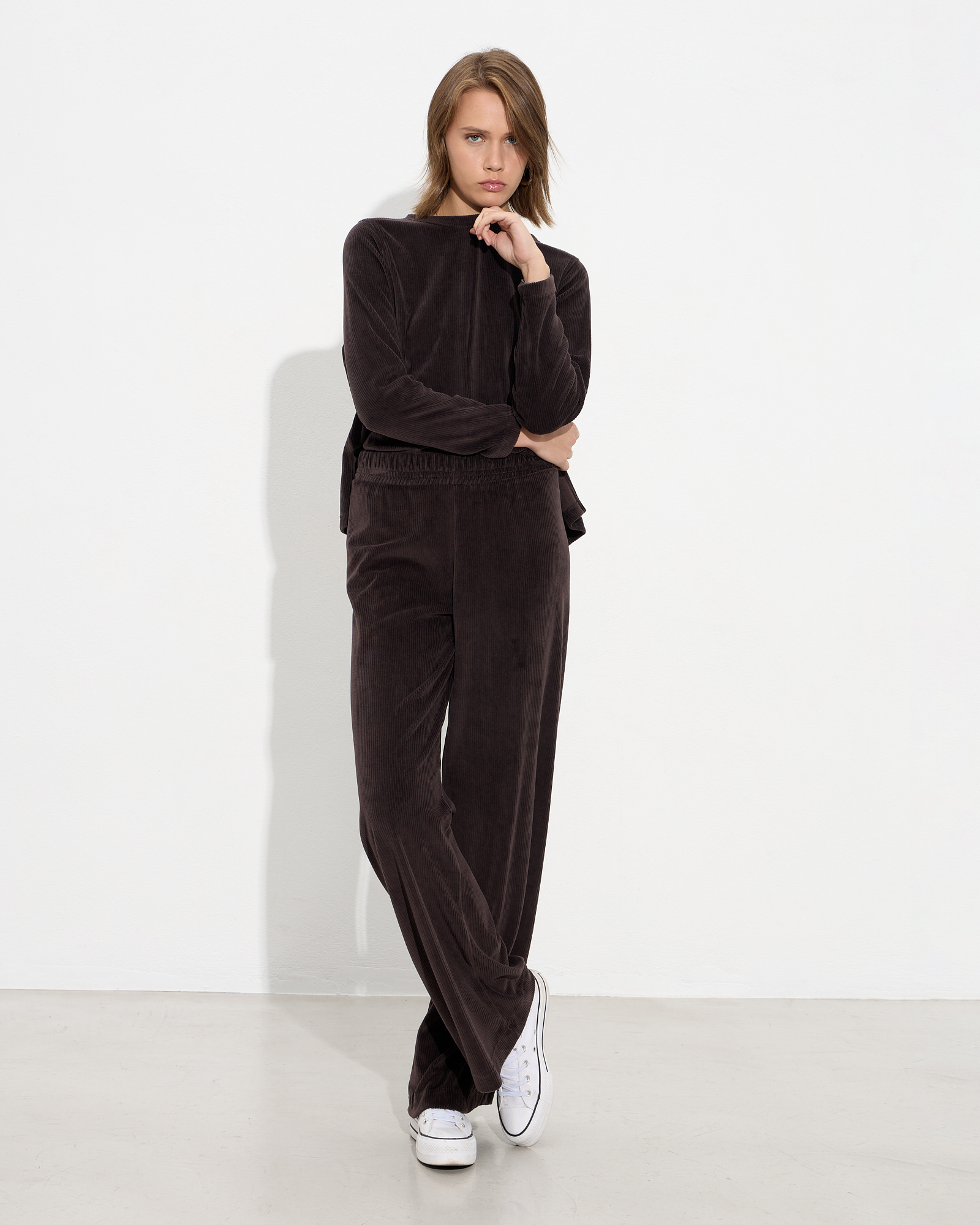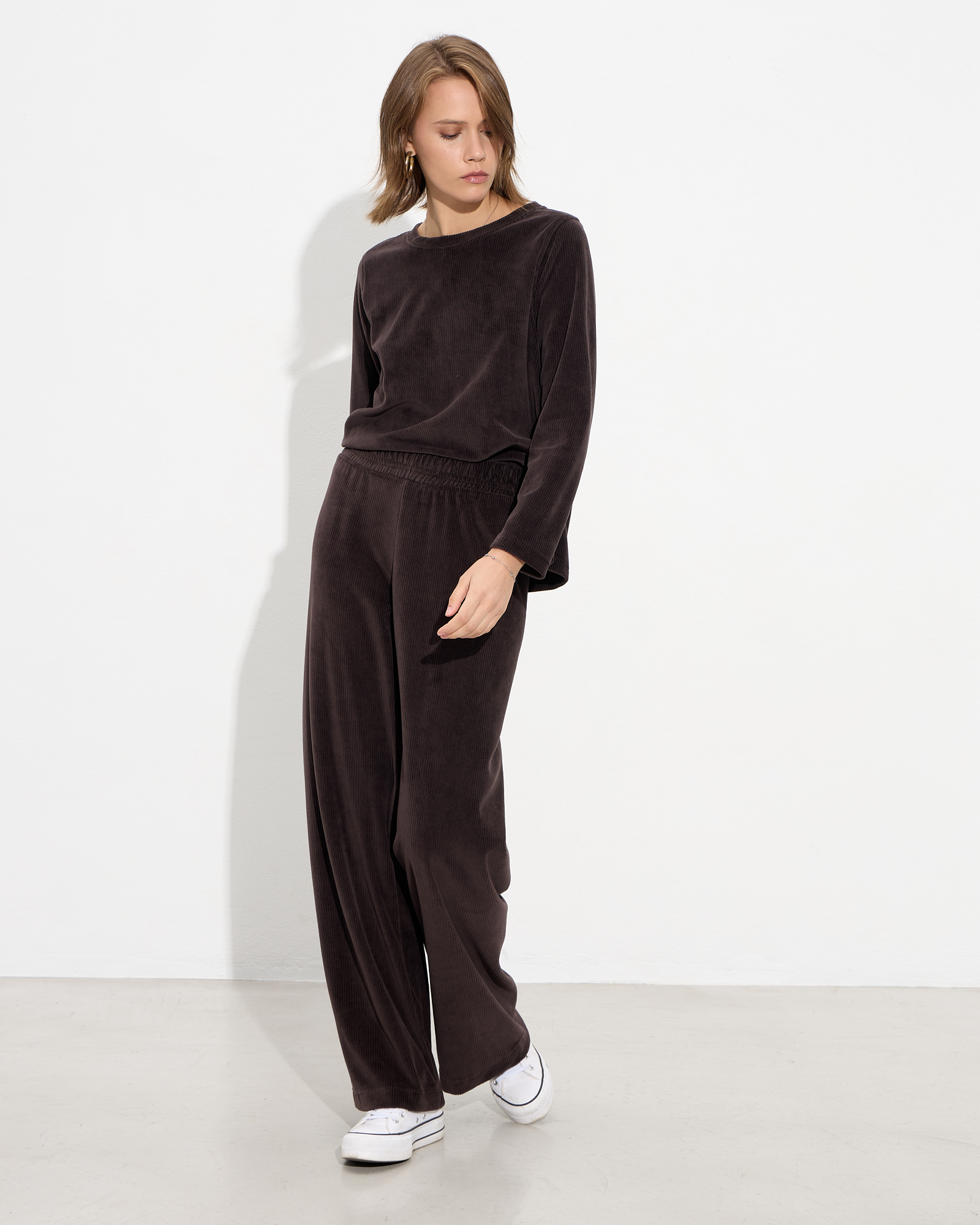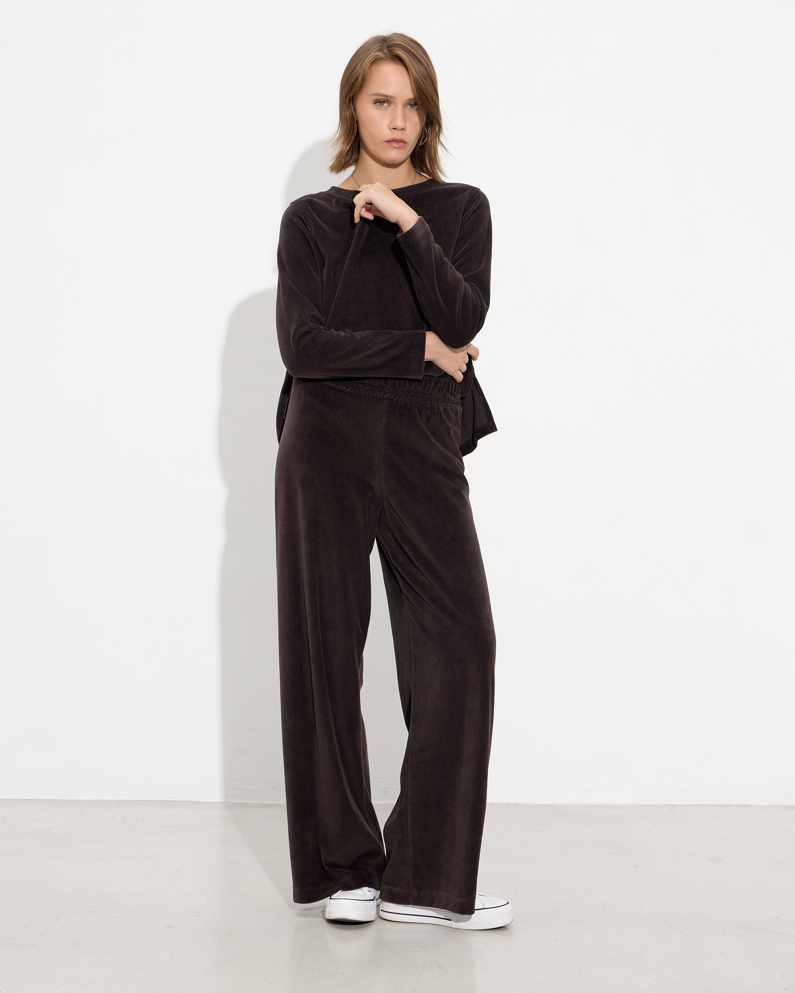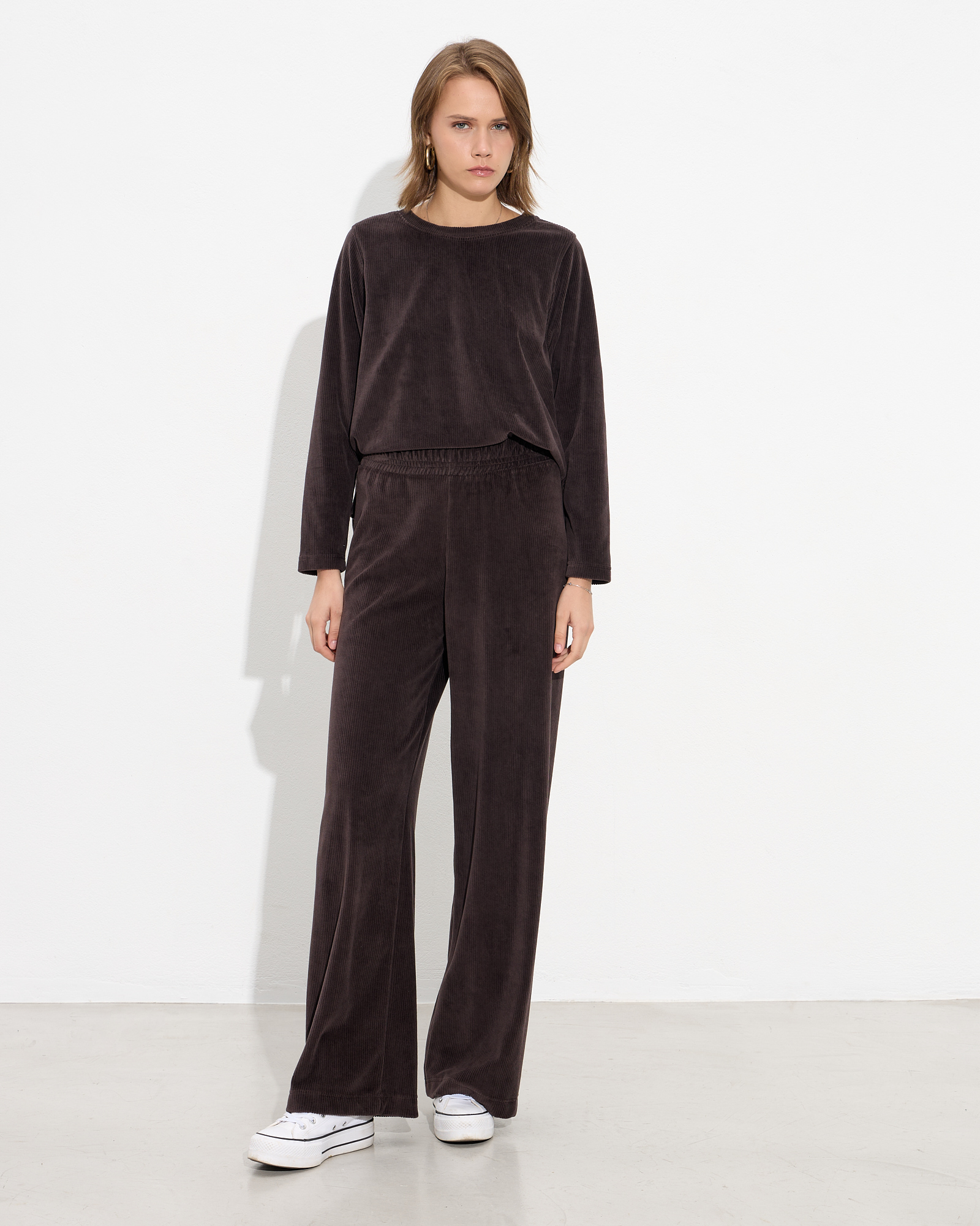 Παντελόνα κοτλέ ψηλόμεση με λάστιχο στη μέση, wide leg, μαλακό βελούδινο ύφασμα, σε κανονική γραμμή