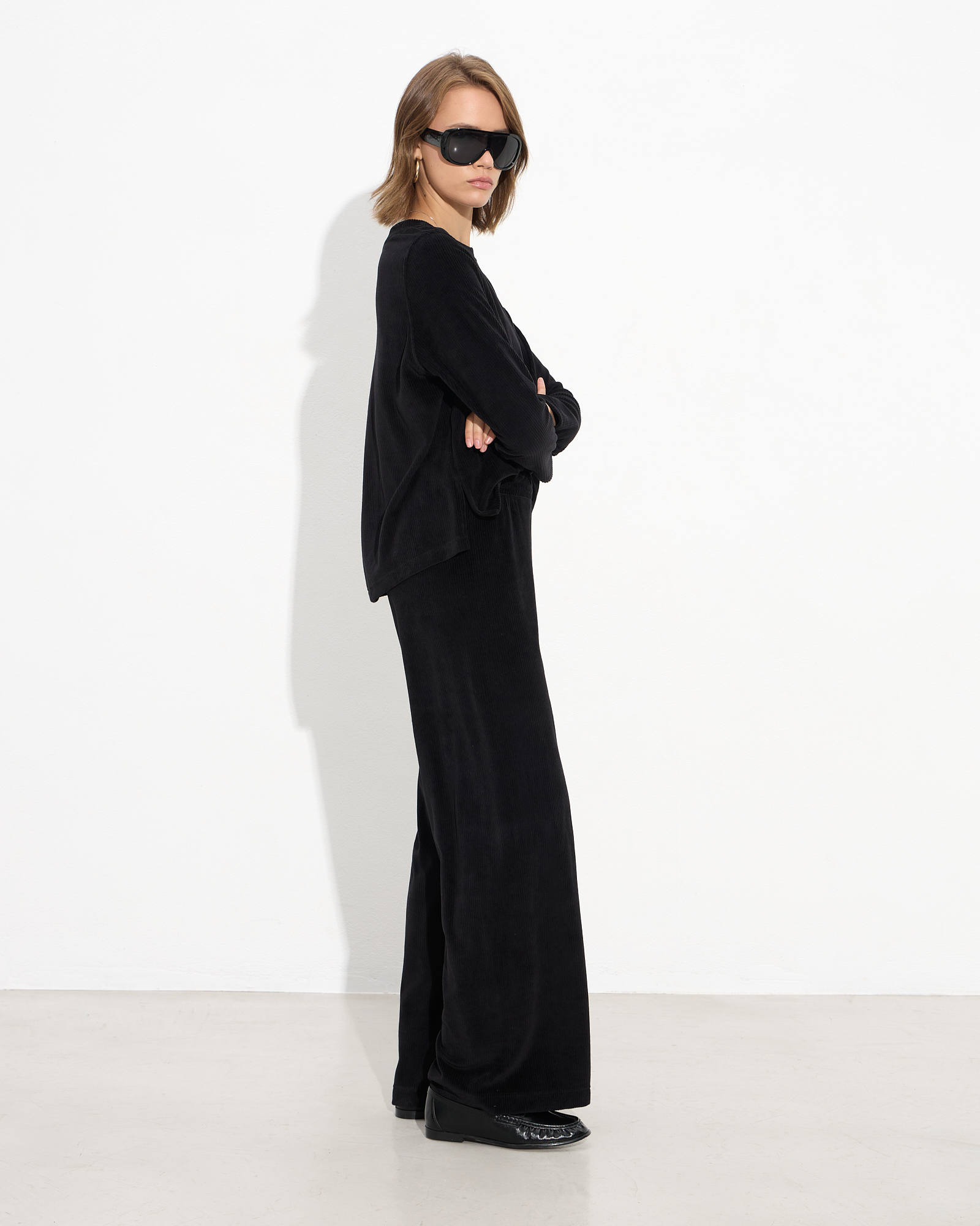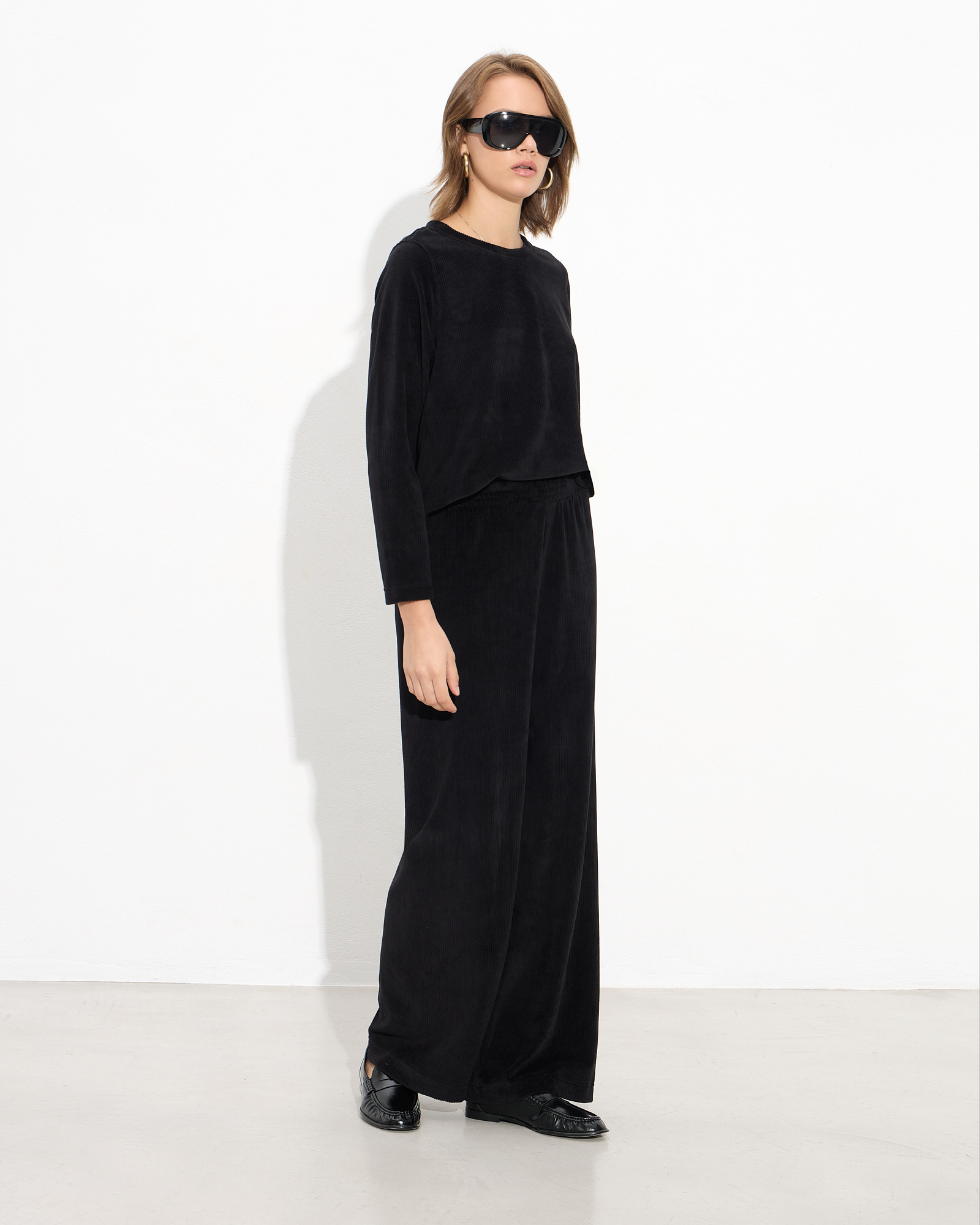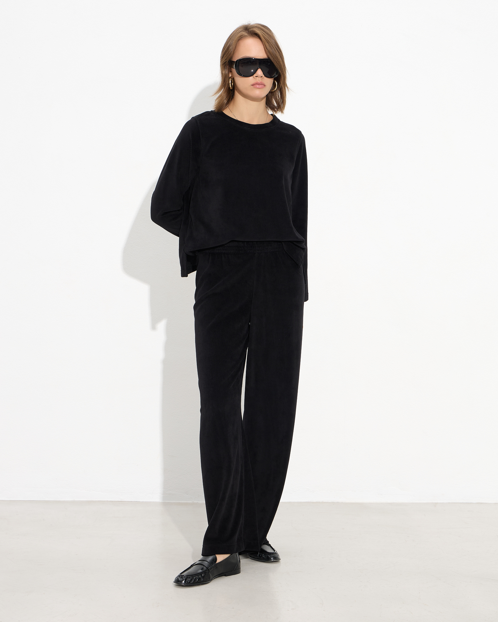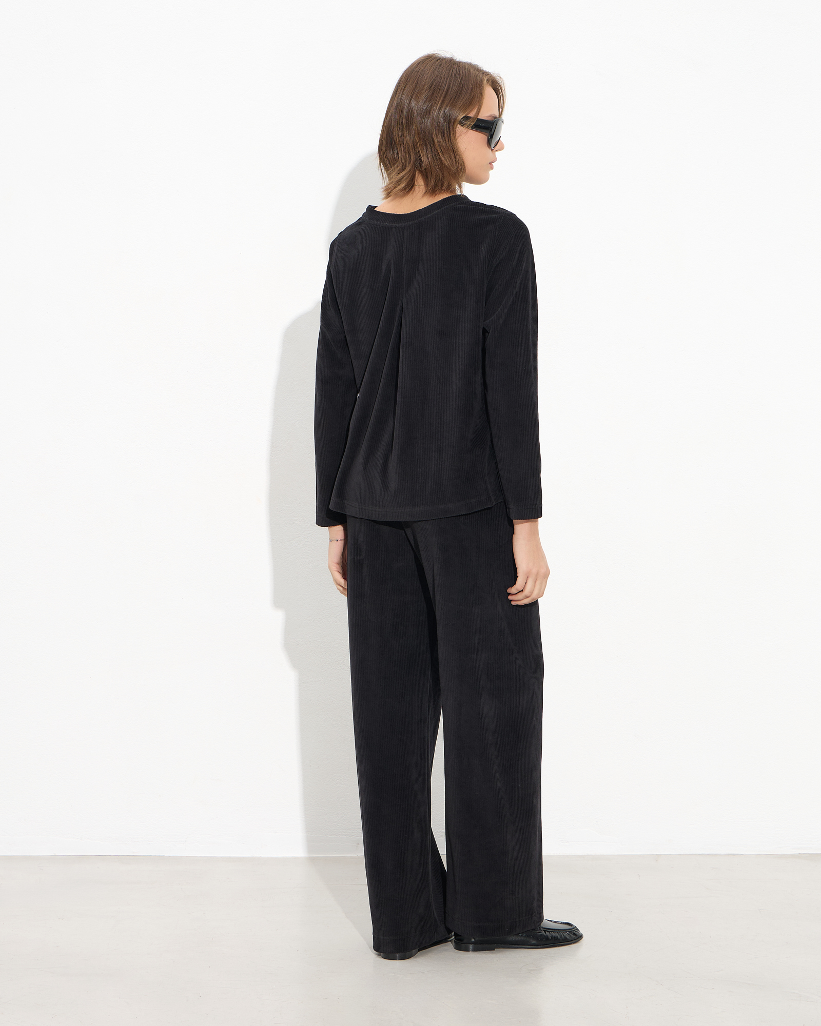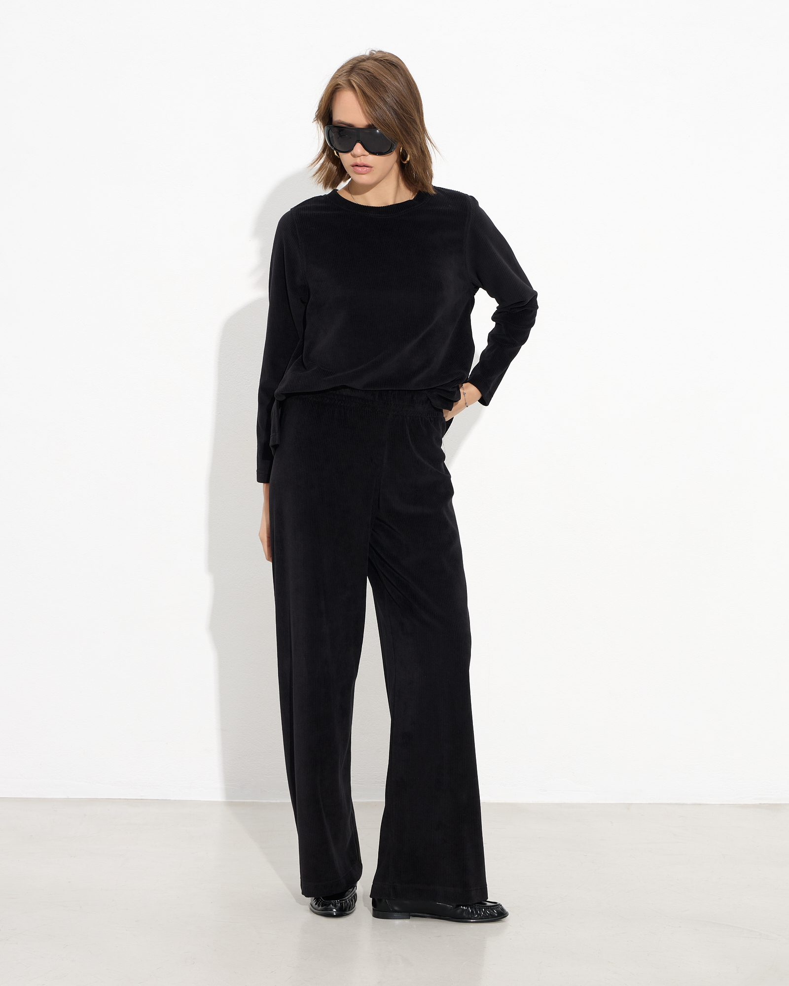 Παντελόνα κοτλέ ψηλόμεση με λάστιχο στη μέση, wide leg, μαλακό βελούδινο ύφασμα, σε κανονική γραμμή