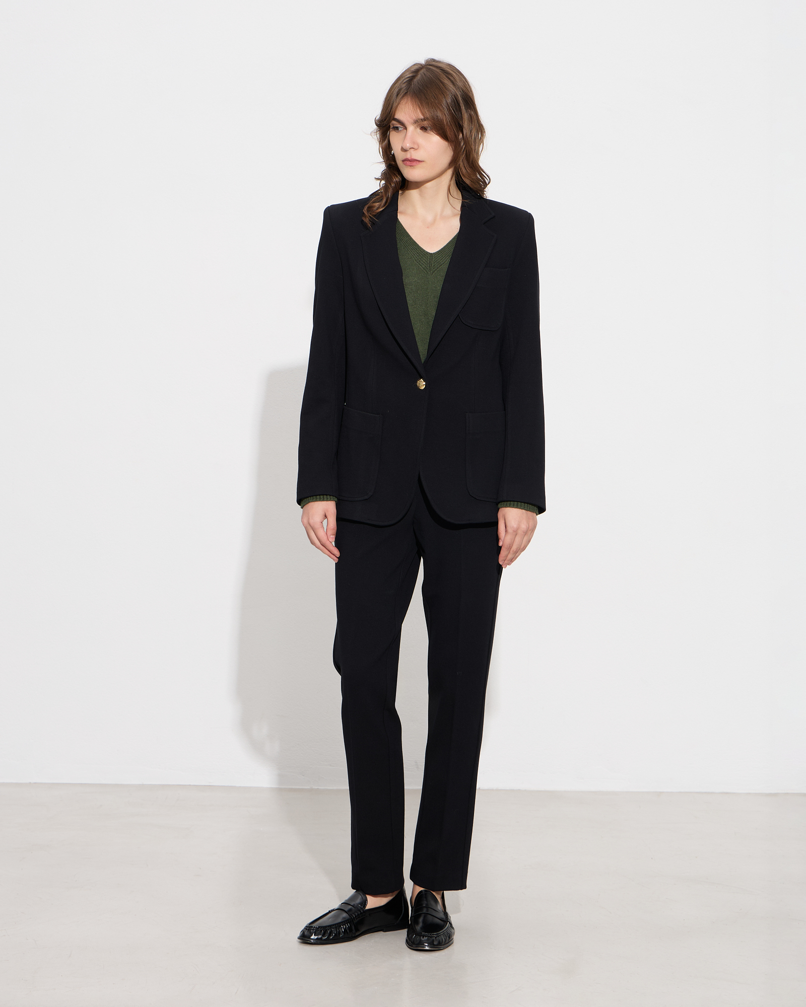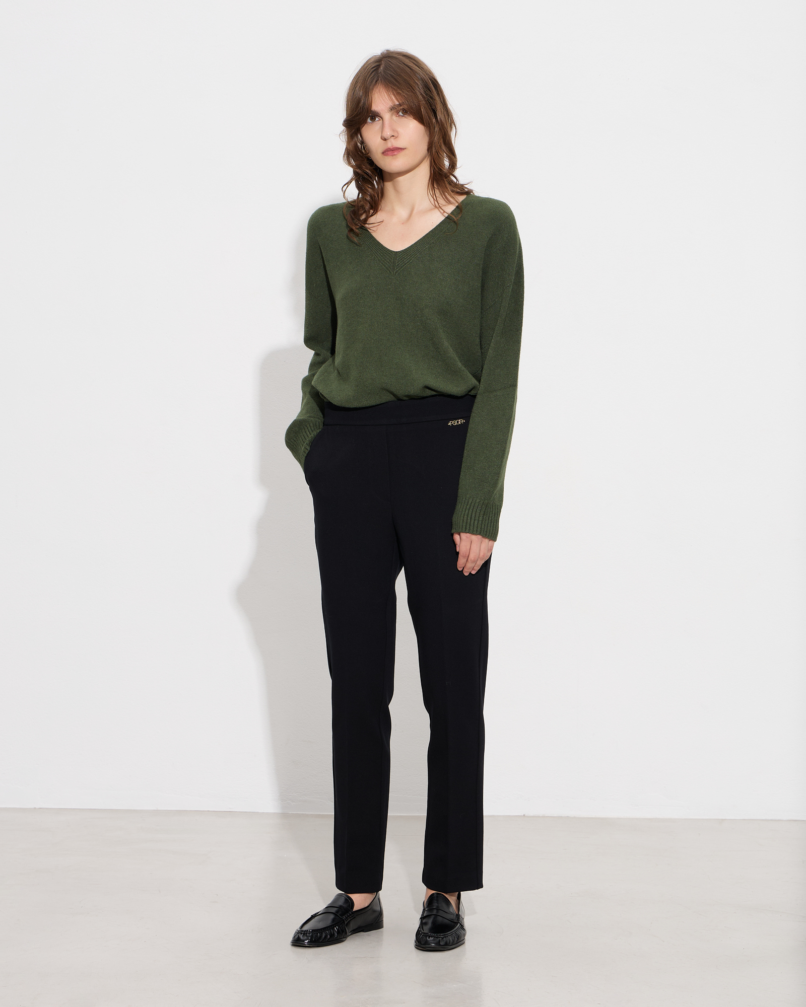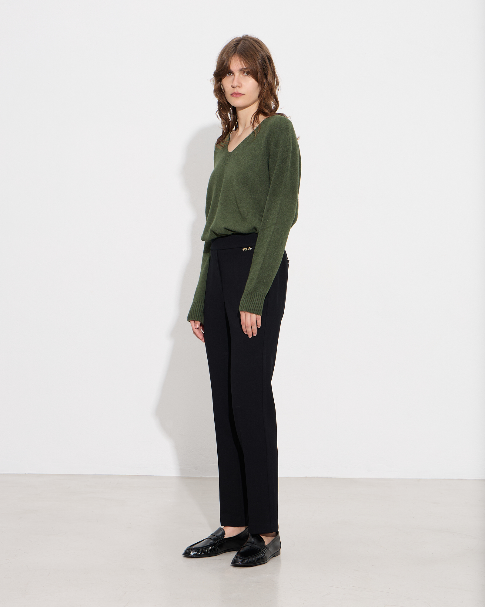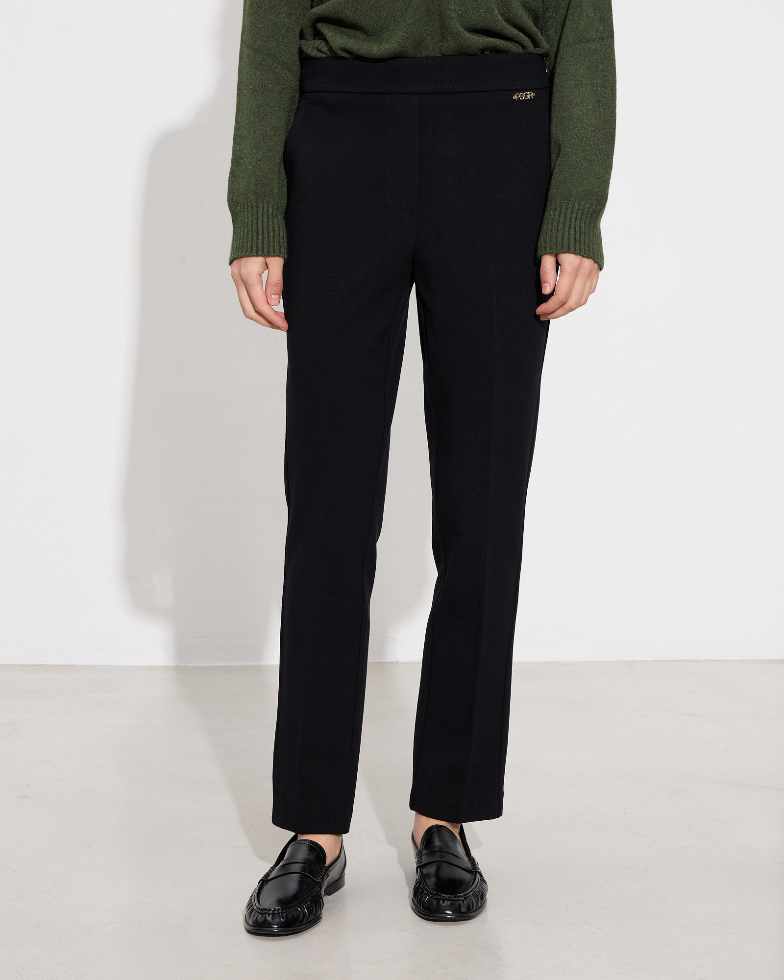 Παντελόνι cigarette ψηλόμεσο με λάστιχο στη μέση, πλαϊνές τσέπες, μεταλλικό λογότυπο "PSGR" σε ελαστικό πανί, κανονική εφαρμογή