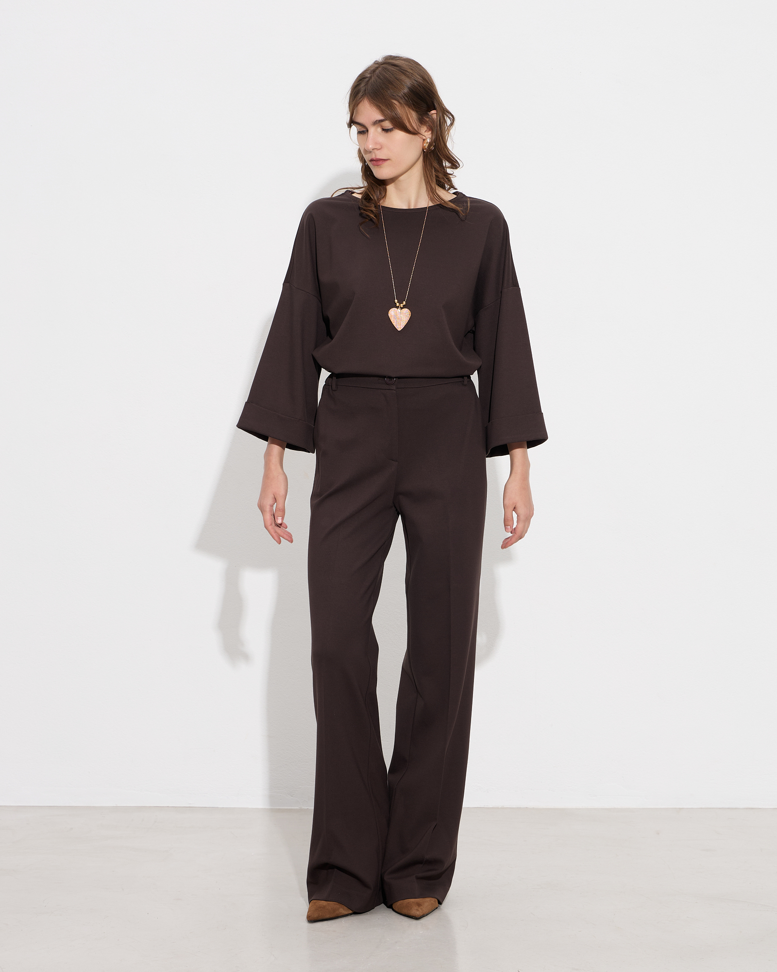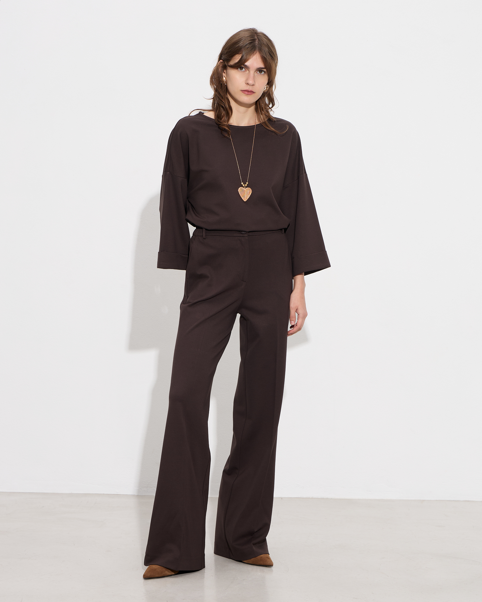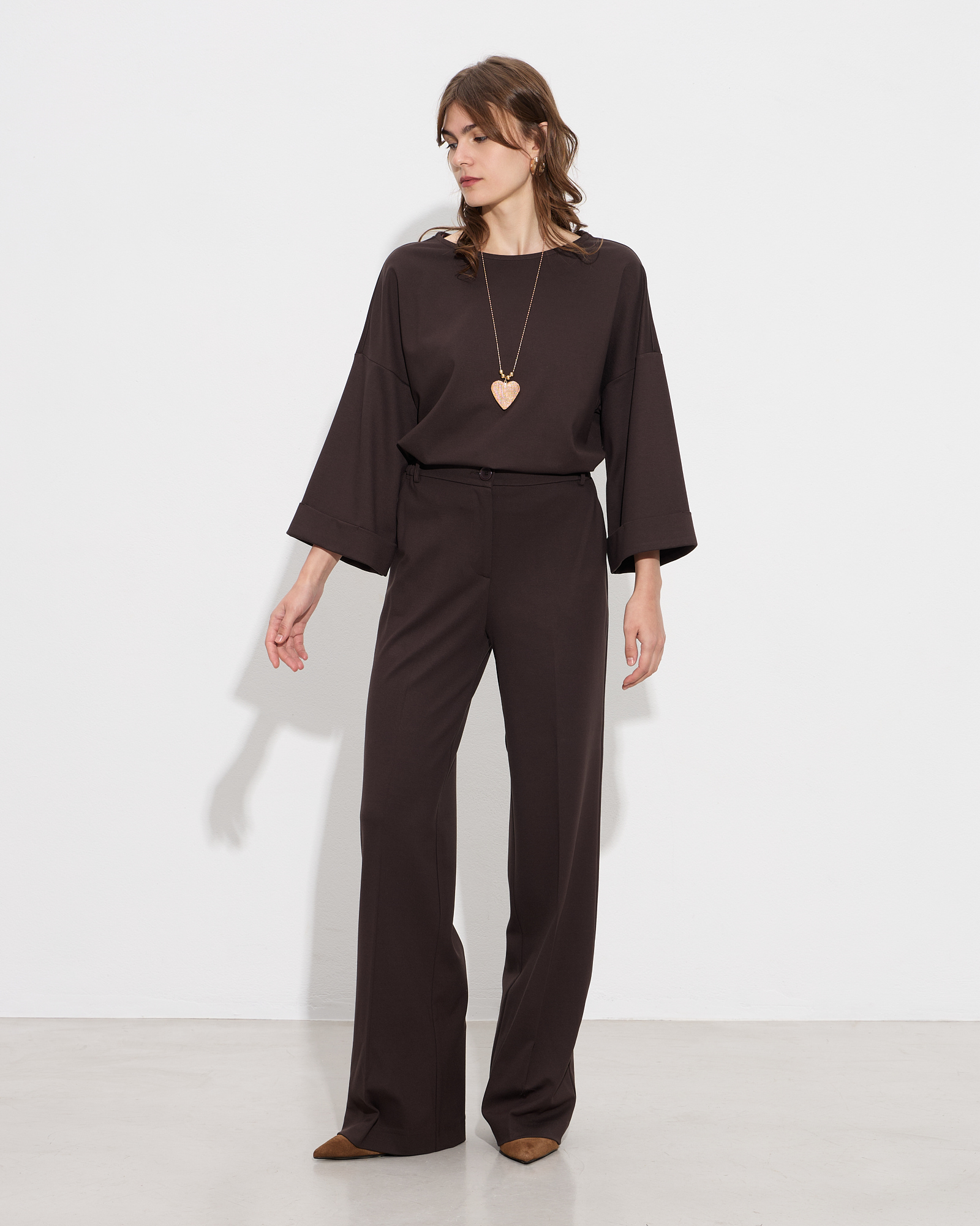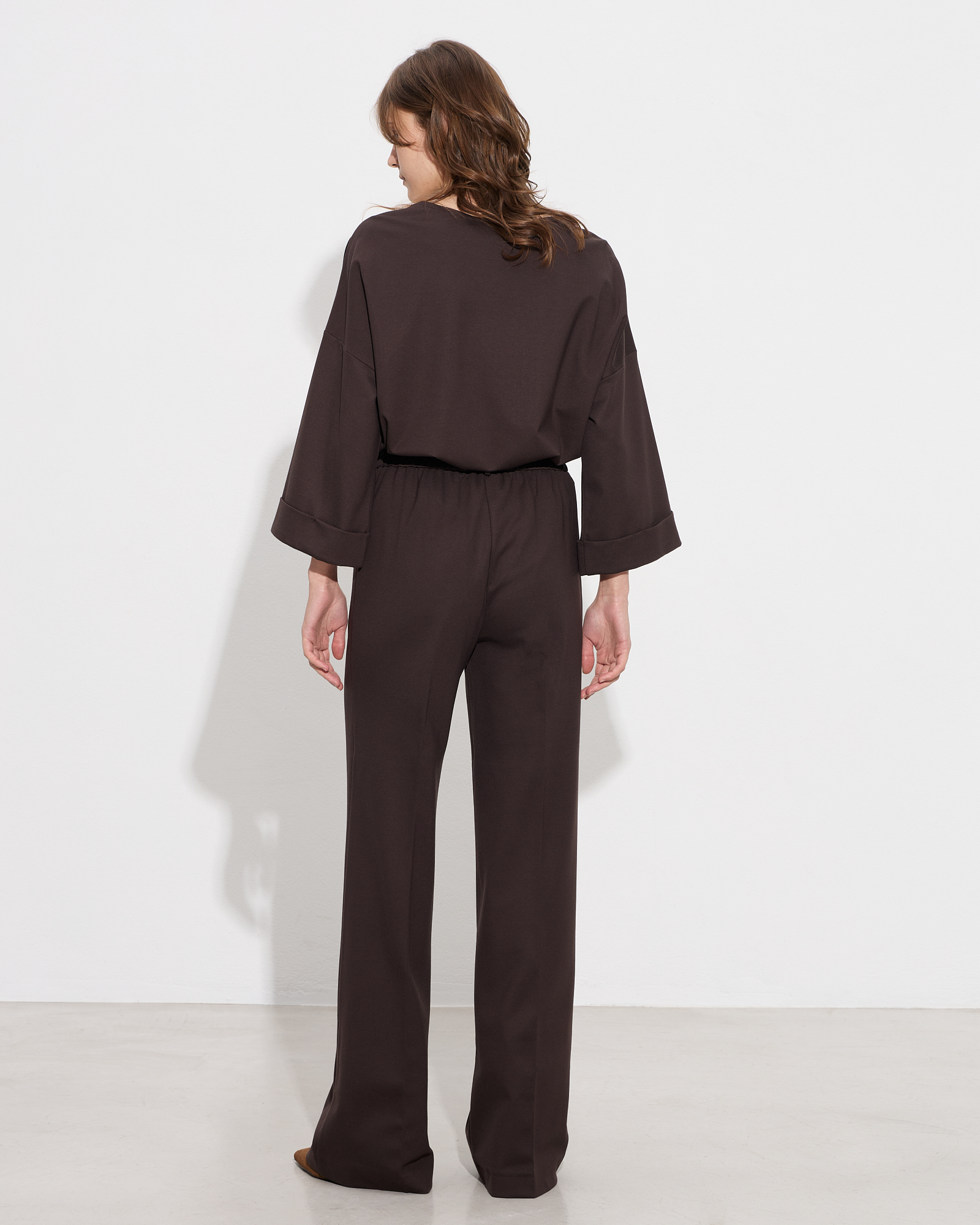 Παντελόνι με λάστιχο, wide leg, κλείσιμο με φερμουάρ και κουμπί, πλαϊνές τσέπες, μαλακό βισκόζ ύφασμα, κανονική εφαρμογή