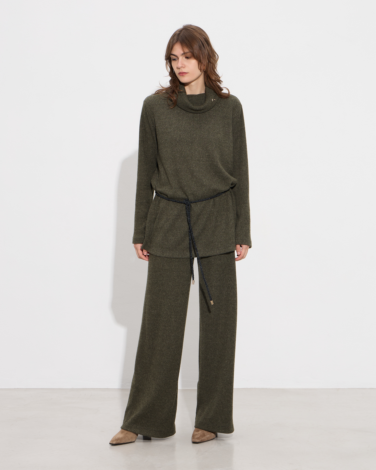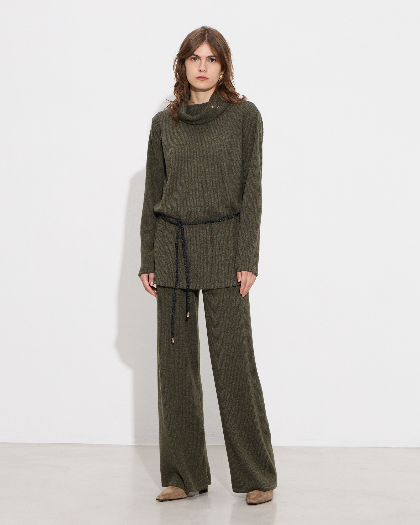 Παντελόνα ριπ ψηλόμεση με λάστιχο στη μέση, σε κανονική γραμμή