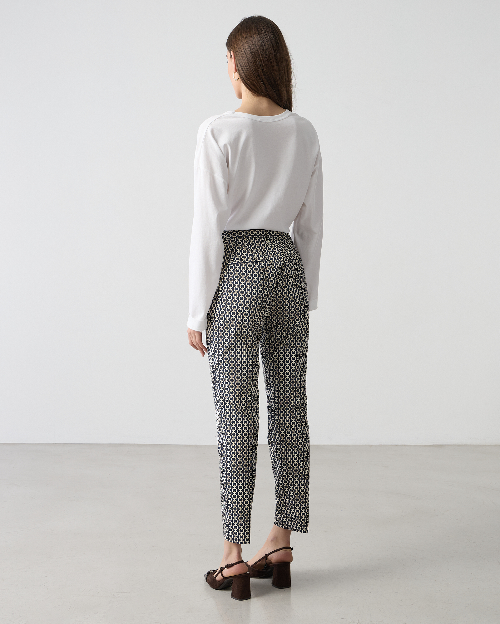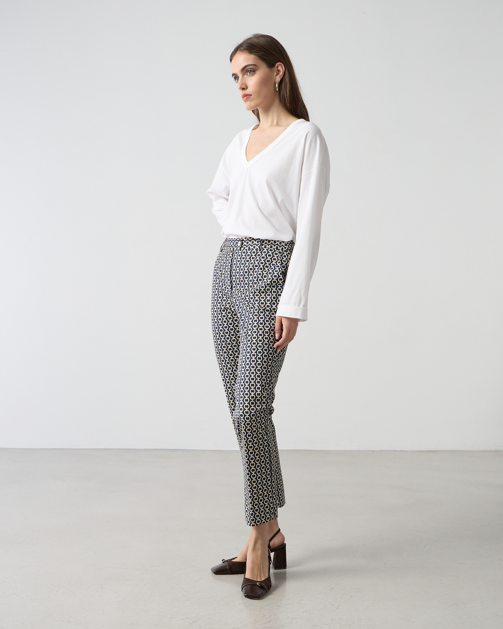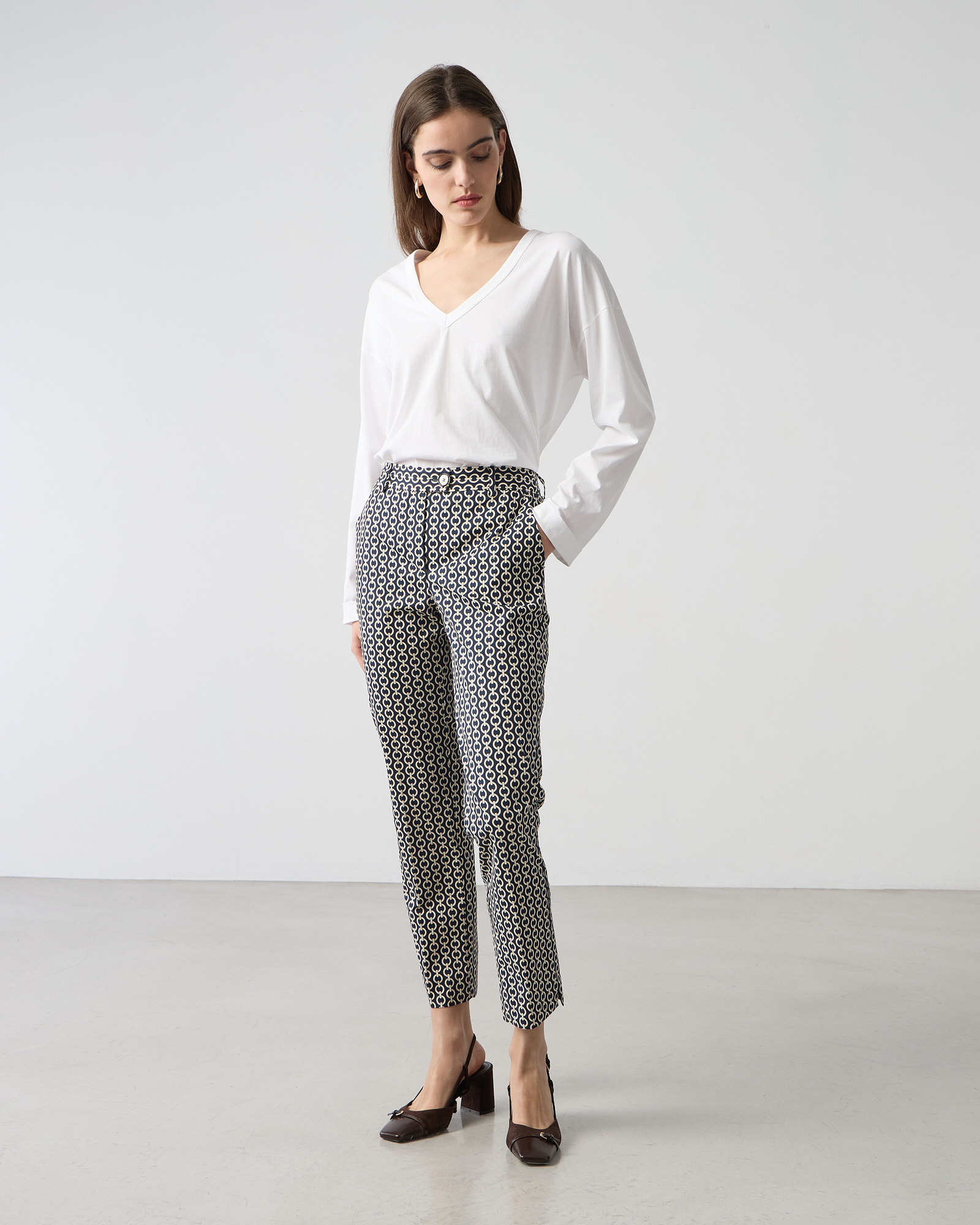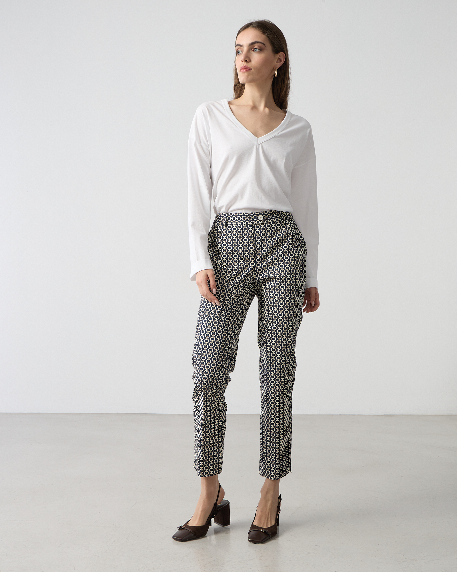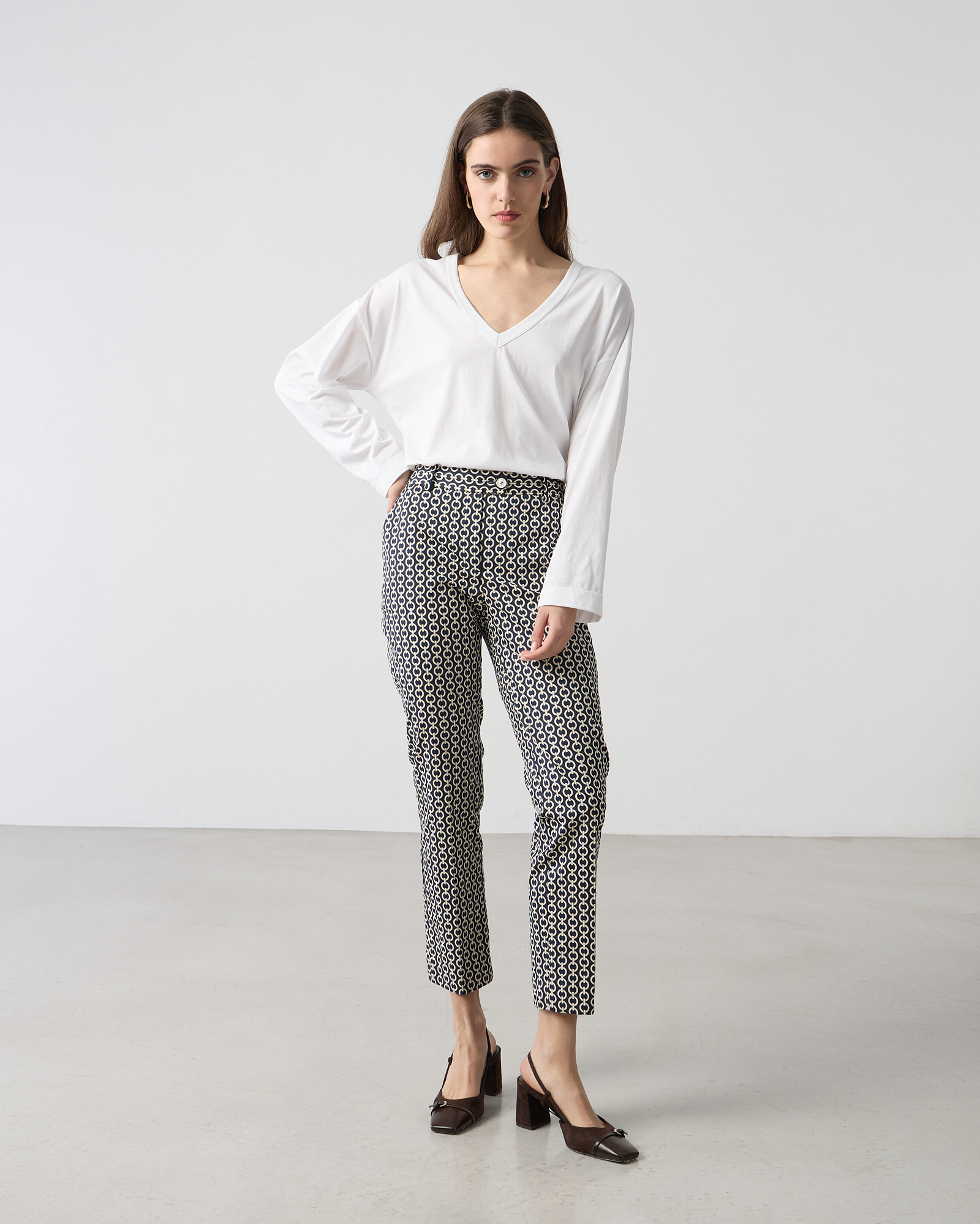 Παντελόνι cigarette εμπριμέ, κλείσιμο μπροστά με κουμπί, βαμβακερό, σε κανονική γραμμή
