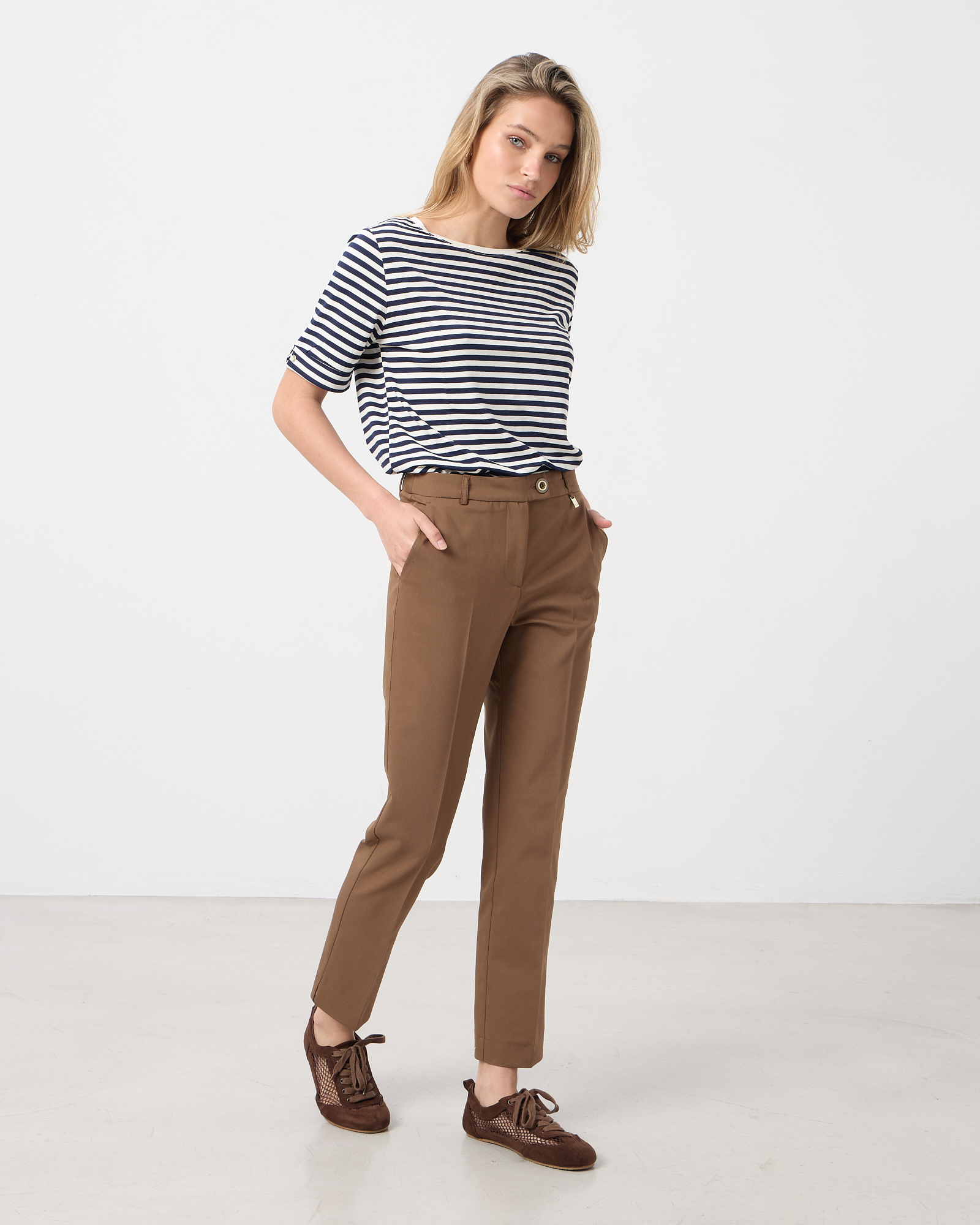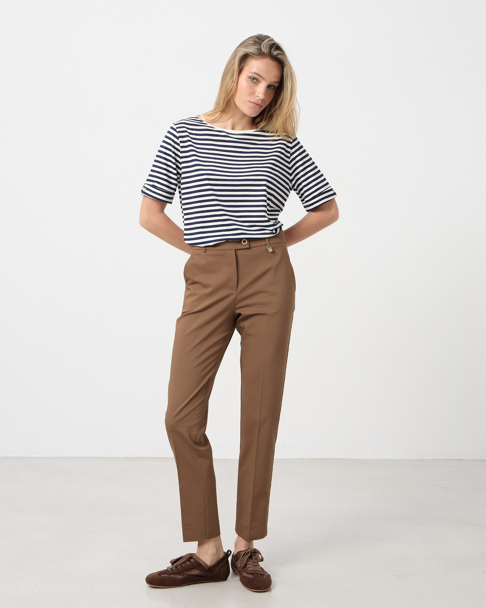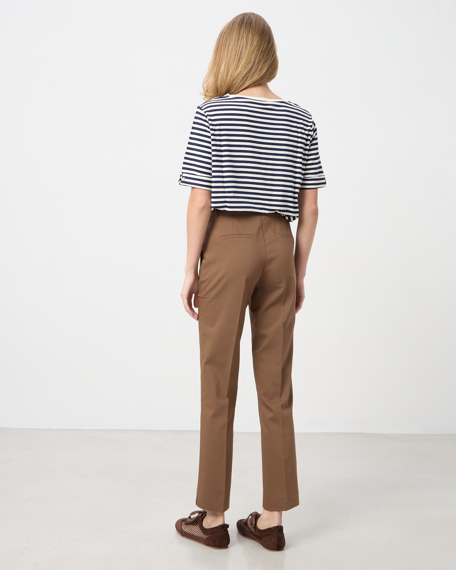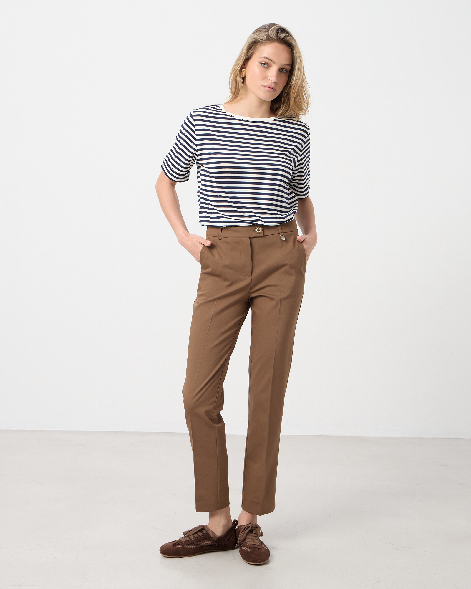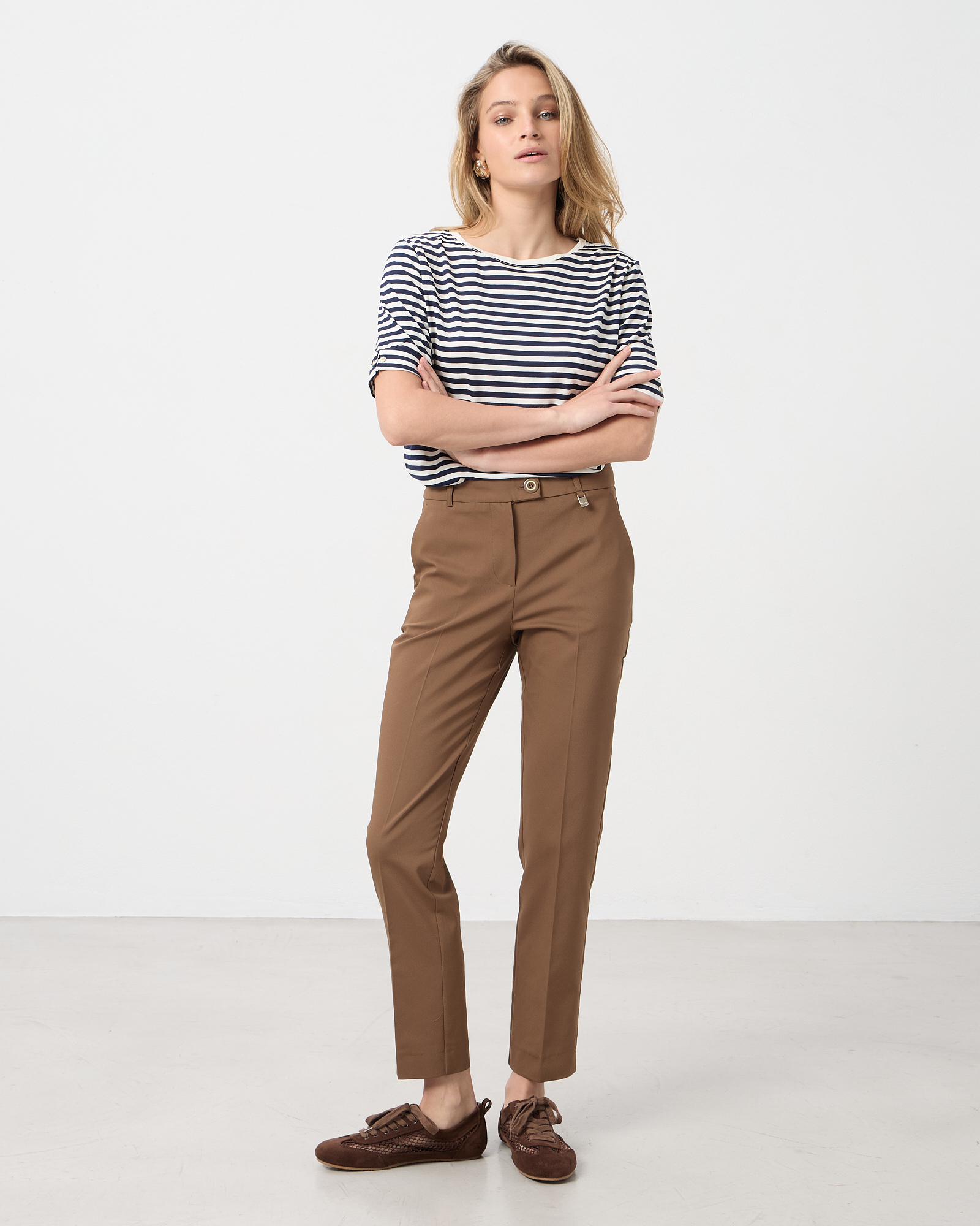 Παντελόνι cigarette σε υφή καπαρντίνα, κλείσιμο μπροστά με φερμουάρ και κουμπί, με πλαΐνές τσέπες, σε κανονική γραμμή