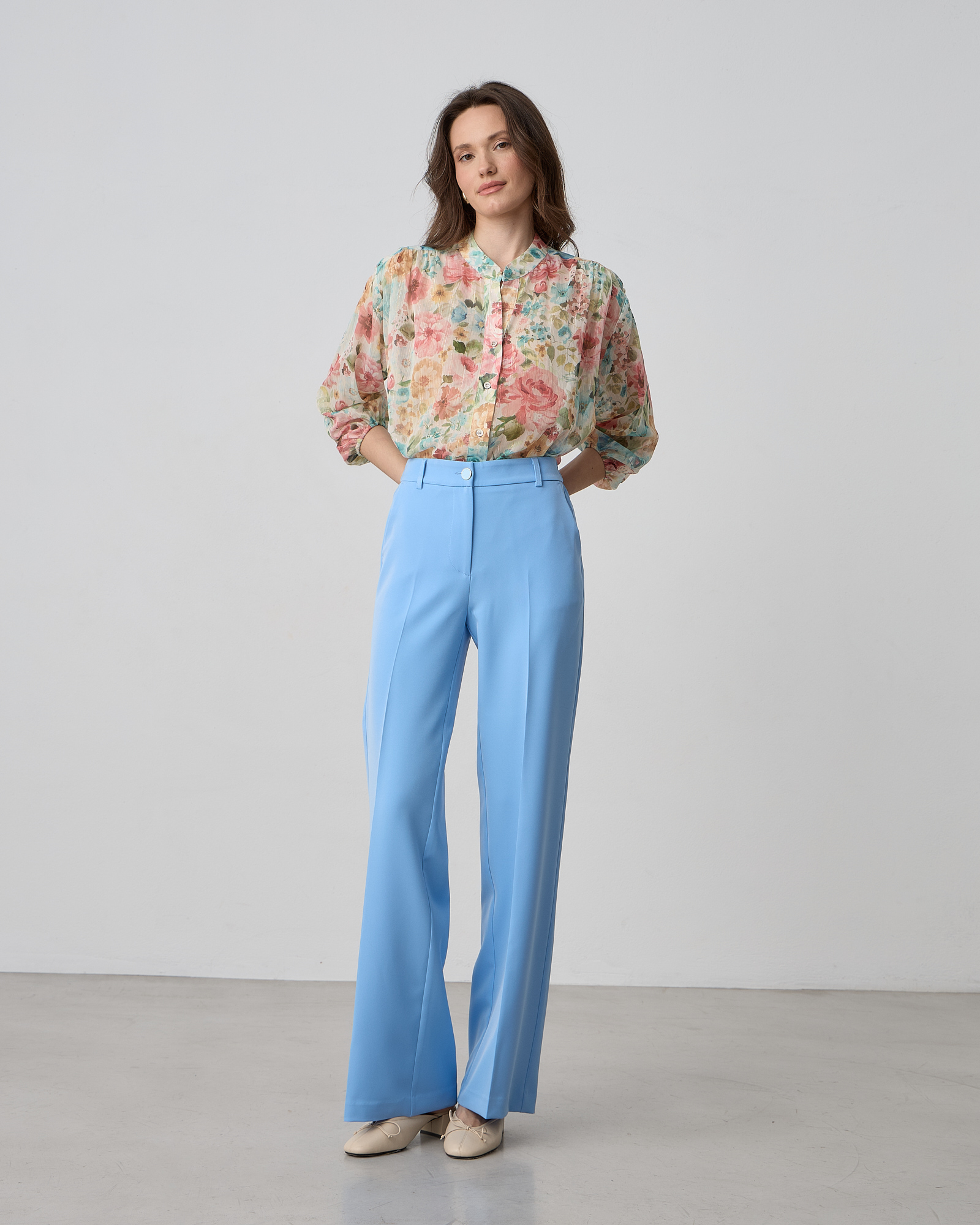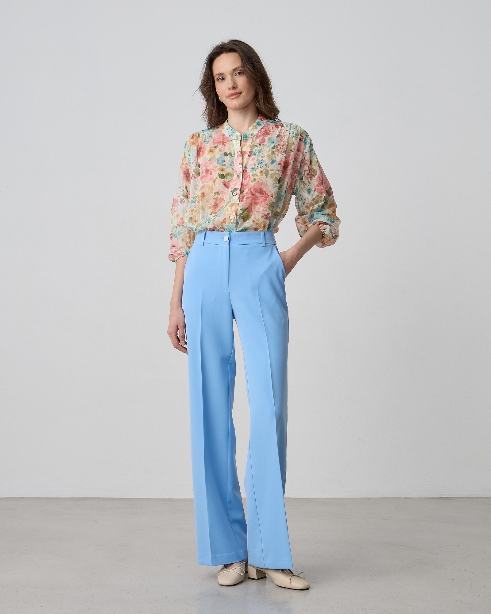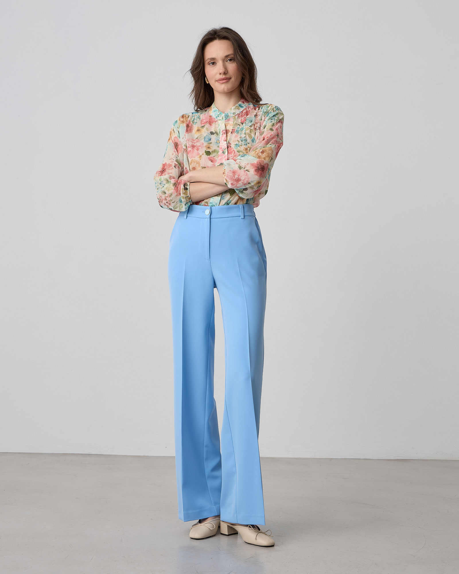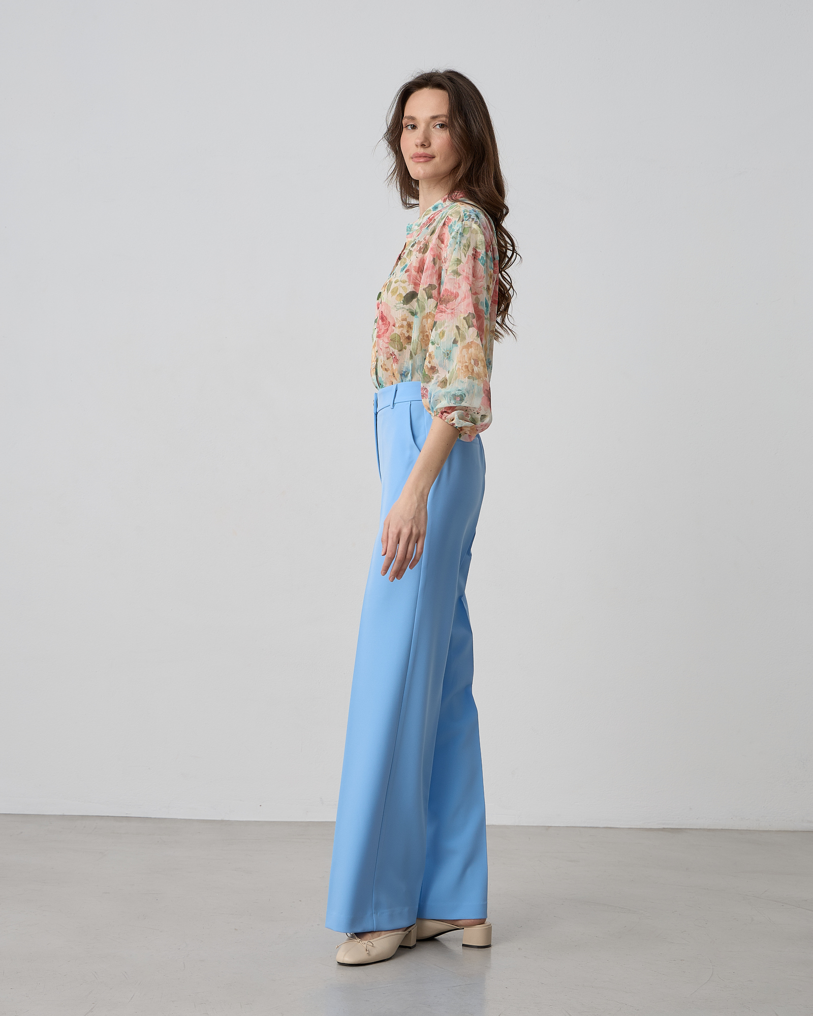 Παντελόνα ψηλόμεση με λάστιχο στη μέση, κλείσιμο μπροστά με φερμουάρ και κουμπί, τσέπες στο πλάι, κανονικη εφαρμογή