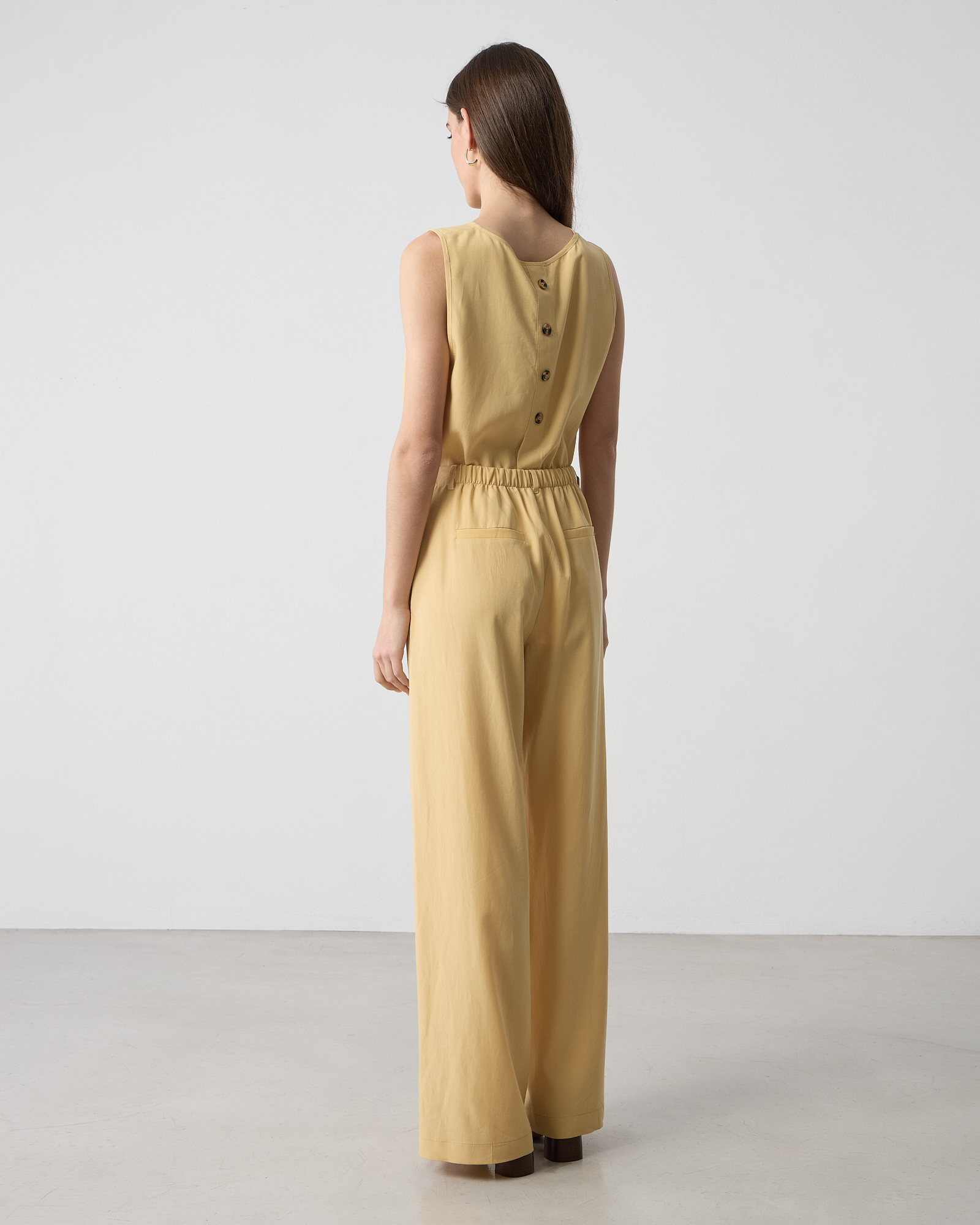 Παντελόνα με λάστιχο στο πίσω μέρος, μέση με θυλάκια ζώνης, κλείσιμο με φερμουάρ και κουμπί, πλαϊνές τσέπες, σε ίσια γραμμή, ύφασμα απο μίξη lyocell, σε κανονική εφαρμογή
