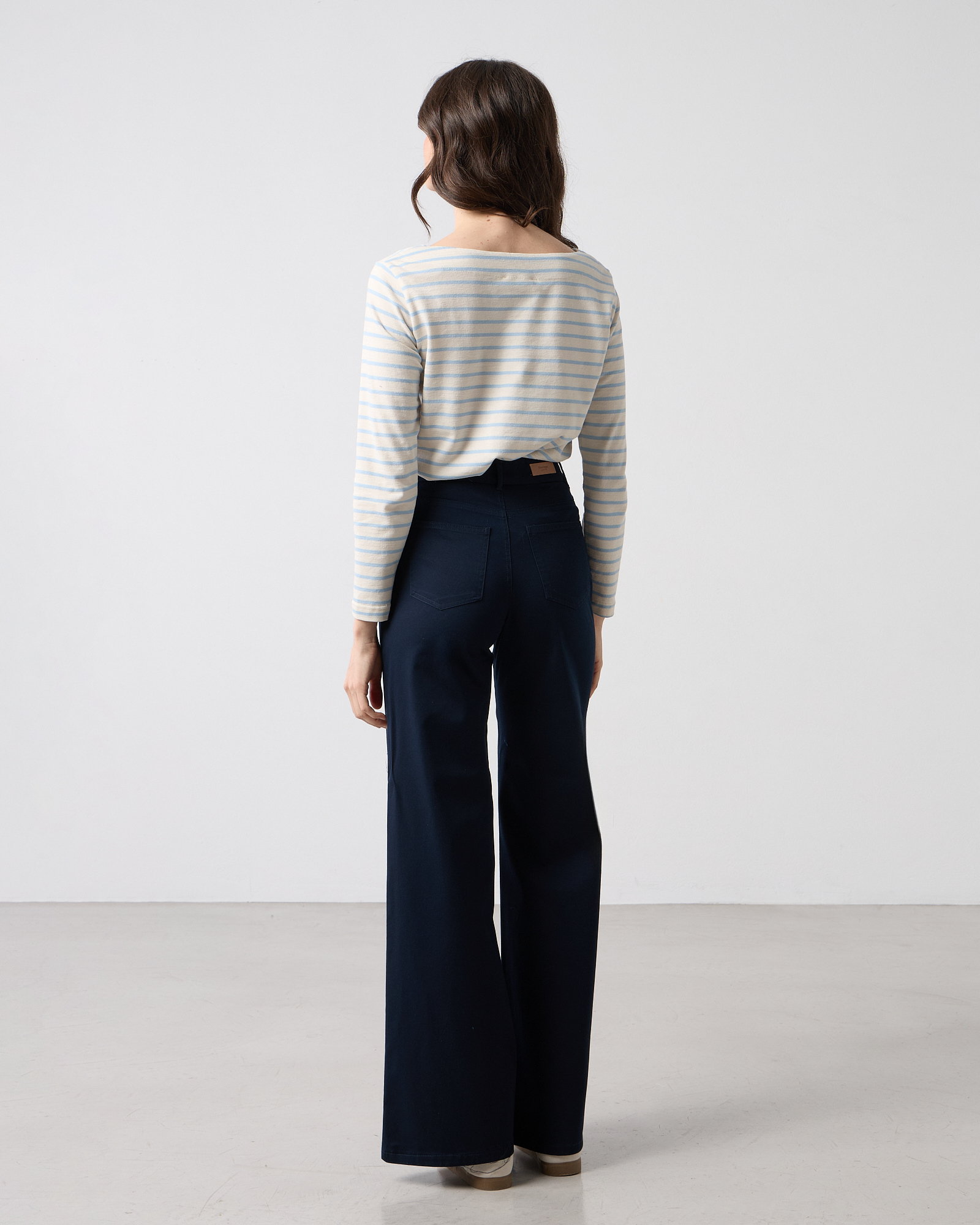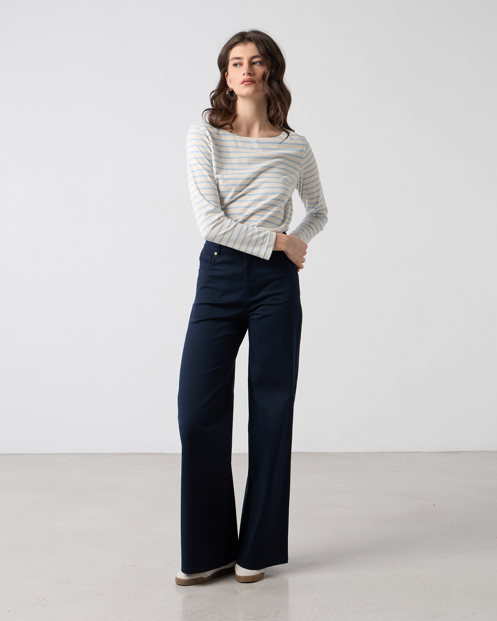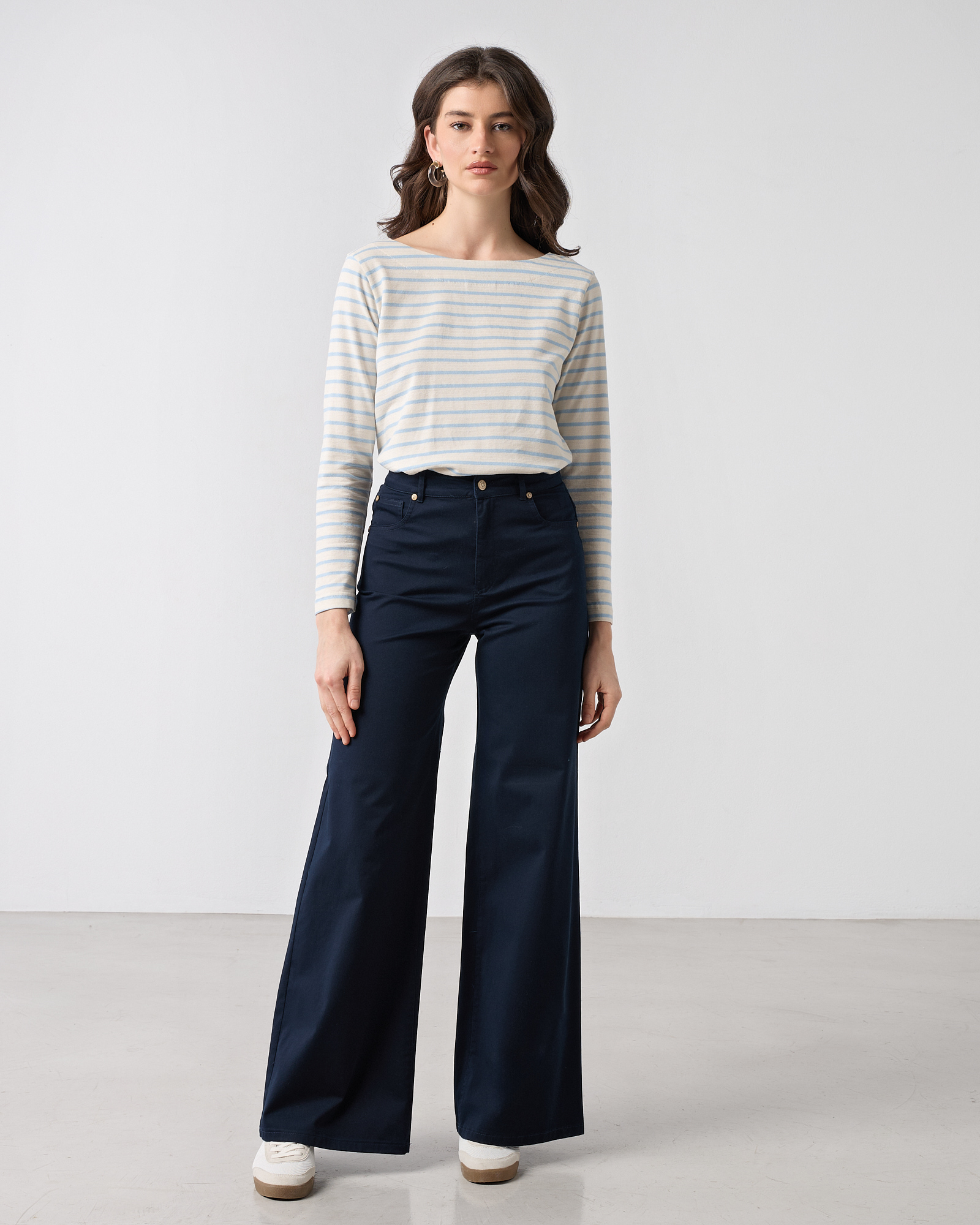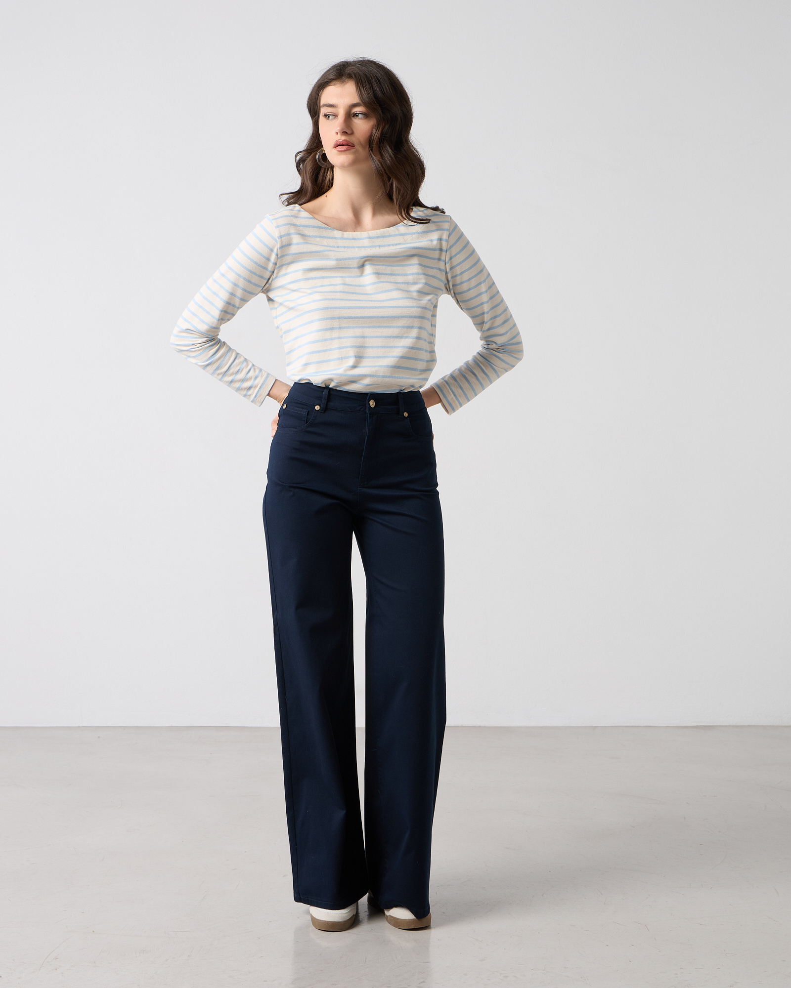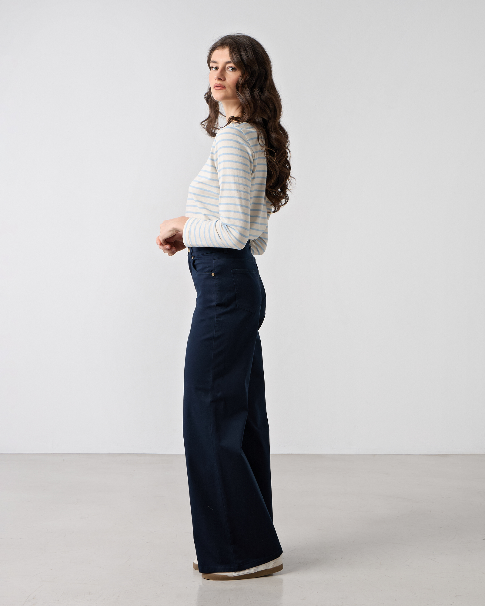 Παντελόνι wide leg ψηλόμεσο, κλείσιμο μπροστά με φερμουάρ και κουμπί, πλαϊνές και πίσω τσέπες, βαμβακερό, σε κανονική γραμμή