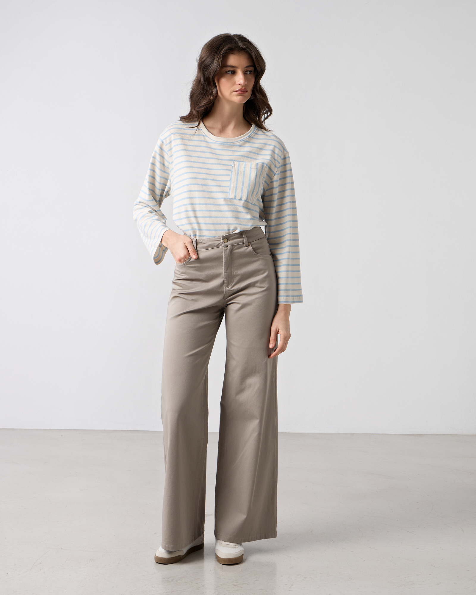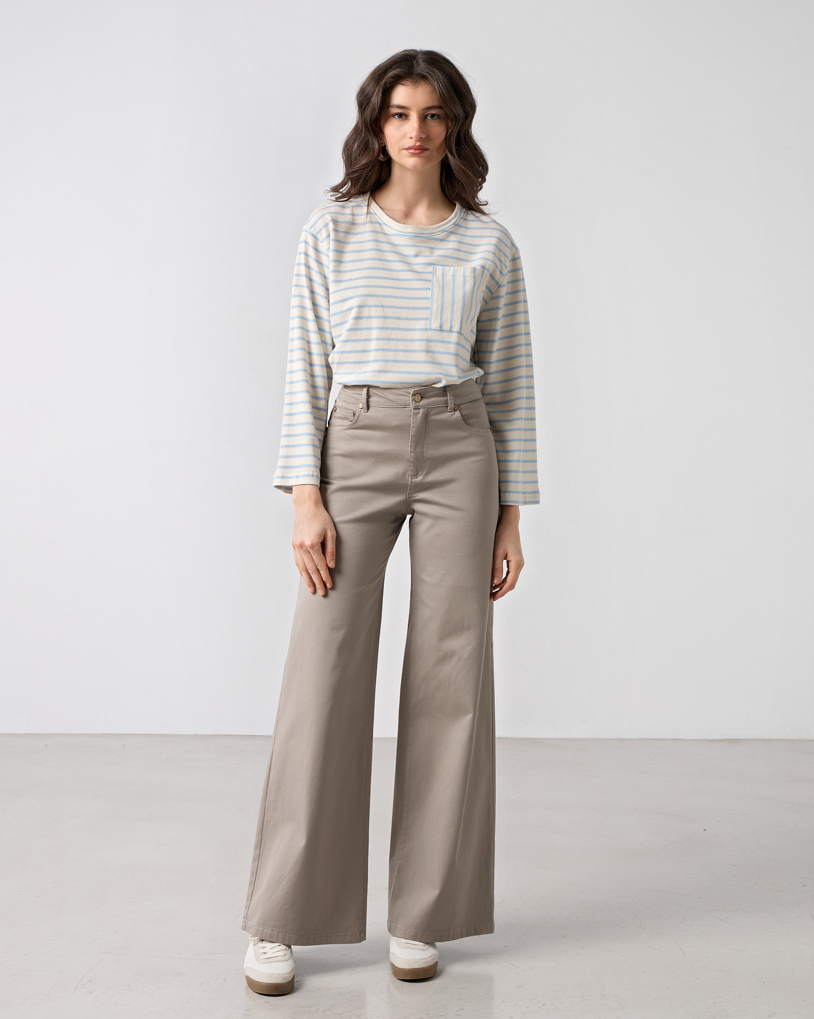 Παντελόνι wide leg ψηλόμεσο, κλείσιμο μπροστά με φερμουάρ και κουμπί, πλαϊνές και πίσω τσέπες, βαμβακερό, σε κανονική γραμμή