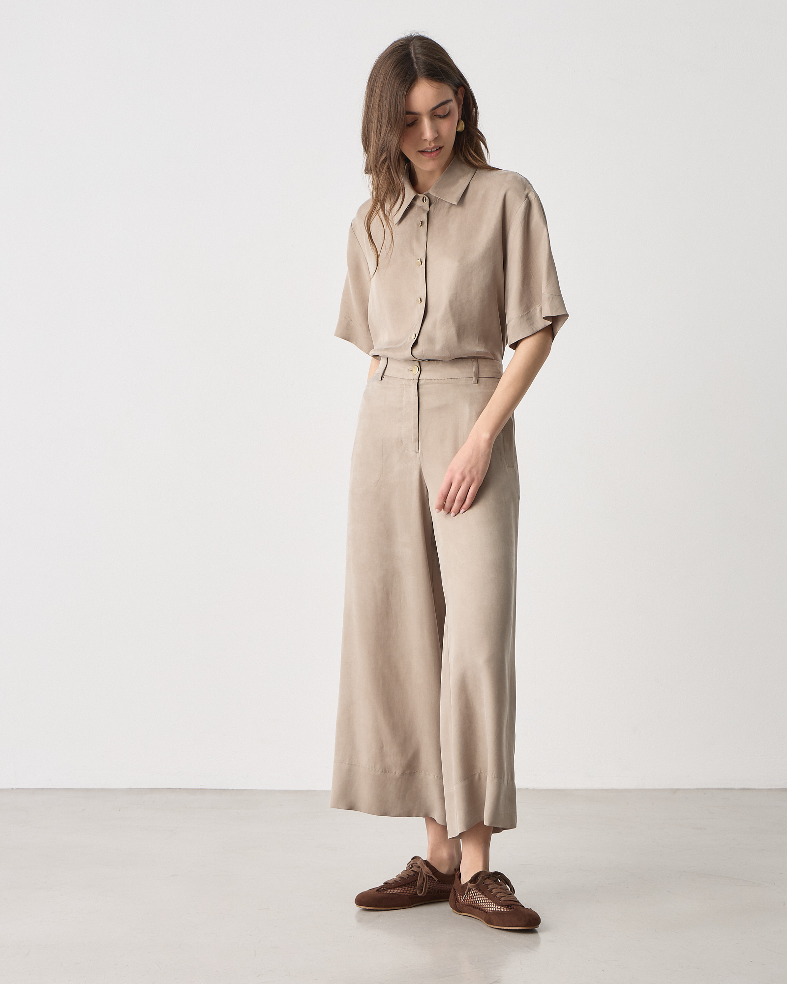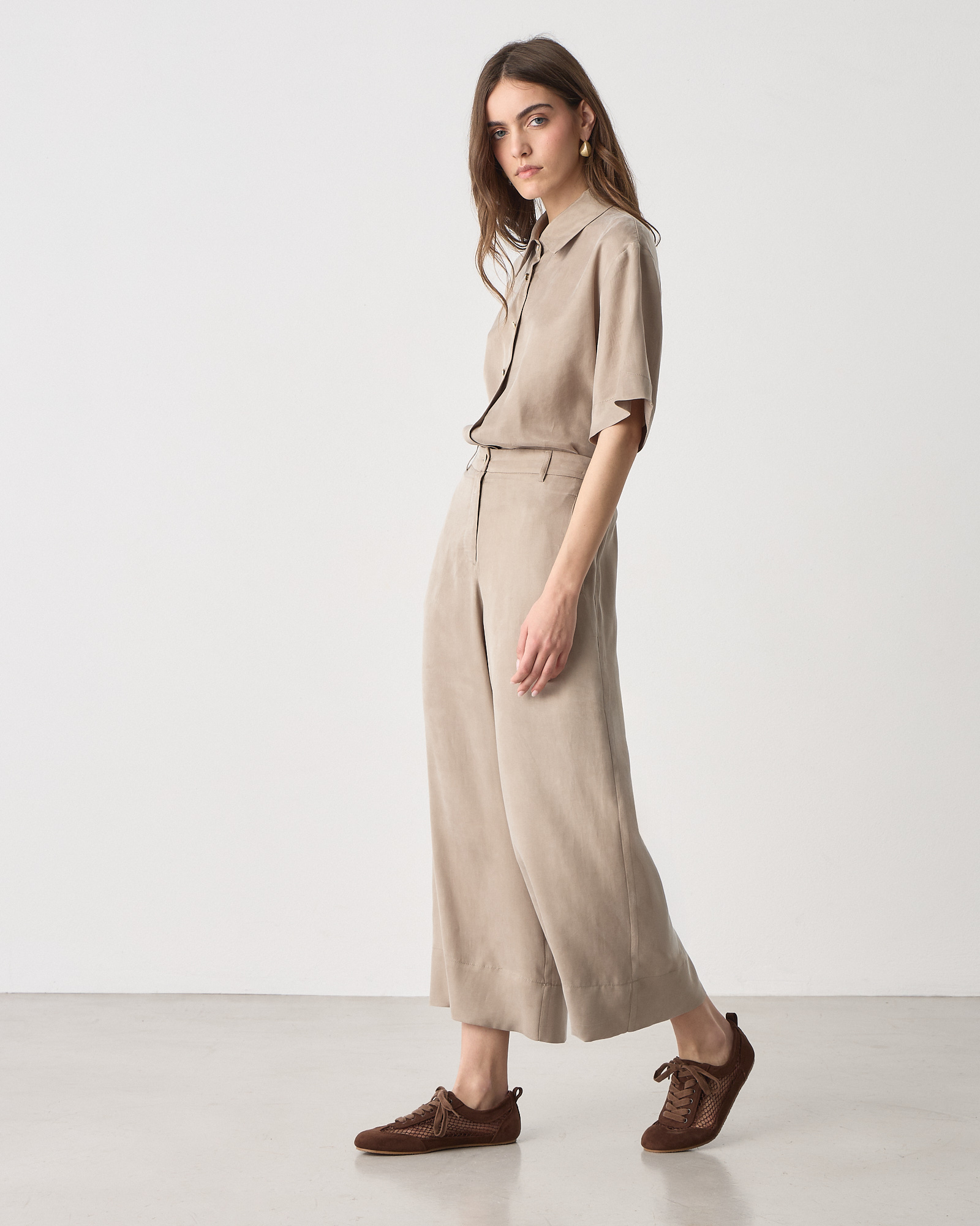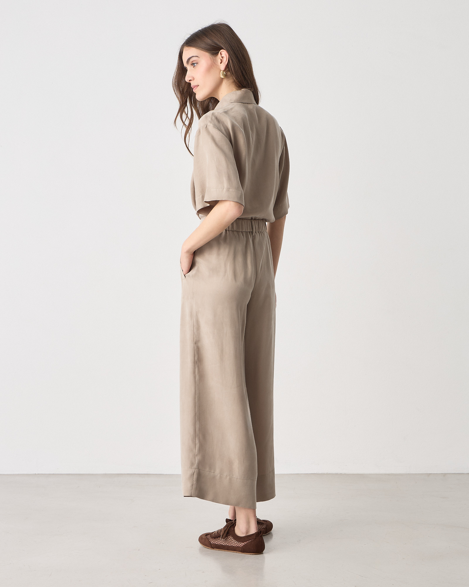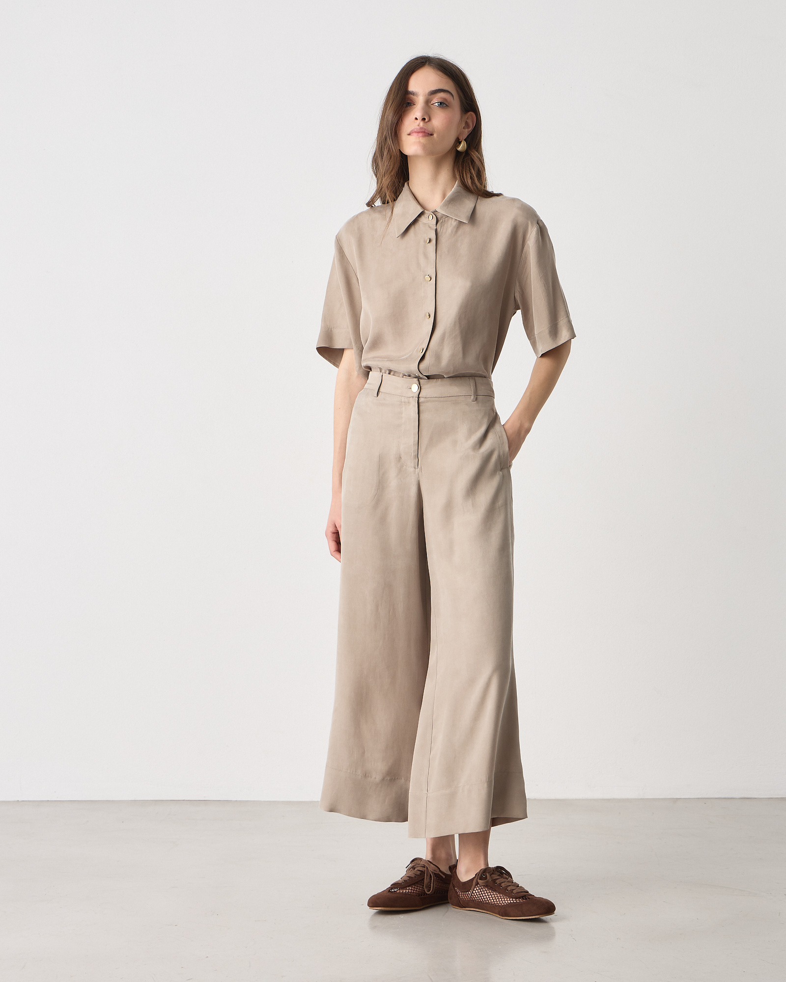 Παντελόνα cropped ψηλόμεση με ελαστική μέση, τσέπες στο πλάι, κλείσιμο μπροστά με φερμουάρ και κουμπί, ύφασμα lyocell σε κανονική γραμμή