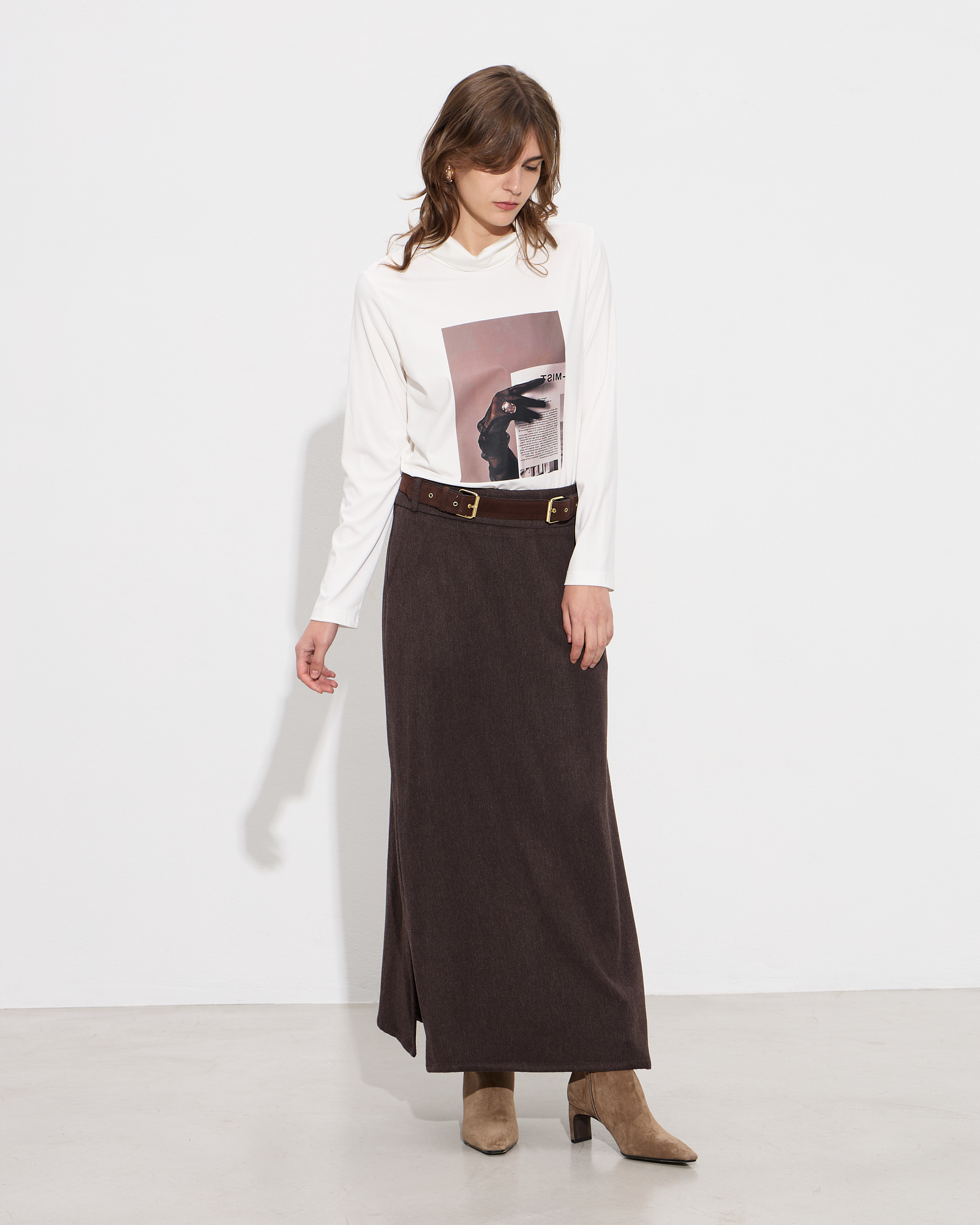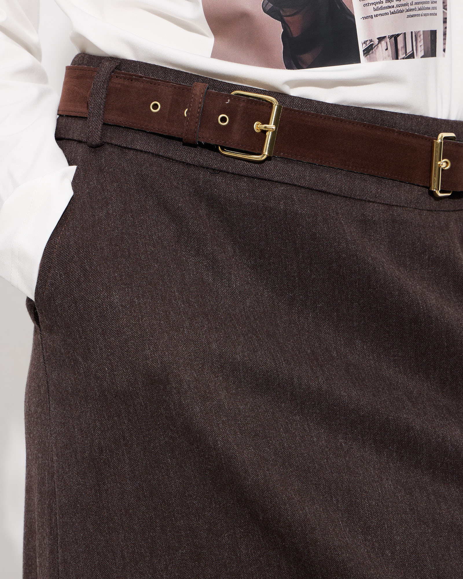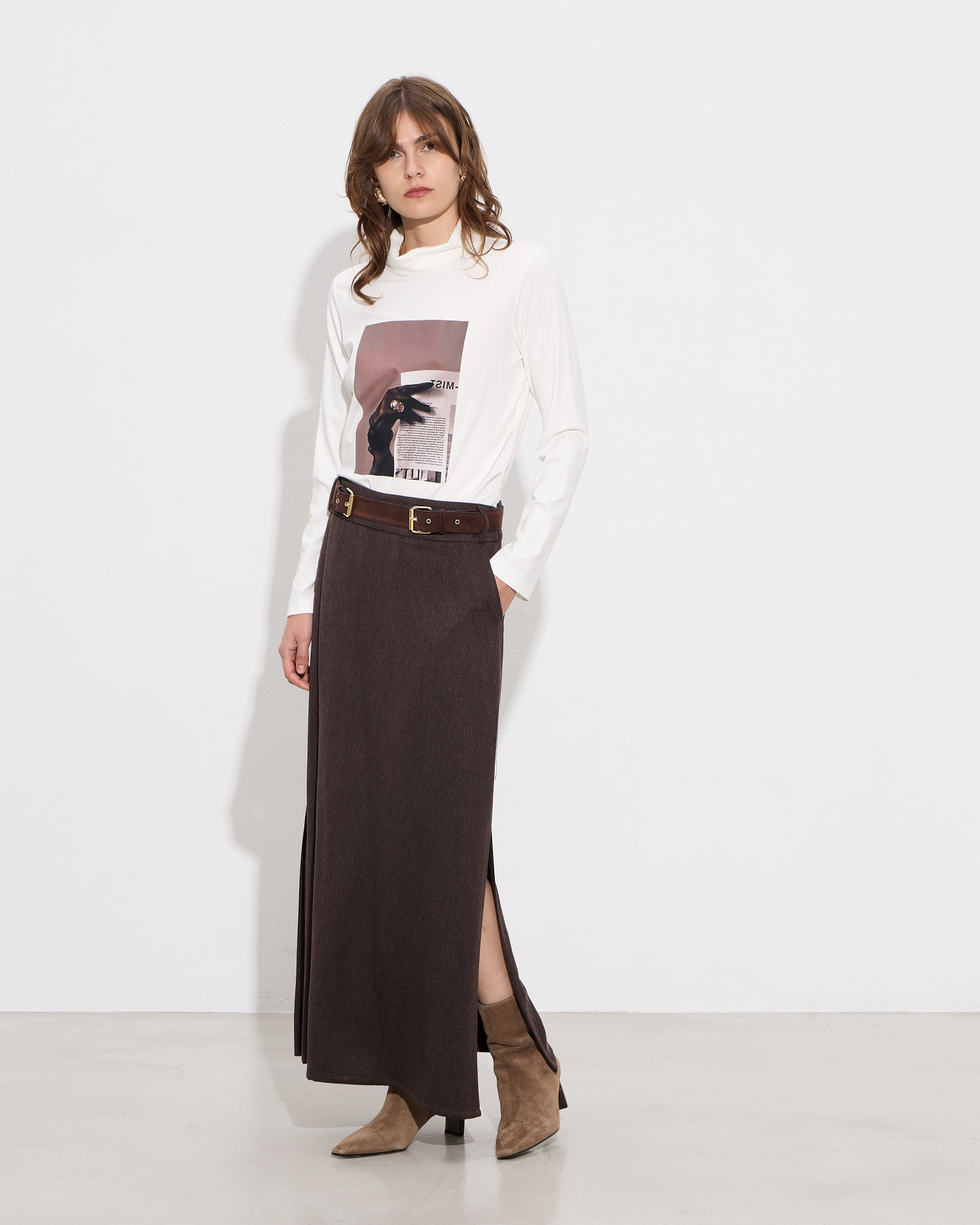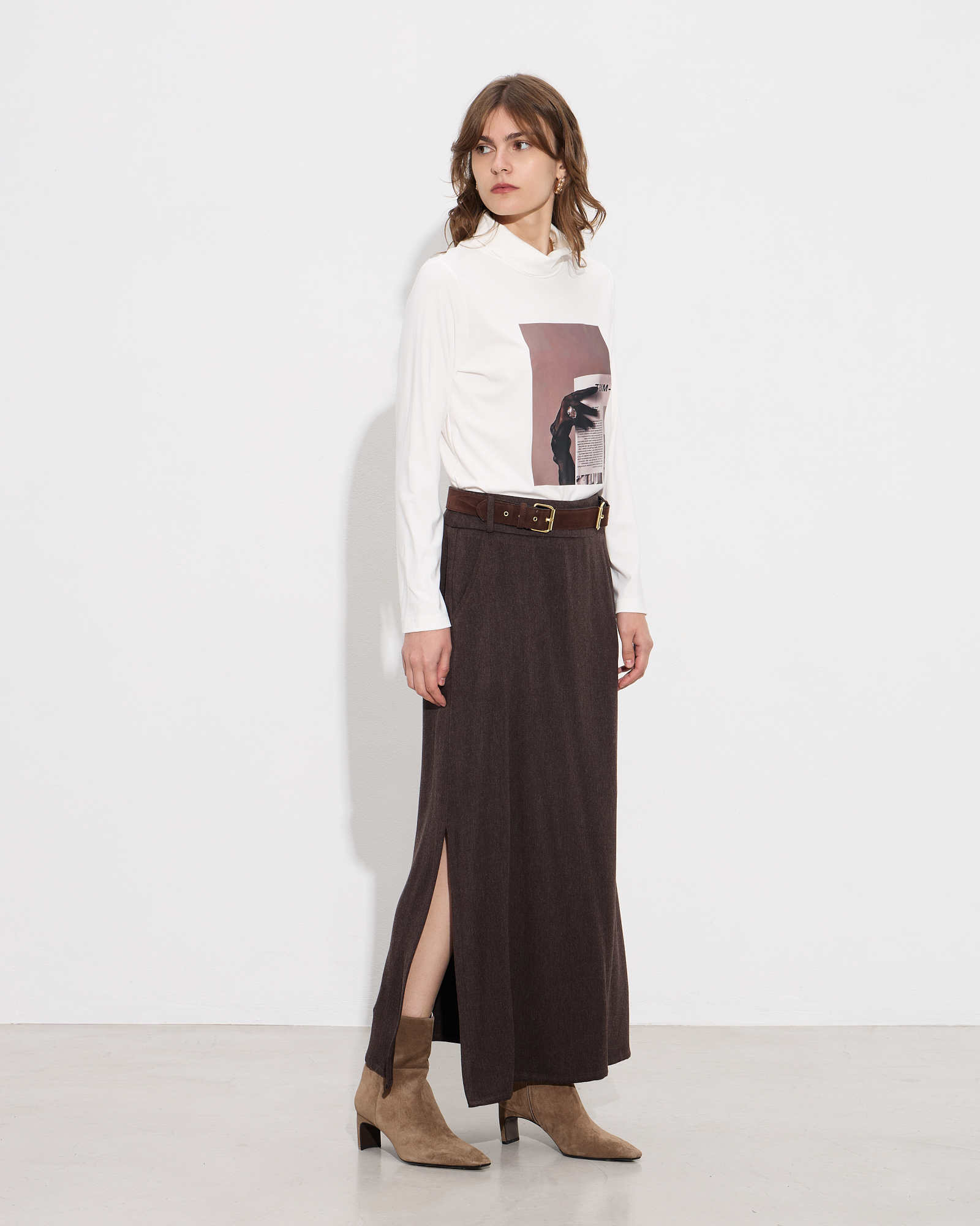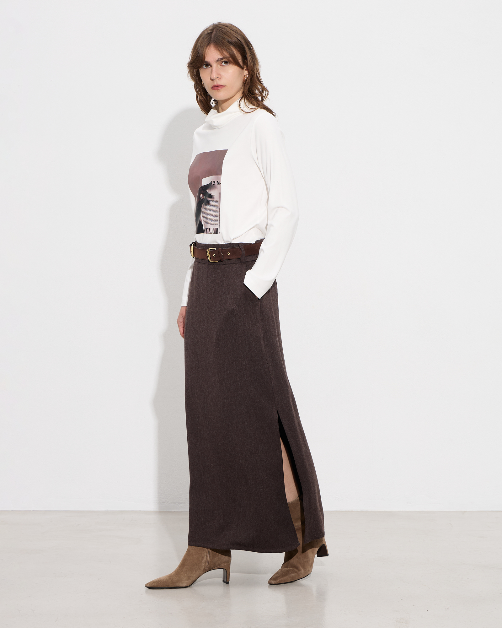 Φούστα midi ψηλόμεση με ζώνη, κλείσιμο με φερμουάρ στο πλάι, πλαϊνά σκισίματα στο τελείωμα, μαλακό βισκόζ ύφασμα, σε κανονική γραμμή