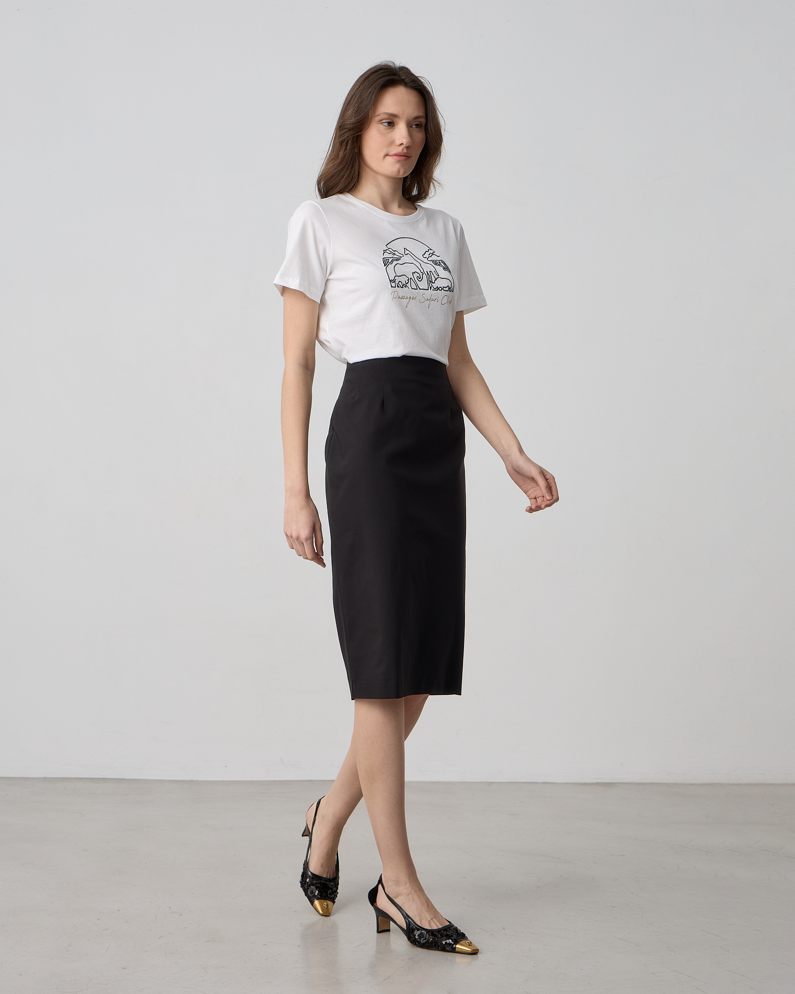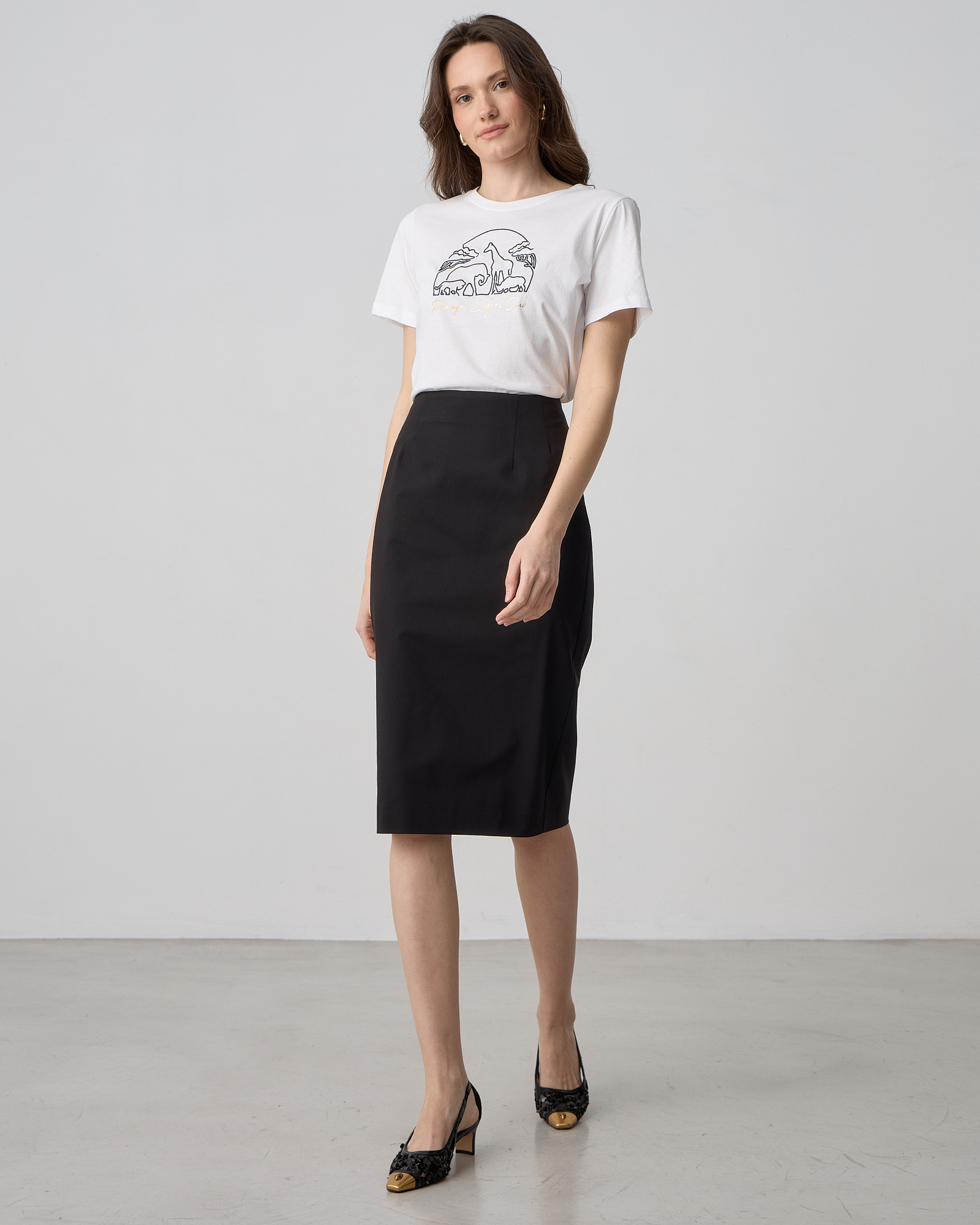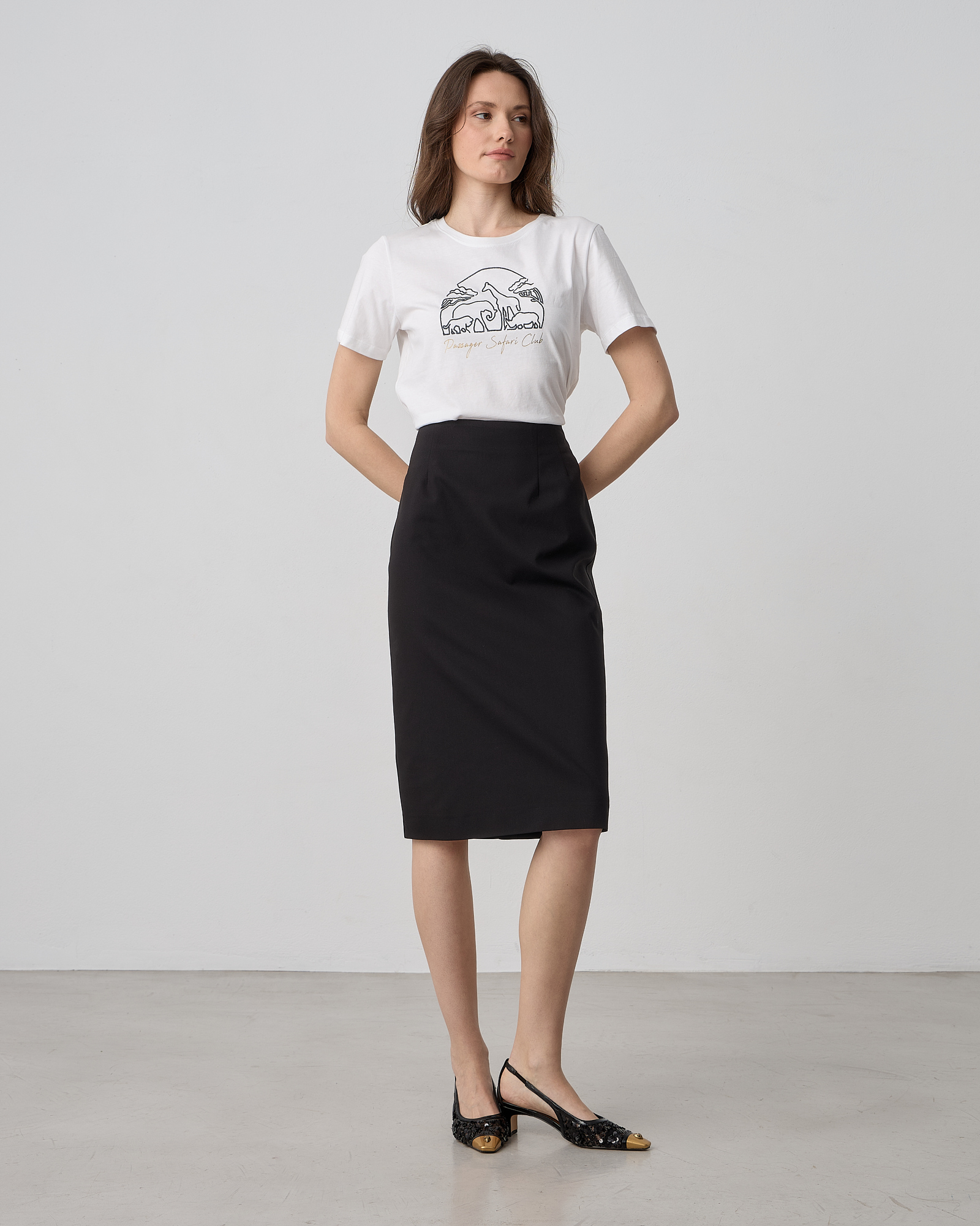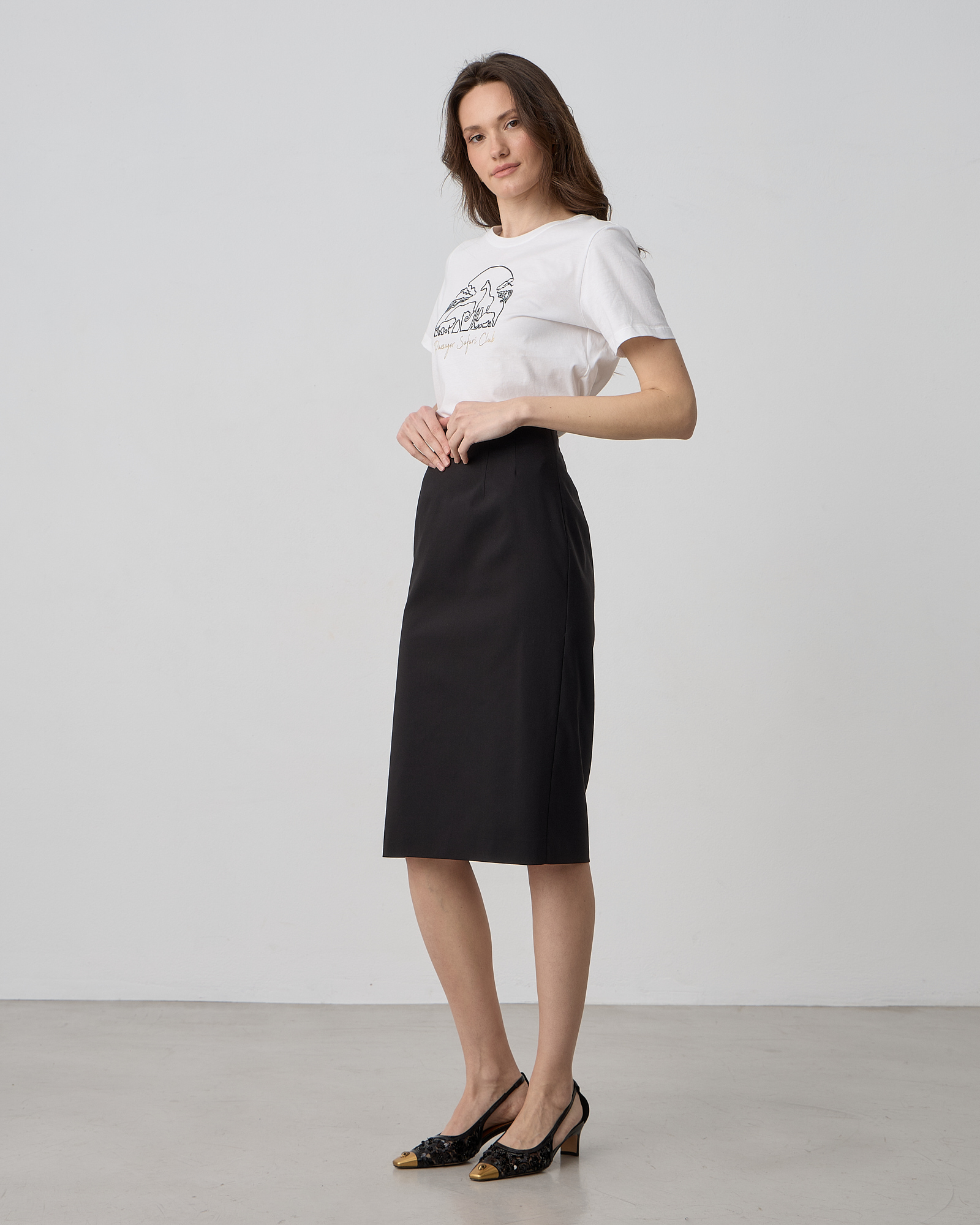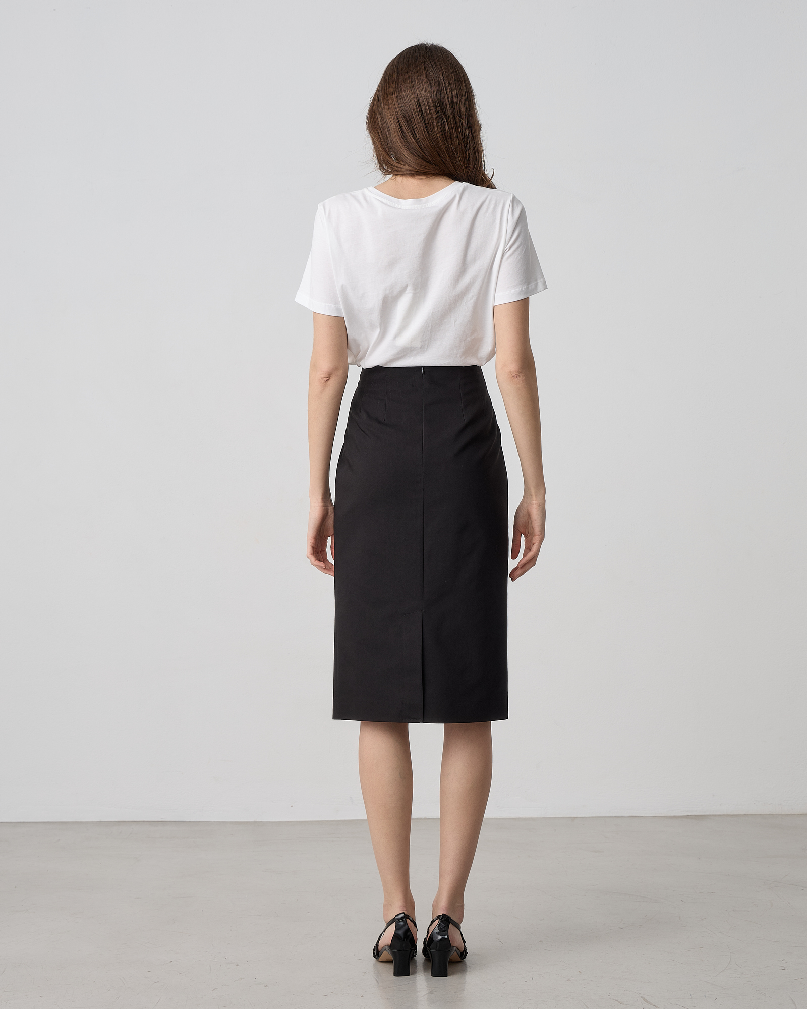 Φούστα pencil ψηλόμεση με άνοιγμα στο πίσω μέρος, κλείσιμο με φερμουάρ πίσω, καπαρντινέ, σε κανονική εφαρμογή