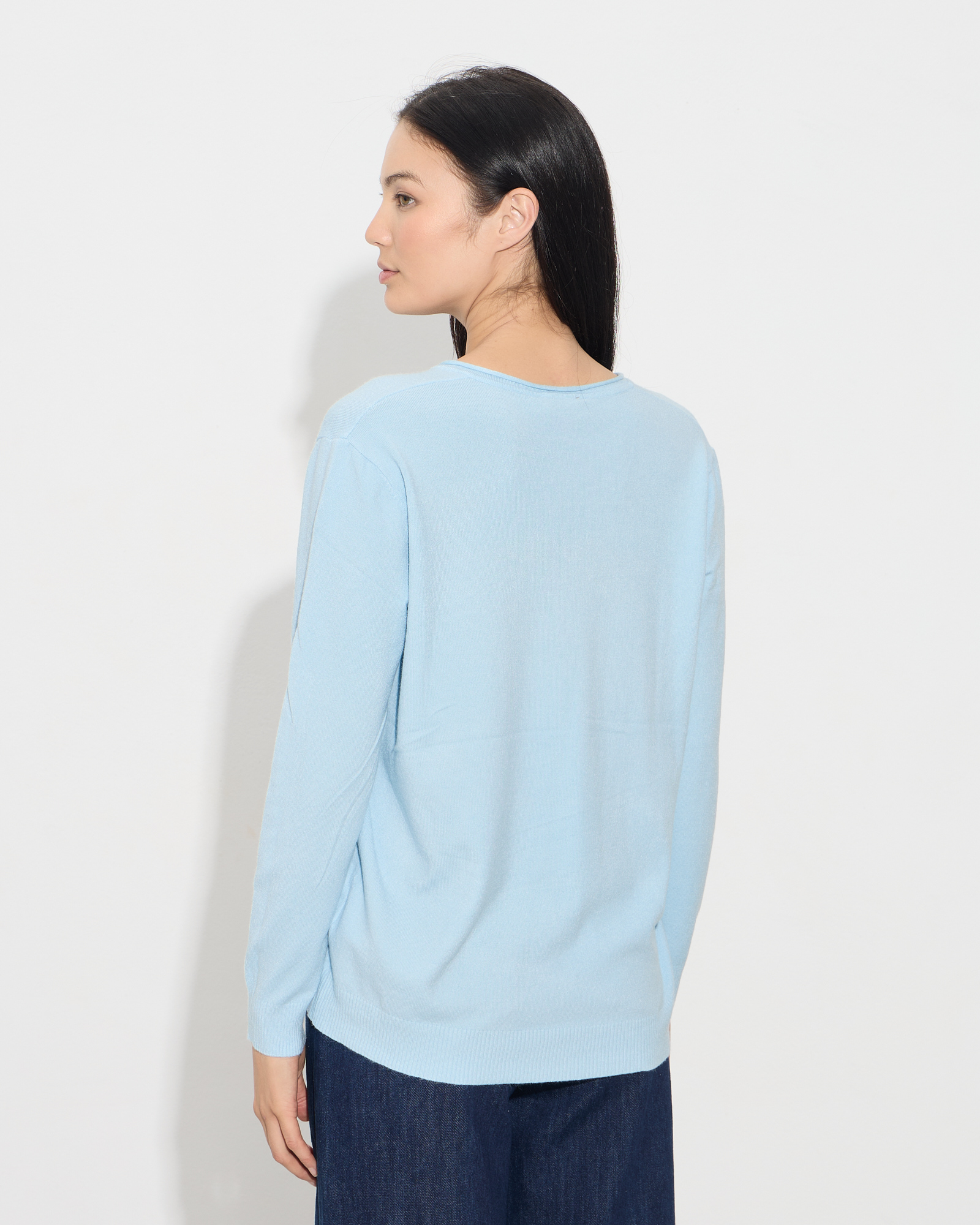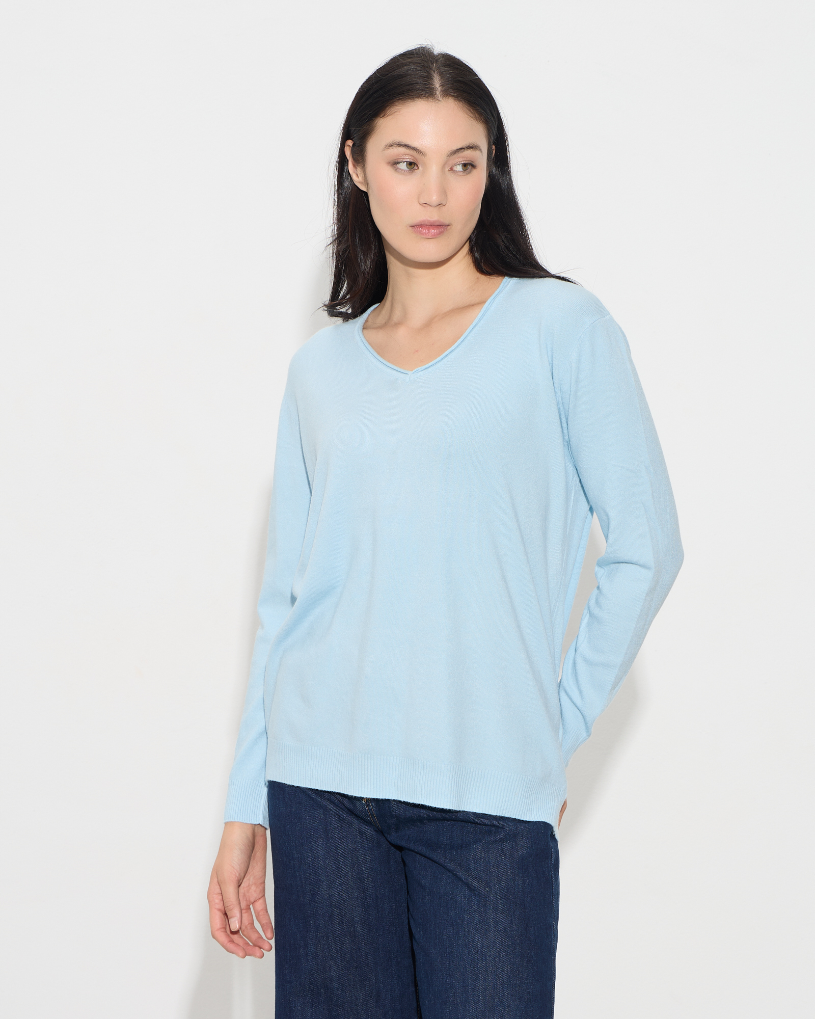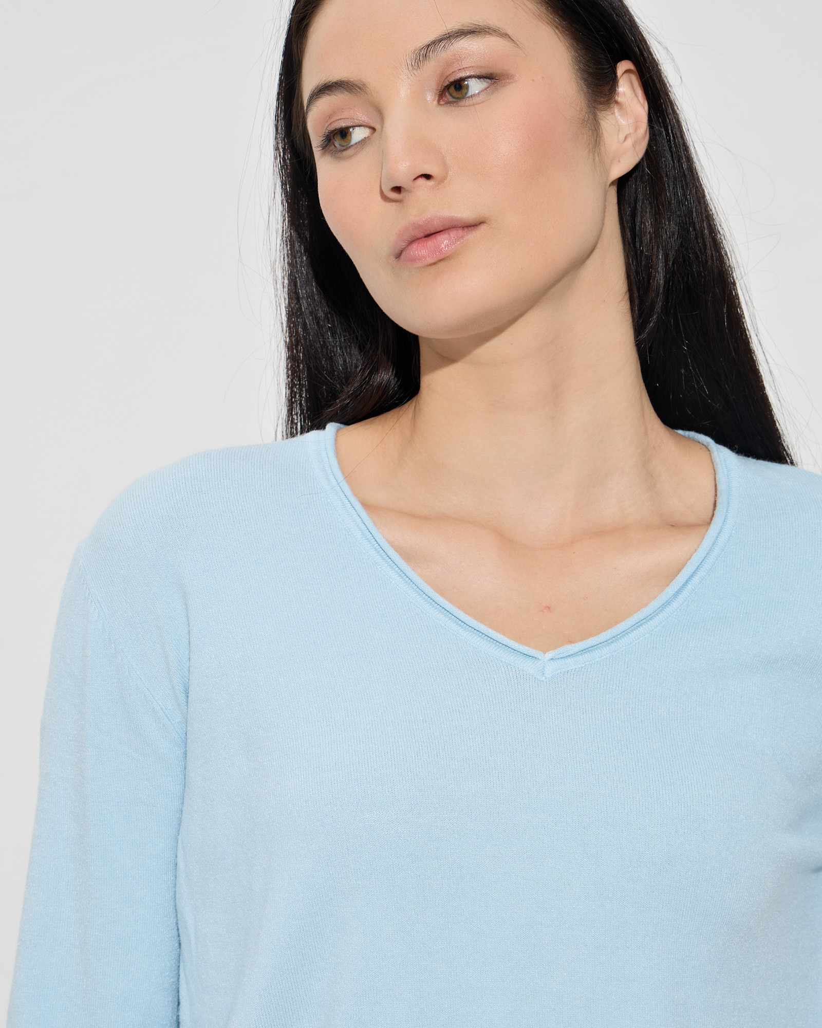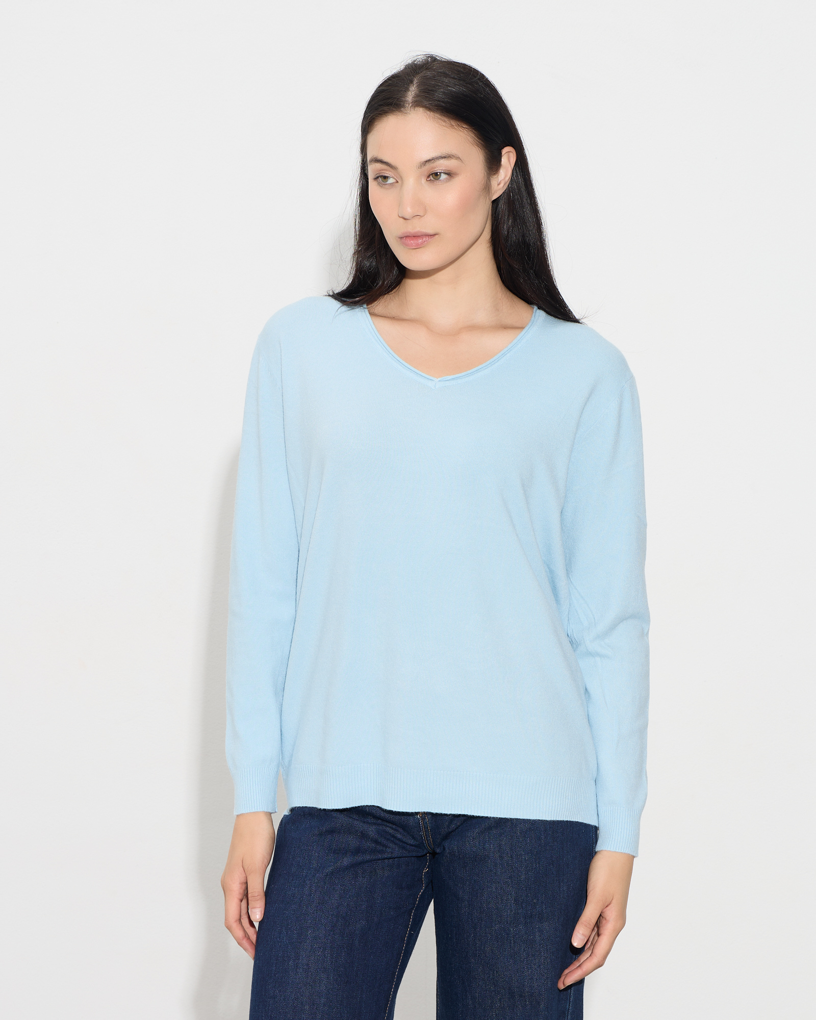 Μπλούζα με μακριά μανίκια, με V λαιμόκοψη, σε άνετη γραμμή