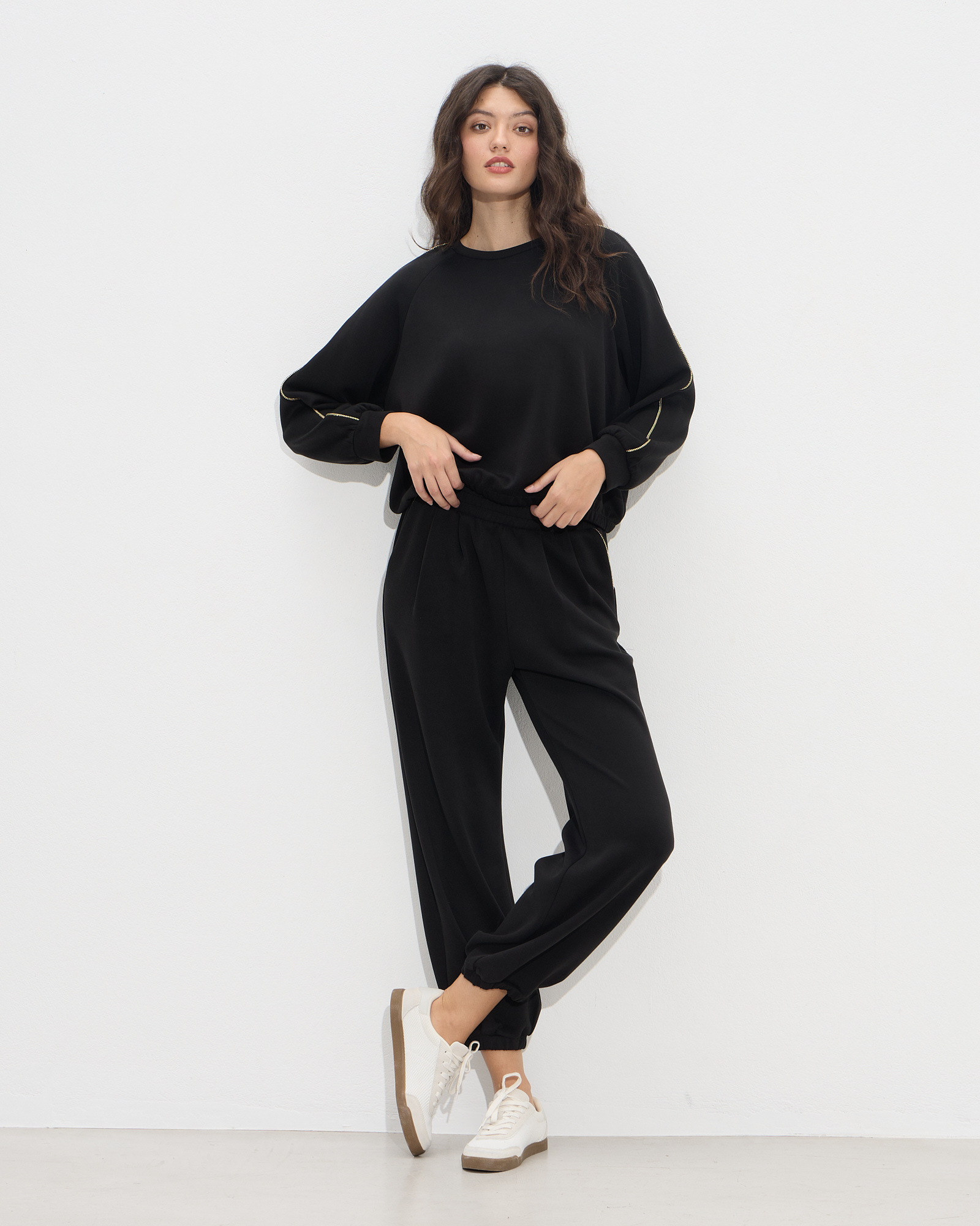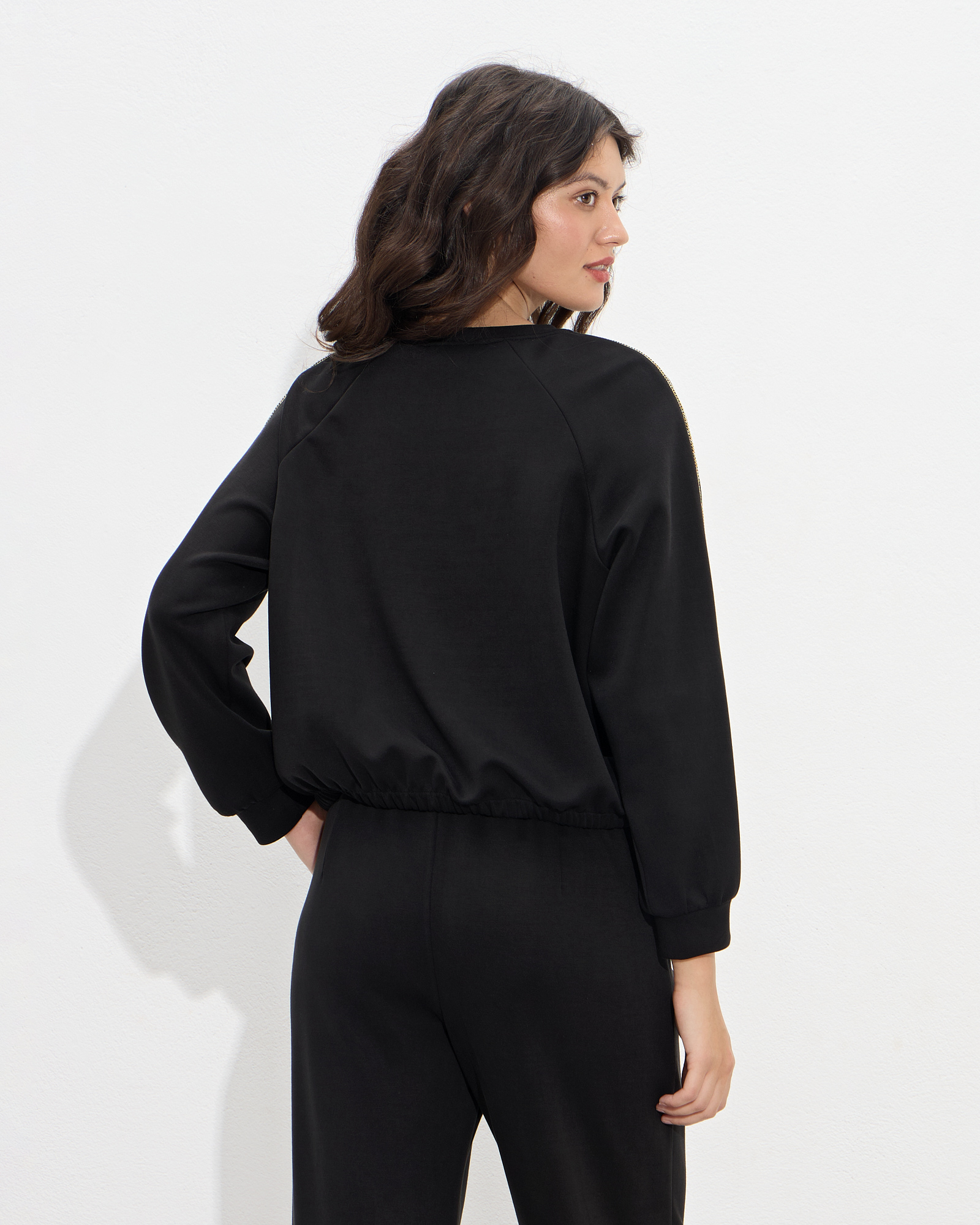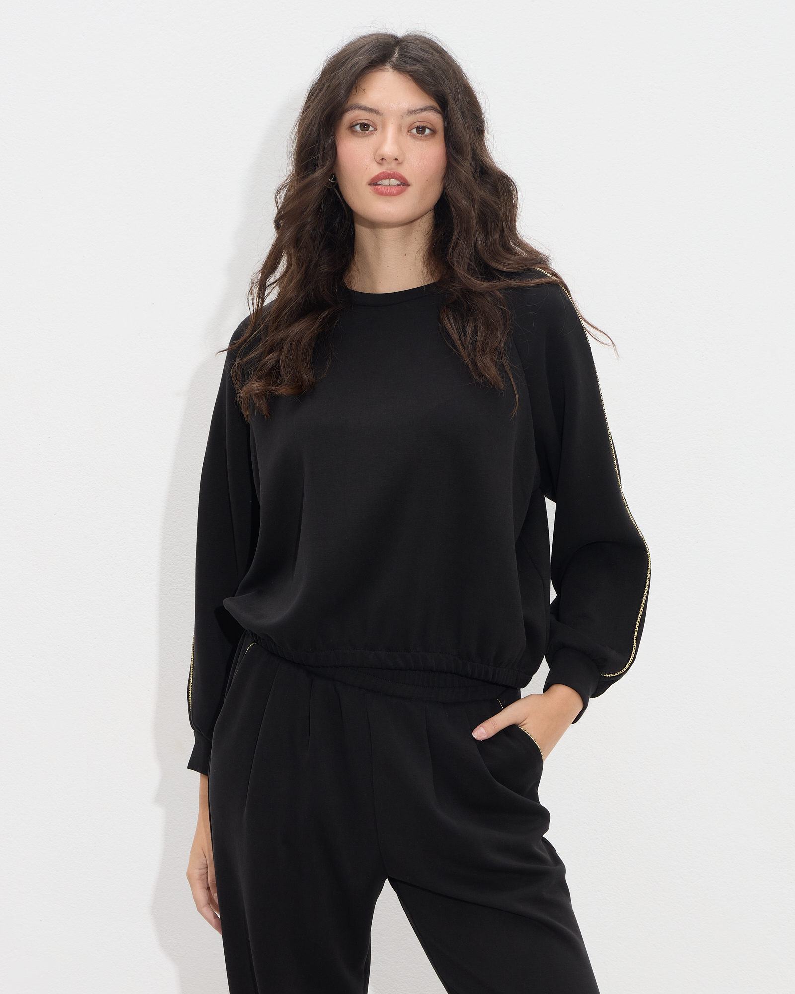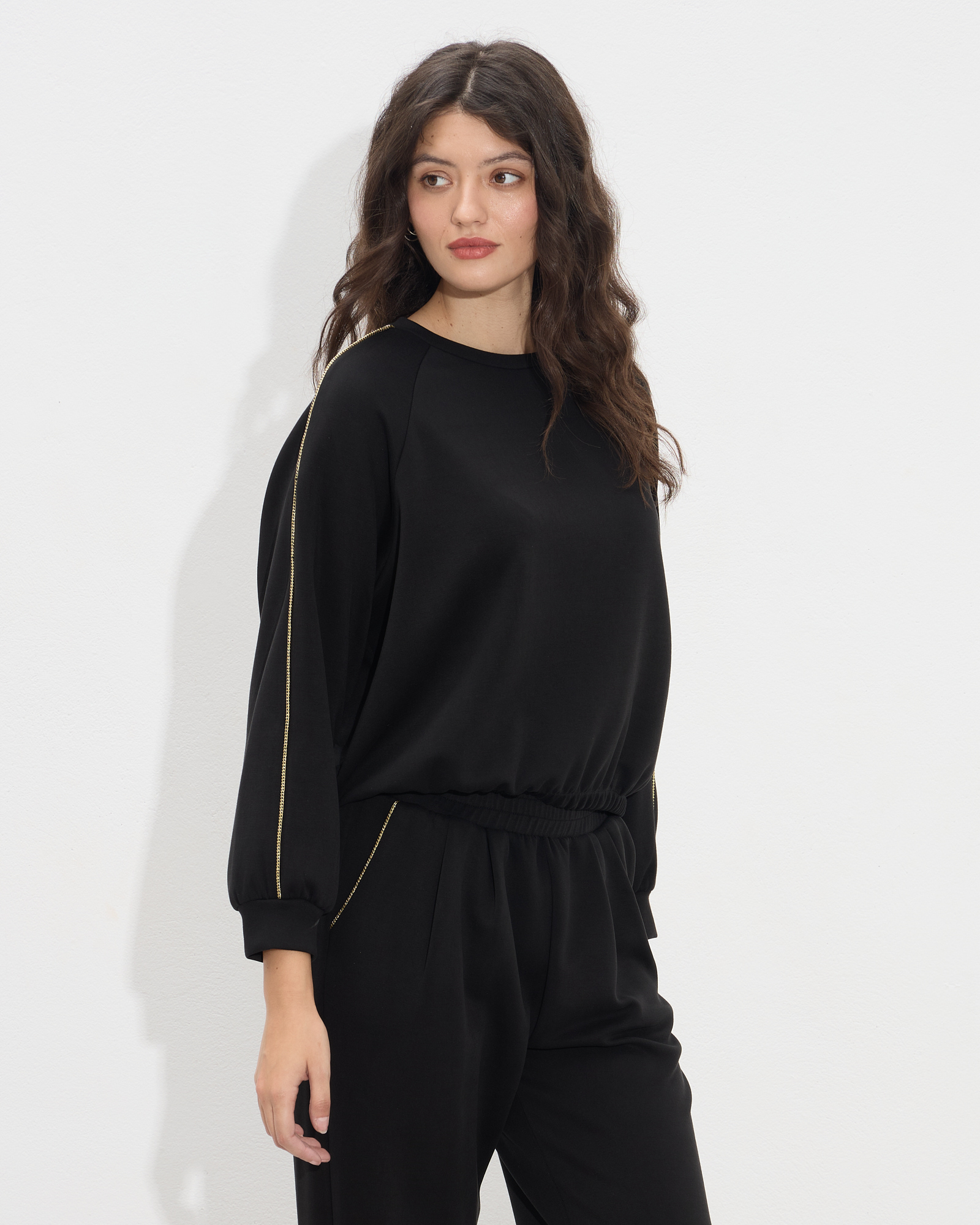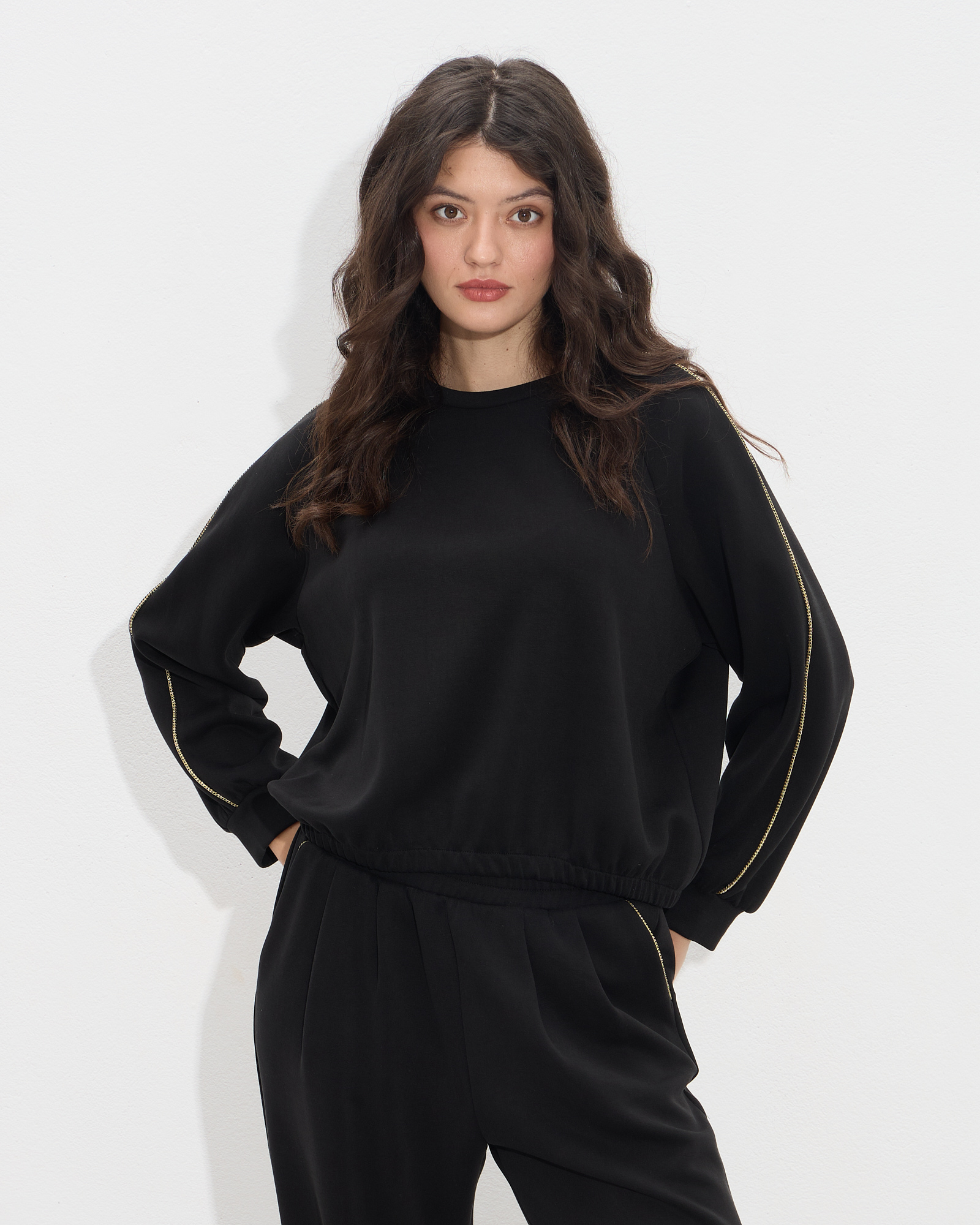 Μπλούζα φούτερ με στρογγυλή λαιμόκοψη και διακοσμητικό ρέλι στη ραφή, ελαστικό τελείωμα στα μανίκια και στη μέση, σε χαλαρή γραμμή