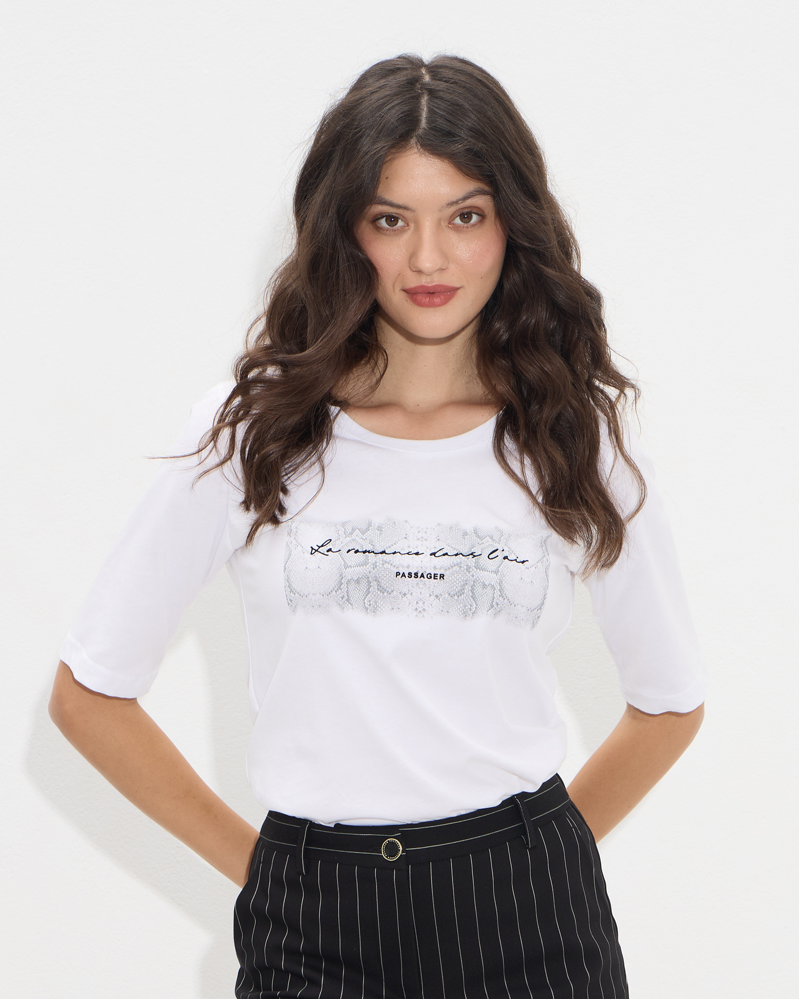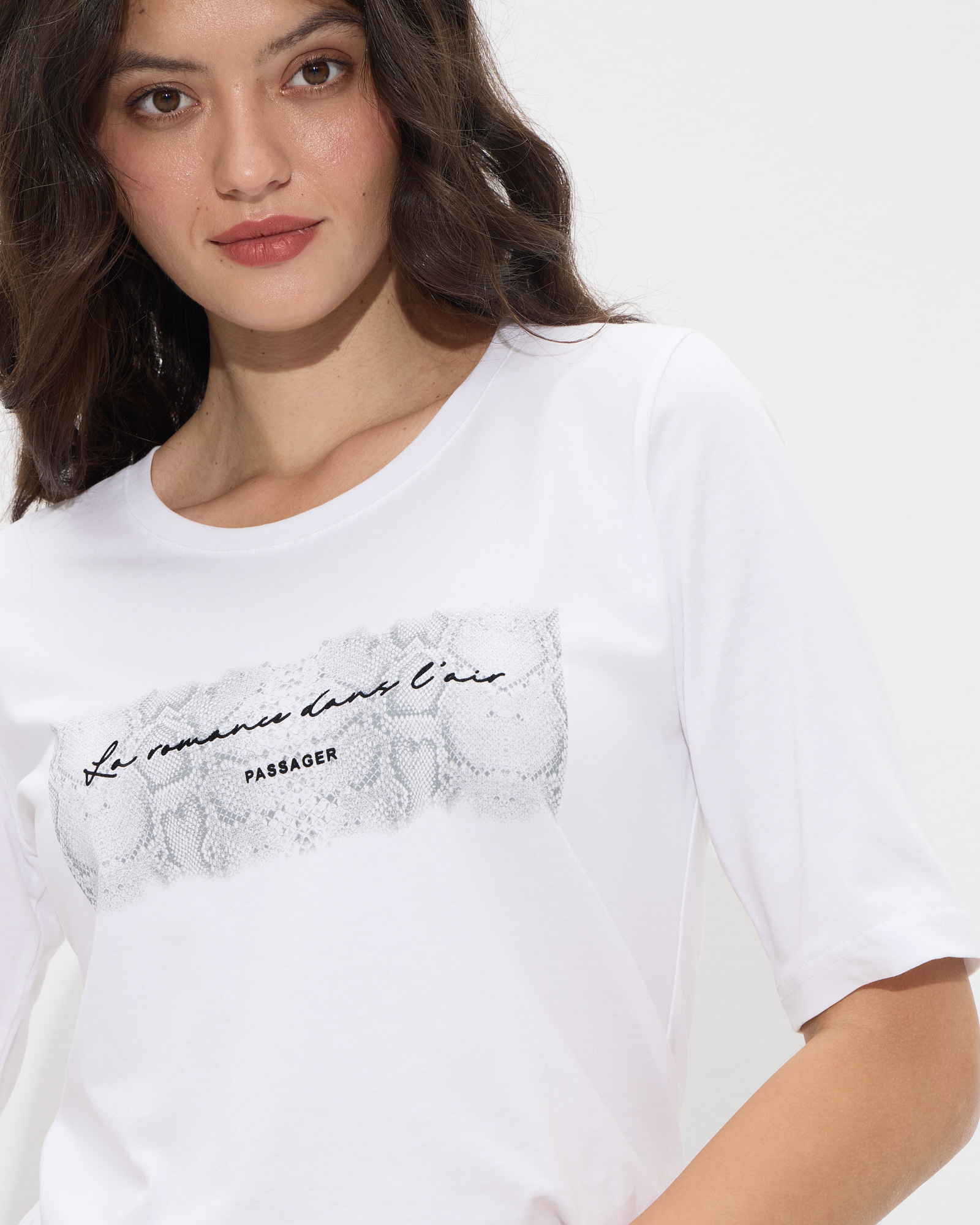 Μπλούζα με μανίκι μέχρι τον αγκώνα, στρογγυλή λαιμόκοψη και τύπωμα snake-print σε βαμβακερό ύφασμα, σε κανονική γραμμή