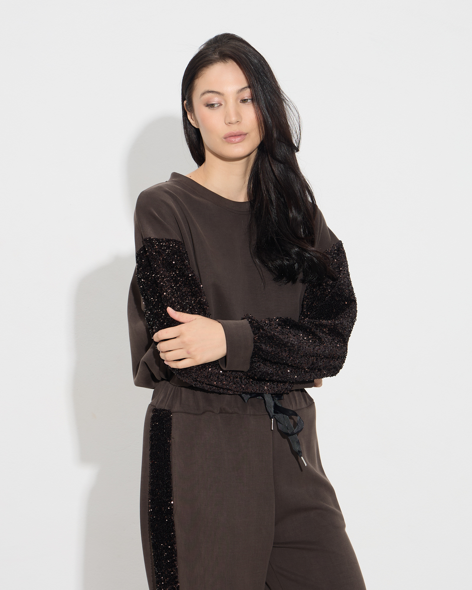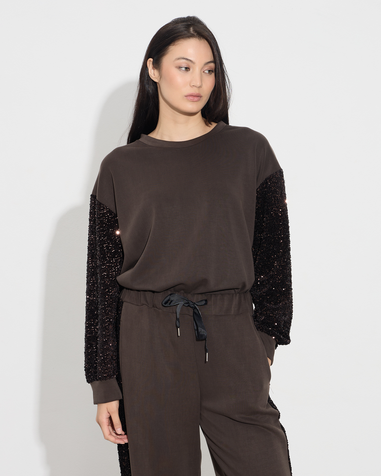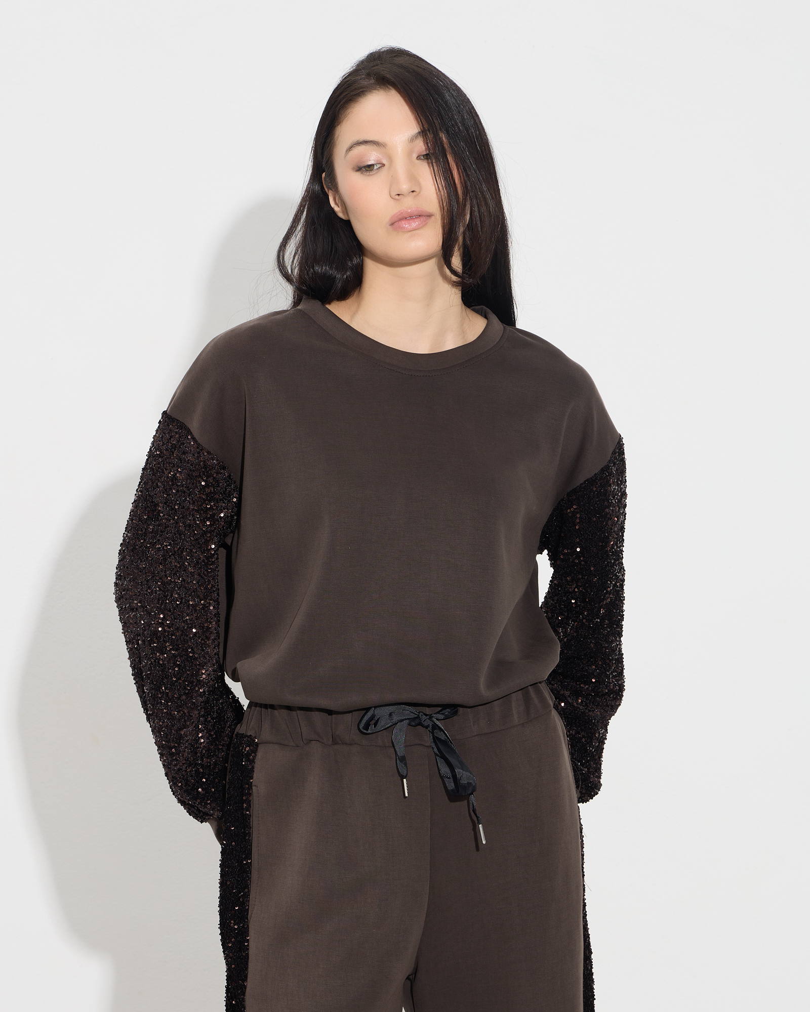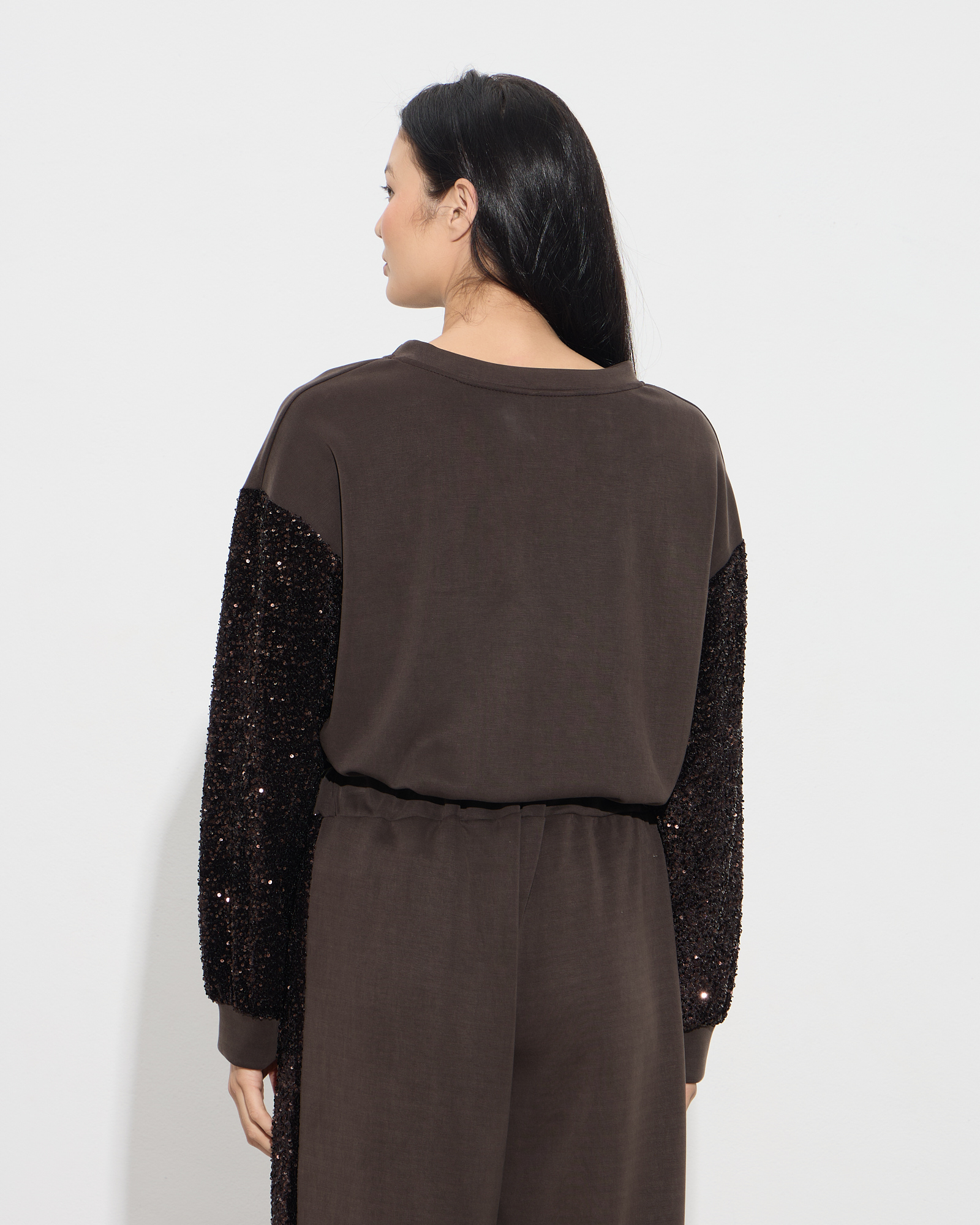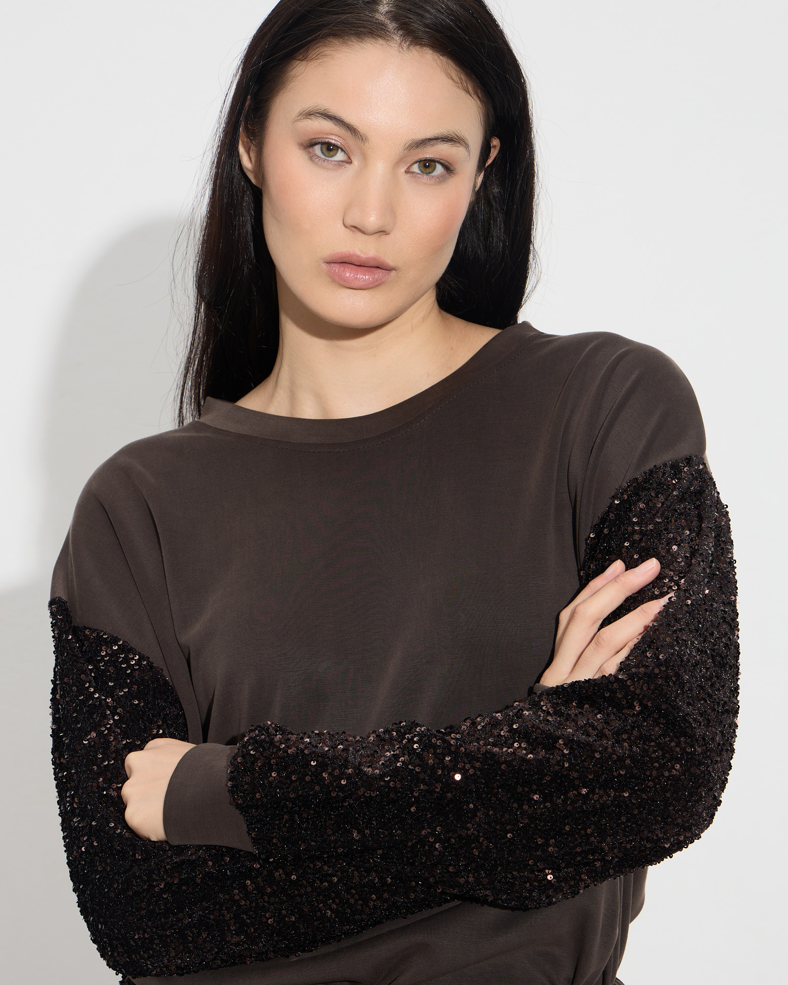 Μπλούζα τύπου φούτερ με στρογγυλή λαιμόκοψη, μακριά μανίκια με παγιέτα, σε άνετη γραμμή