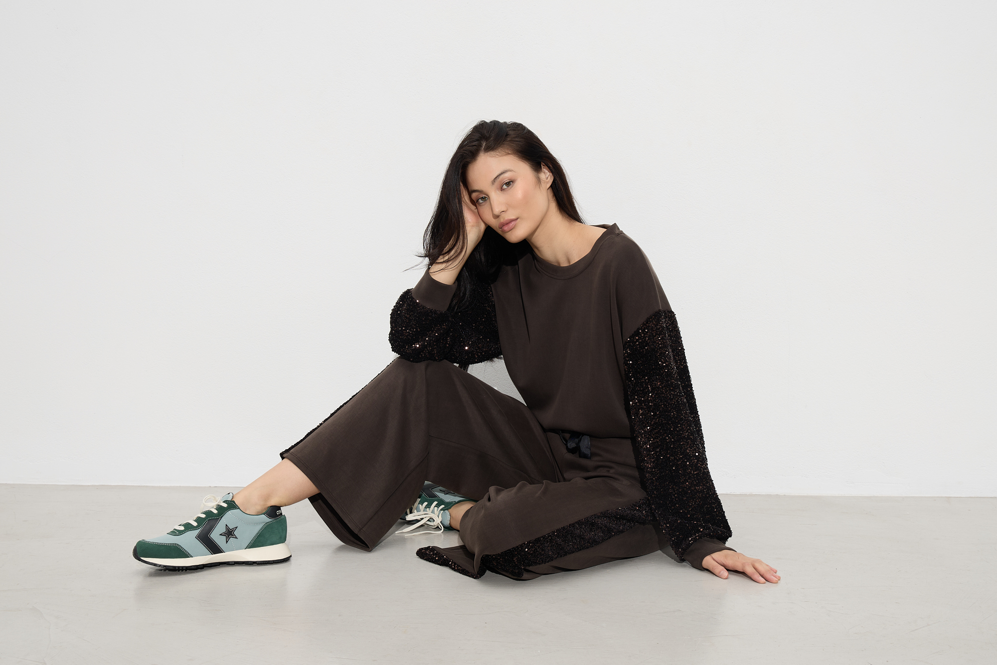 Μπλούζα τύπου φούτερ με παγιέτα στα μανίκια