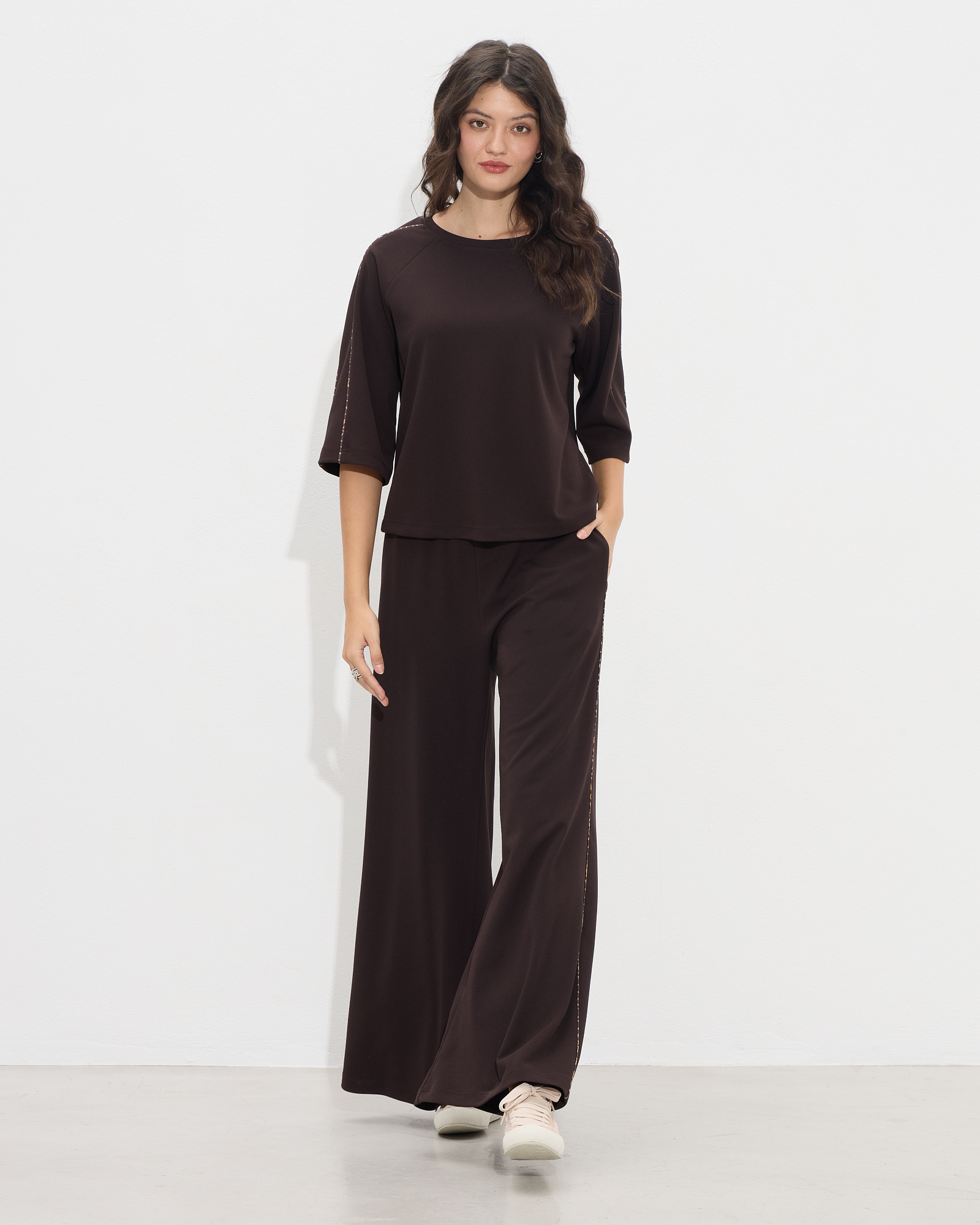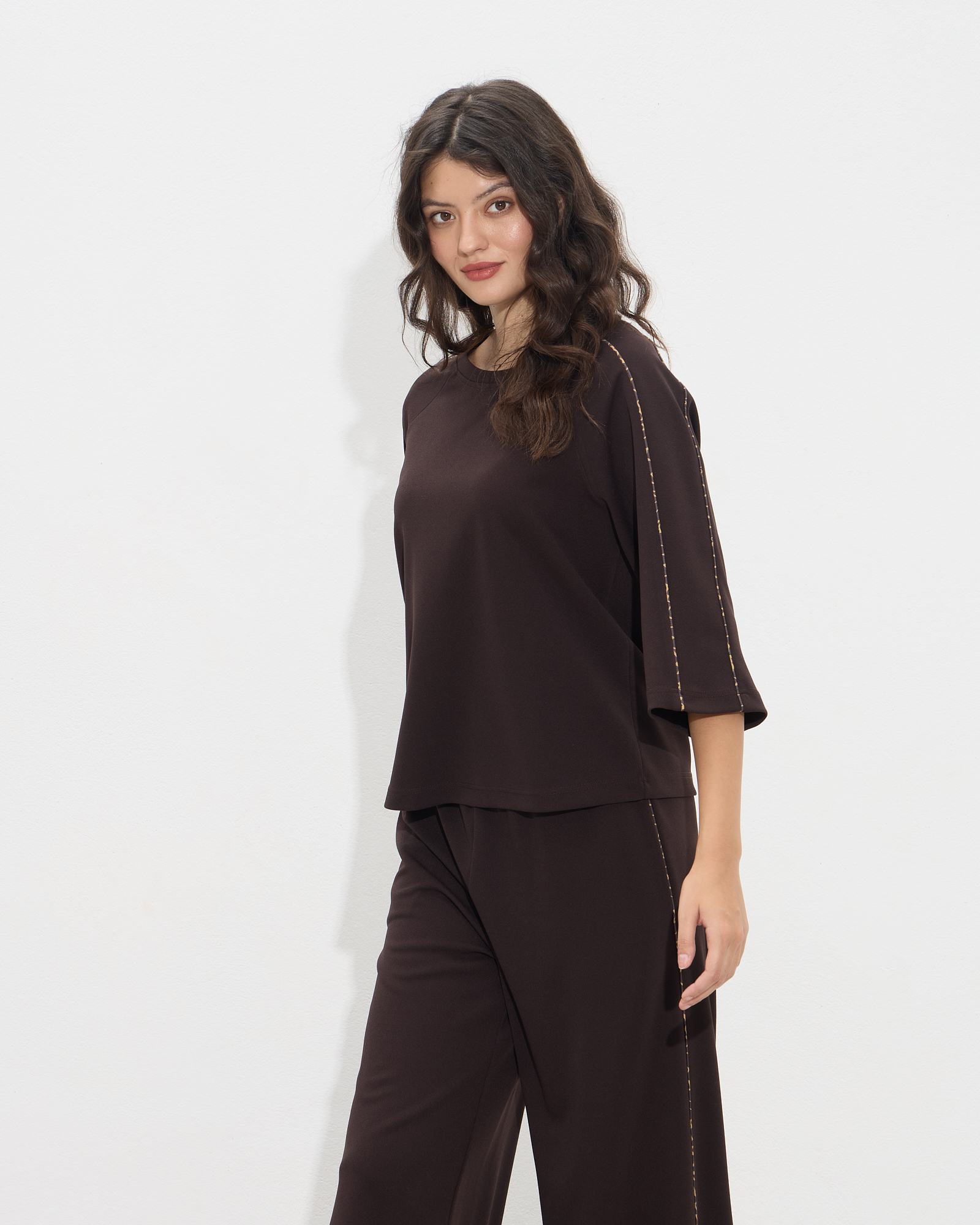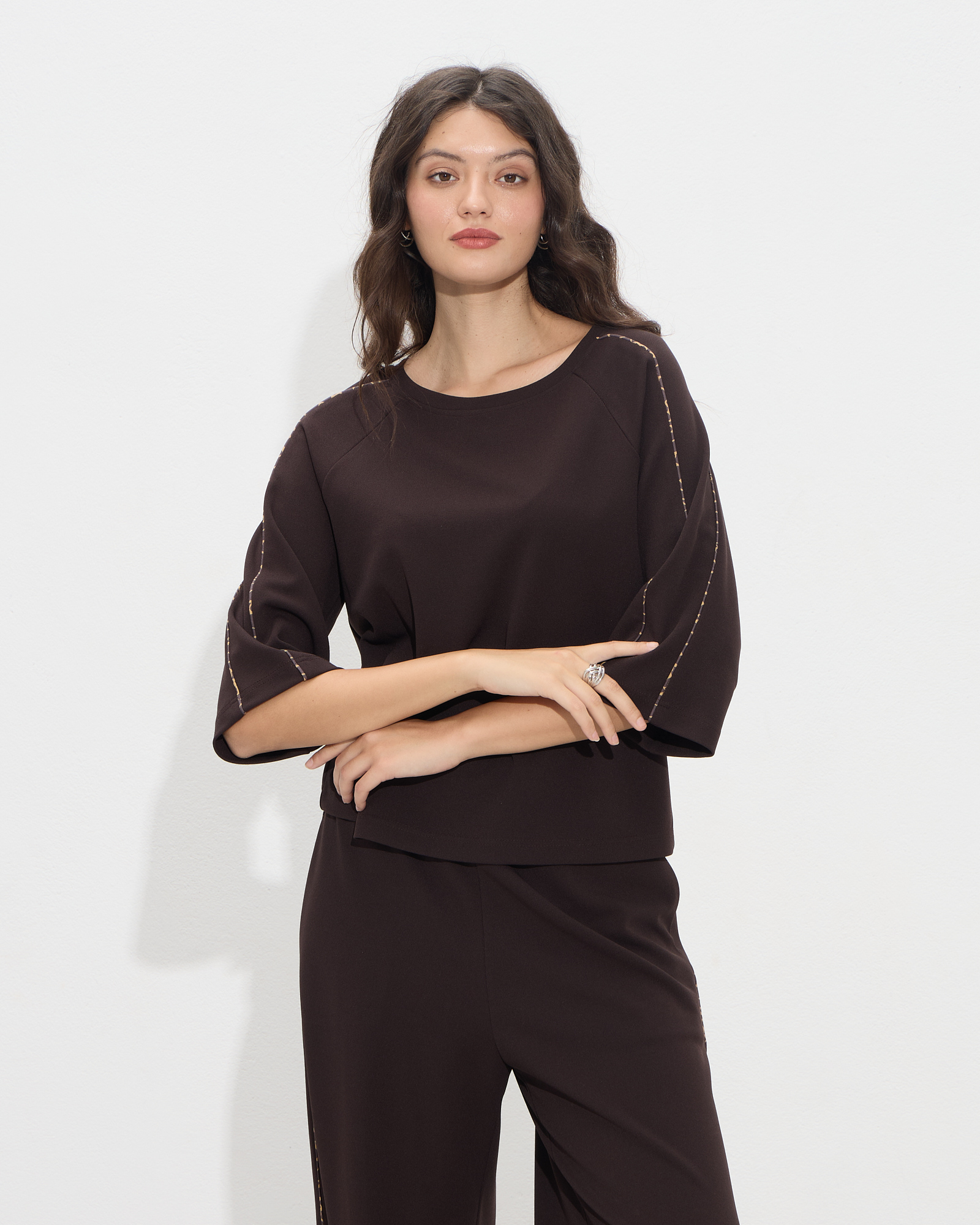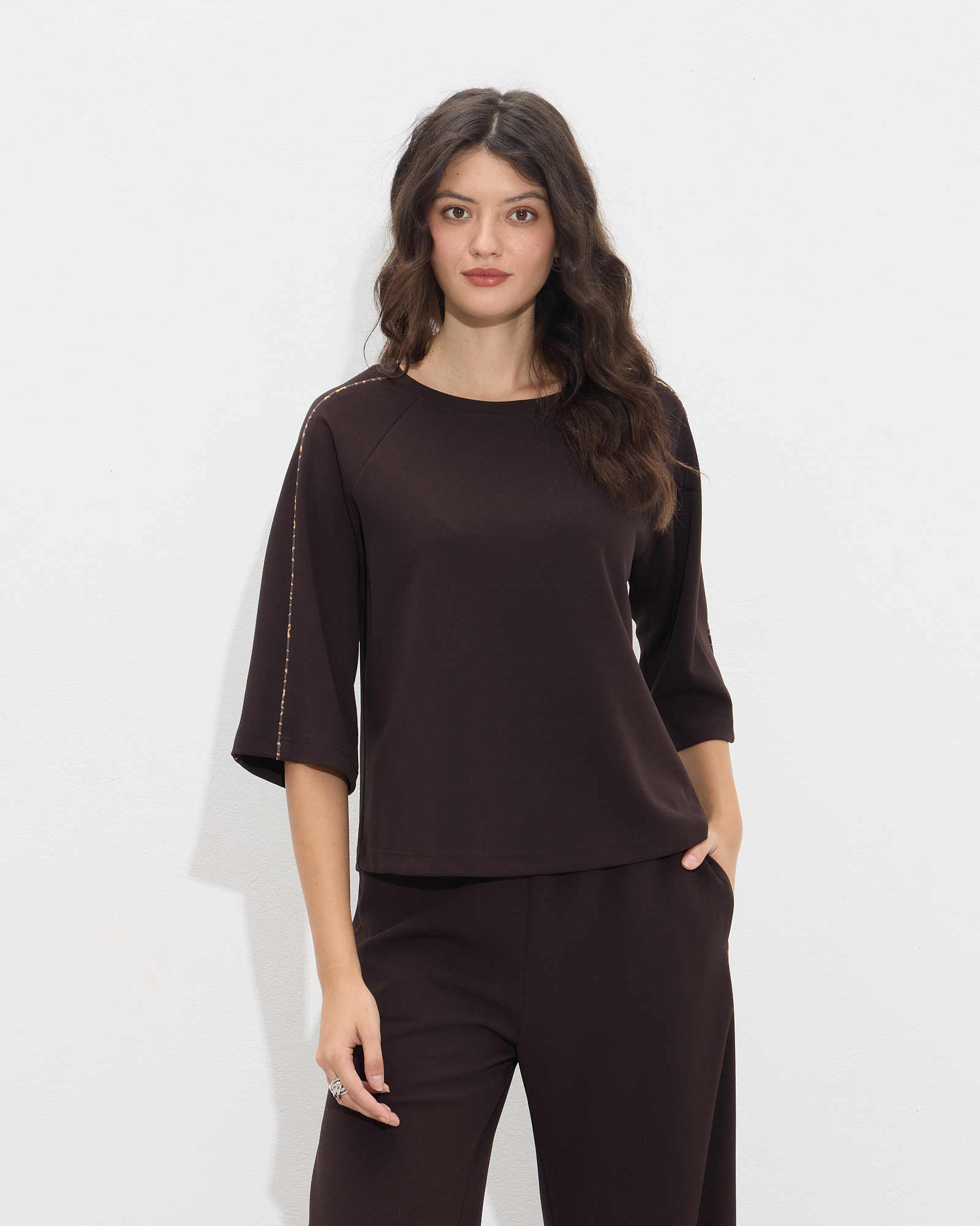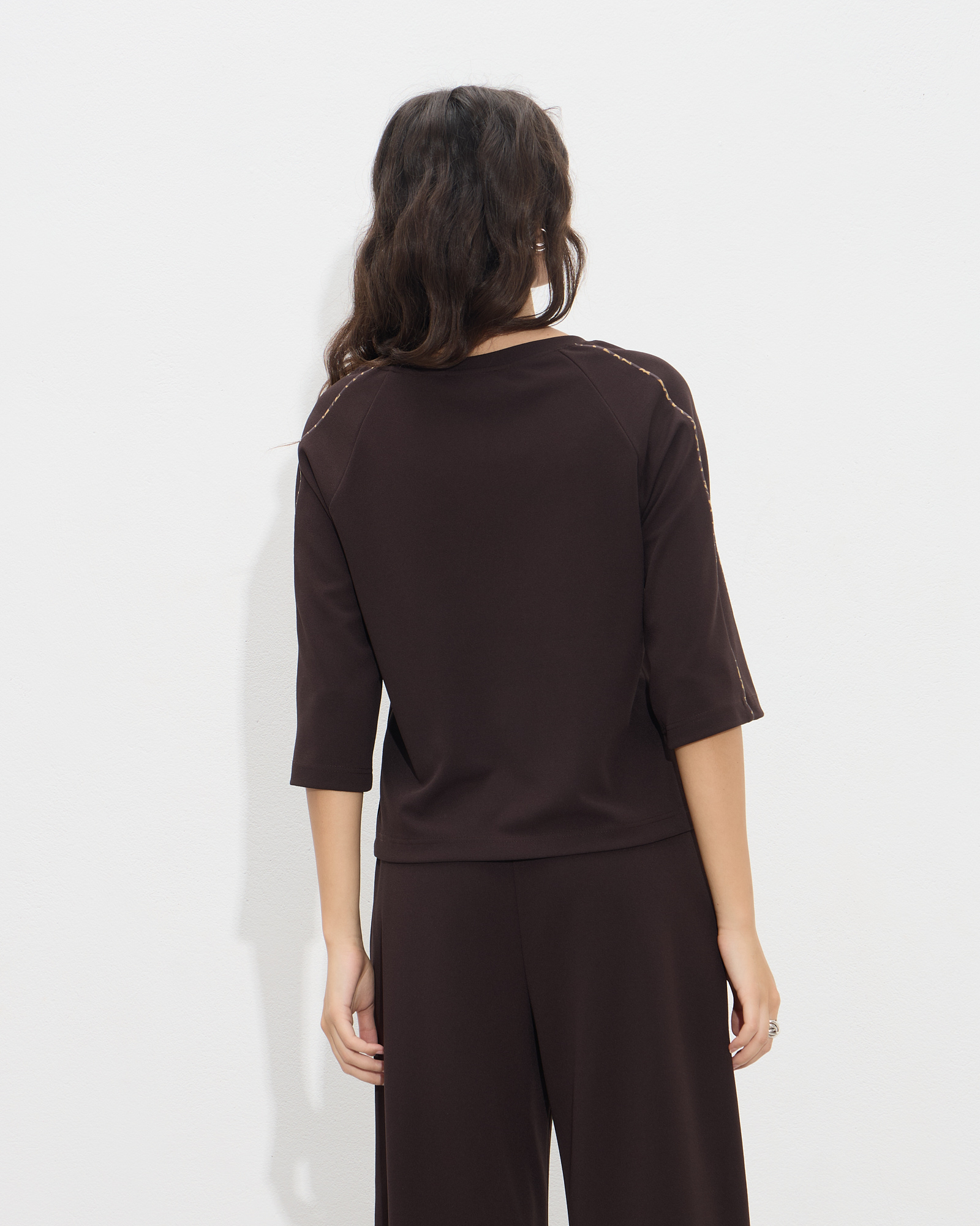 Μπλούζα με μανίκι 3/4 με διακοσμητικό λεοπάρ ρέλι, στρογγυλή λαιμόκοψη, σε κανονική γραμμή