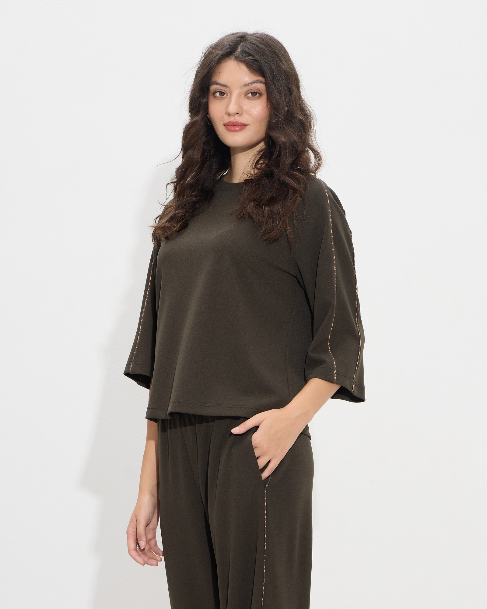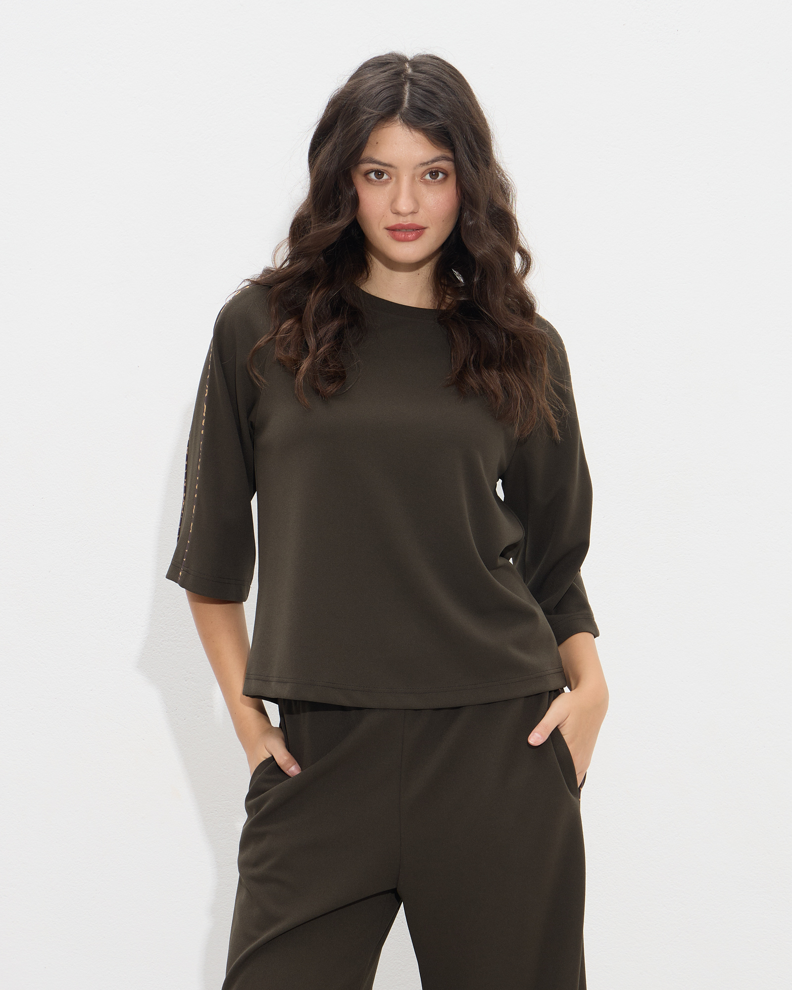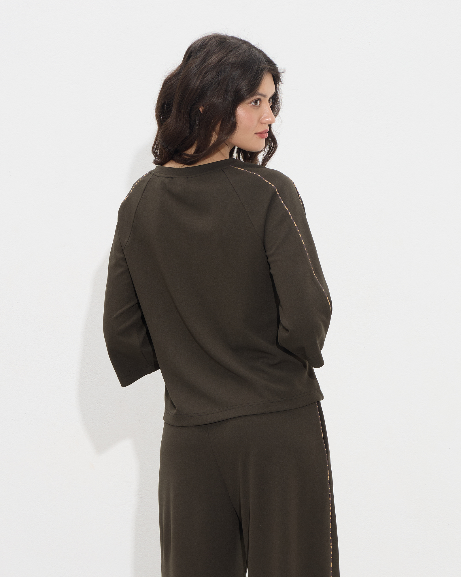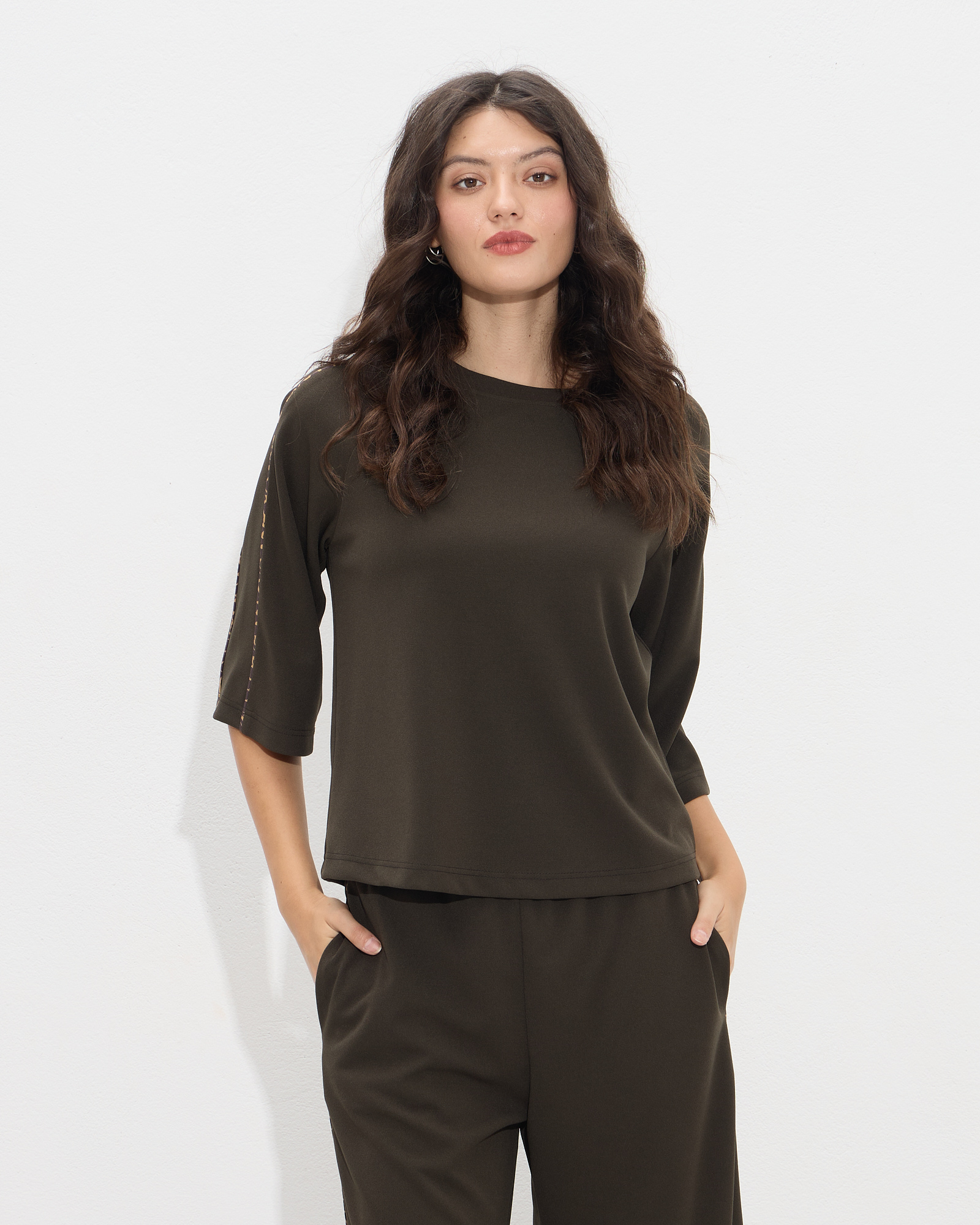 Μπλούζα με μανίκι 3/4 με διακοσμητικό λεοπάρ ρέλι, στρογγυλή λαιμόκοψη, σε κανονική γραμμή