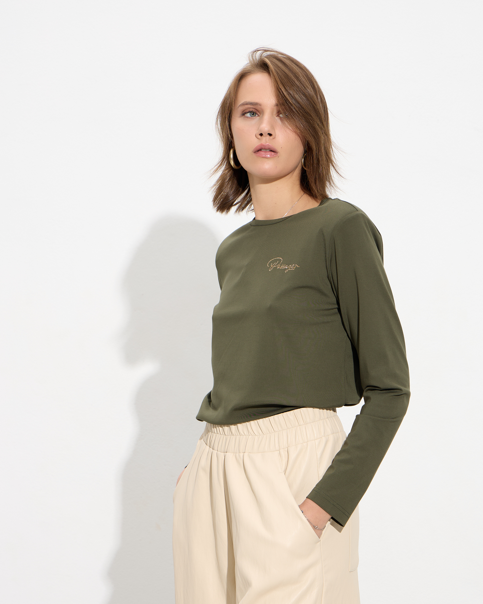 Μπλούζα με μακριά μανίκια, στρογγυλή λαιμόκοψη, διακριτικό λογότυπο Passager σε μαλακό και ελαστικό ύφασμα, σε κανονική γραμμή