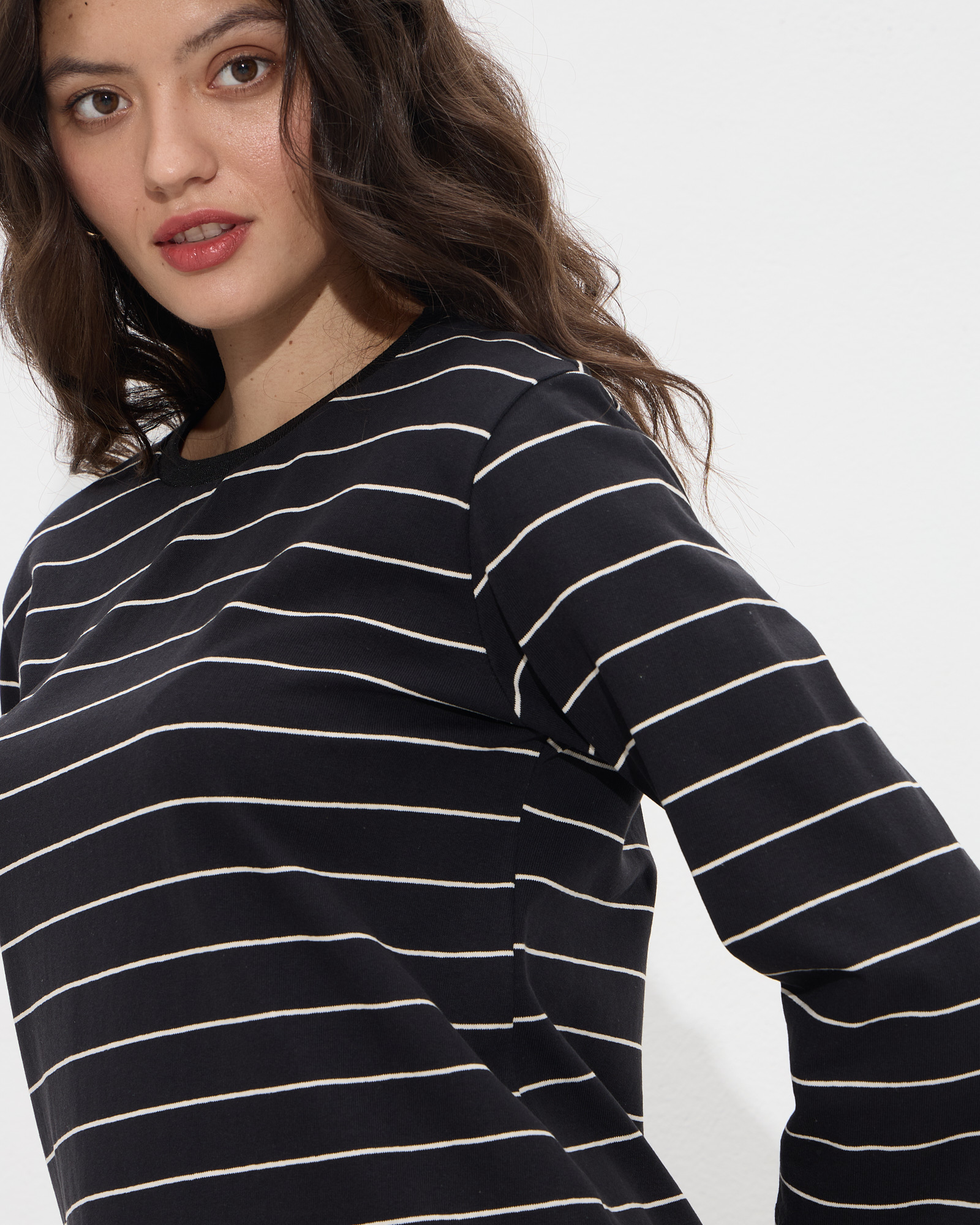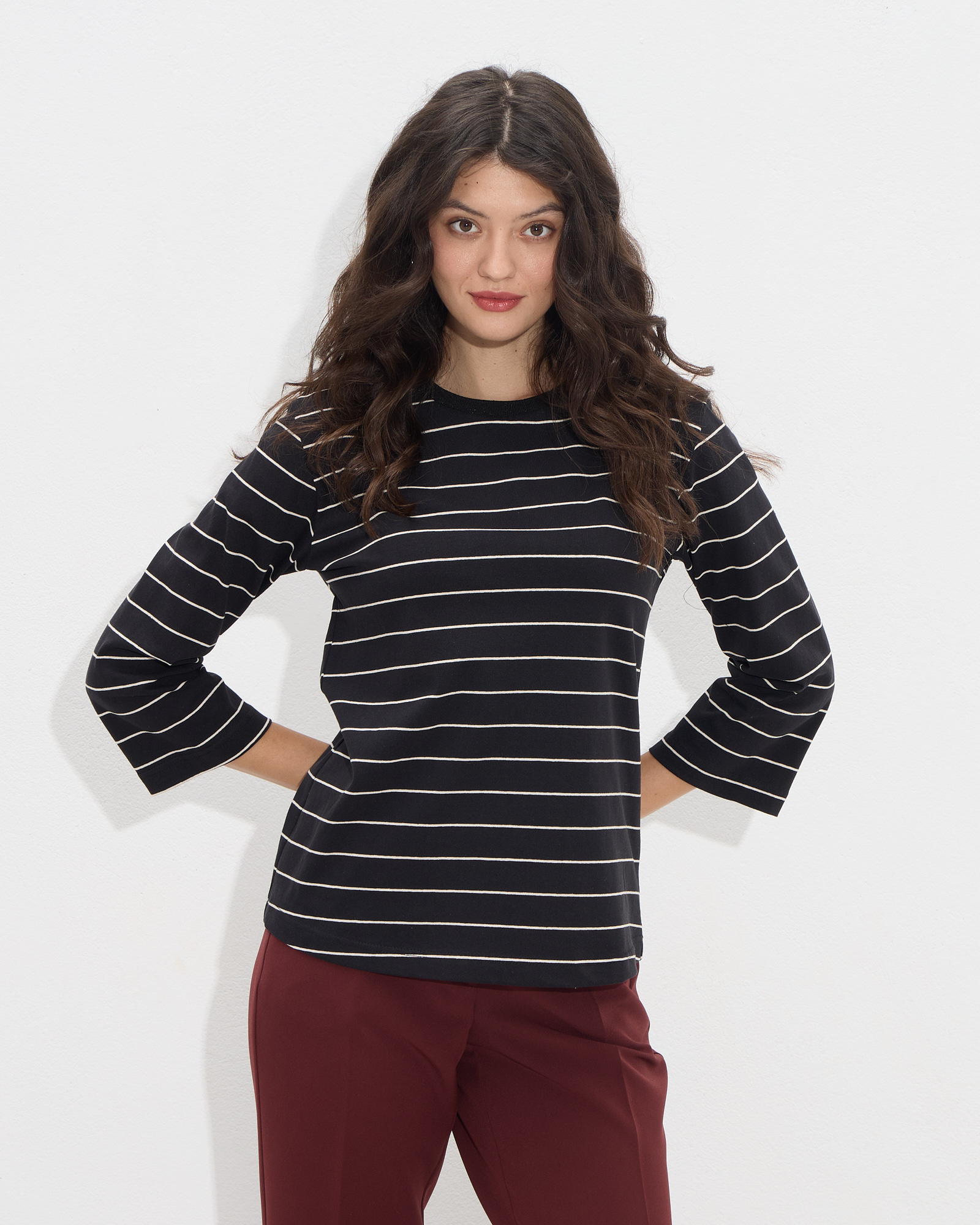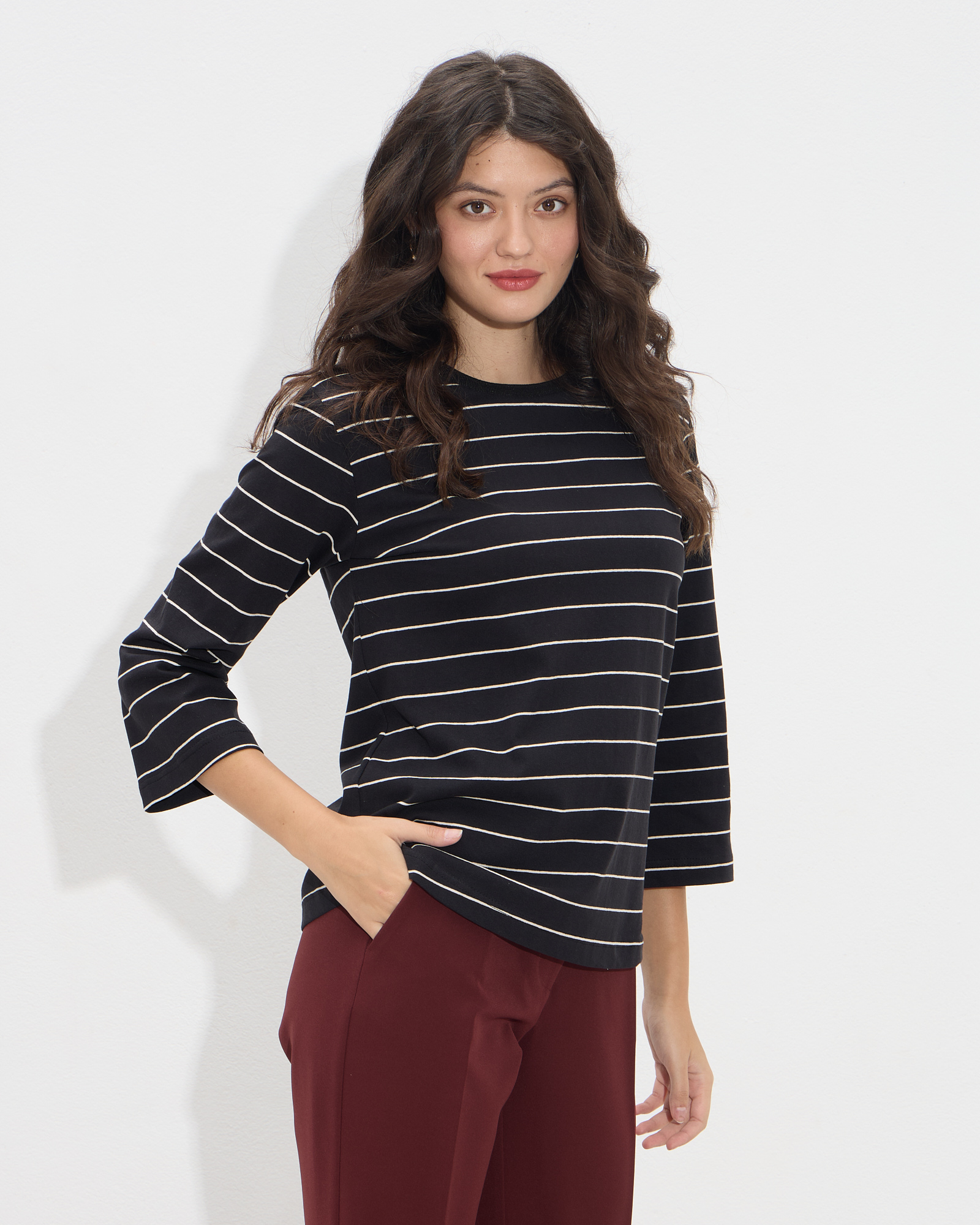 Μπλούζα με 3/4 μανίκι με ρίγες, στρογγυλή λαιμόκοψη σε κανονική γραμμή