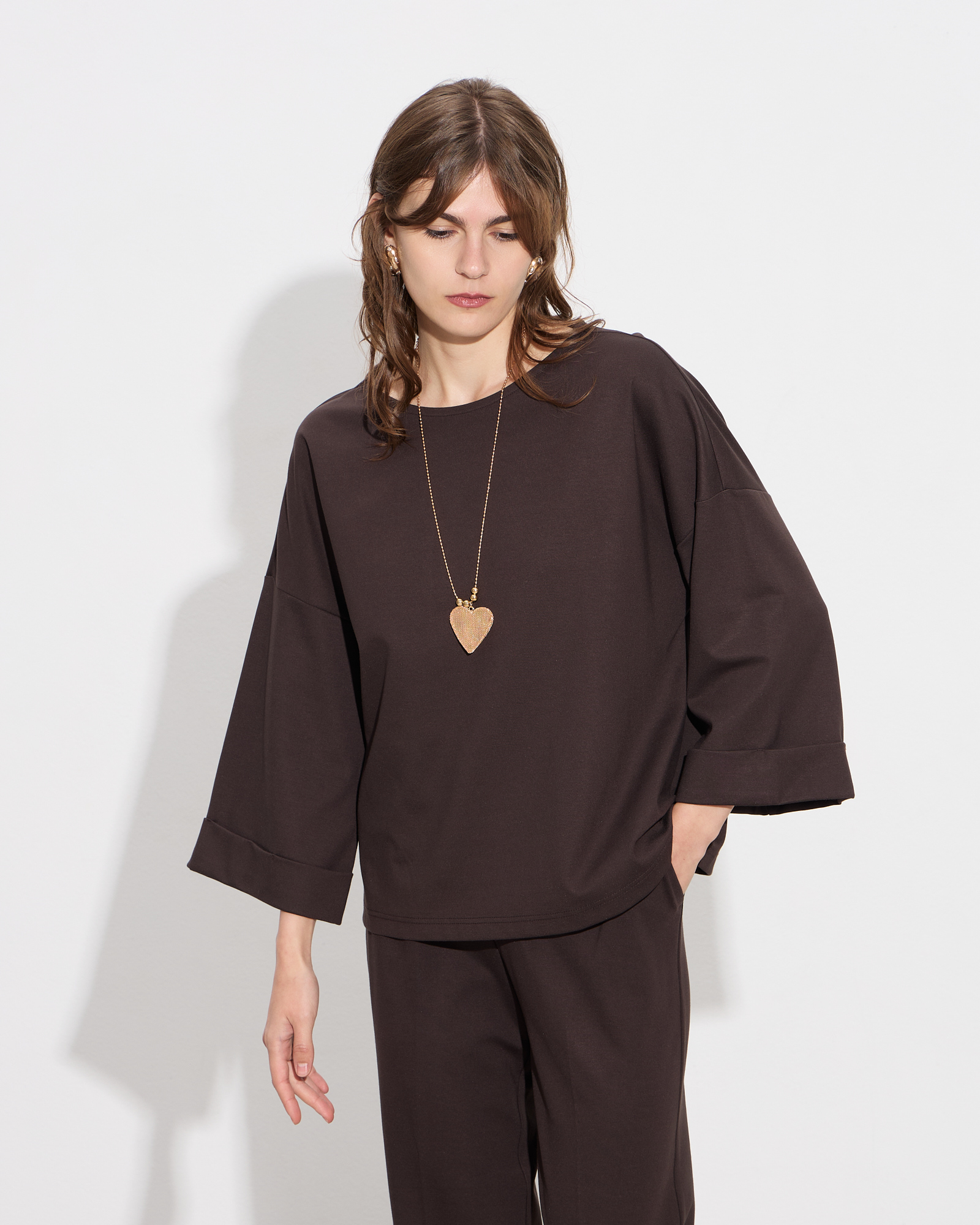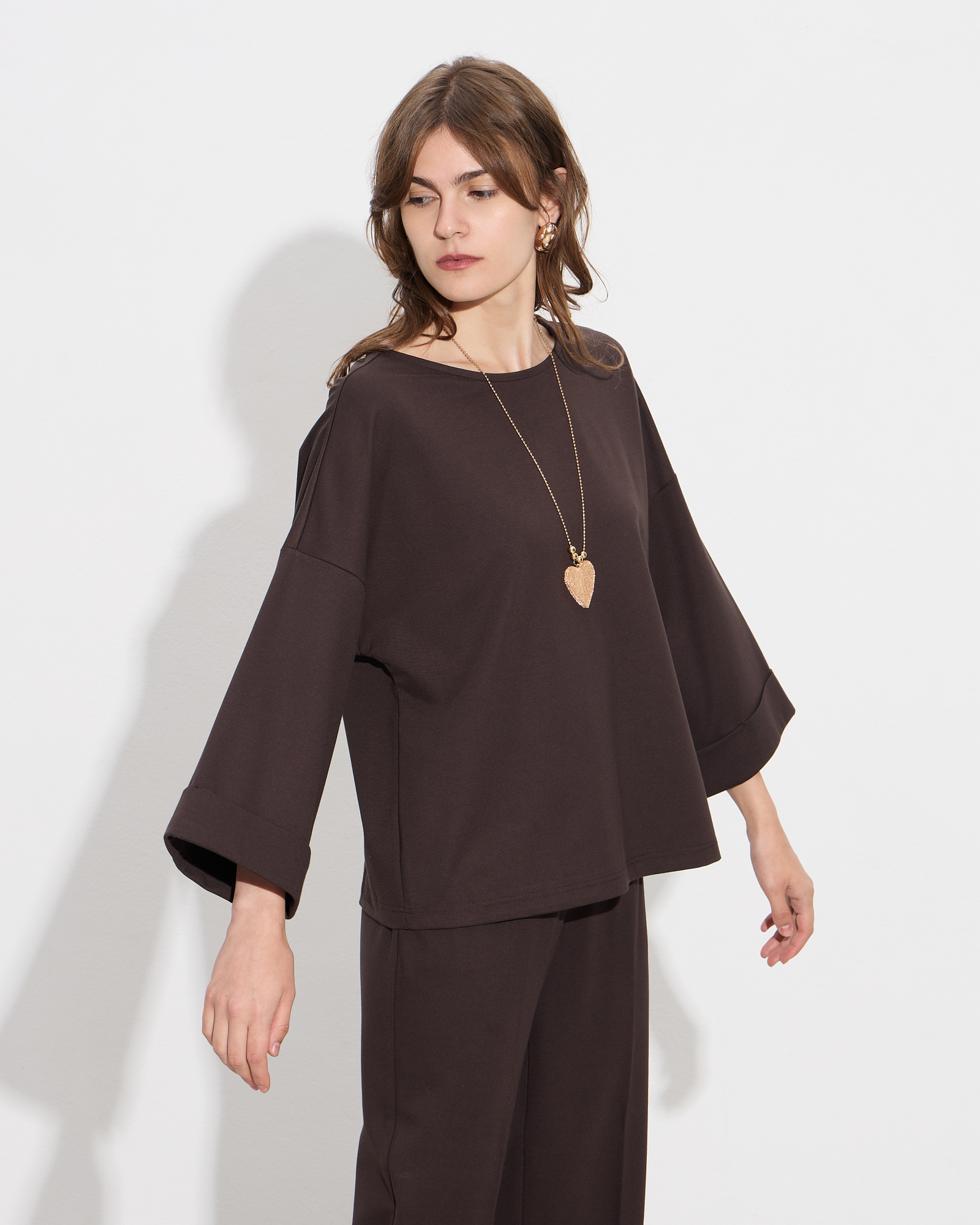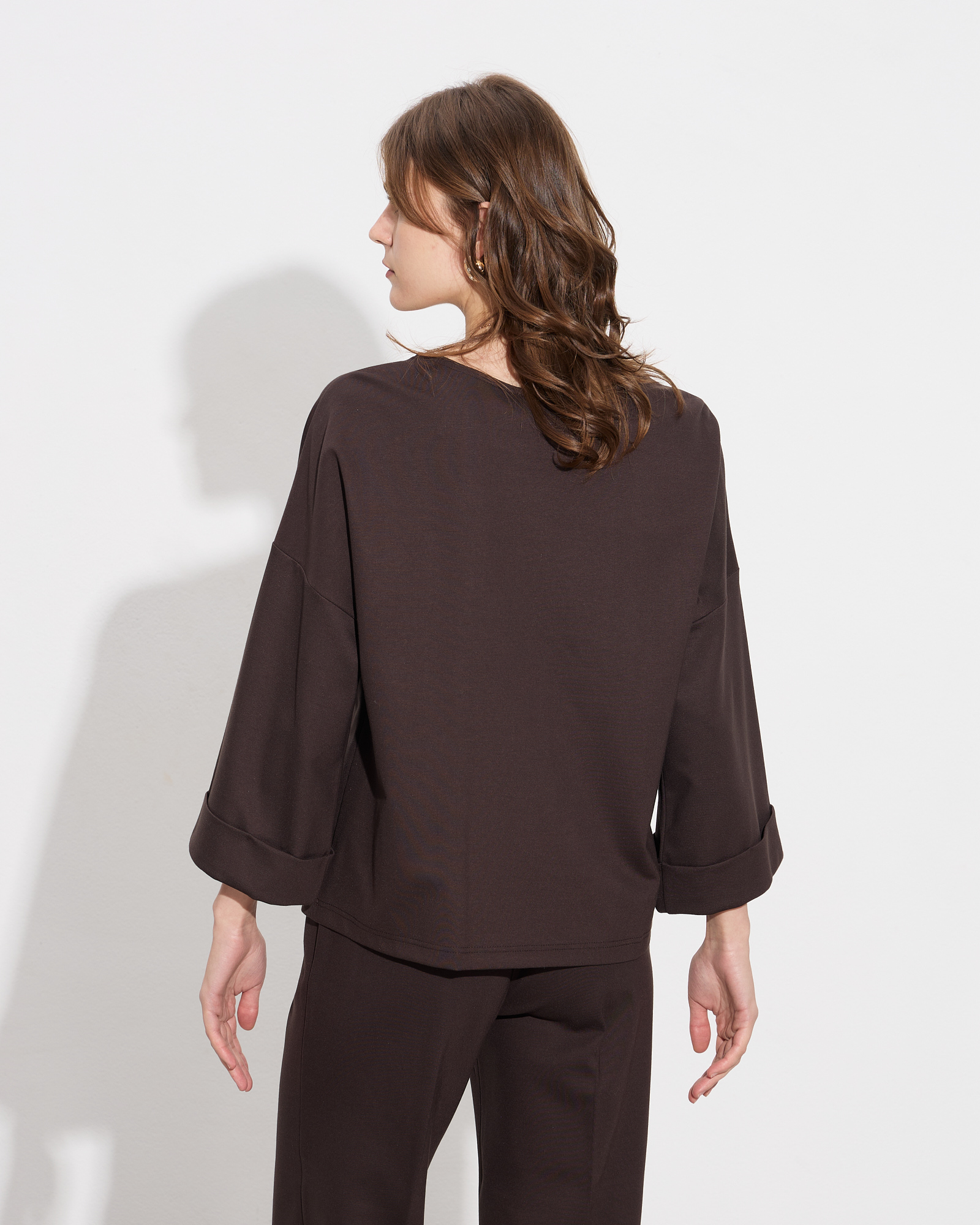 Μπλούζα με στρογγυλή λαιμόκοψη, μανίκια 3/4 με ρεβέρ, ριχτή γραμμή, μαλακή ελαστική υφή σε βισκόζ ύφασμα, σε άνετη εφαρμογή