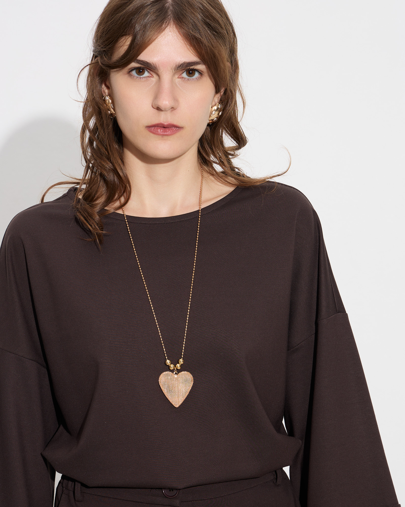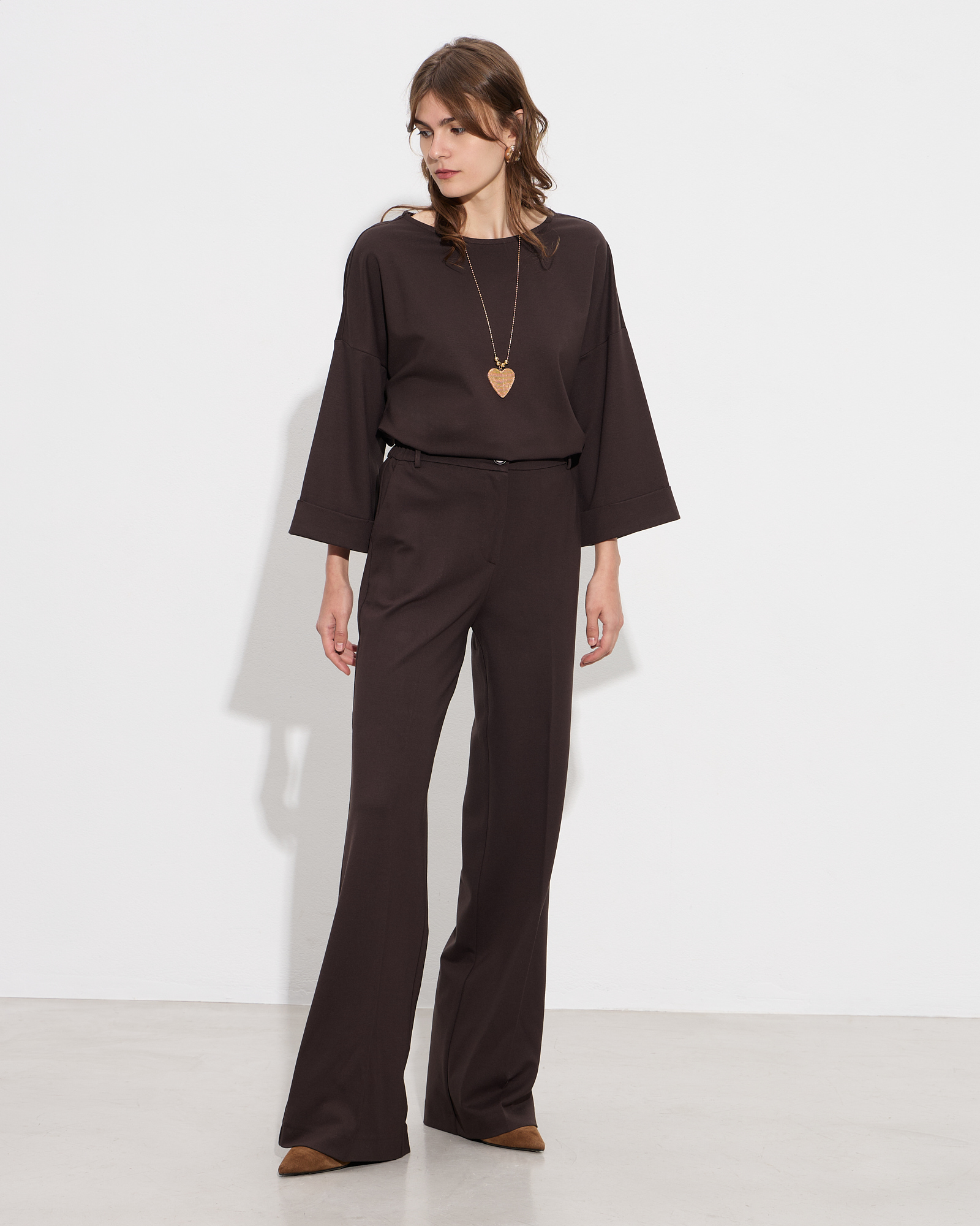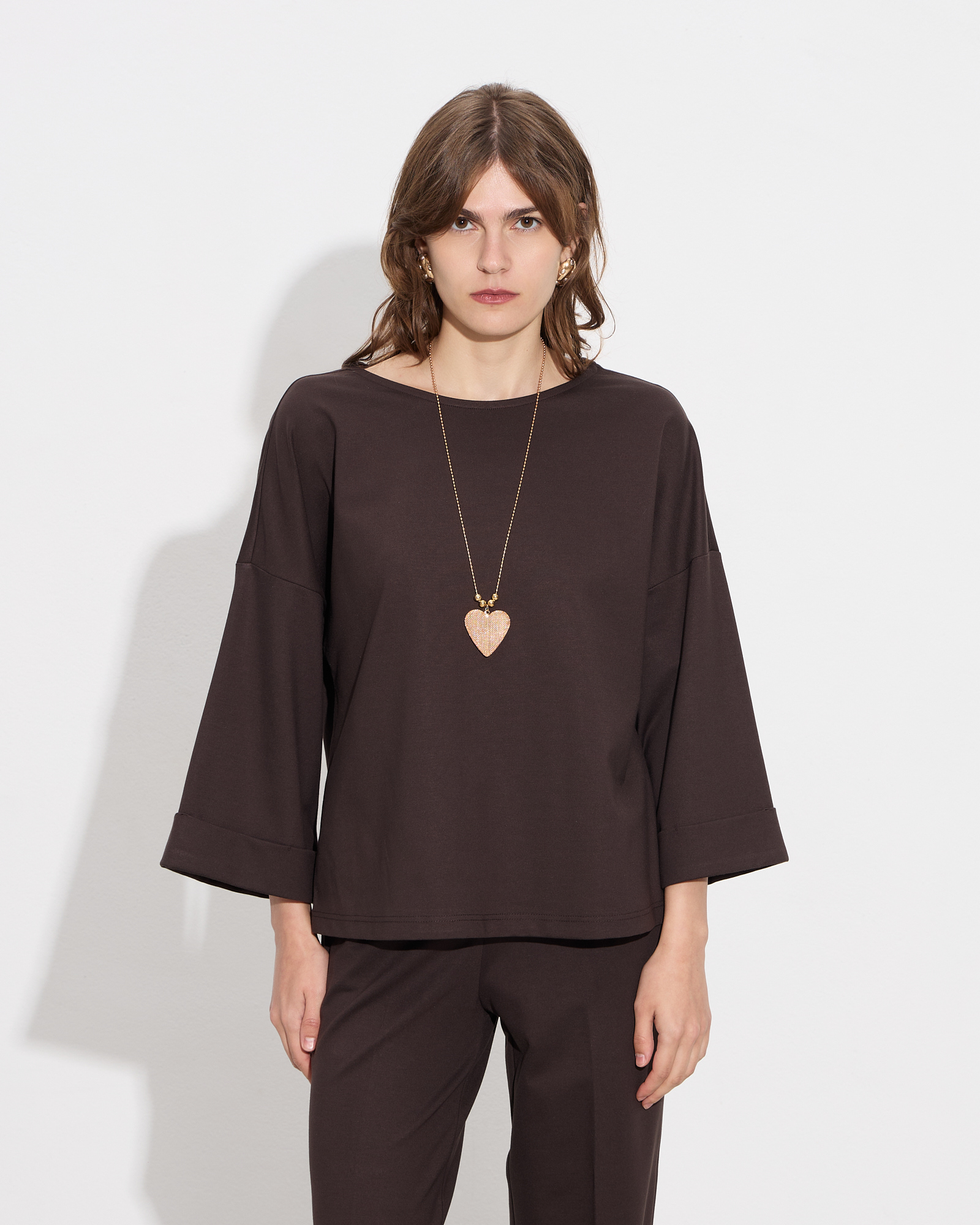 Μπλούζα με στρογγυλή λαιμόκοψη, μανίκια 3/4 με ρεβέρ, ριχτή γραμμή, μαλακή ελαστική υφή σε βισκόζ ύφασμα, σε άνετη εφαρμογή
