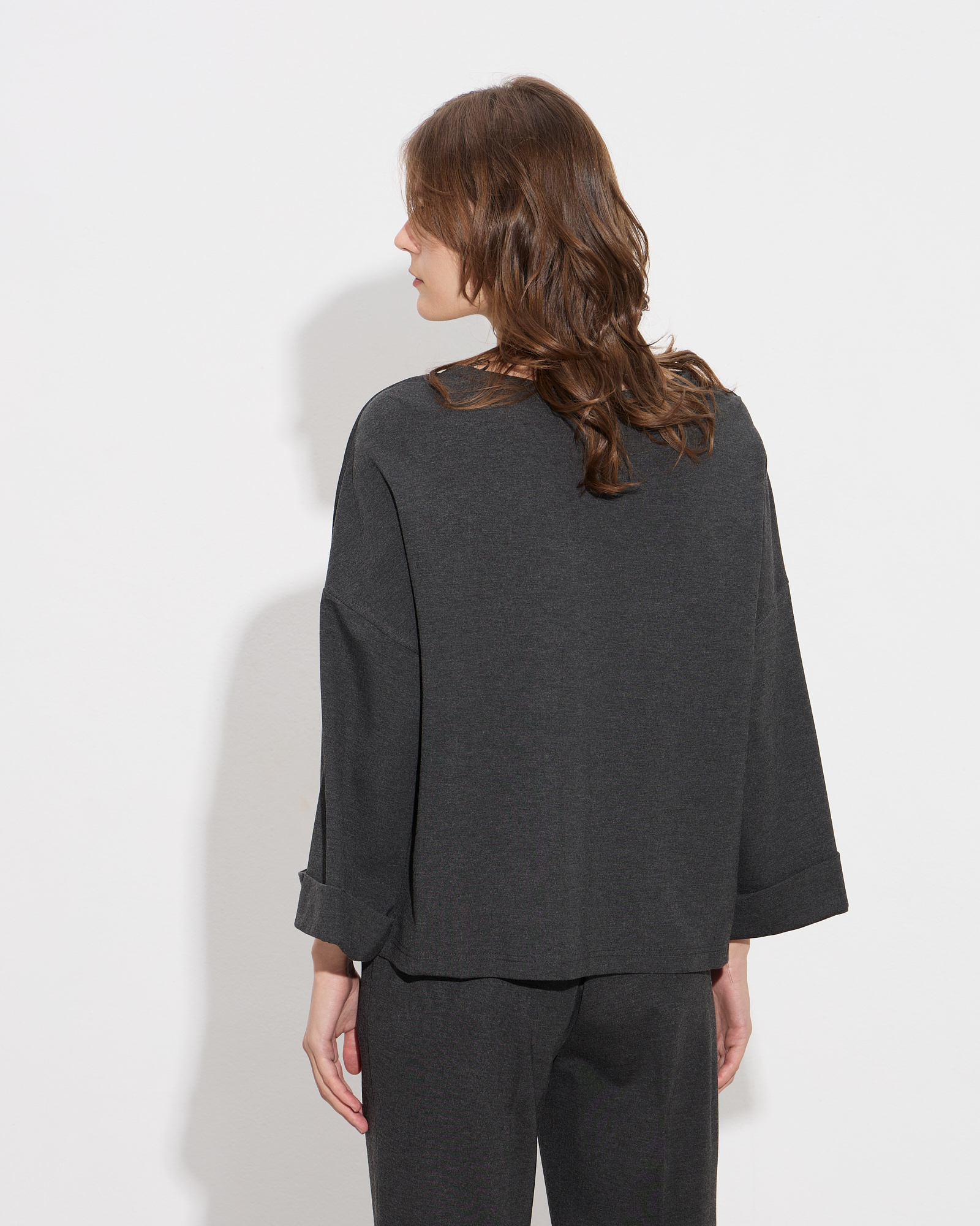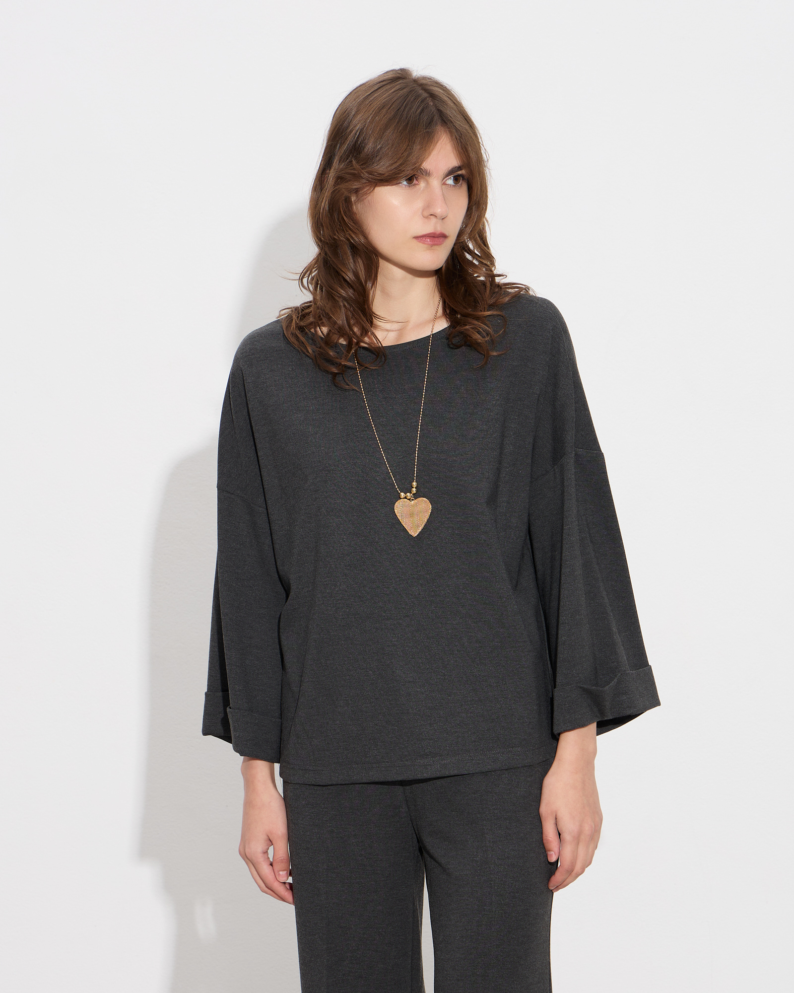 Μπλούζα με στρογγυλή λαιμόκοψη, μανίκια 3/4 με ρεβέρ, ριχτή γραμμή, μαλακή ελαστική υφή σε βισκόζ ύφασμα, σε άνετη εφαρμογή