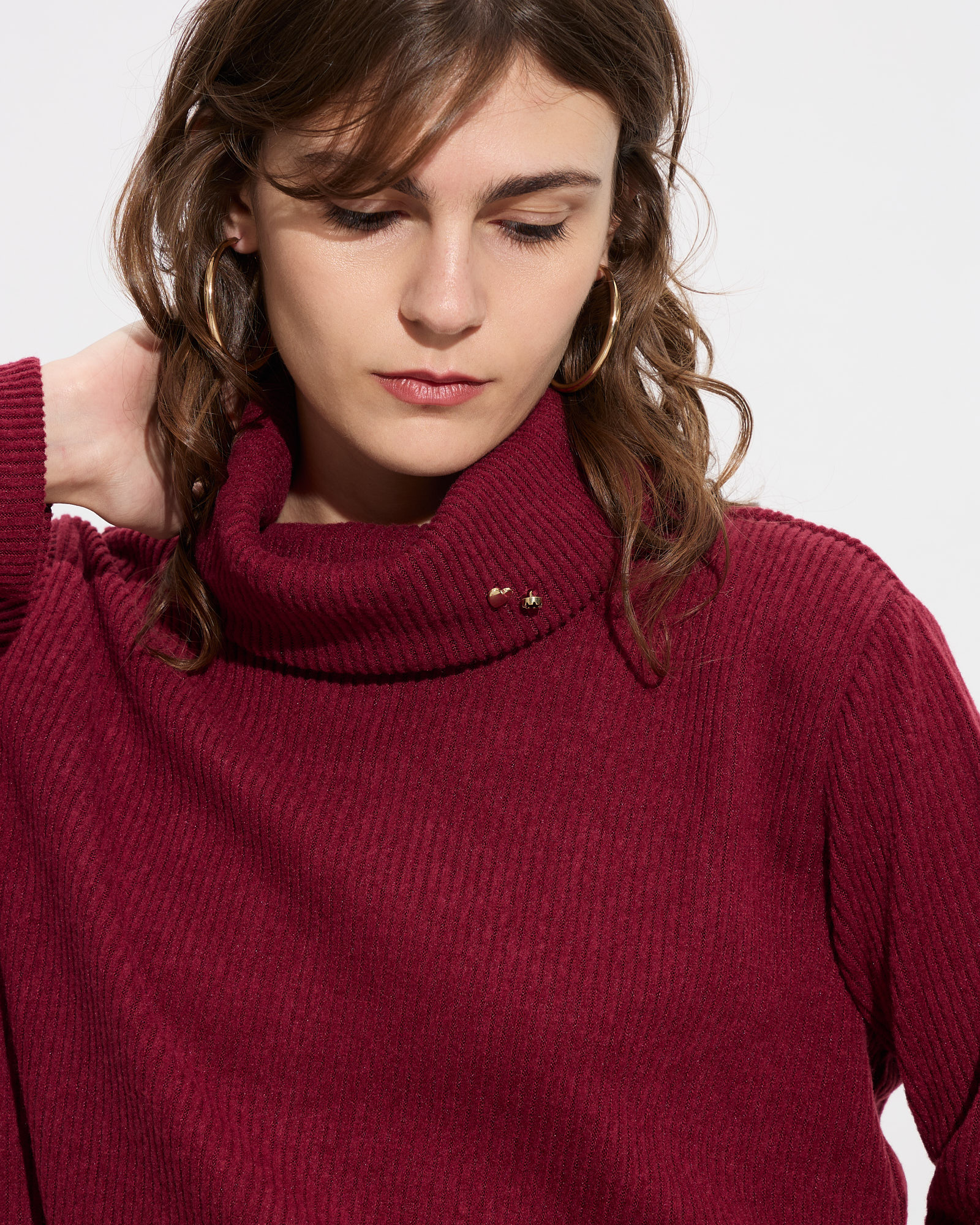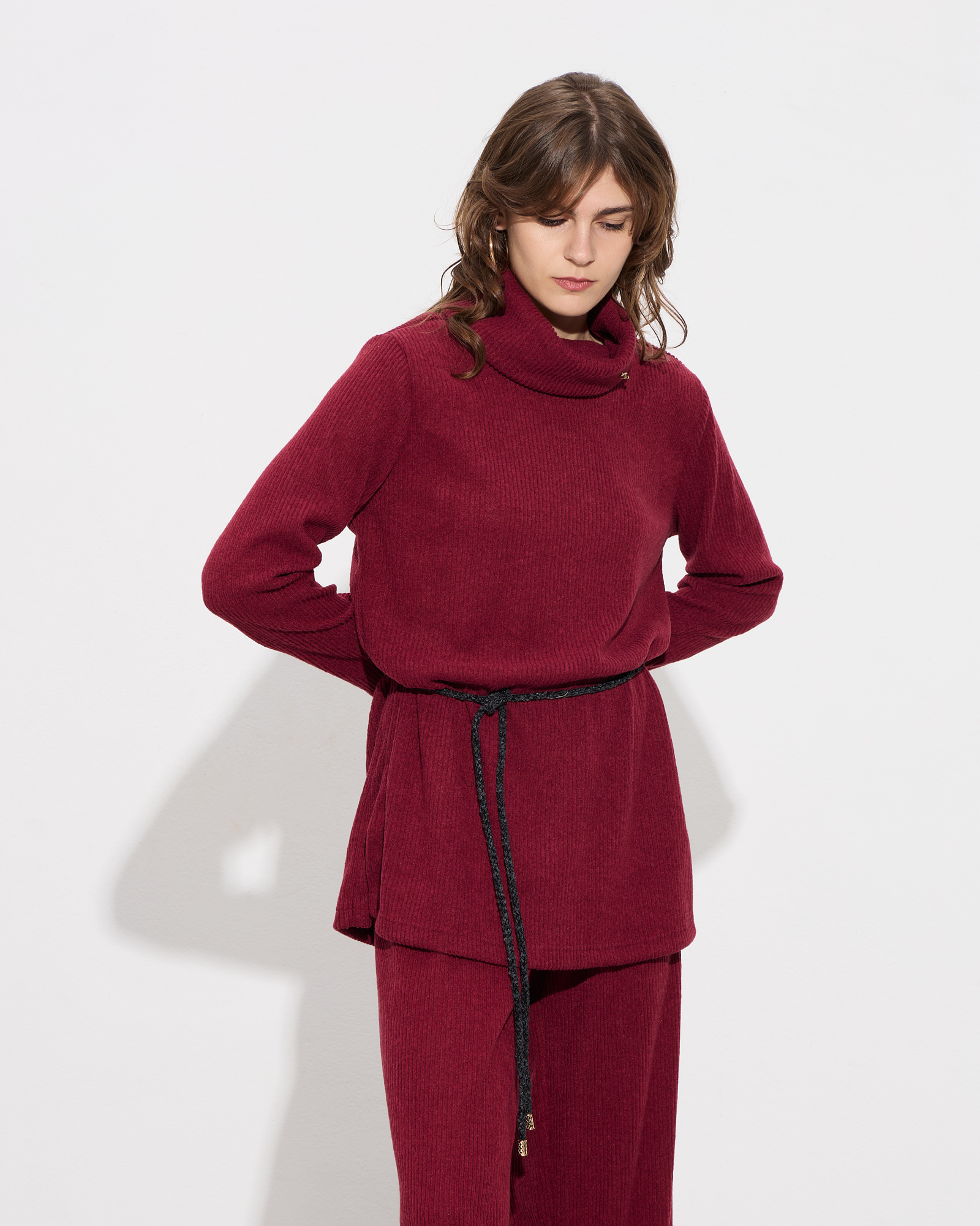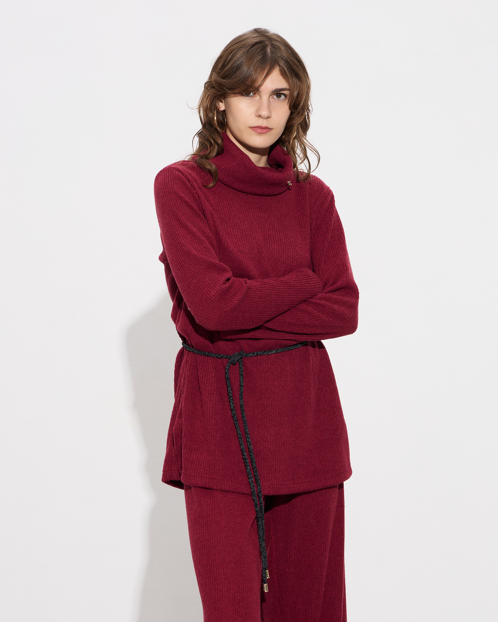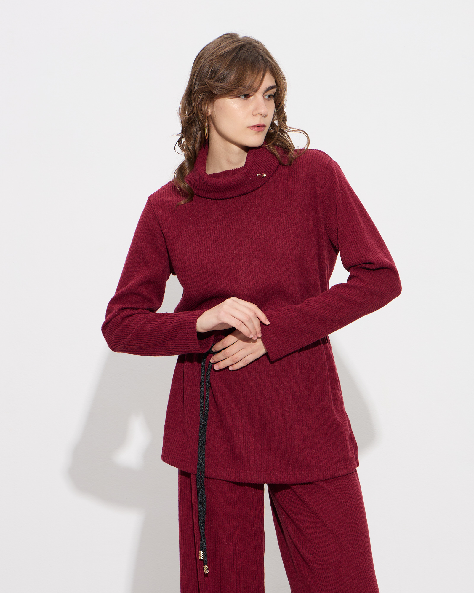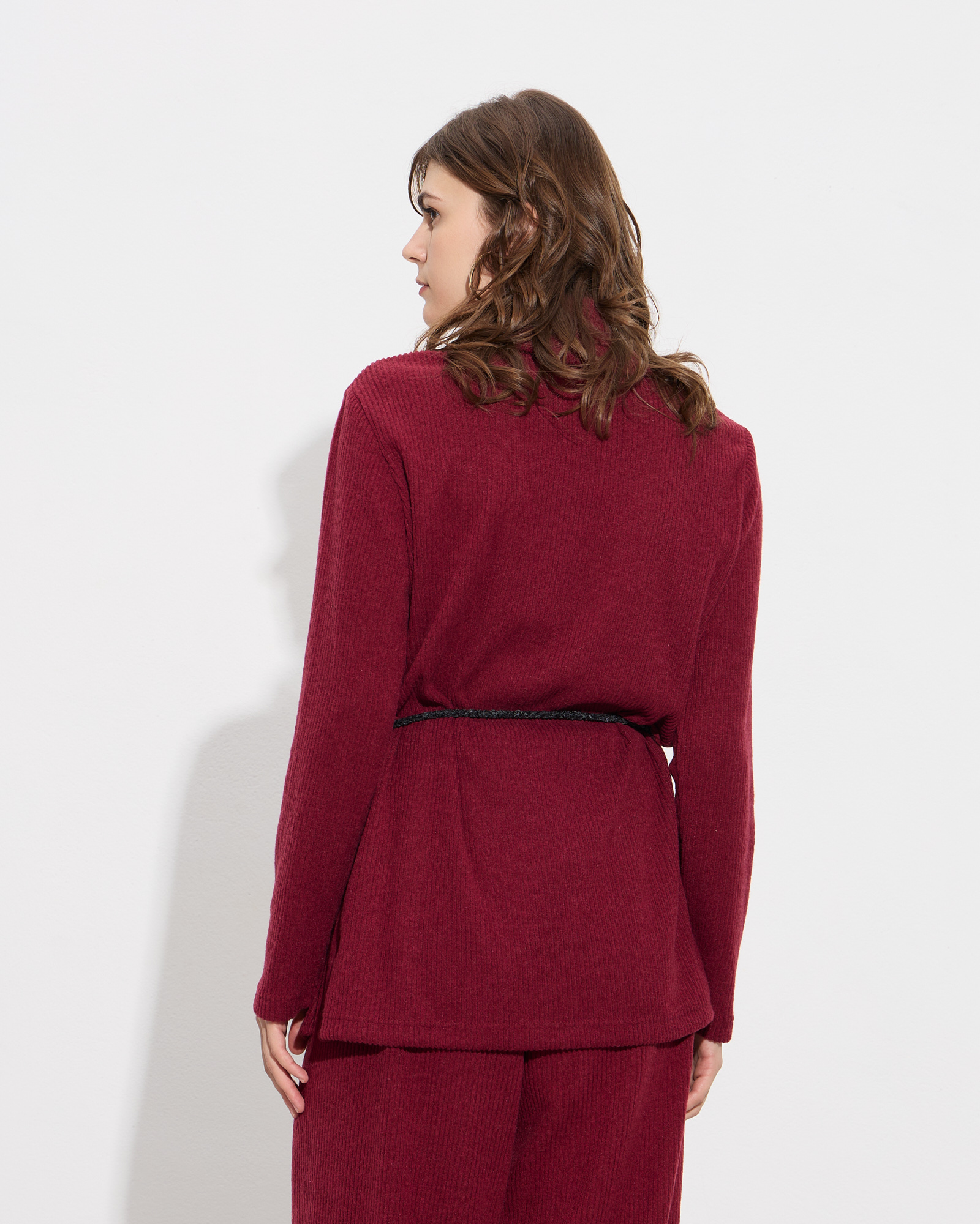 Μπλούζα ριπ με χαλαρό ζιβάγκο, μακρύ μανίκι, σκισίματα στο τελείωμα, με ζώνη σε κανονική γραμμή