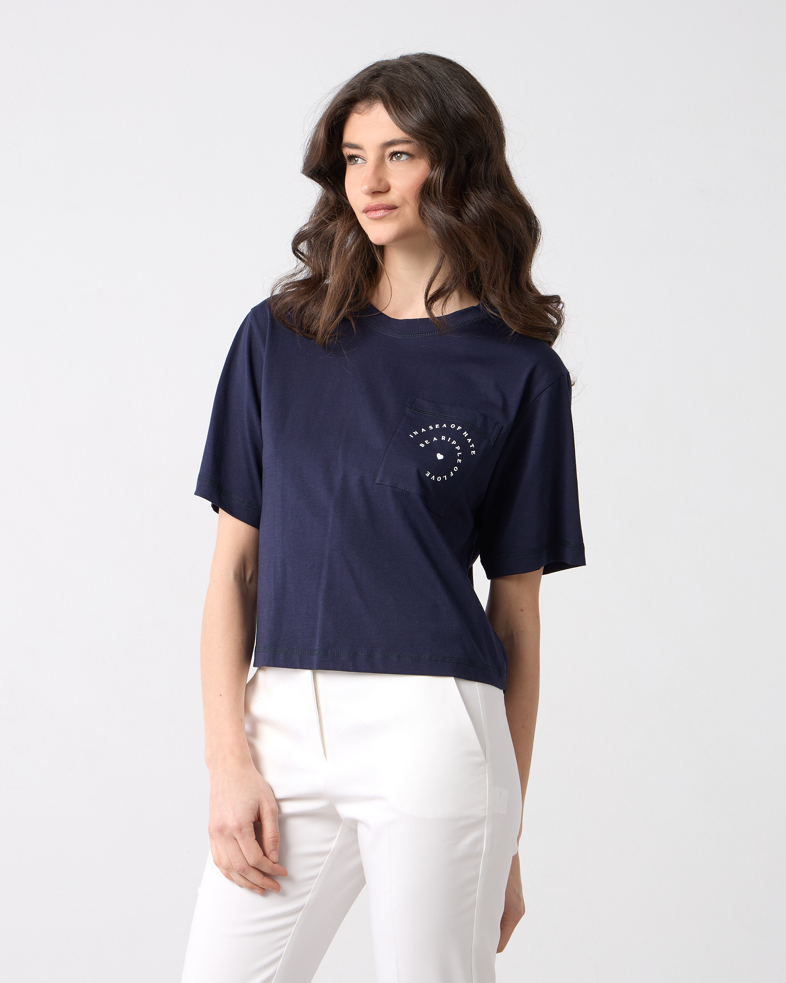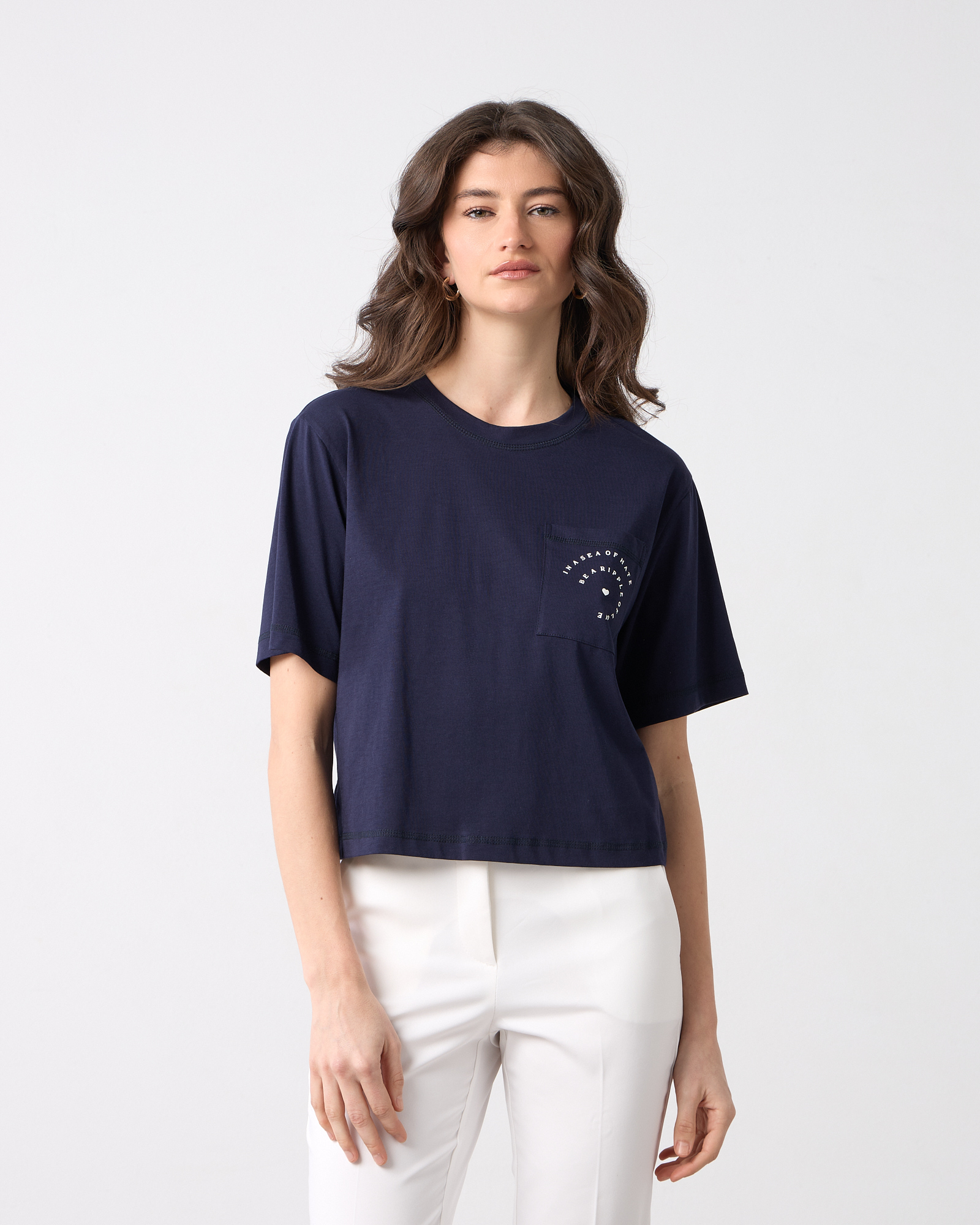 T-shirt κοντομάνικο με στρογγυλή λαιμόκοψη, διακοσμητική τσέπη με διακριτικό τύπωμα, βαμβακερό, σε άνετη γραμμηή
