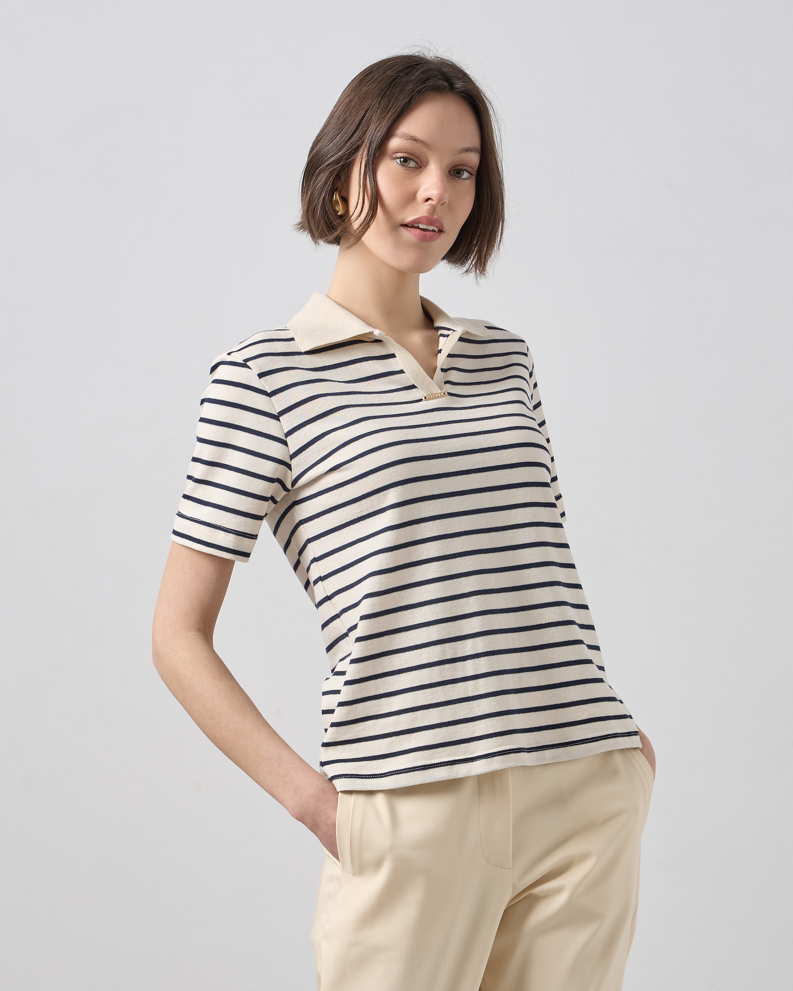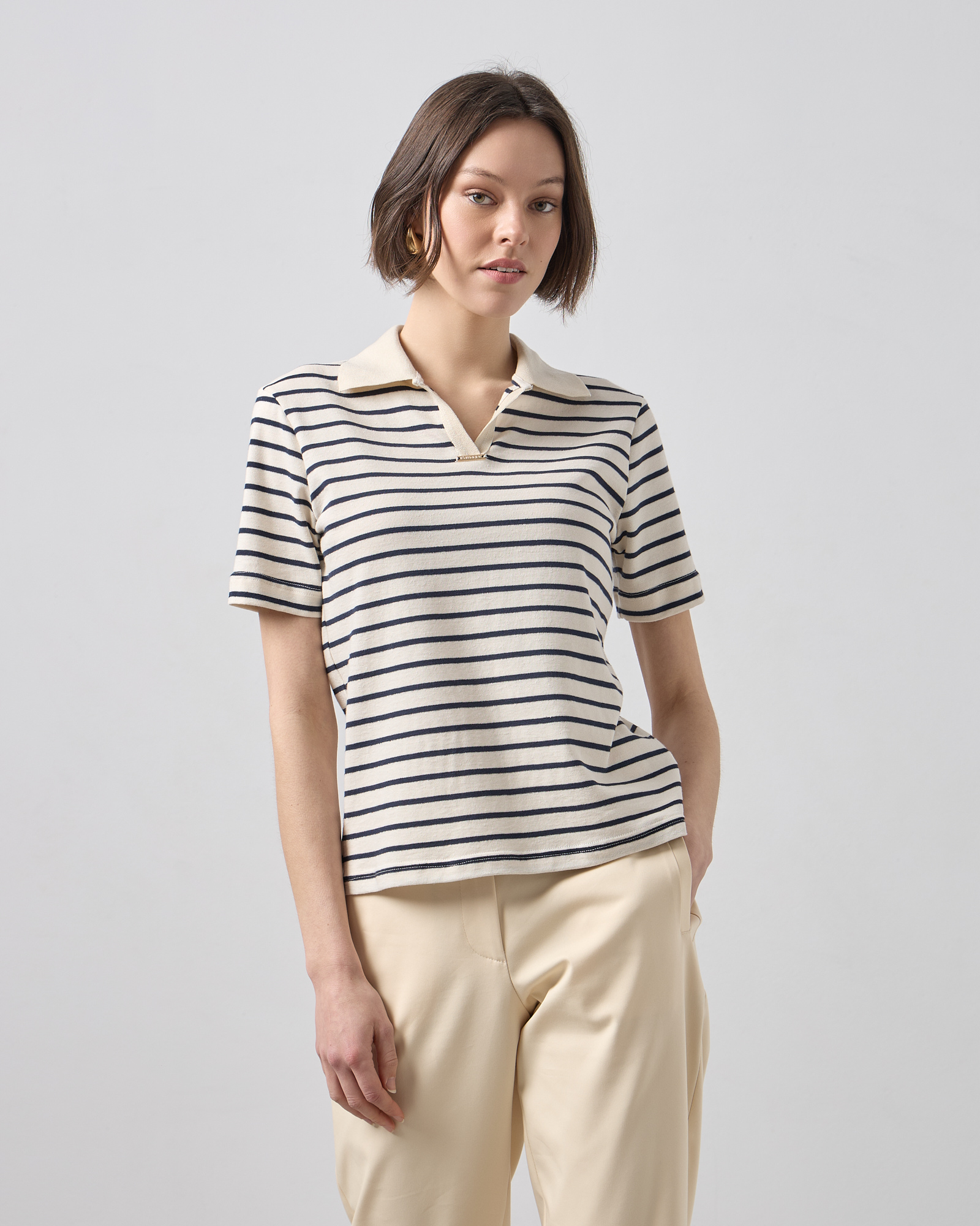 Μπλούζα ριγέ κοντομάνικη με πόλο γιακά σε κανονική εφαρμογή