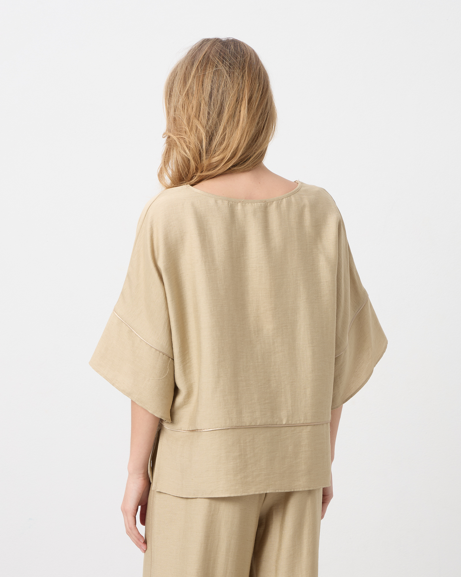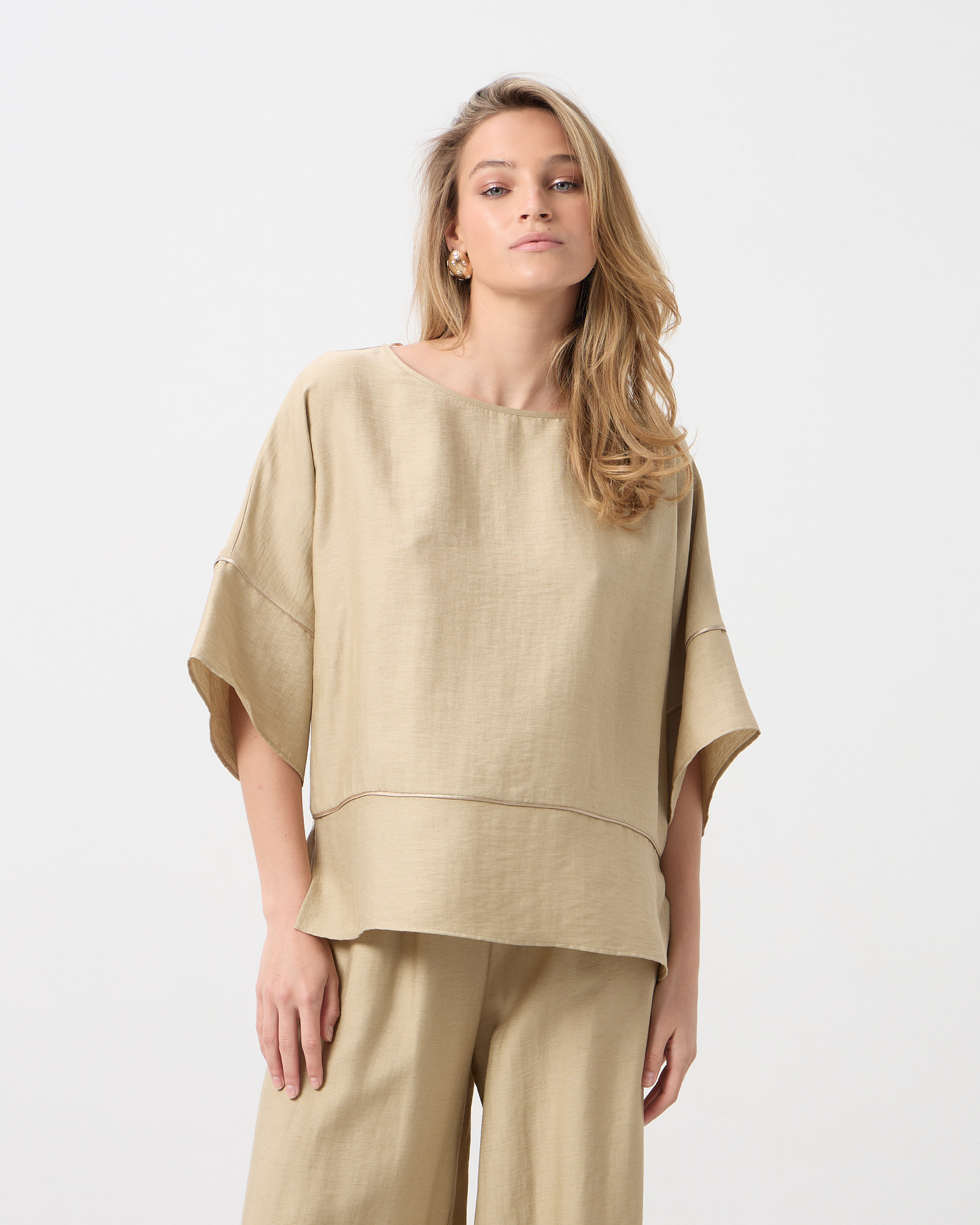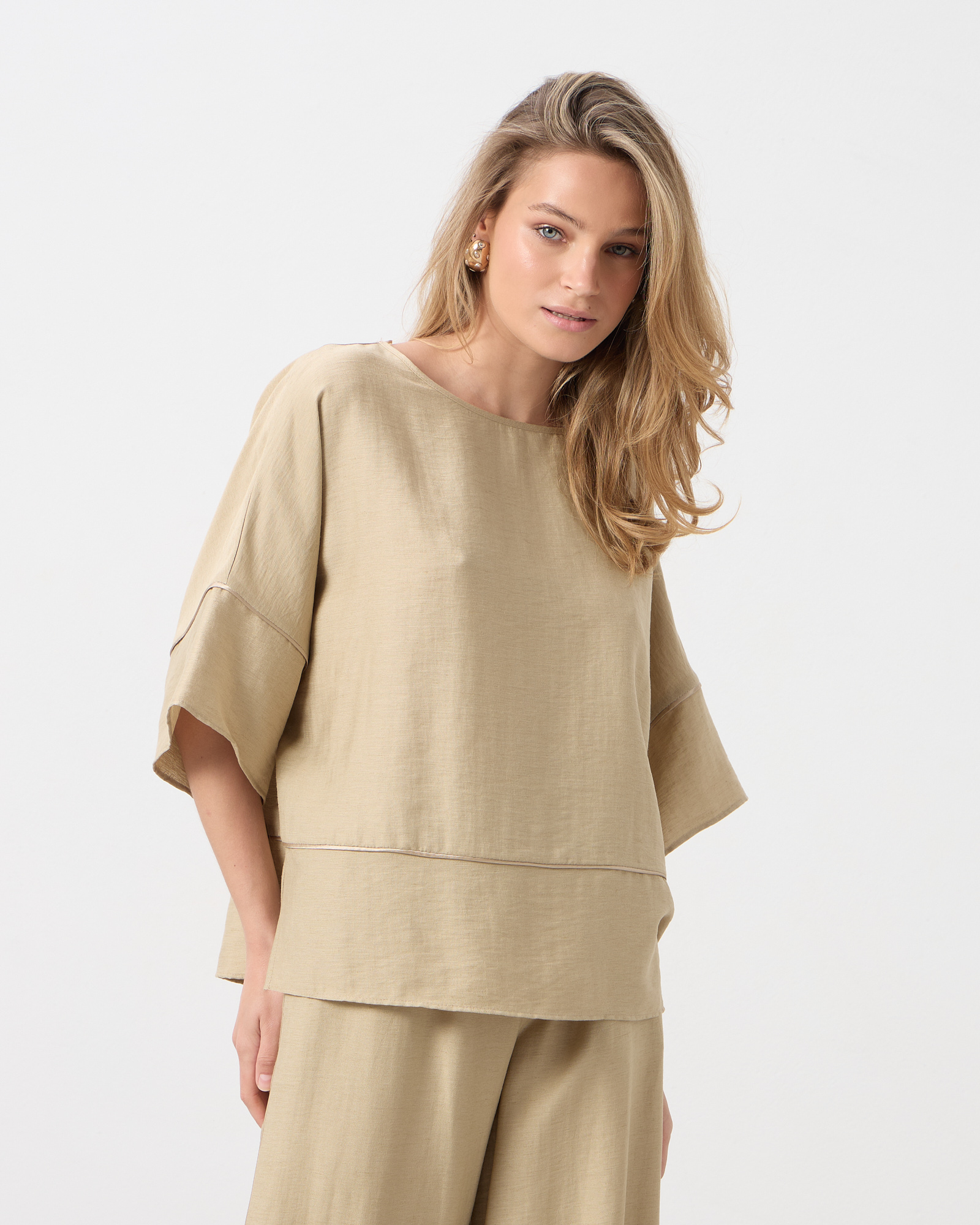 Μπλούζα με λαιμόκοψη χαμόγελο, μανίκι 3/4, διακοσμητική τρέσα σε άνετη εφαρμογή