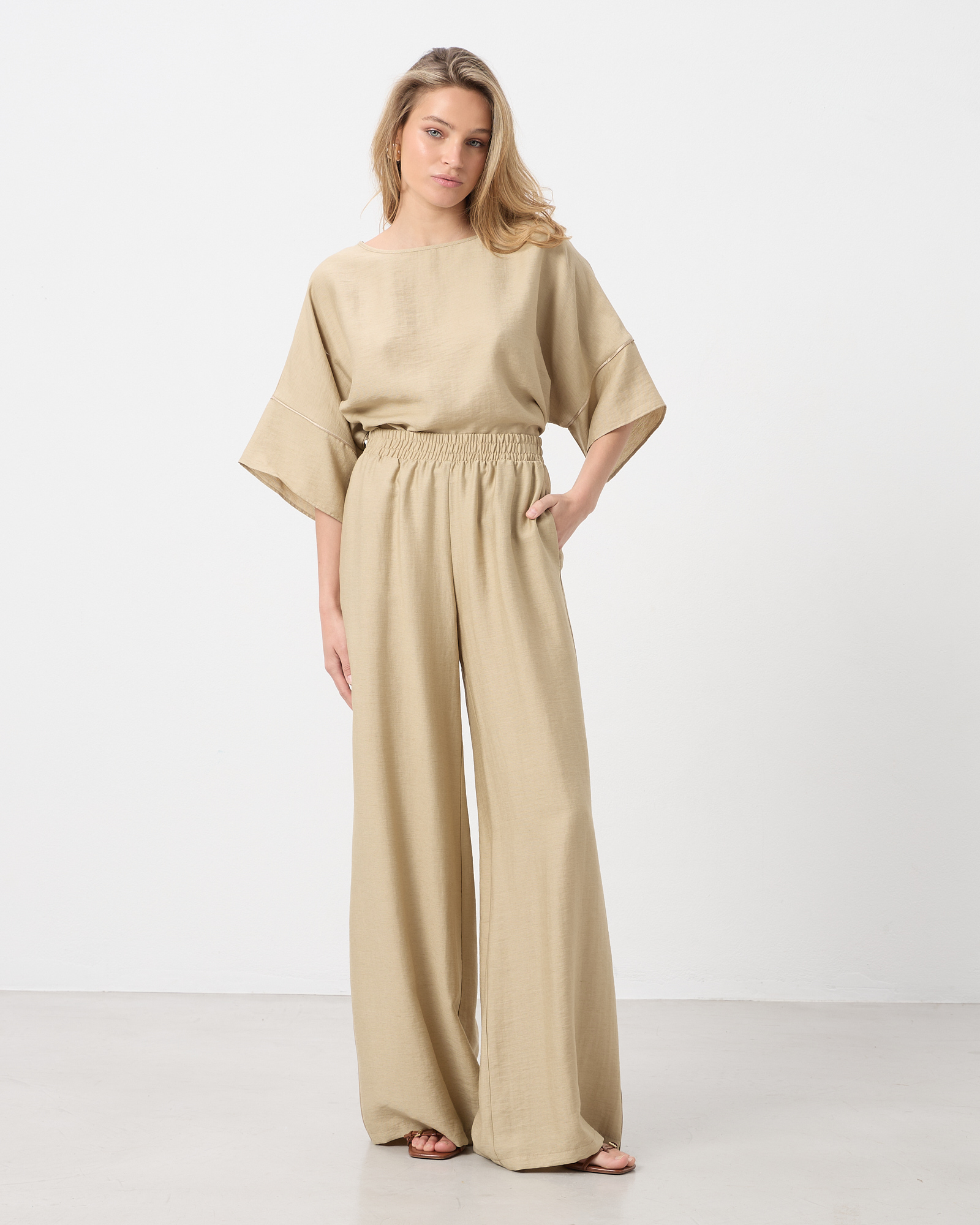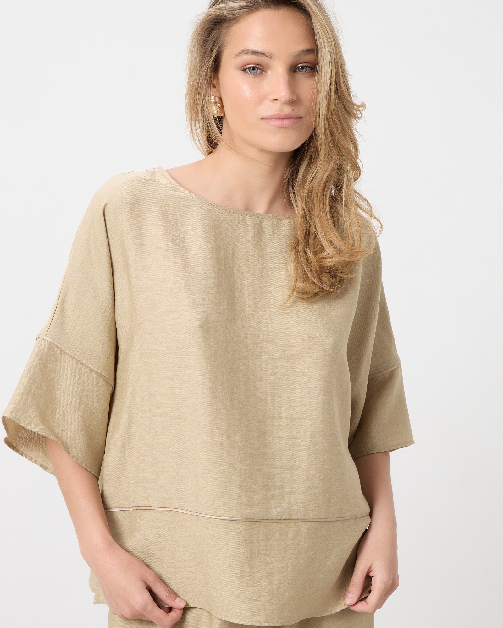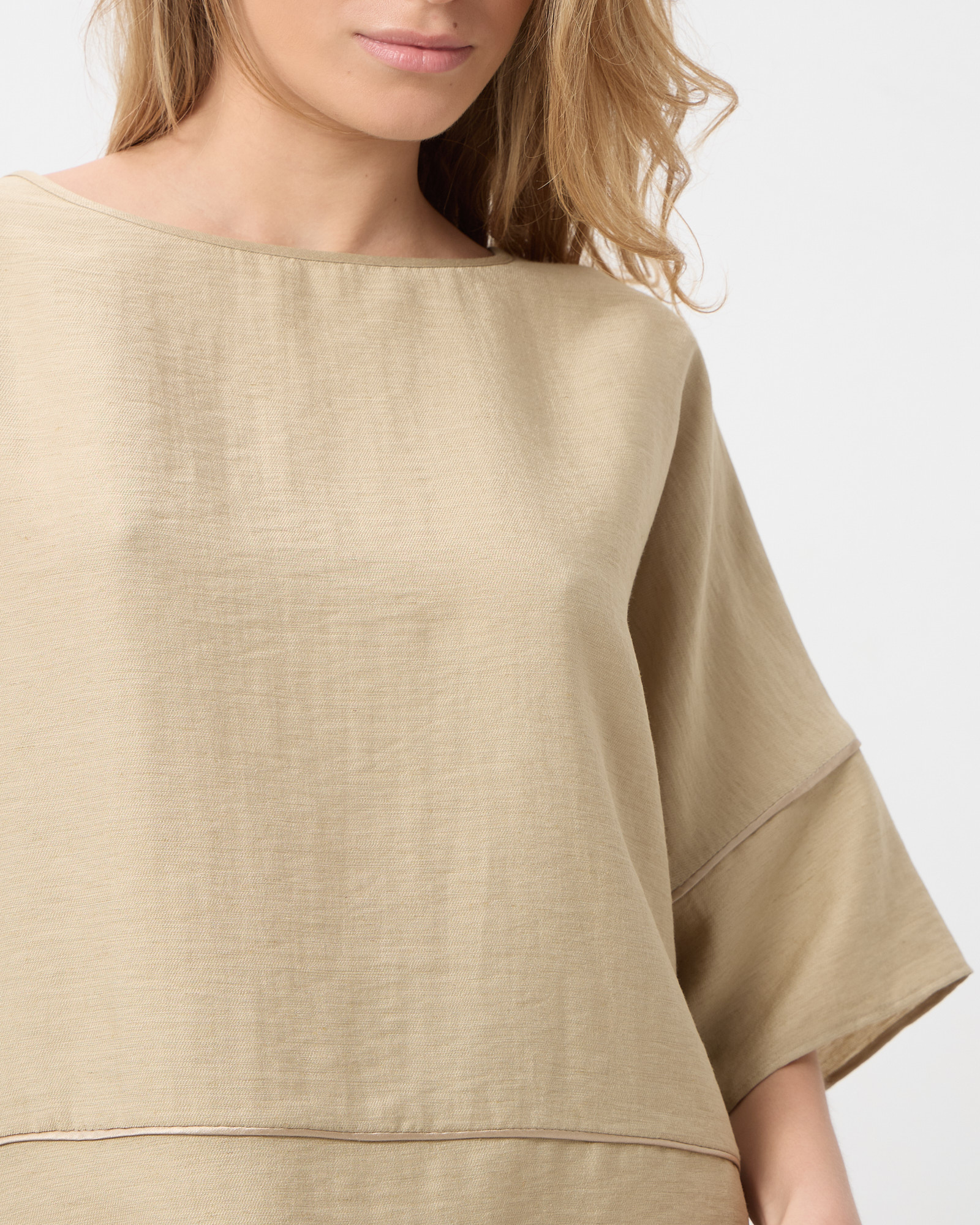 Μπλούζα με λαιμόκοψη χαμόγελο, μανίκι 3/4, διακοσμητική τρέσα σε άνετη εφαρμογή