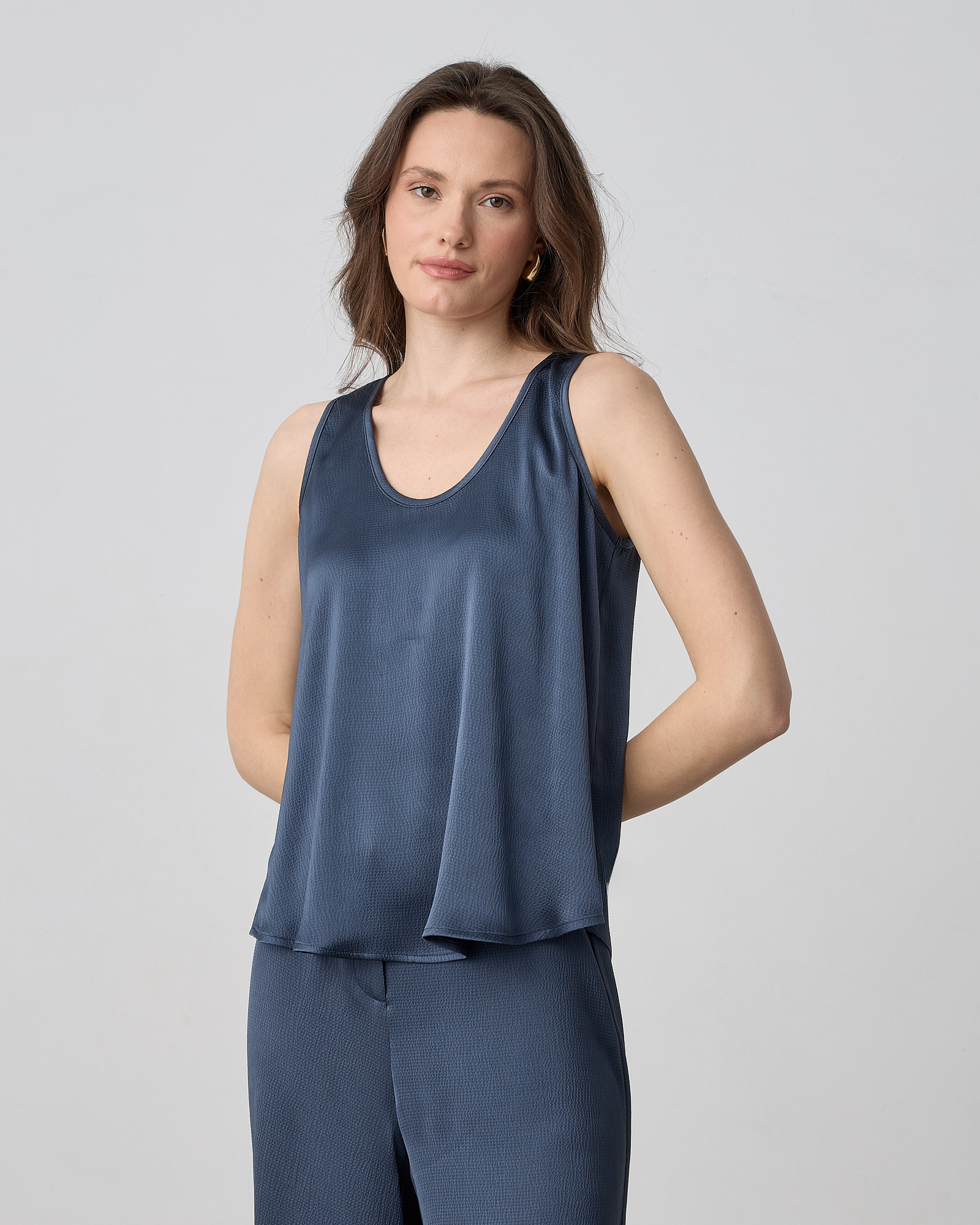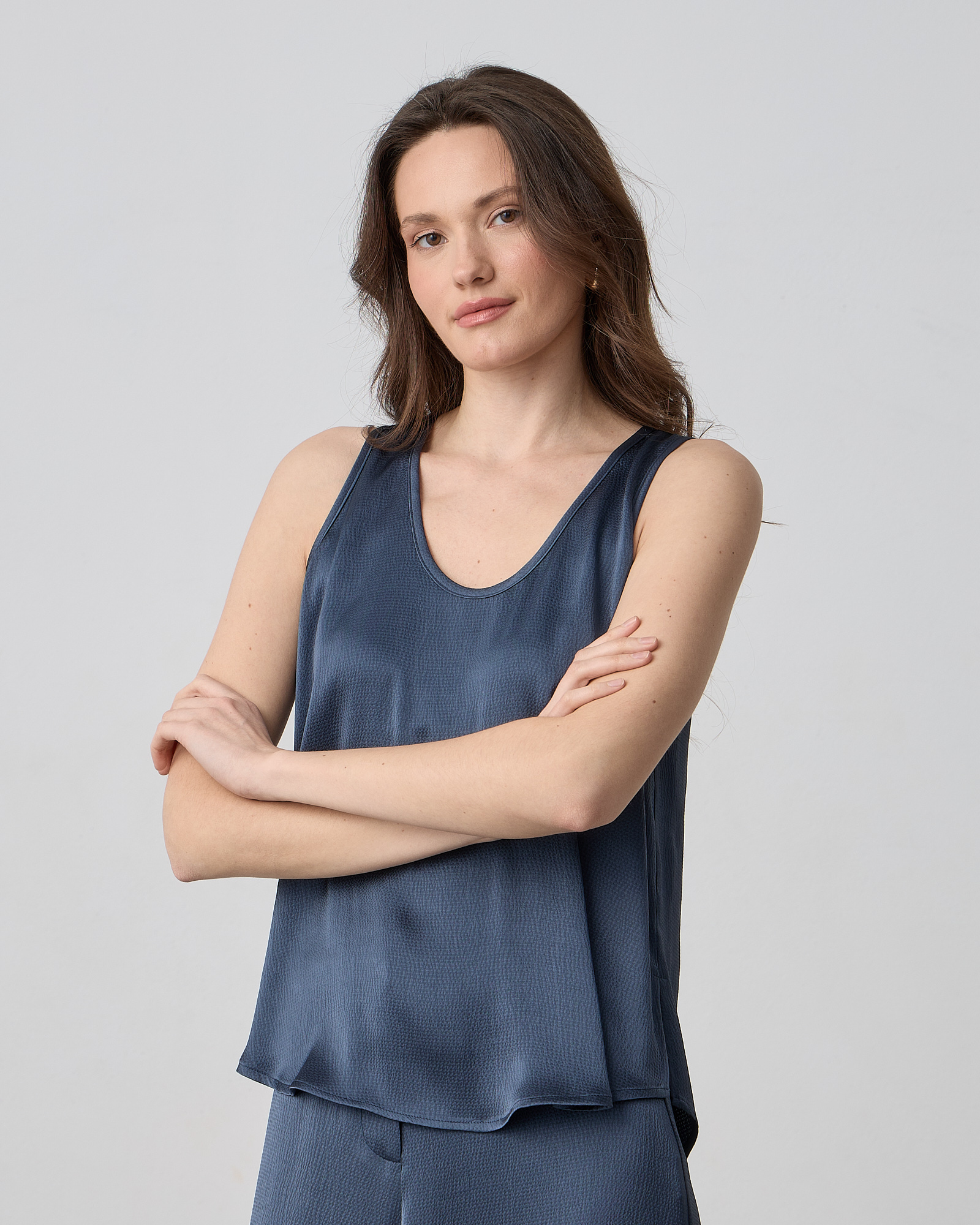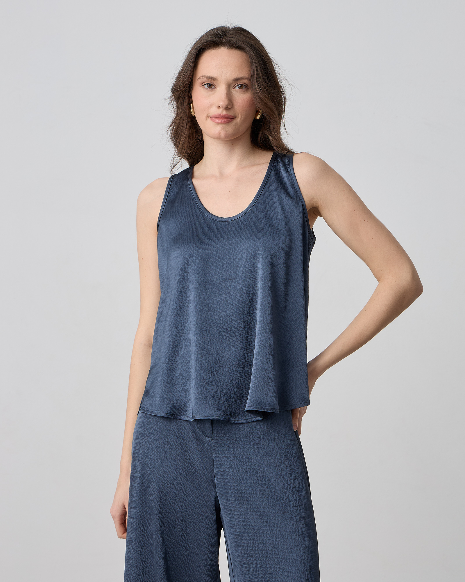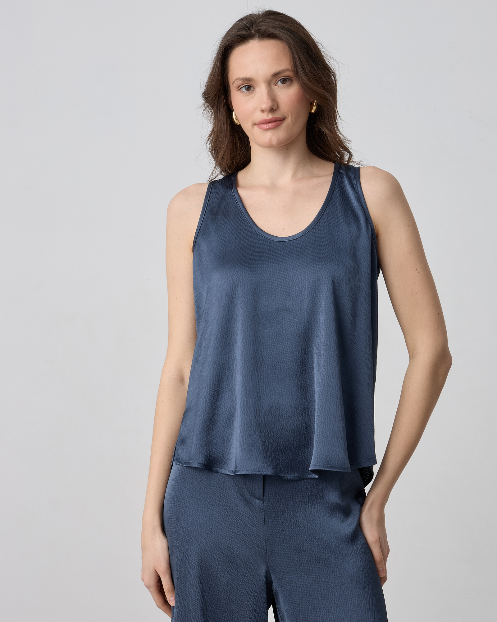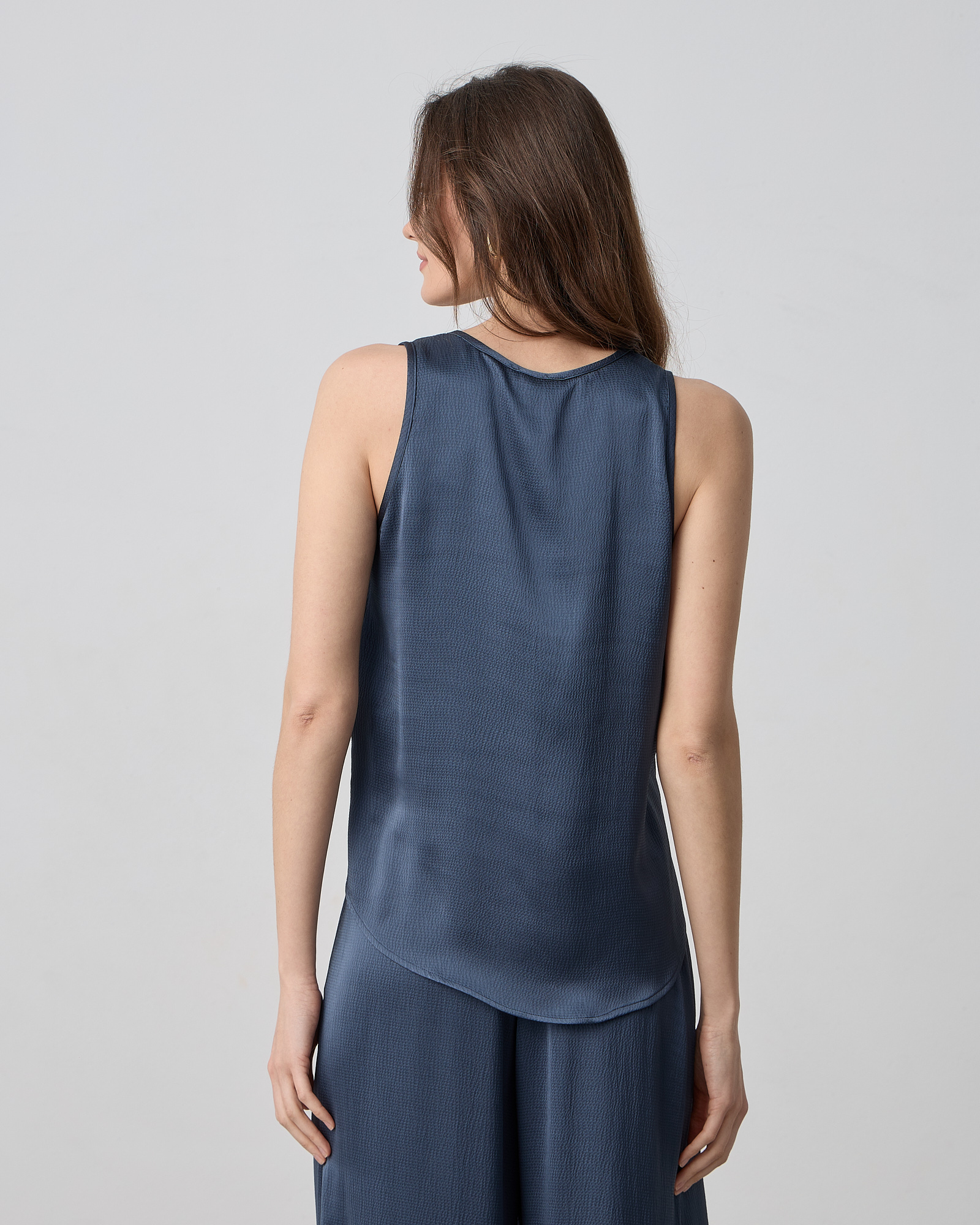Μπλούζα αμάνικη με στρογγυλή λαιμόκοψη σε σατέν υφή και άνετη εφαρμογή