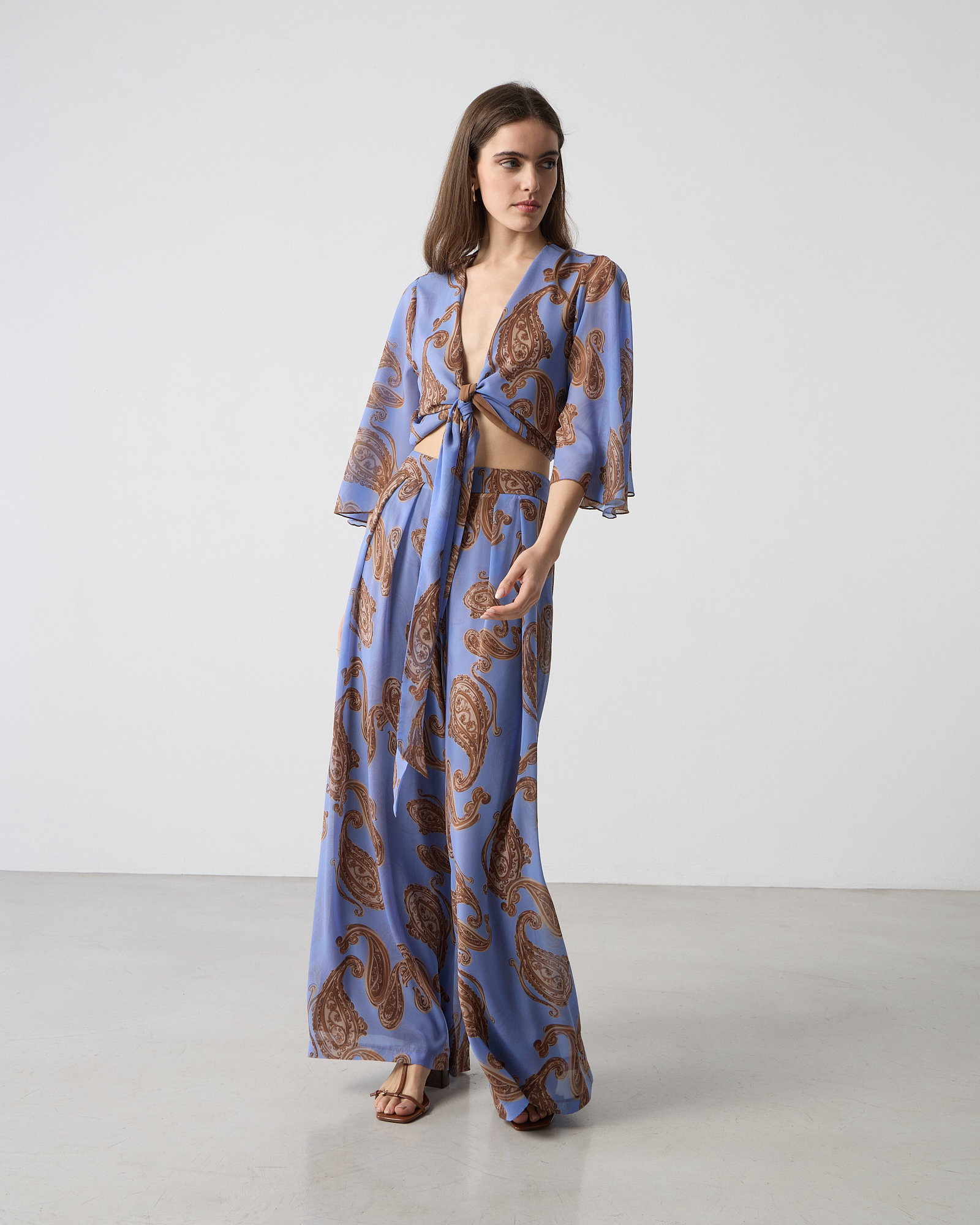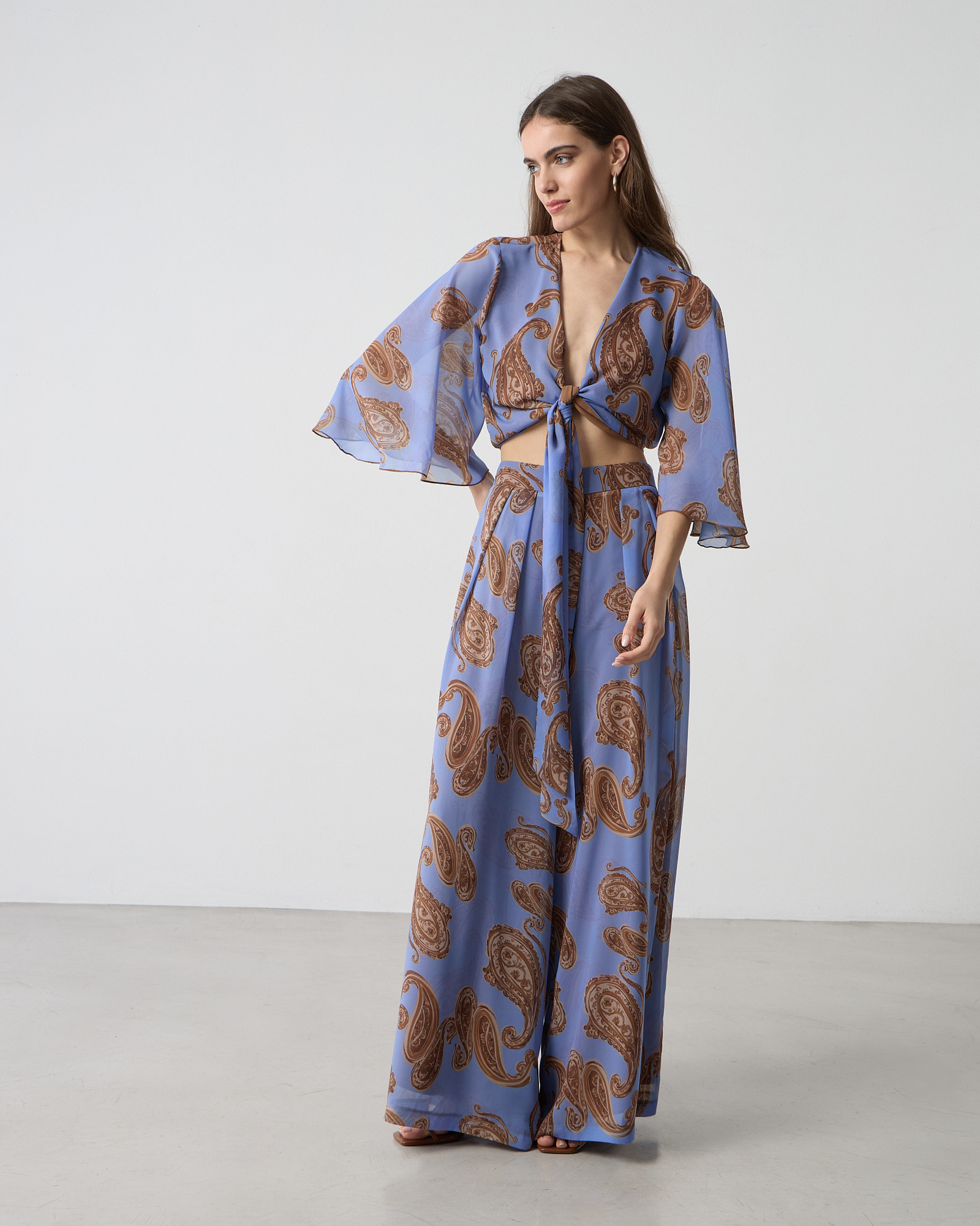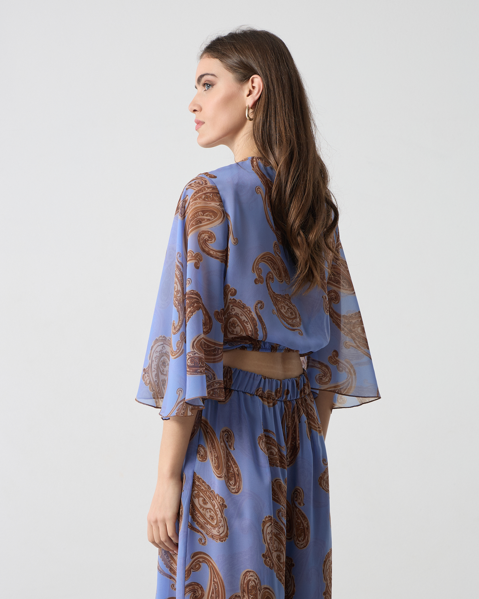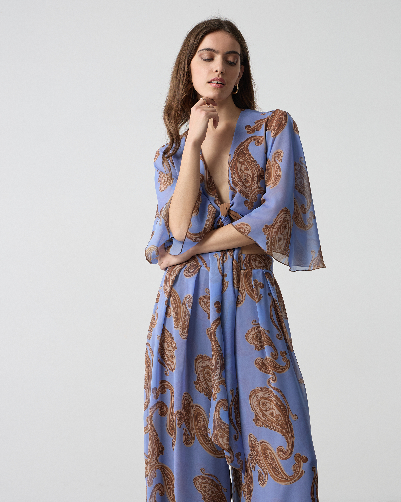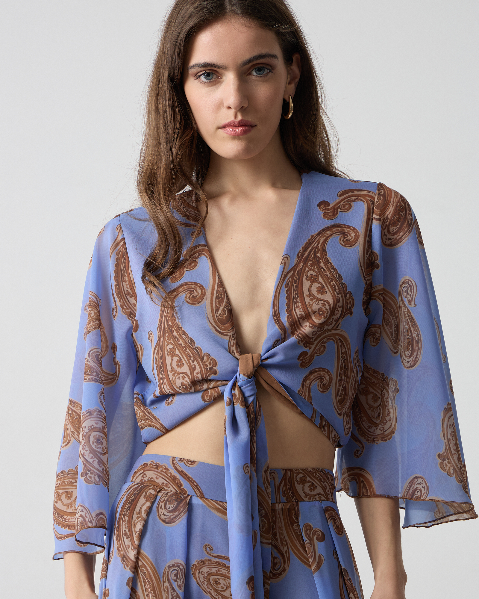 Τοπ κρουαζέ με δέσιμο, all over εμπριμέ, μανίκι 3/4, ανάλαφρο ύφασμα, σε κανονική εφαρμογή