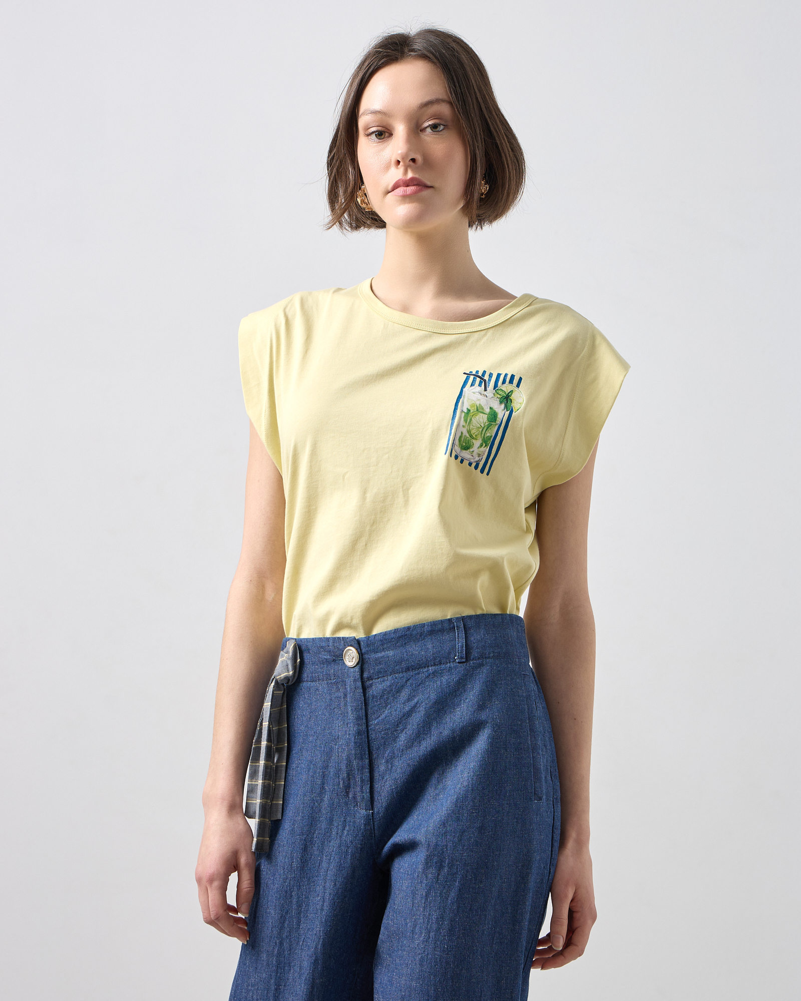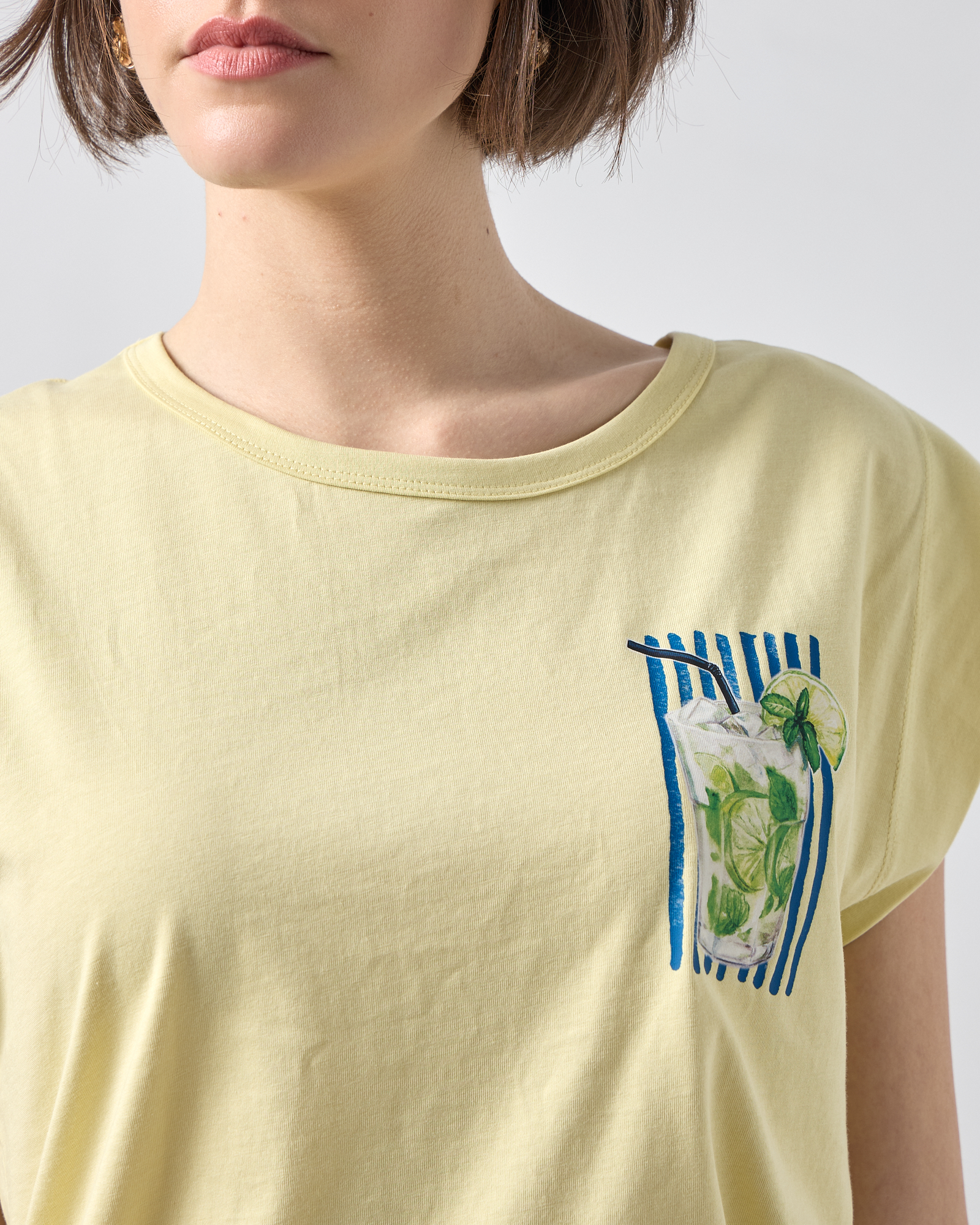 Μπλούζα κοντομάνικη με στρογγυλή λαιμόκοψη, διακριτική στάμπα στο στήθος, σε βαμβακερό ύφασμα, σε κανονική εφαρμογή