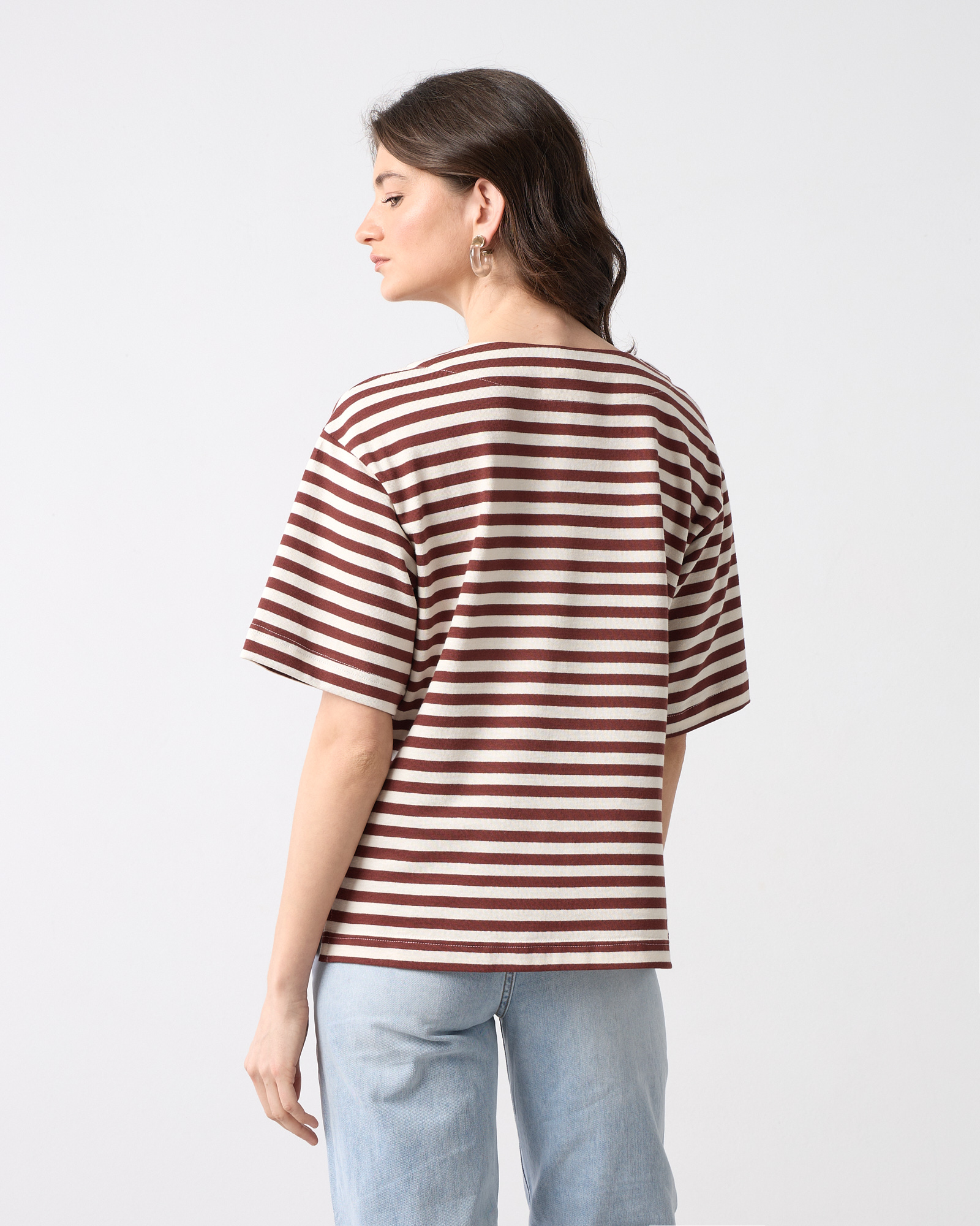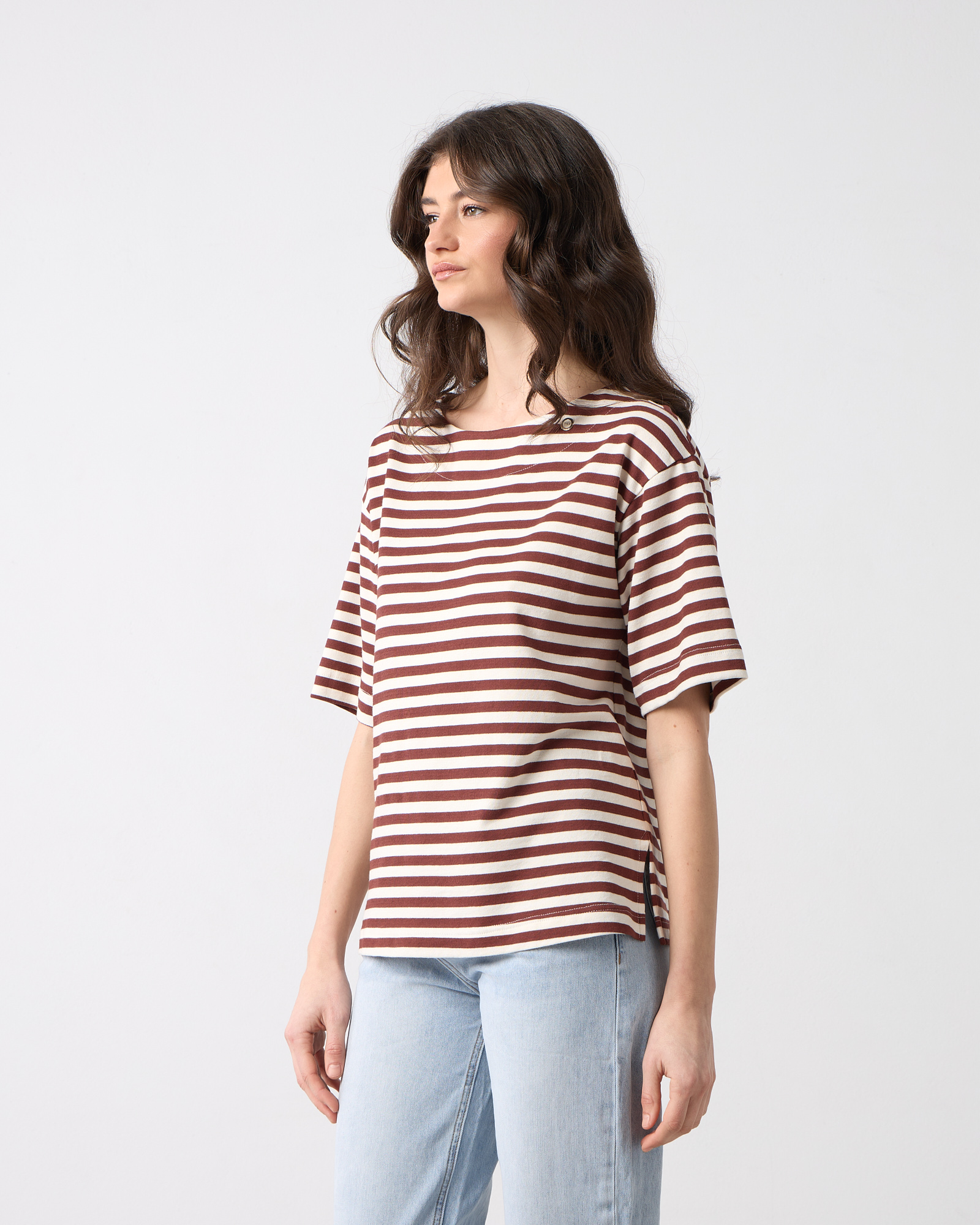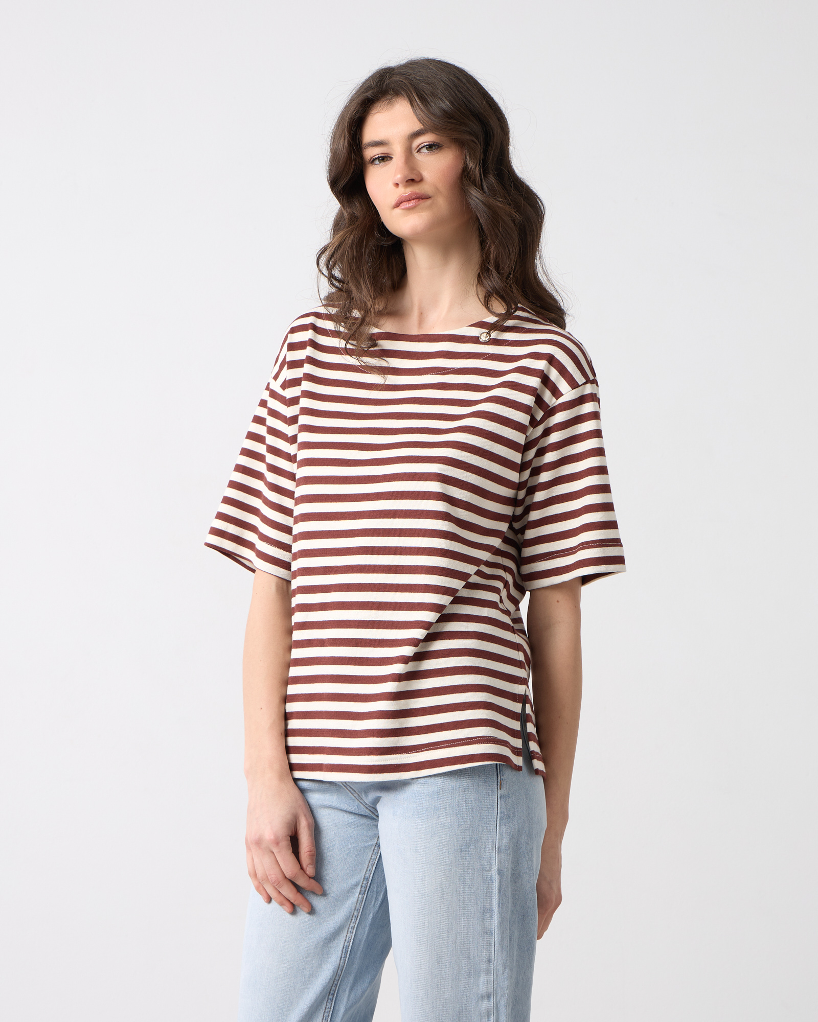 Μπλούζα ριγέ με στρογγυλή λαιμόκοψη, κοντό μανίκι, βαμβακερή σε ίσια άνετη γραμμή