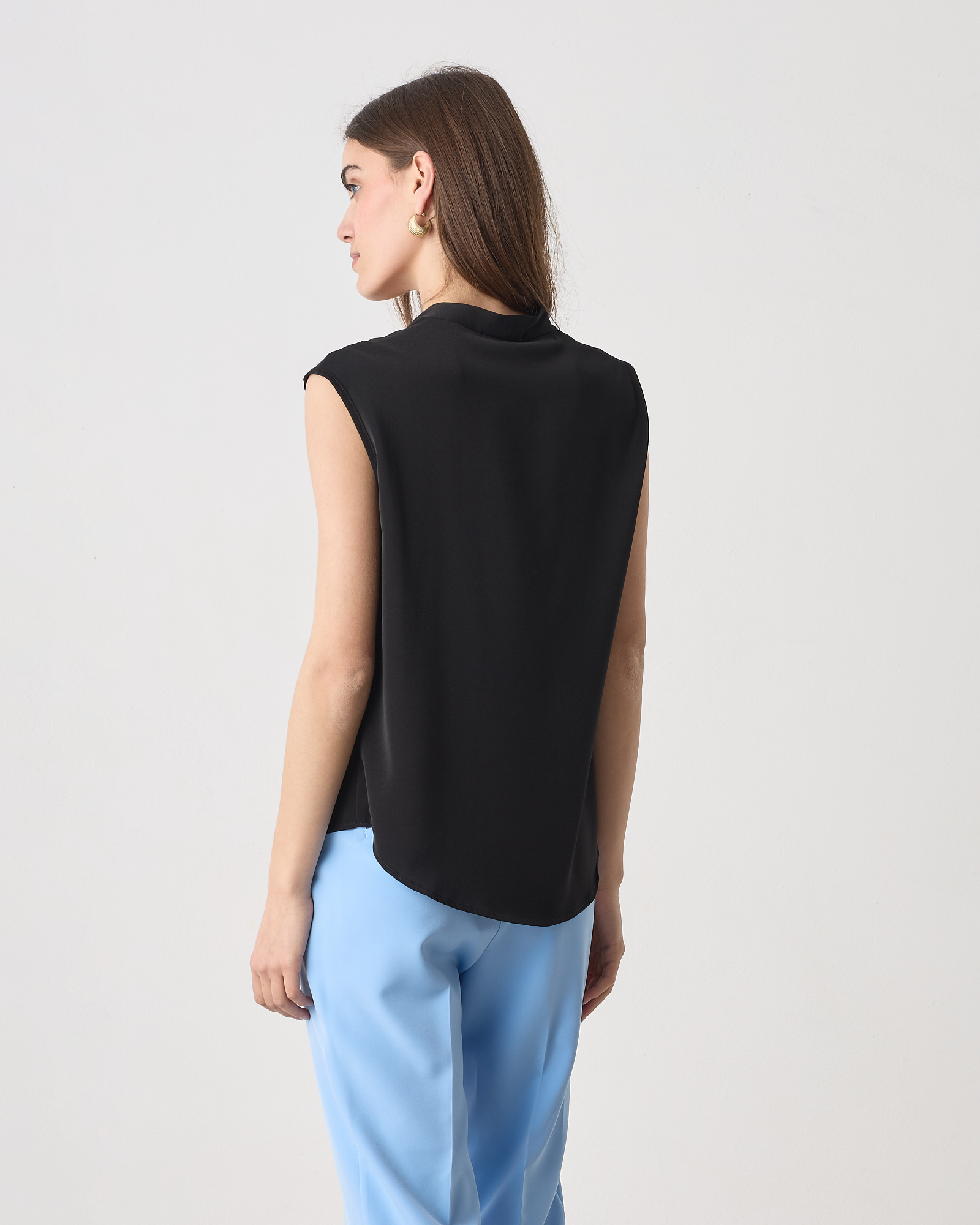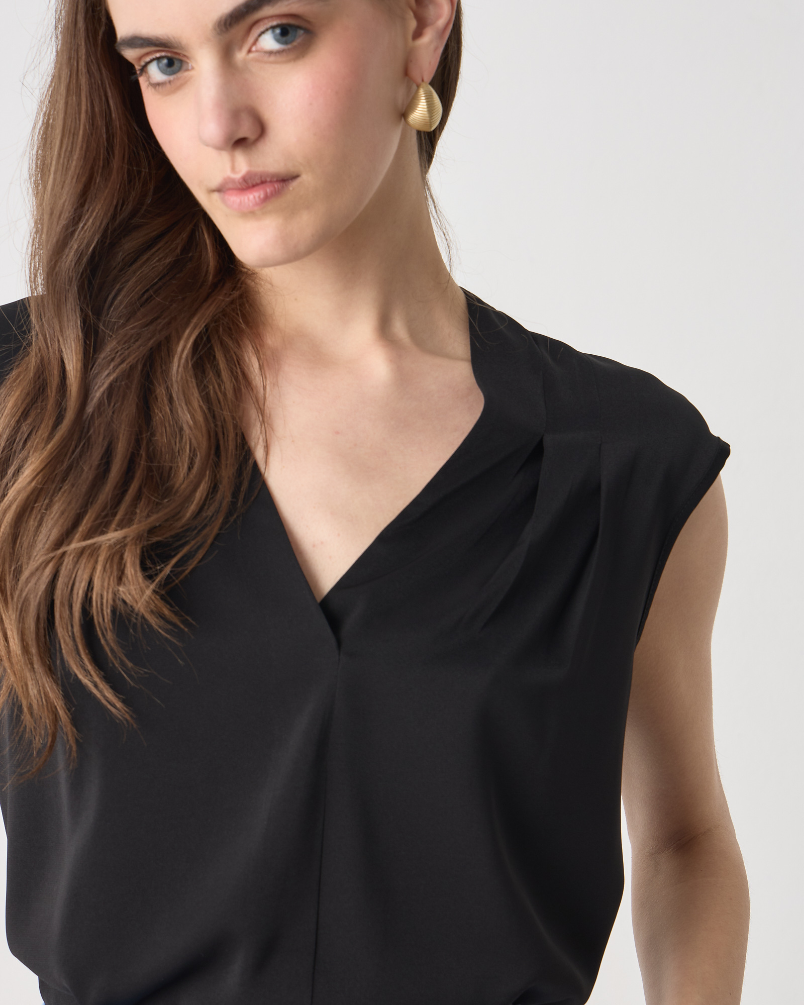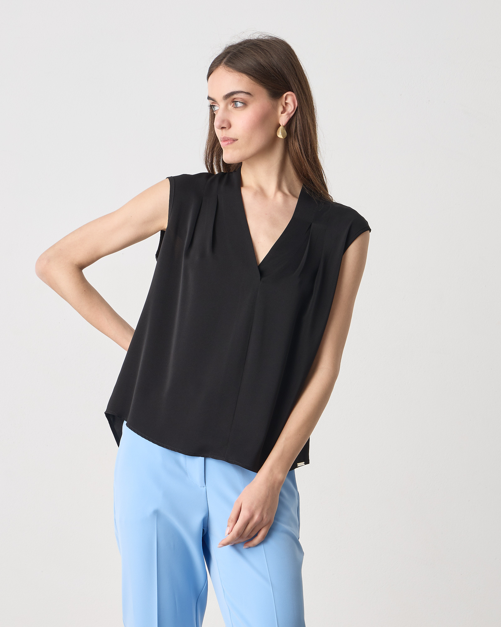 Μπλούζα αμάνικη με V λαιμόκοψη, πιέτες στους ώμους, σε αέρινο ύφασμα, κανονική εφαρμογή