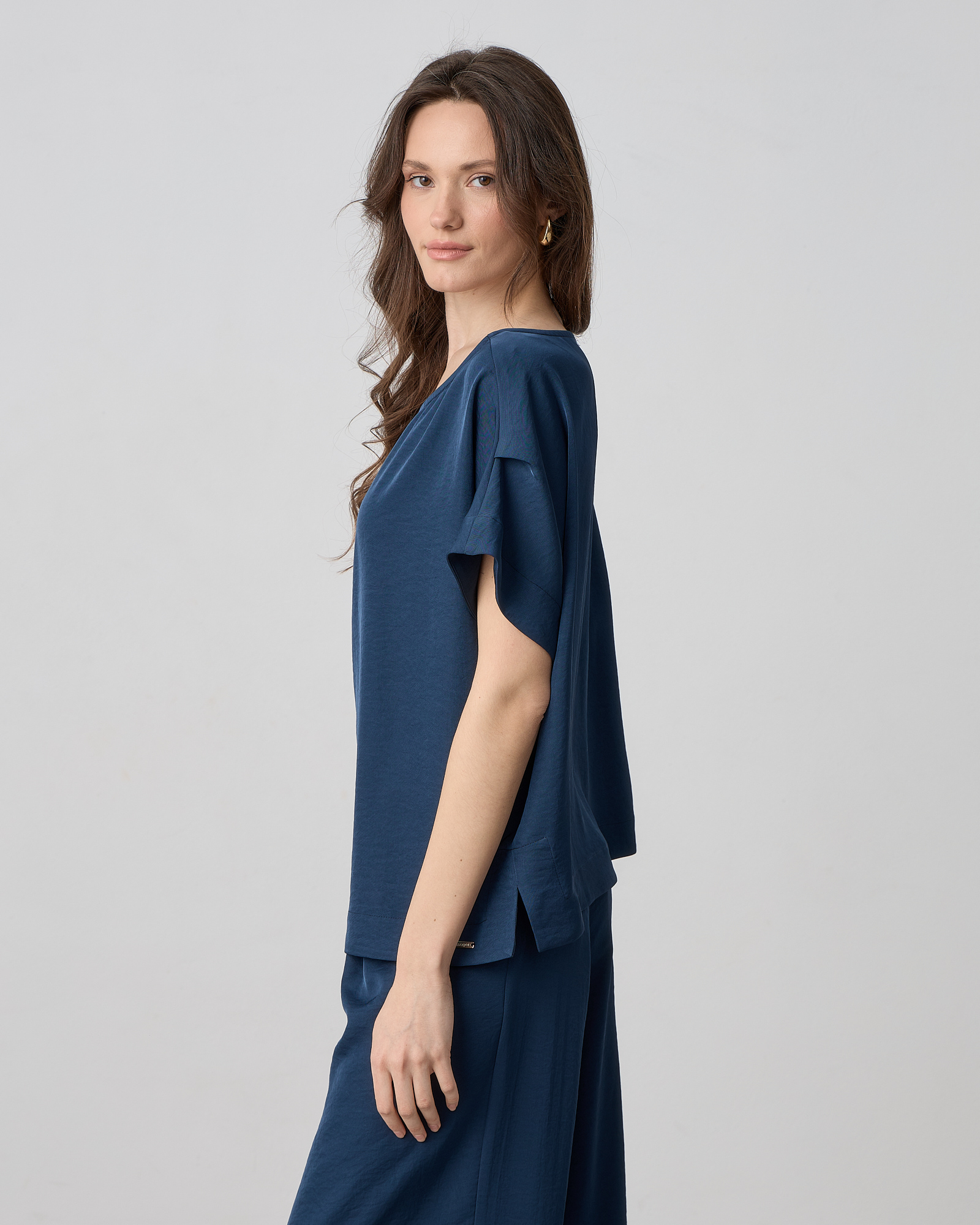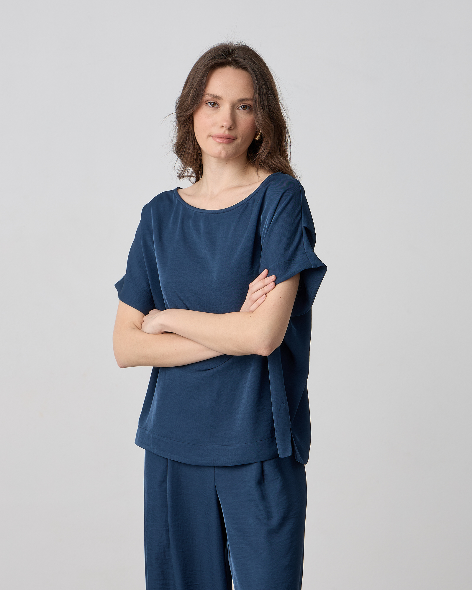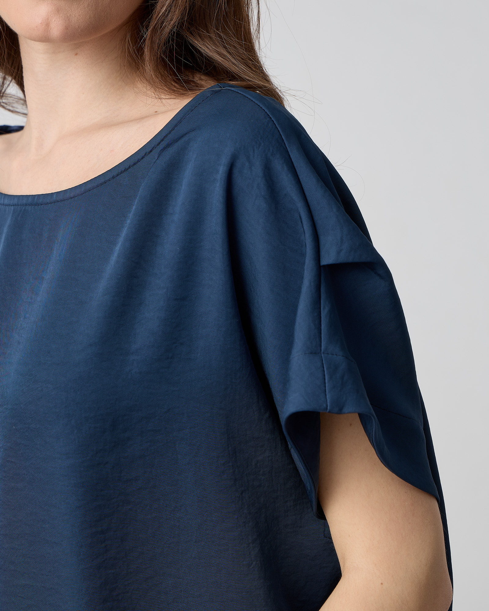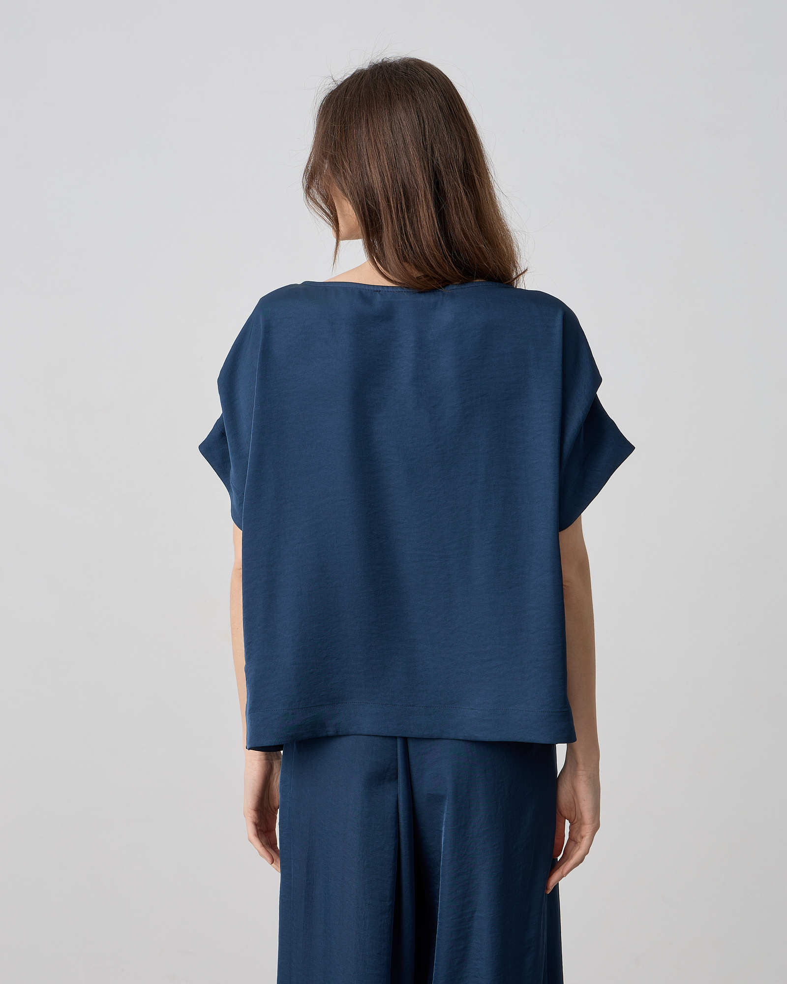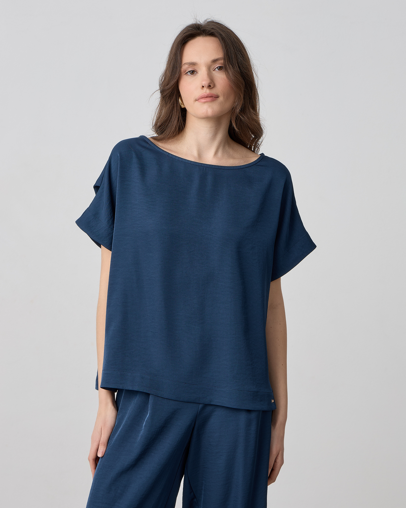 Μπλούζα κοντομάνικη, λαιμόκοψη χαμόγελο, σε ανάλαφρο ύφασμα σε loose γραμμή