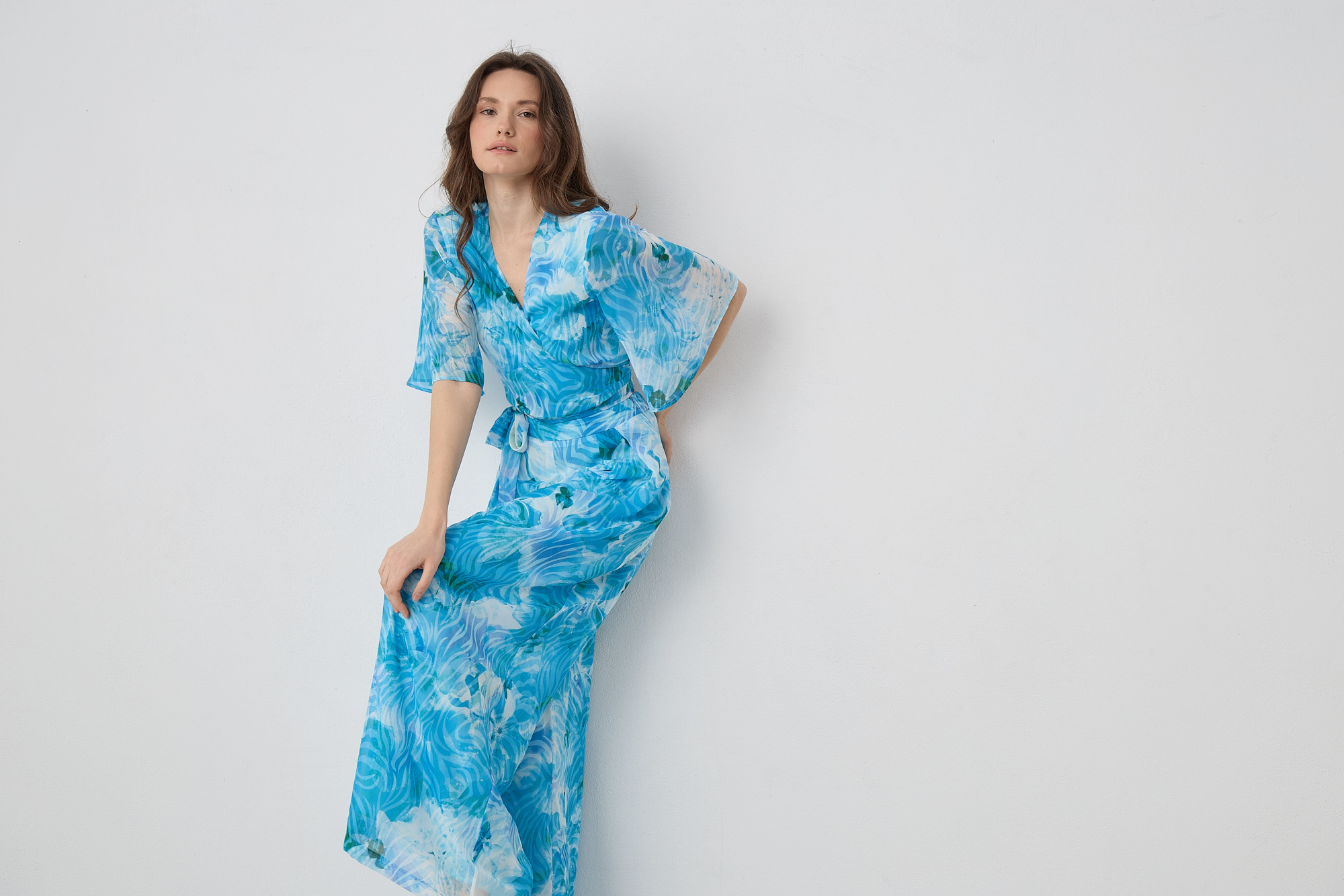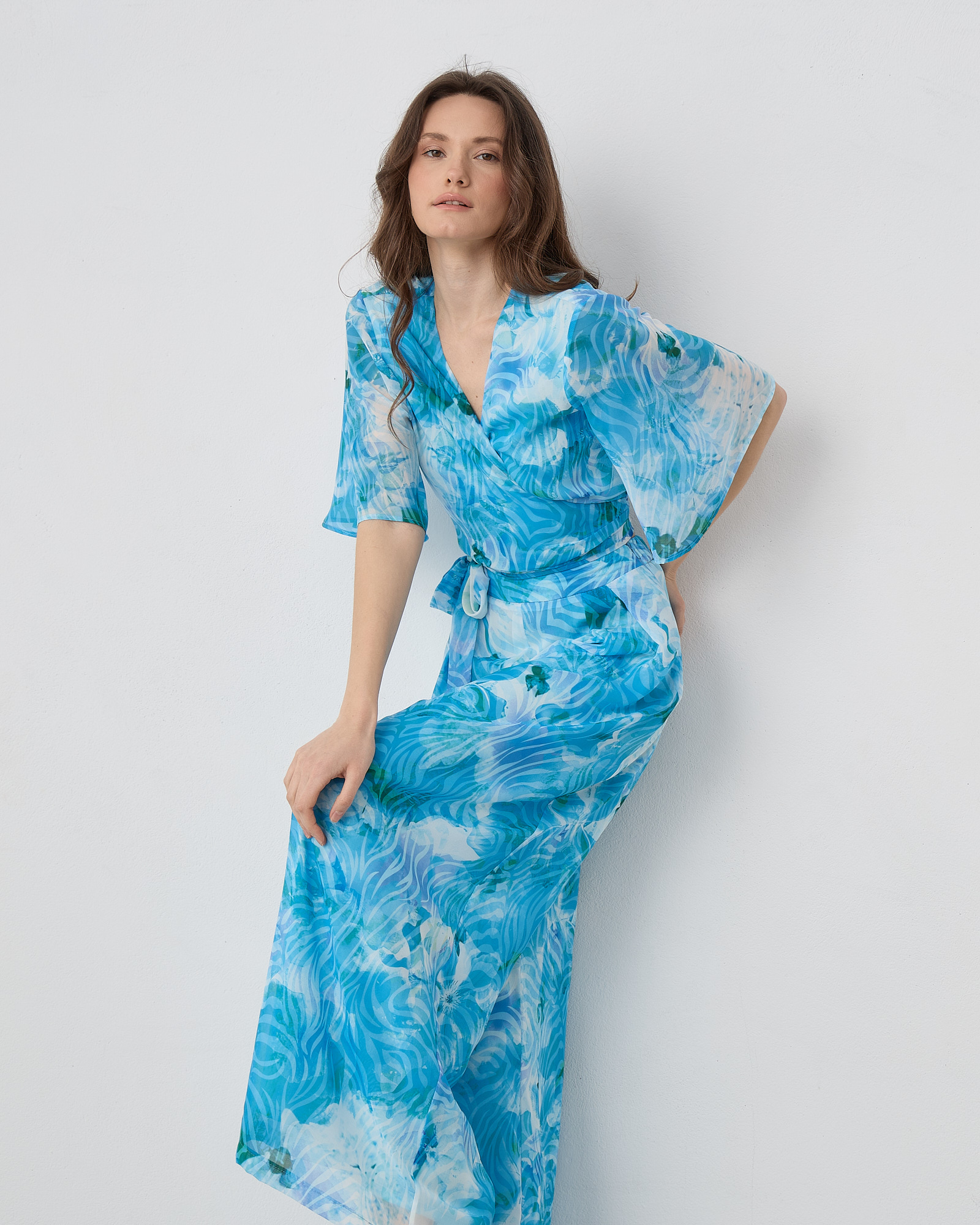 Μπλούζα κρουαζέ εμπριμέ με μανίκι3/4, με V λαιμόκοψη, δέσιμο στο πλάι, ύφασμα ανάλαφρο μουσελίνα σε κανονική γραμμή