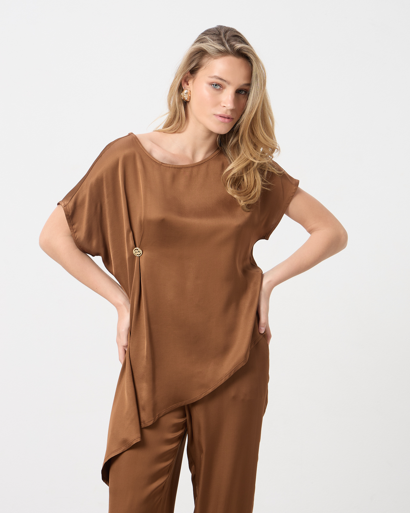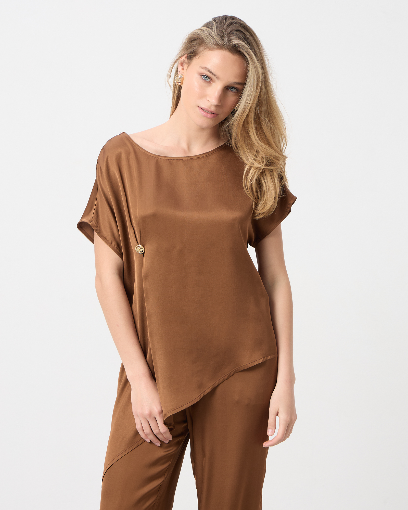 Μπλούζα σατέν με ασύμμετρο τελείωμα
