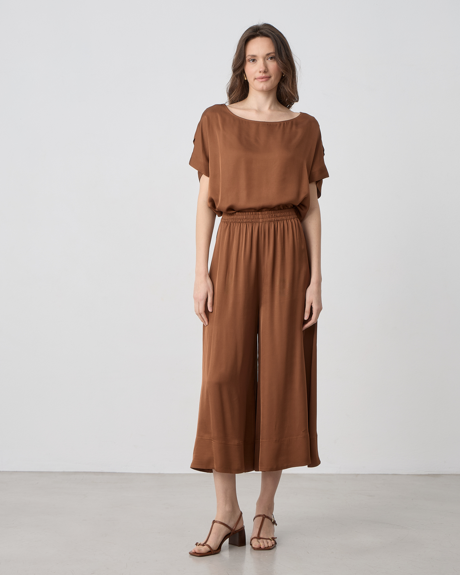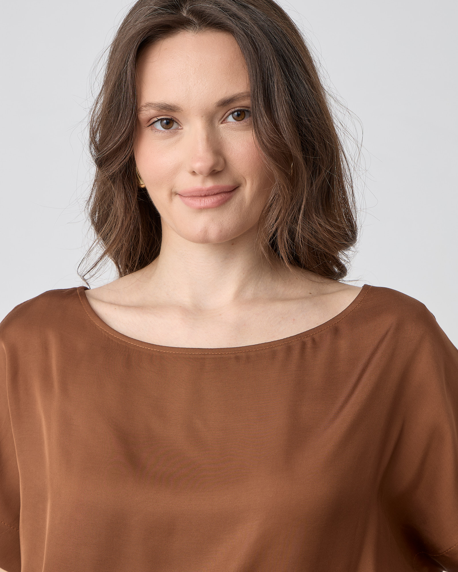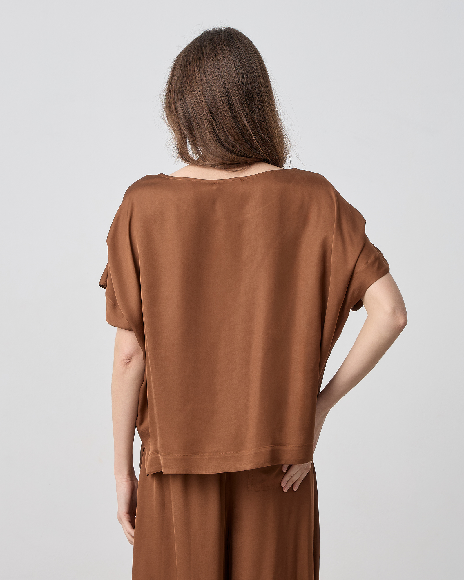 Μπλούζα κοντομάνικη με λαιμόκοψη χαμόγελο, σε σατέν βισκόζ ύφασμα σε άνετη γραμμή